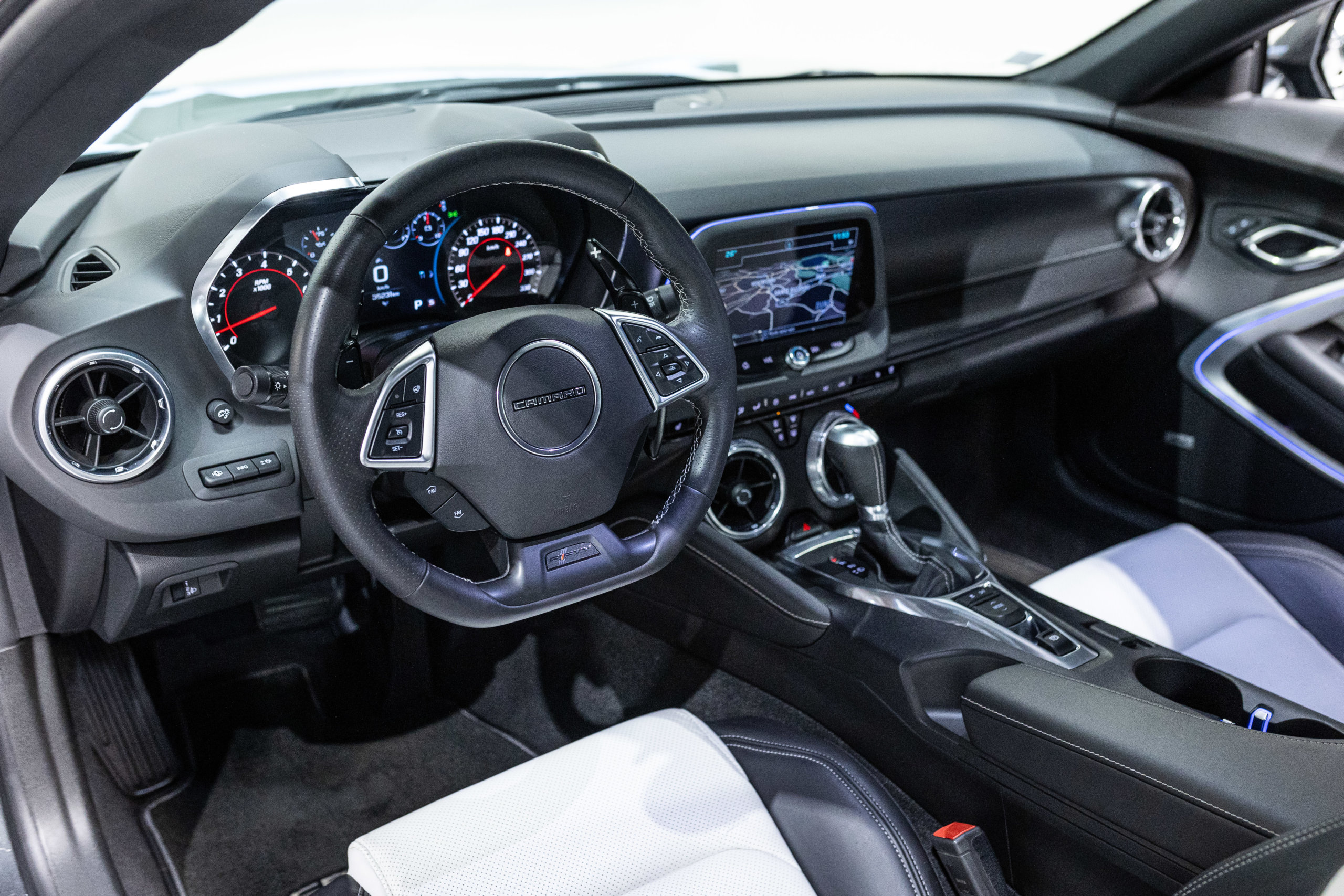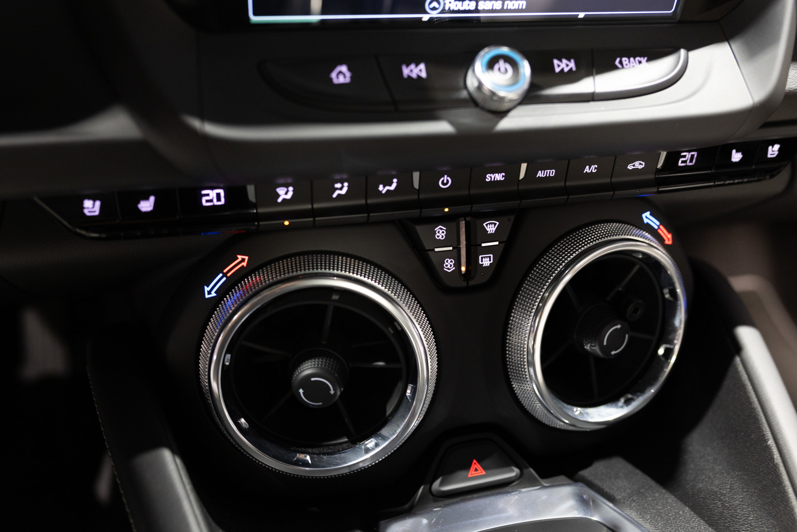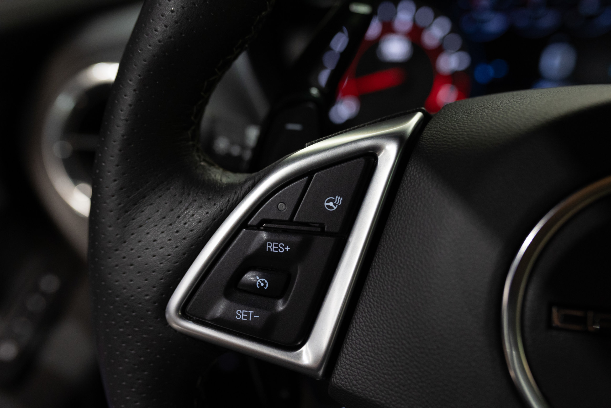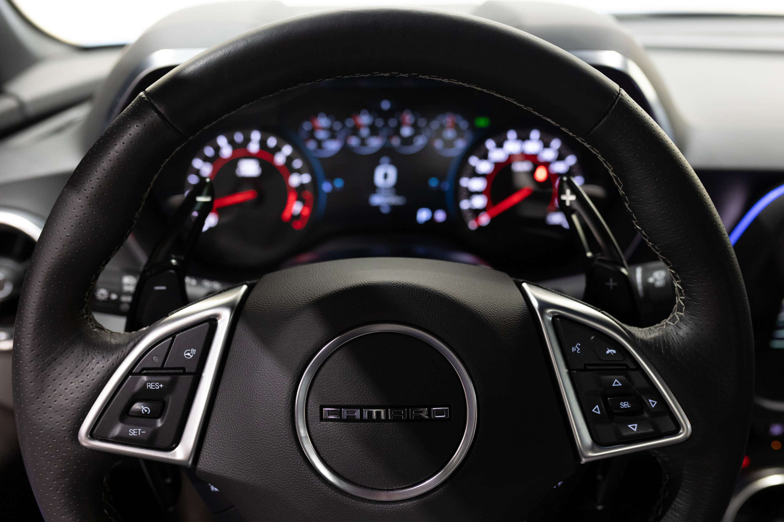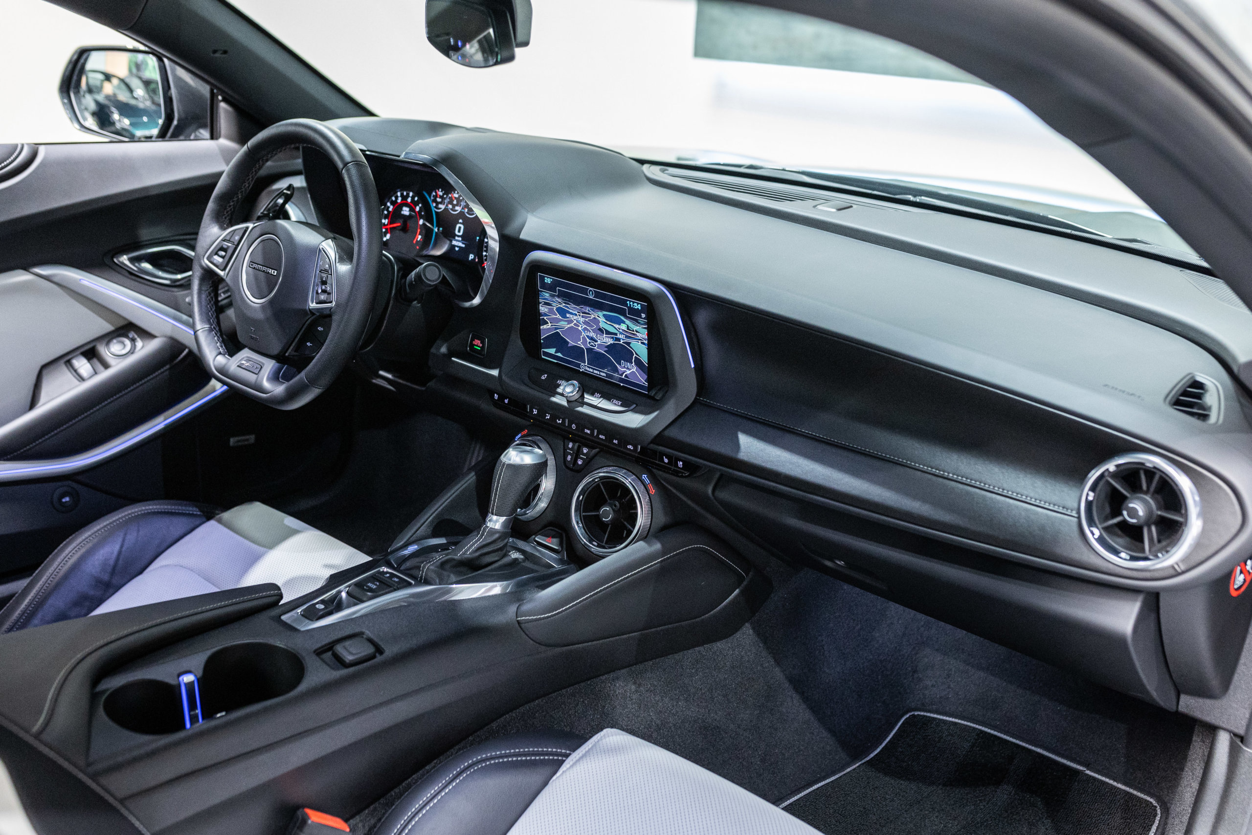 EXTEN’Z CARS vous propose cette séduisante Chevrolet Camaro VI Coupé avec son fantastique V8 6.2 Atmosphérique développant 453 CV (35cv), mise en circulation le 21/12/2016 de couleur NightFall Grey Métallic. Associée à une boite à vitesse automatique à 8 rapports, si vous préférez une conduite plus sportive, il lui suffit de passer en mode manuel à l’aide des palettes de changement de vitesse au volant pour disposer alors des 8 rapports fixes. Cette Camaro distille beaucoup de plaisir à ses occupants tout en offrant un rapport prix/plaisir. En particulier sa silhouette bodybuildée, la position de conduite est parfaite et on peut admirer devant soi le long capot bosselé. Prendre les commandes d’un tel engin, aussi imposant par le gabarit que par son histoire, génère des sensations extraordinaires.