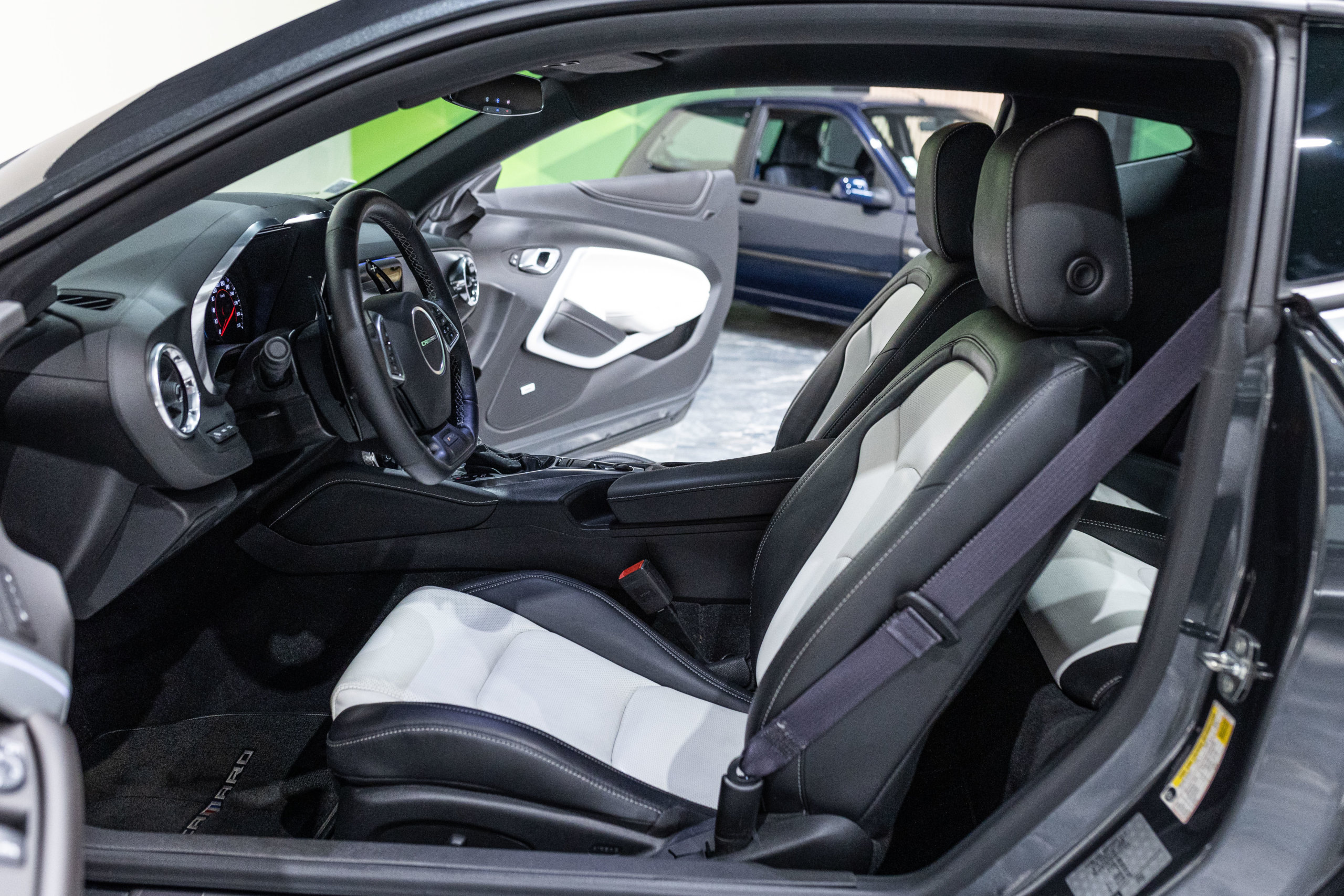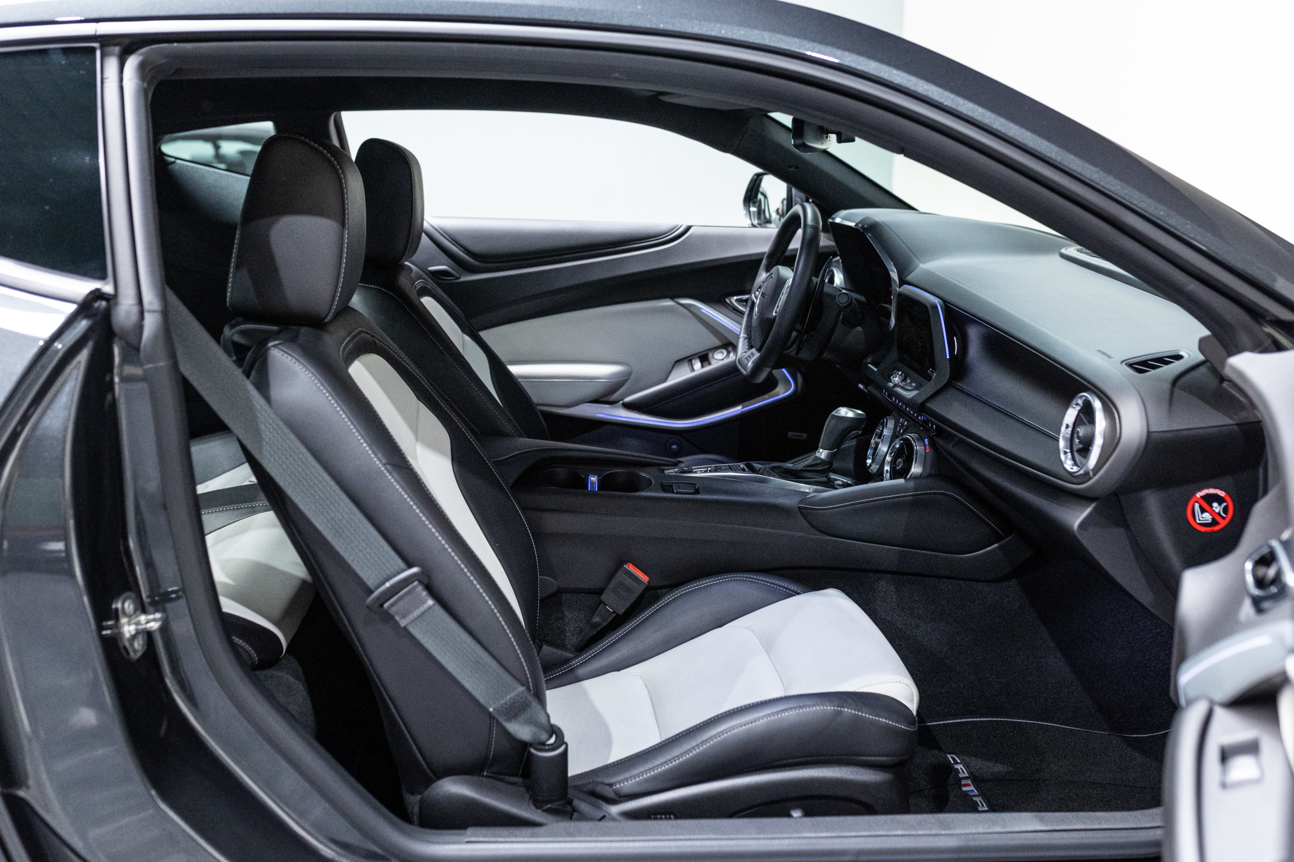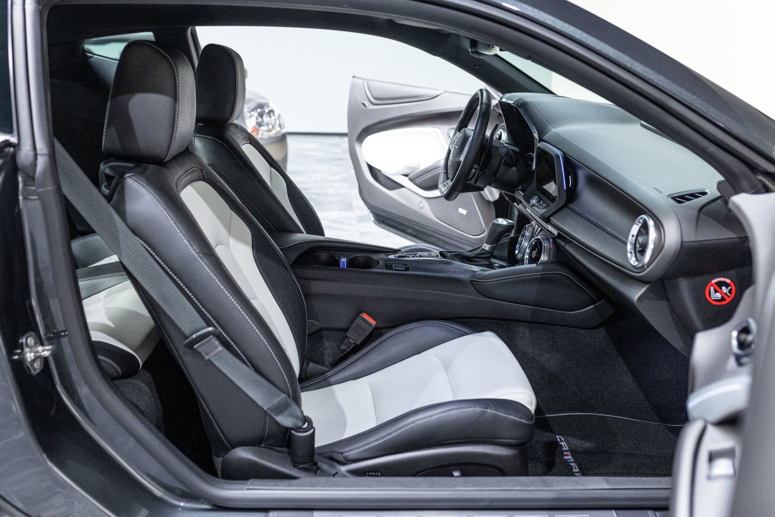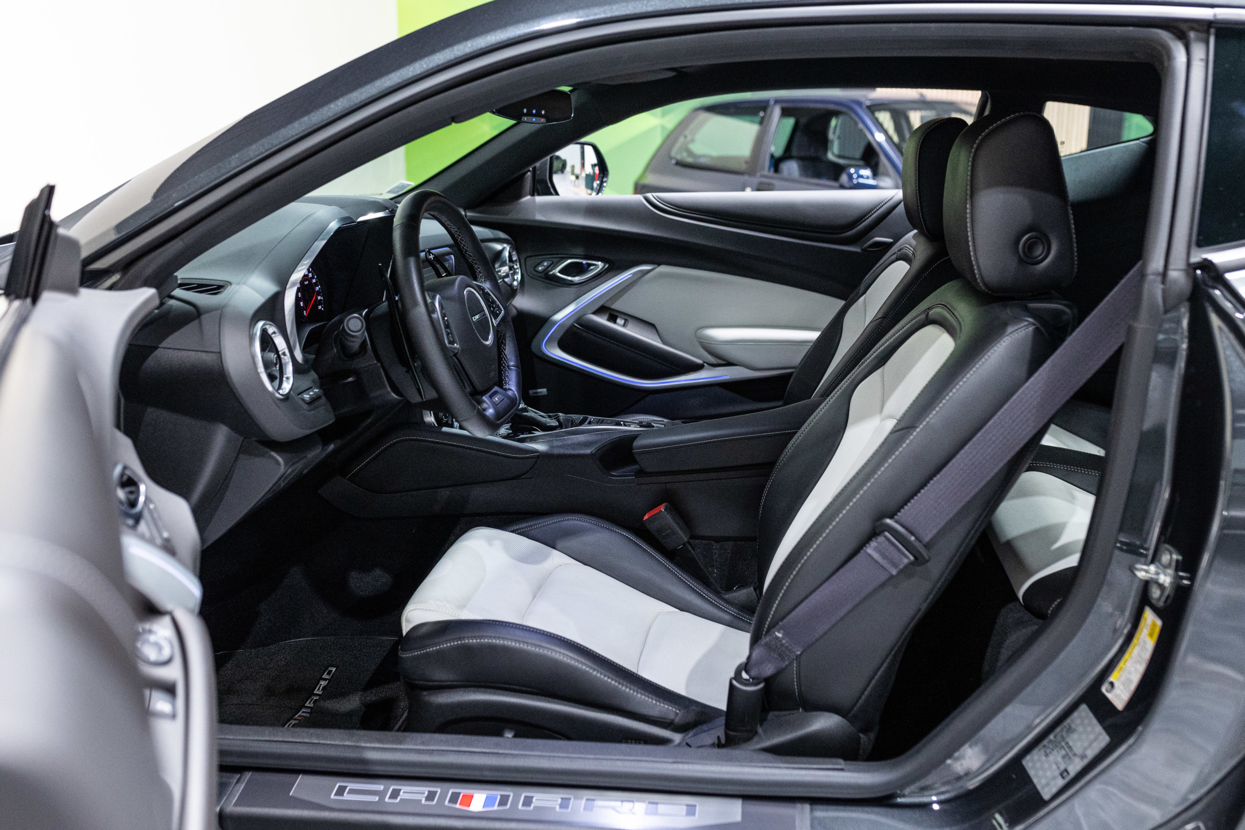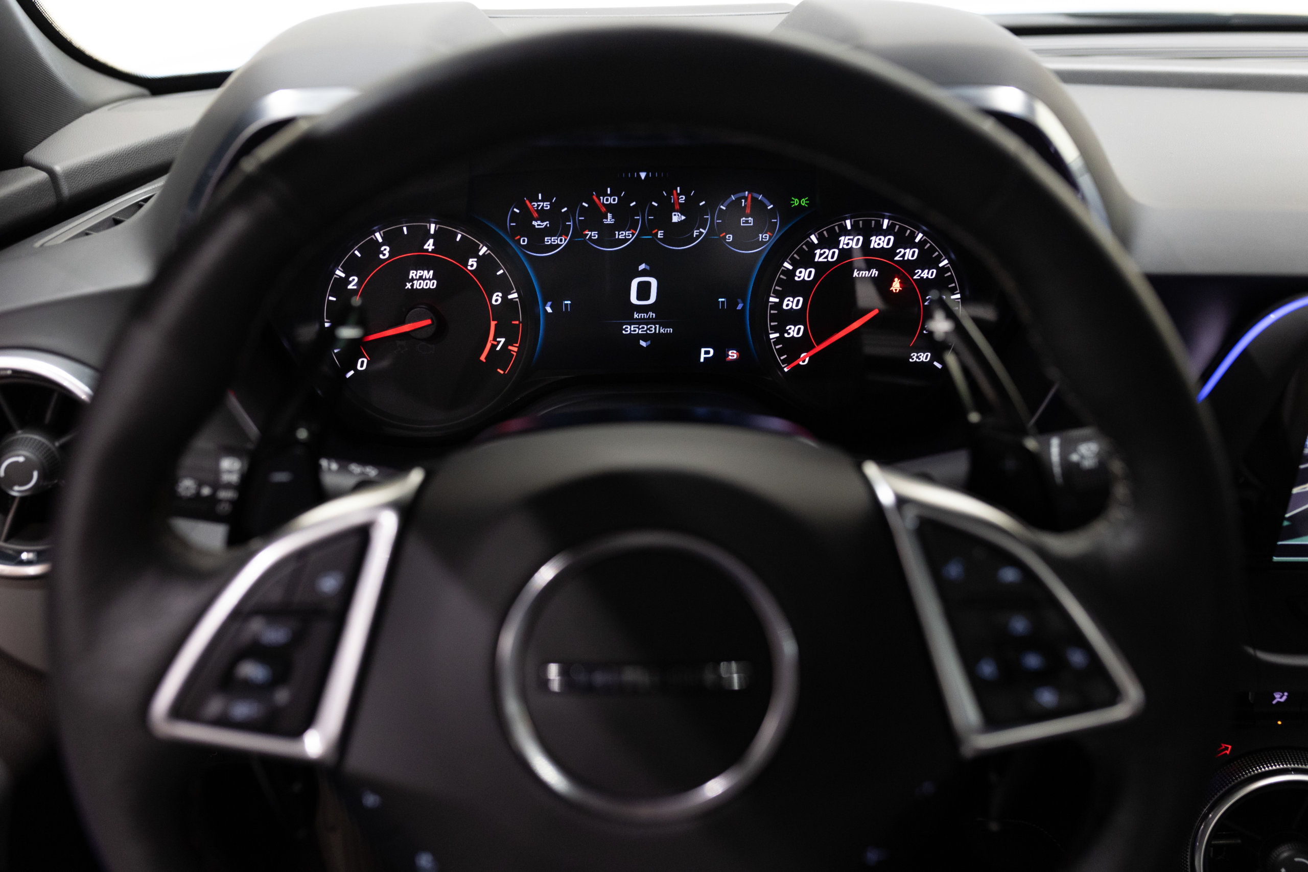 EXTEN’Z CARS vous propose cette séduisante Chevrolet Camaro VI Coupé avec son fantastique V8 6.2 Atmosphérique développant 453 CV (35cv), mise en circulation le 21/12/2016 de couleur NightFall Grey Métallic. Associée à une boite à vitesse automatique à 8 rapports, si vous préférez une conduite plus sportive, il lui suffit de passer en mode manuel à l’aide des palettes de changement de vitesse au volant pour disposer alors des 8 rapports fixes. Cette Camaro distille beaucoup de plaisir à ses occupants tout en offrant un rapport prix/plaisir. En particulier sa silhouette bodybuildée, la position de conduite est parfaite et on peut admirer devant soi le long capot bosselé. Prendre les commandes d’un tel engin, aussi imposant par le gabarit que par son histoire, génère des sensations extraordinaires.