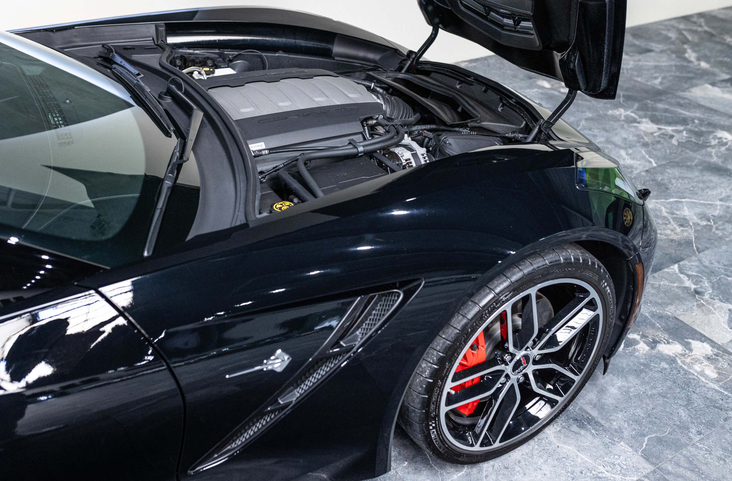 Cette Corvette, de première main, affiche seulement 16.000 km, est en état exceptionnel, proche du neuf. Le long capot bosselé et la silhouette musclée de la C7 offrent une vue imprenable et des sensations extraordinaires à chaque prise en main.