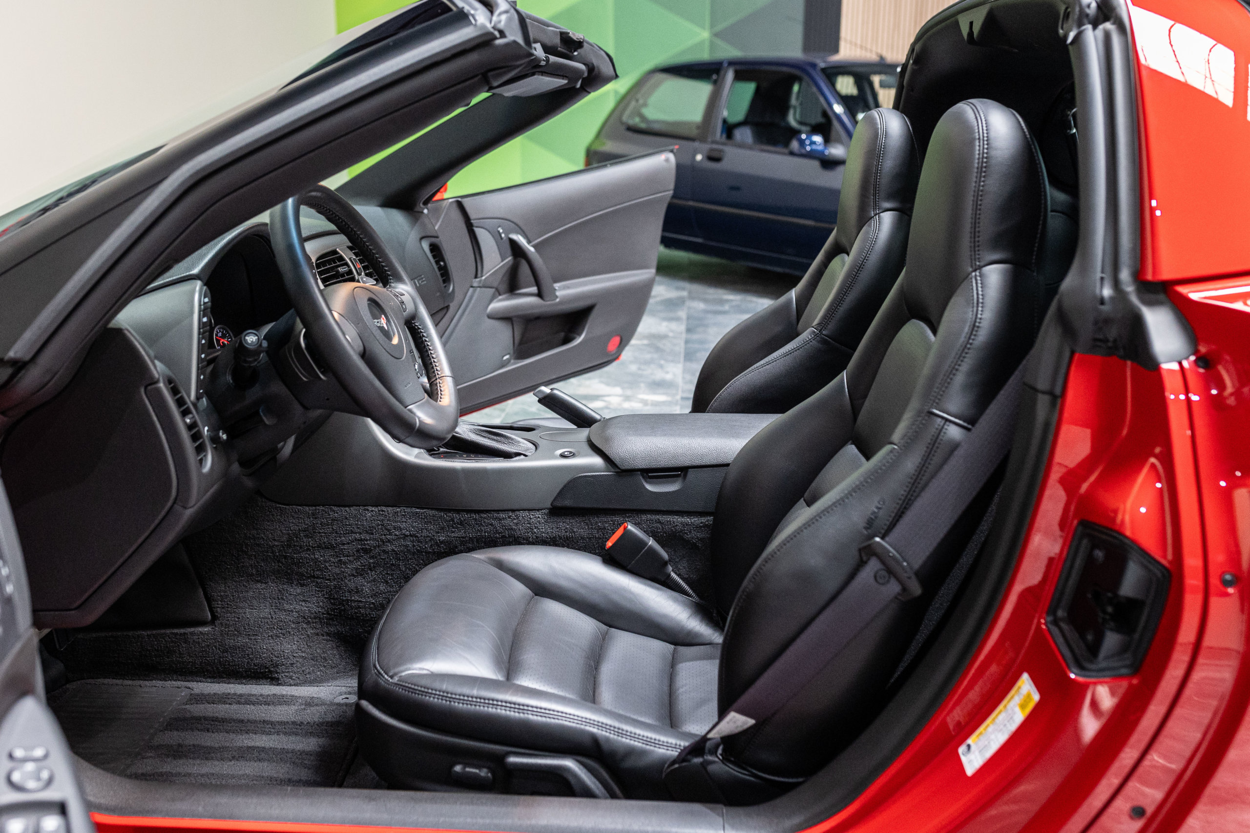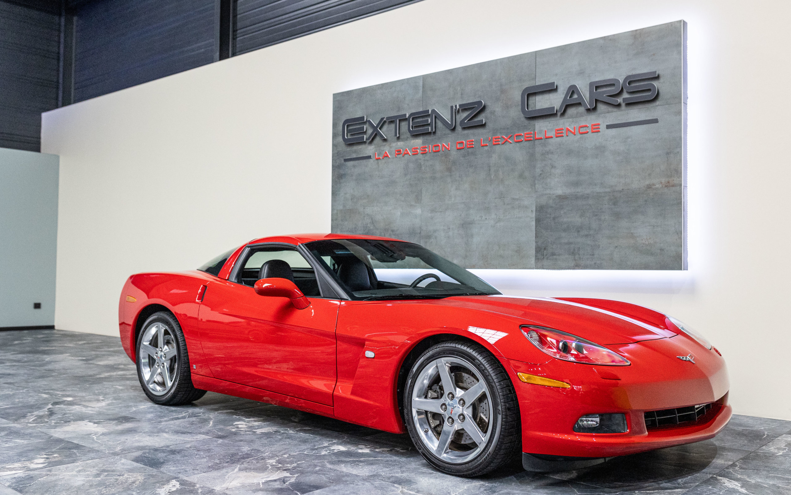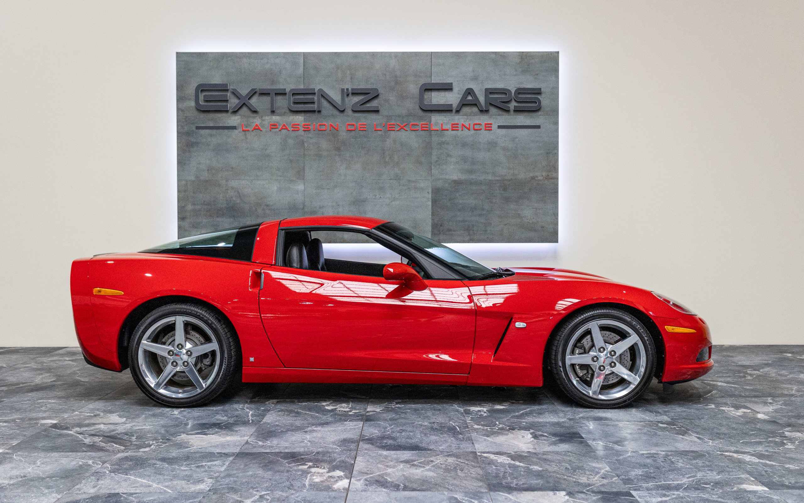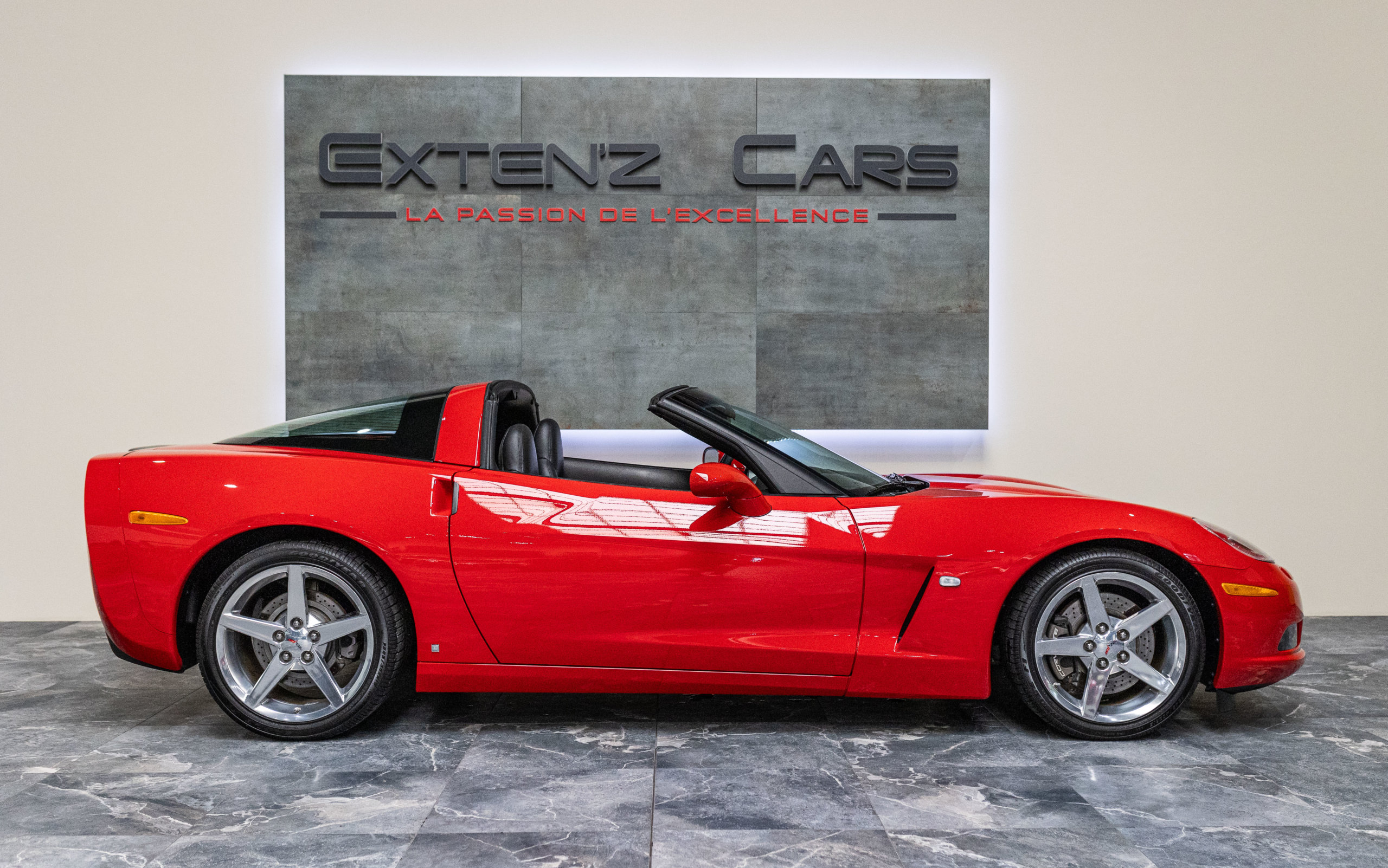 EXTEN’Z CARS vous propose cette magnifique Chevrolet Corvette C6 Targa alliant puissance, style et plaisir de conduite. Équipée du légendaire V8 6.0 LS2 atmosphérique développant 405 CV (32cv), mise en circulation le 04/01/2007, arborant la superbe couleur Victory Red. Elle est associée à une boîte de vitesses automatique, garantissant une conduite à la fois fluide et sportive. Cette Corvette, de première main, affiche seulement 13.600 km, une véritable rareté sur le marché de l’occasion. Son état de conservation est strictement exceptionnel, proche du neuf, comme si elle venait de sortir de l’usine. Elle distille un plaisir de conduite incomparable grâce à sa silhouette musclée et à sa position de conduite parfaite. Le long capot bosselé offre une vue imprenable amplifiant les sensations extraordinaires à chaque prise en main.