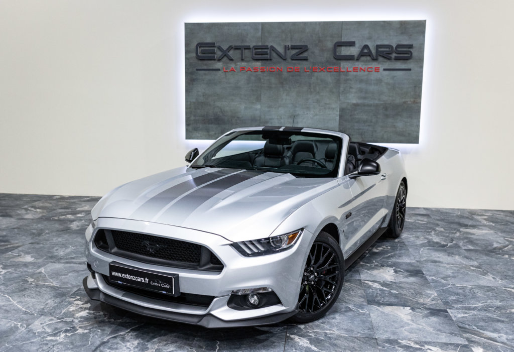 EXTEN’Z CARS vous propose cette séduisante Ford Mustang GT Cabriolet avec son fantastique V8 5.0 Atmosphérique développant 421 CV (33cv), mise en circulation le 07/06/2017 de couleur Gris Ingot. Cette MUSTANG distille beaucoup de plaisir à ses occupants tout en offrant un rapport prix/plaisir. En particulier sa silhouette bodybuildée, la position de conduite est parfaite et on peut admirer devant soi le long capot bosselé. Prendre les commandes d’un tel engin, aussi imposant par le gabarit que par son histoire, génère des sensations extraordinaires.