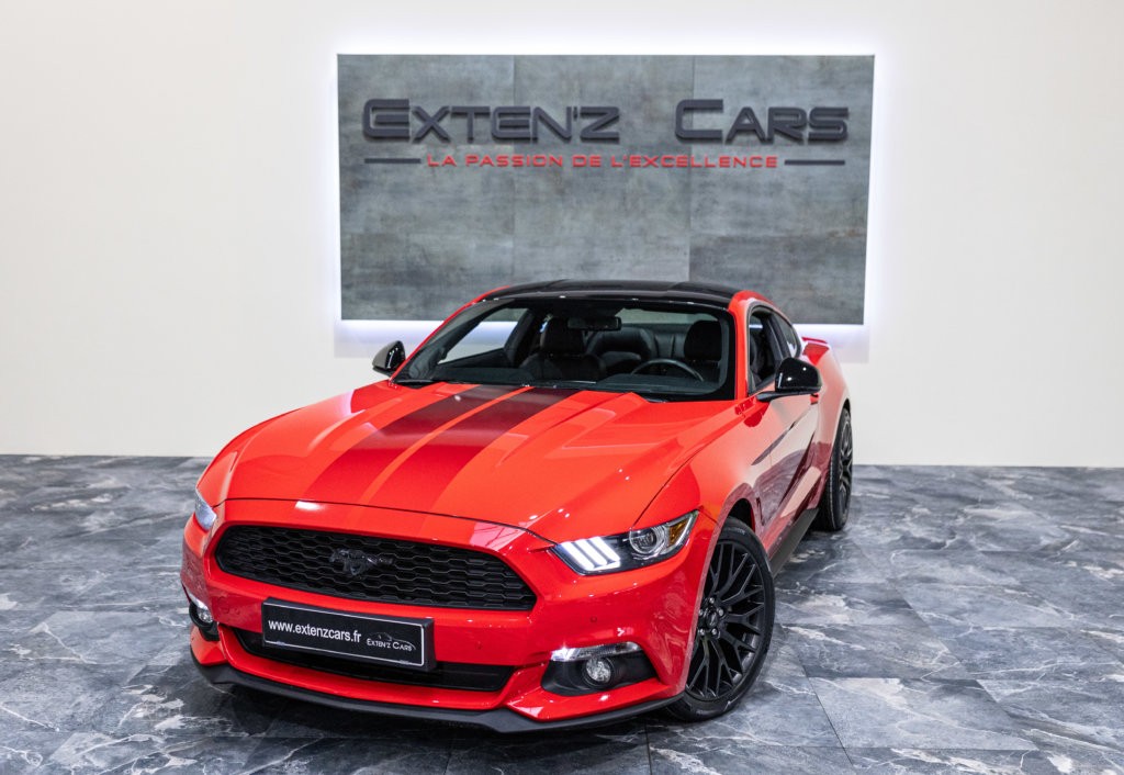 EXTEN’Z CARS vous propose cette séduisante Ford MUSTANG Fastback 2.3 Ecoboost développant 317 CV (21cv), mise en circulation le 22/03/2016 de couleur Rouge Racing. Cette Mustang Fastback distille beaucoup de plaisir à ses occupants tout en offrant un rapport prix/plaisir imbattable. En particulier sa face avant qui s’inspire d’un requin. Le regard est impressionnant, la position de conduite est parfaite et on peut admirer devant soi le long capot bosselé. Prendre les commandes d’un tel engin, aussi imposant par le gabarit que par son histoire, génère des sensations extraordinaires.