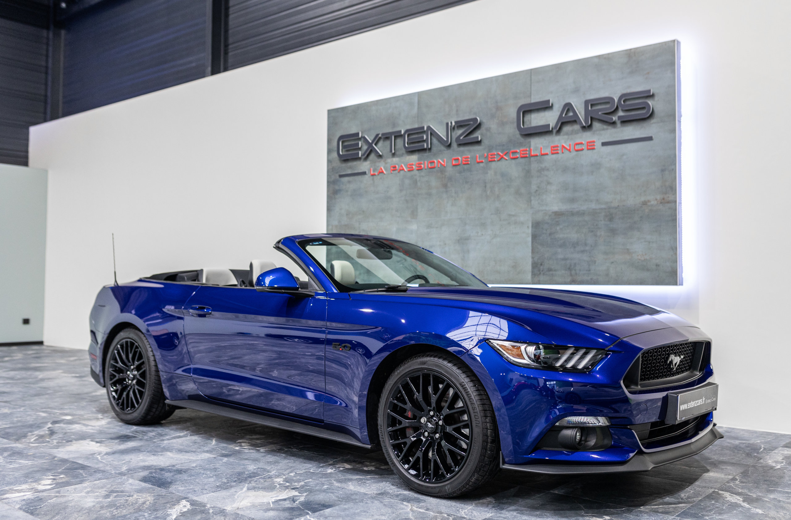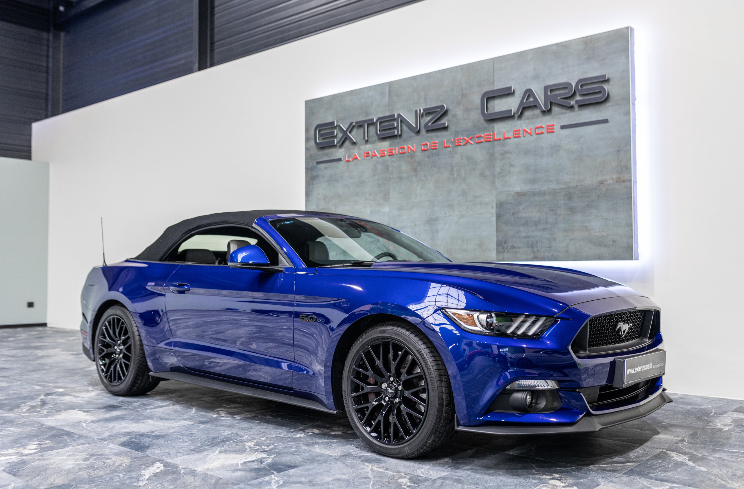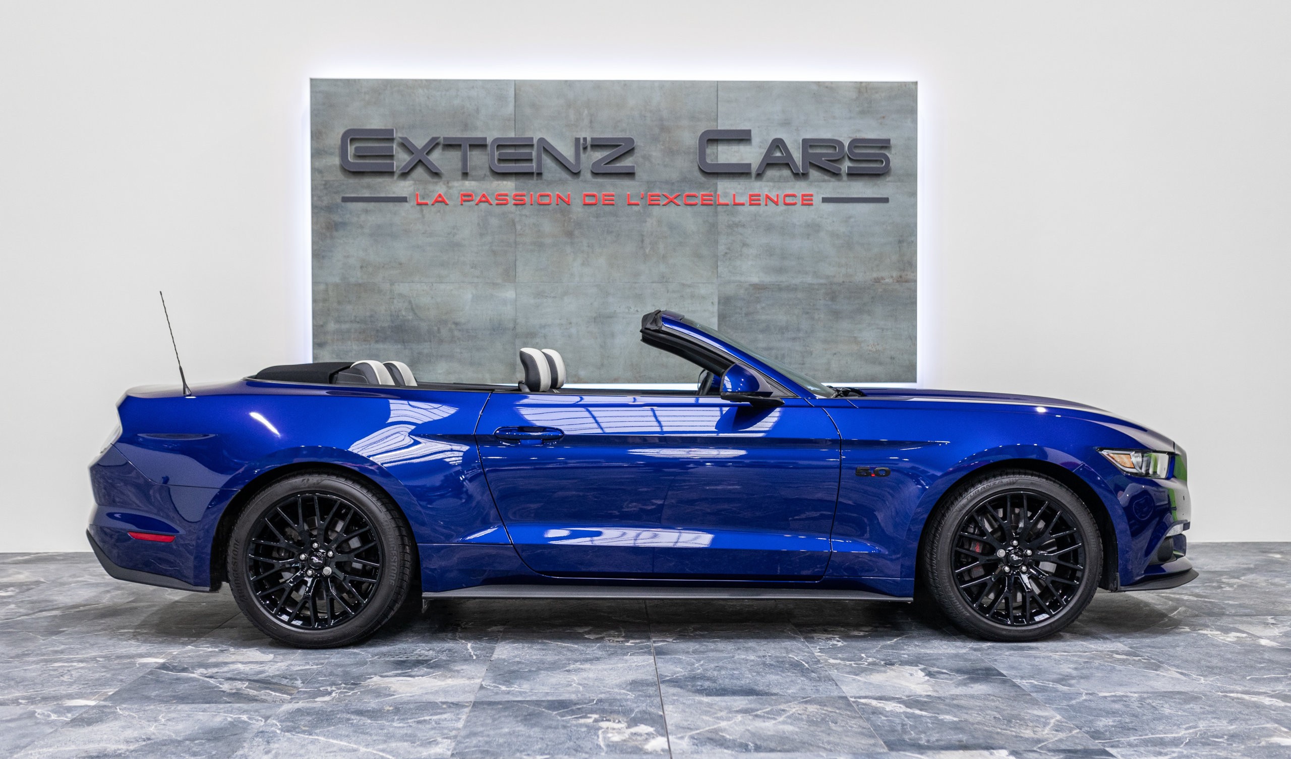 EXTEN’Z CARS vous propose cette séduisante Ford Mustang GT Cabriolet avec son fantastique V8 5.0 Atmosphérique développant 421 CV (33cv), mise en circulation le 20/07/2016 de couleur Bleu Deep Impact. Cette MUSTANG distille beaucoup de plaisir à ses occupants tout en offrant un rapport prix/plaisir. En particulier sa silhouette bodybuildée, la position de conduite est parfaite et on peut admirer devant soi le long capot bosselé. Prendre les commandes d’un tel engin, aussi imposant par le gabarit que par son histoire, génère des sensations extraordinaires.