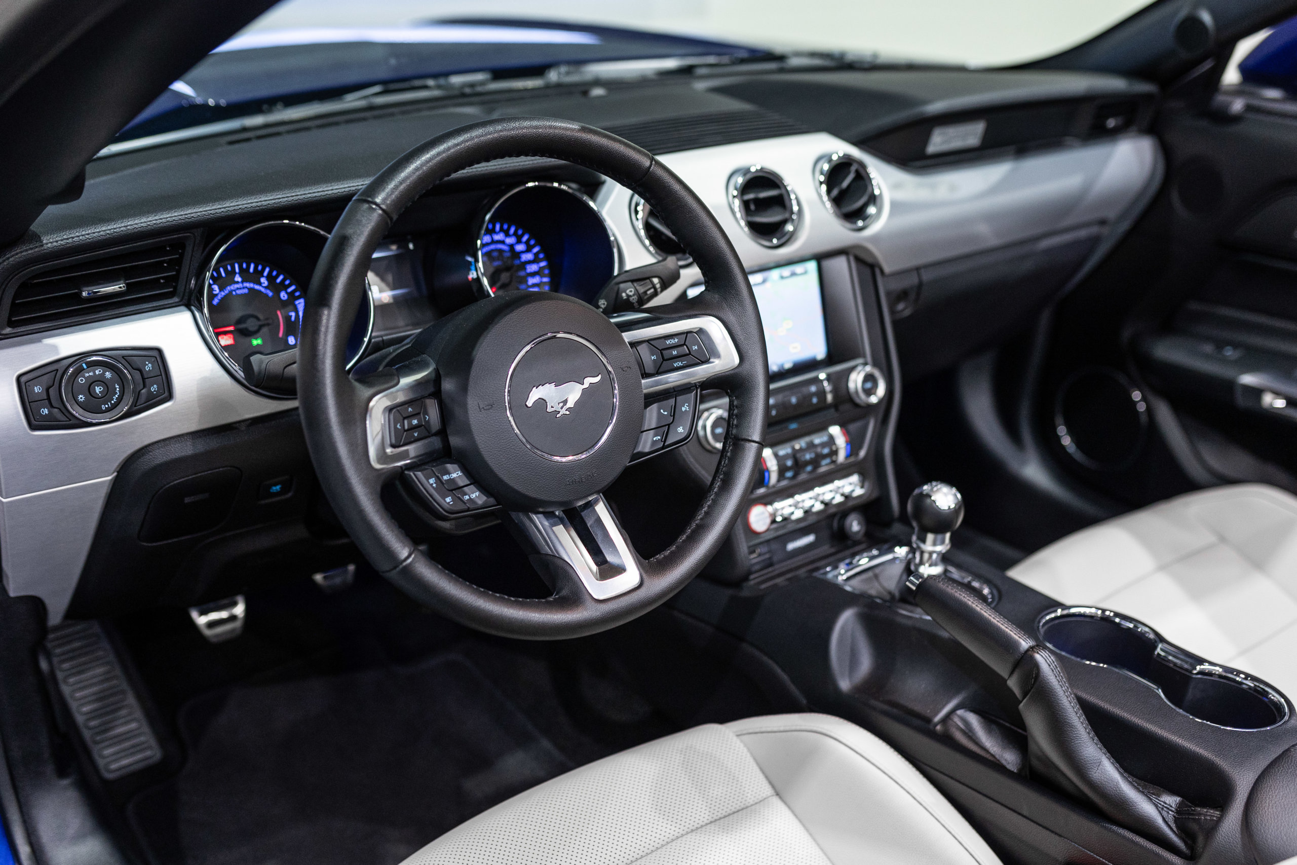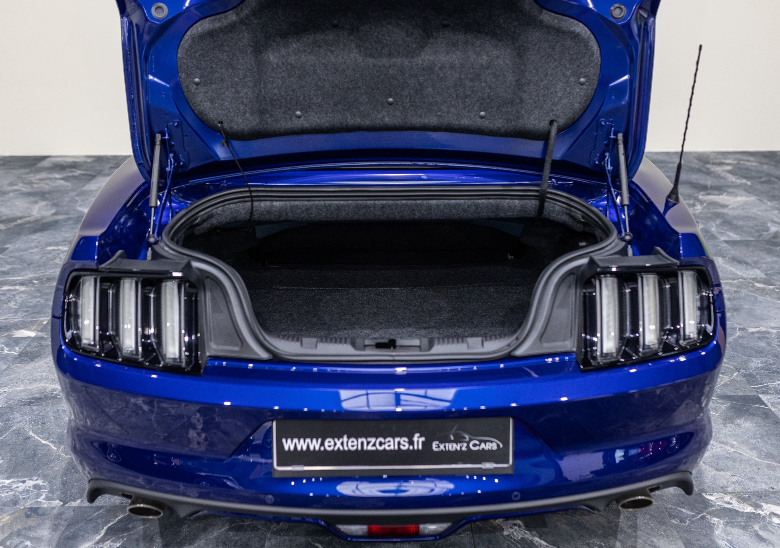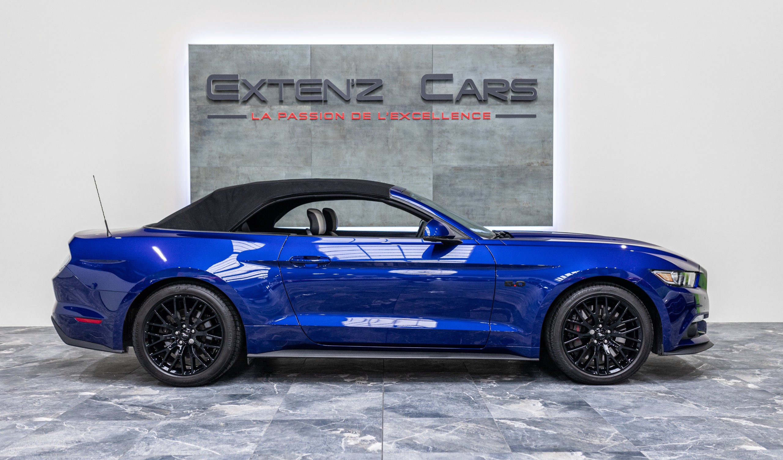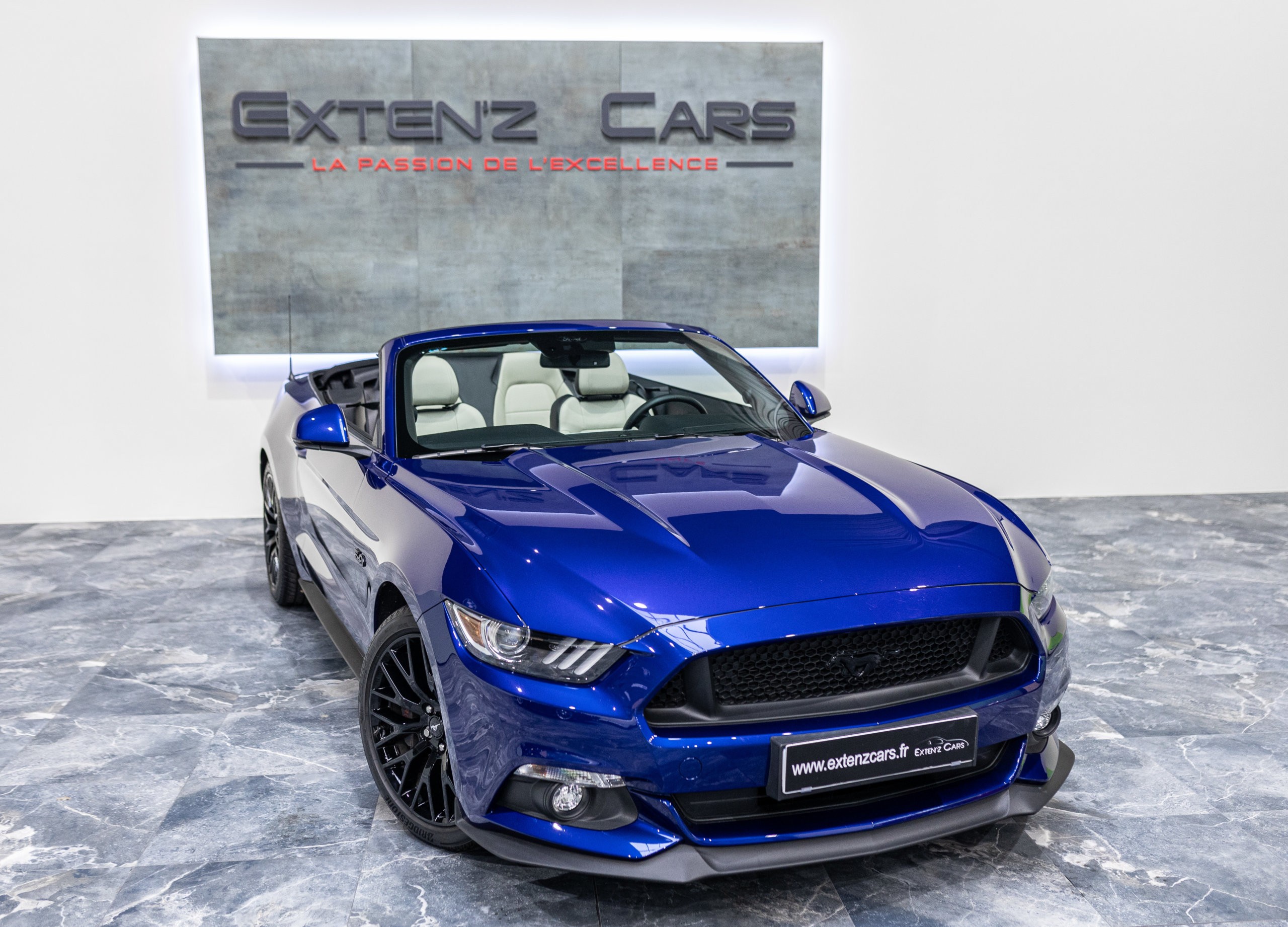 EXTEN’Z CARS vous propose cette séduisante Ford Mustang GT Cabriolet avec son fantastique V8 5.0 Atmosphérique développant 421 CV (33cv), mise en circulation le 20/07/2016 de couleur Bleu Deep Impact. Cette MUSTANG distille beaucoup de plaisir à ses occupants tout en offrant un rapport prix/plaisir. En particulier sa silhouette bodybuildée, la position de conduite est parfaite et on peut admirer devant soi le long capot bosselé. Prendre les commandes d’un tel engin, aussi imposant par le gabarit que par son histoire, génère des sensations extraordinaires.