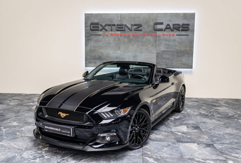 EXTEN’Z CARS vous propose cette séduisante Ford Mustang GT Convertible avec son fantastique V8 5.0 Atmosphérique développant 421 CV (33cv), mise en circulation le 16/01/2017 de couleur Noir Mica. Associée à une boite à vitesse automatique, Cette MUSTANG distille beaucoup de plaisir à ses occupants tout en offrant un rapport prix/plaisir. En particulier sa silhouette bodybuildée, la position de conduite est parfaite et on peut admirer devant soi le long capot bosselé. Prendre les commandes d’un tel engin, aussi imposant par le gabarit que par son histoire, génère des sensations extraordinaires.