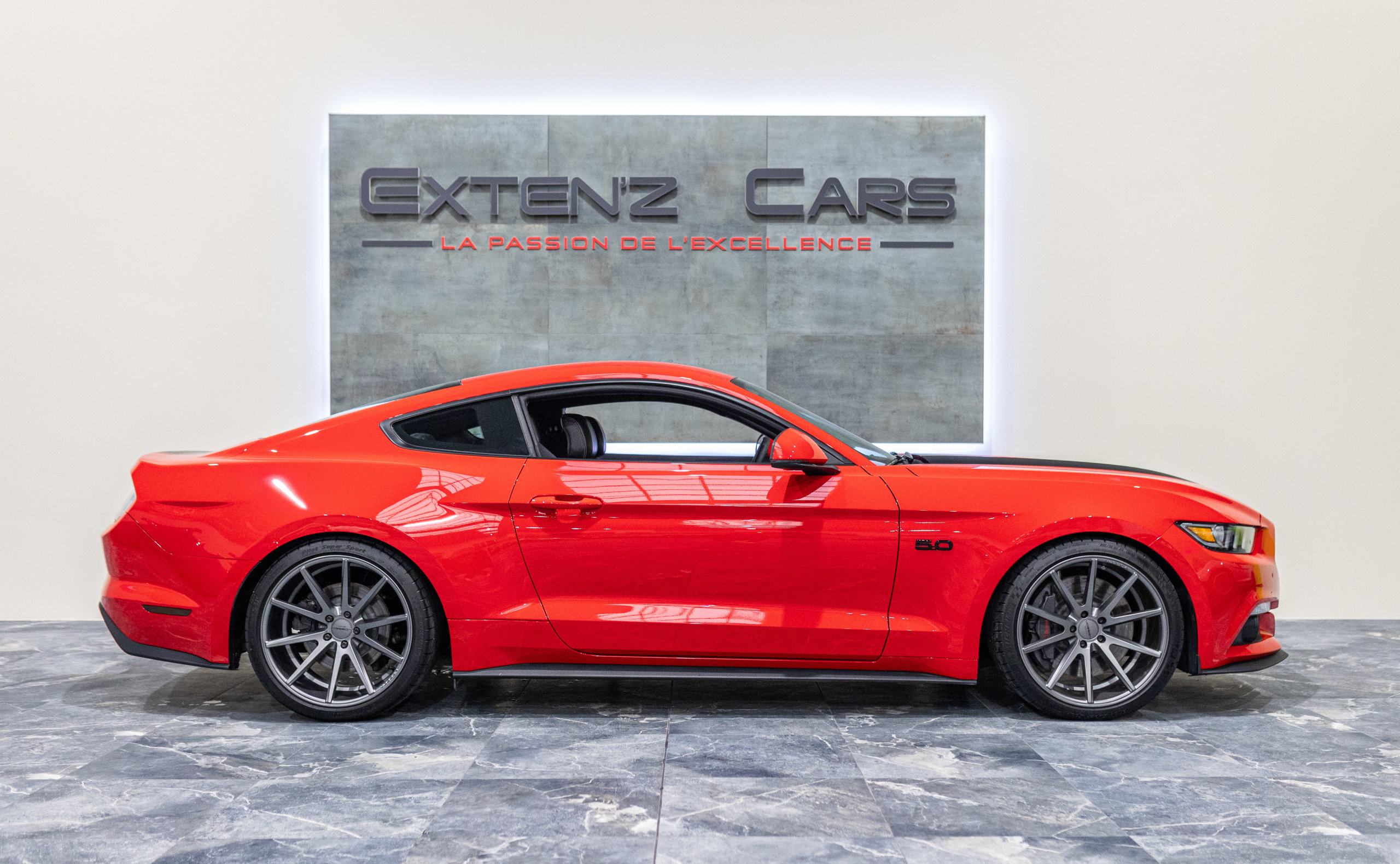 EXTEN’Z CARS vous propose cette séduisante MUSTANG associée à une configuration Exceptionnel Ford Mustang GT Fastback avec son fantastique V8 5.0 Atmosphérique développant 421 CV (33cv), mise en circulation le 16/07/2015 de couleur Rouge Racing. Cette MUSTANG distille beaucoup de plaisir à ses occupants tout en offrant un rapport prix/plaisir. En particulier sa silhouette bodybuildée, la position de conduite est parfaite et on peut admirer devant soi le long capot bosselé. Prendre les commandes d’un tel engin, aussi imposant par le gabarit que par son histoire, génère des sensations extraordinaires.