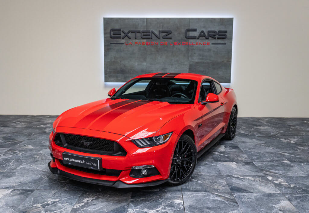 EXTEN’Z CARS vous propose cette séduisante MUSTANG associée à une configuration Exceptionnel Ford Mustang GT Fastback avec son fantastique V8 5.0 Atmosphérique développant 421CV (33cv), mise en circulation le 12/01/2016 de couleur Rouge Racing. Cette MUSTANG distille beaucoup de plaisir à ses occupants tout en offrant un rapport prix/plaisir. En particulier sa silhouette bodybuildée, la position de conduite est parfaite et on peut admirer devant soi le long capot bosselé. Prendre les commandes d’un tel engin, aussi imposant par le gabarit que par son histoire, génère des sensations extraordinaires.
