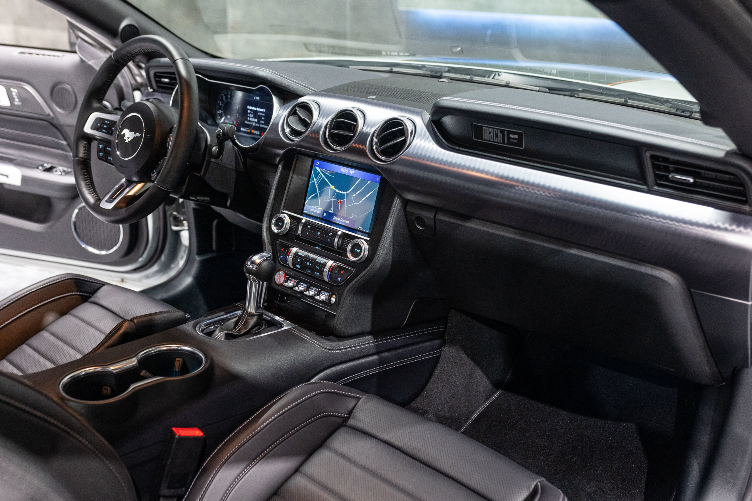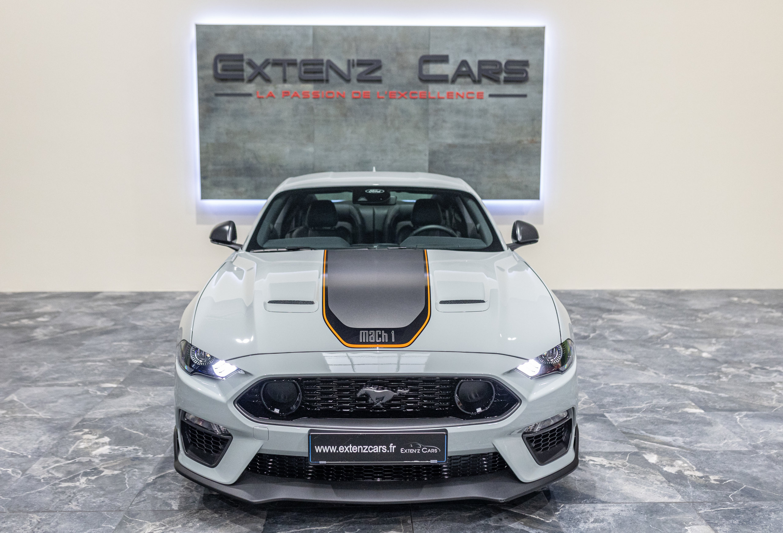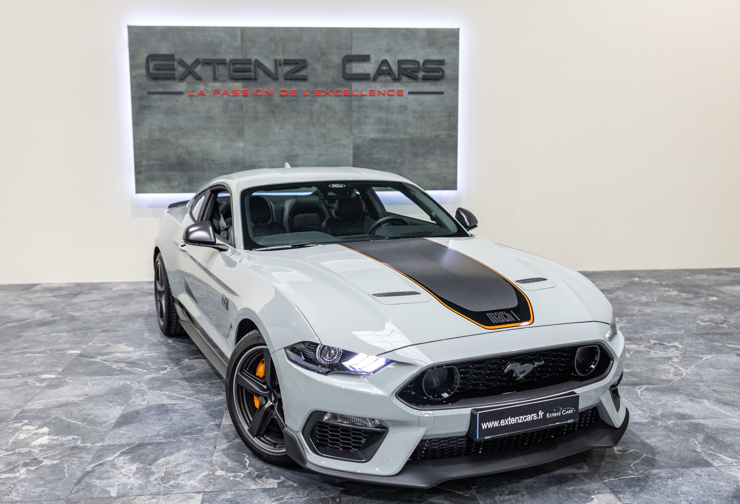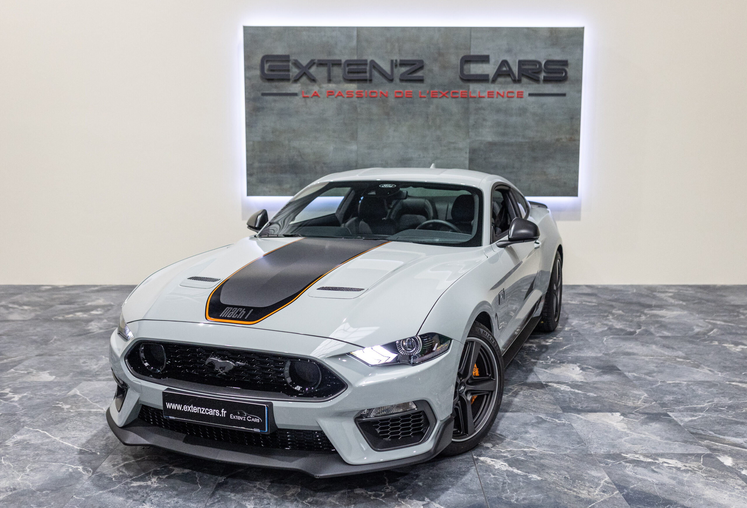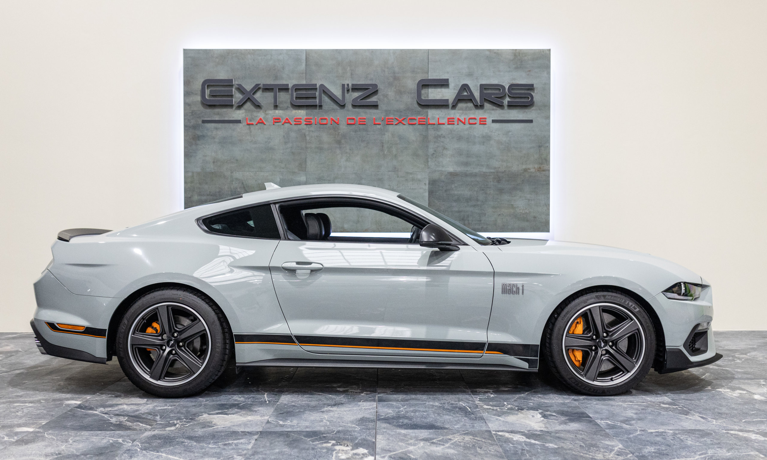 EXTEN’Z CARS vous propose cette séduisante et rare MUSTANG Série Limitée numérotée N2415. Ford Mustang MACH1 avec son fantastique V8 5.0 Atmosphérique développant 460 CV (35cv), mise en circulation le 12/10/2023 de couleur Fighter Jet Grey couplé a une boite de vitesse automatique à 10 rapports. Avec sa large bande centrale noir réhaussée d’un liseret Orange et ses deux grosses doubles sorties d’échappement, cette Mach 1 annonce clairement son tempérament sportif. Sur les côtés et l’arrière, l’inscription < Mach 1 > dans la police historique fait hommage à la version sortie en 1969. Mais attention, il ne s’agit pas seulement de quelques stickers et artifices extérieurs ajoutés, puisque sous le capot, le berceau moteur et les bras de suspension sont repris des Shelby GT350 et GT500. La Ford Mustang Mach 1 se distingue du modèle de base par un comportement routier plus précis et un look ravageur. Cette série limitée Mach 1, rend hommage à l’esprit de vitesse, une vitesse d’avion de chasse, argument marketing déjà évoqué en 1969 sur le premier modèle ainsi badgé. 50 ans d’évolution technologiques plus tard, la Mach 1 incarne aujourd’hui la Ford Mustang la plus performante vendue officiellement sur notre territoire.