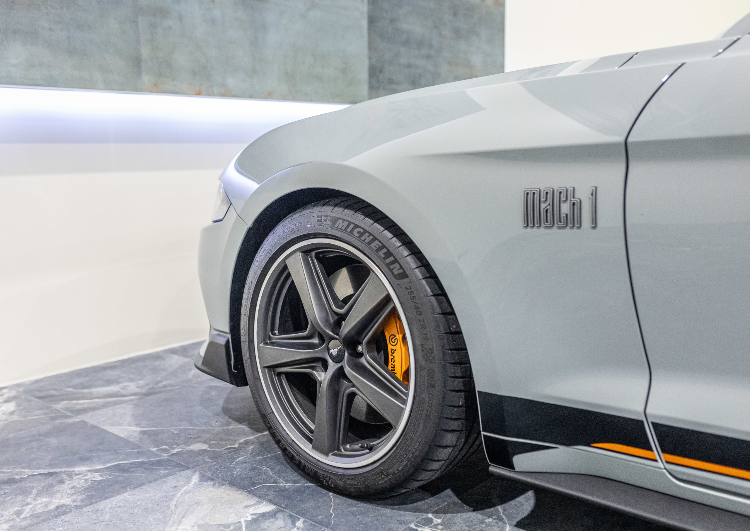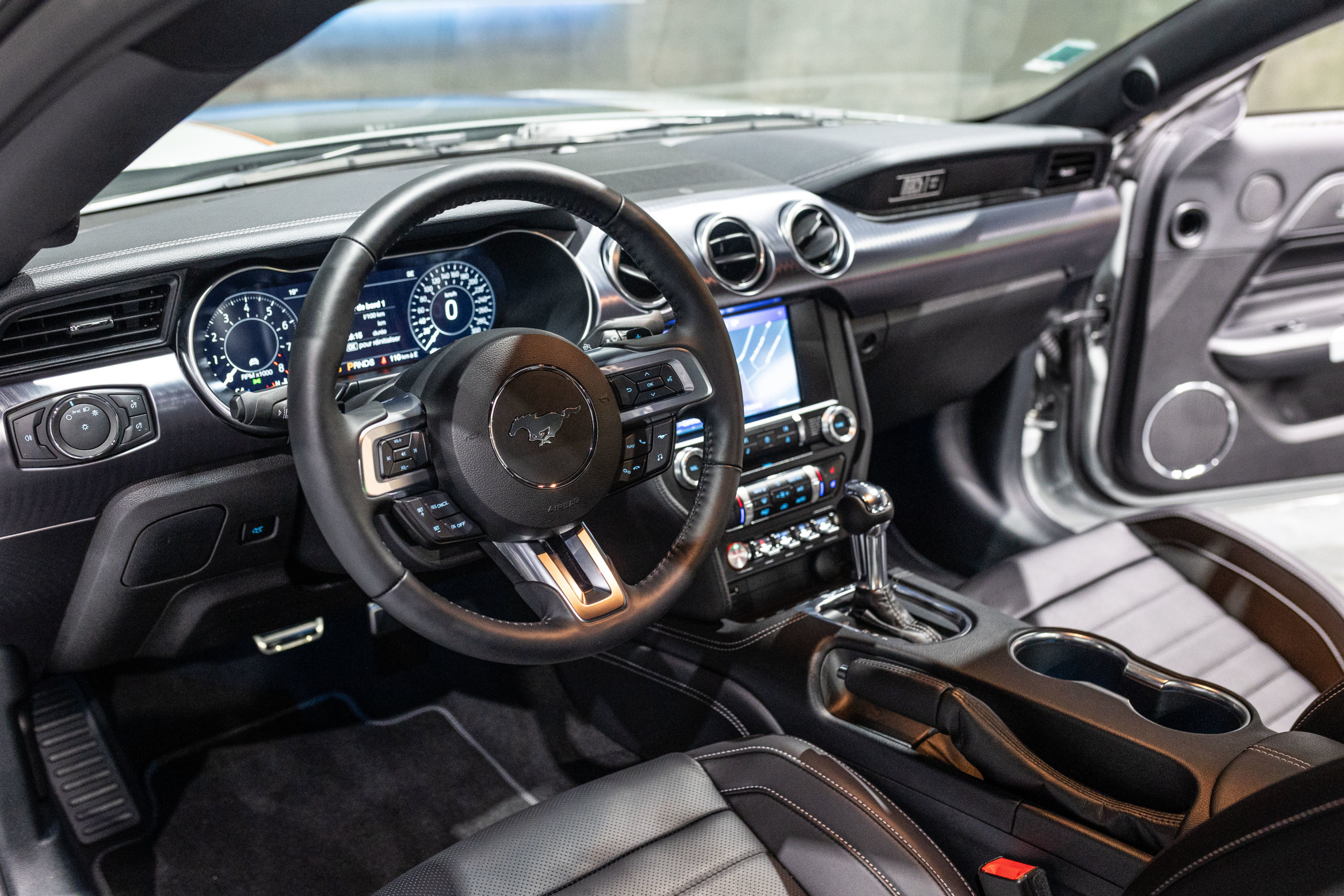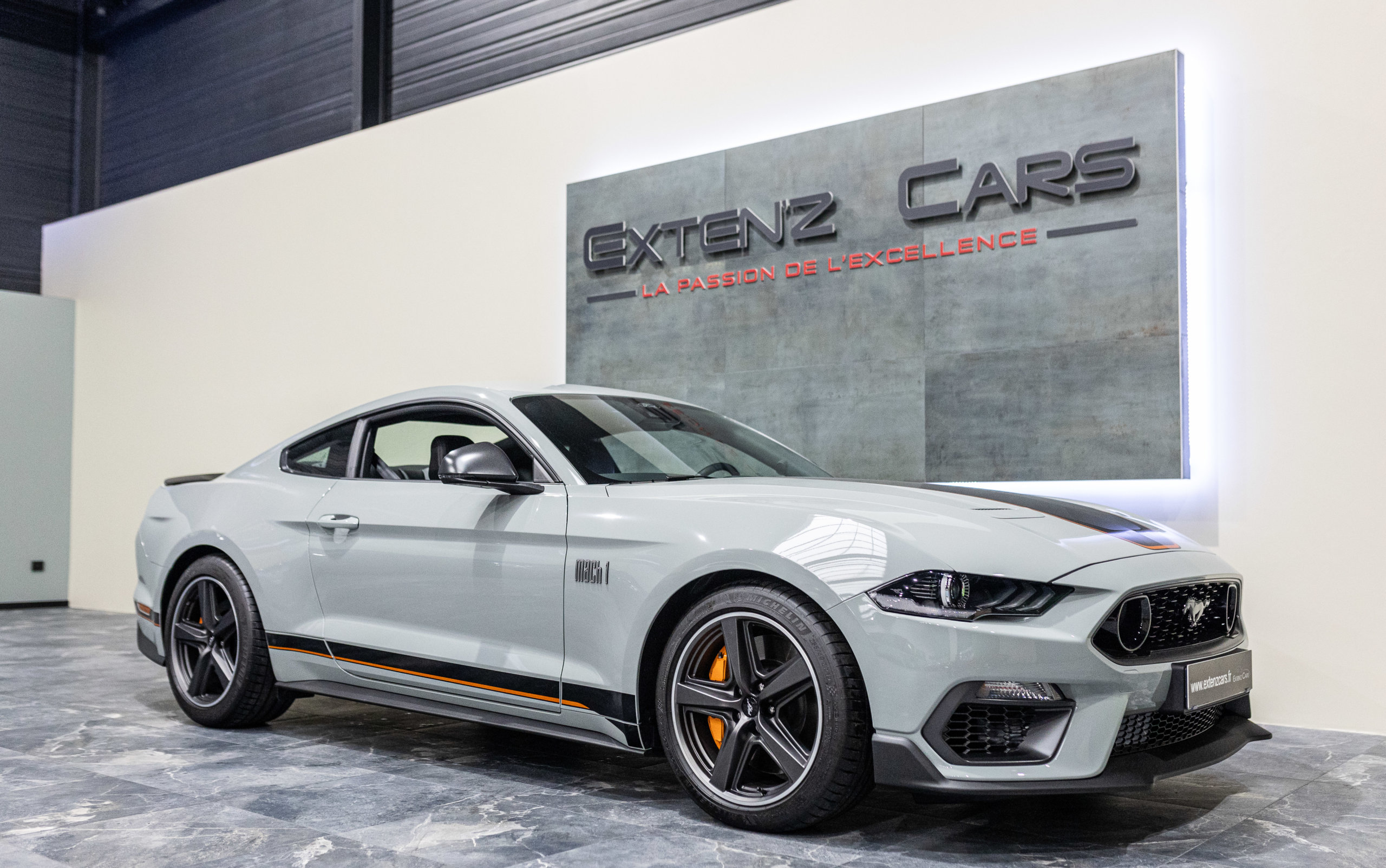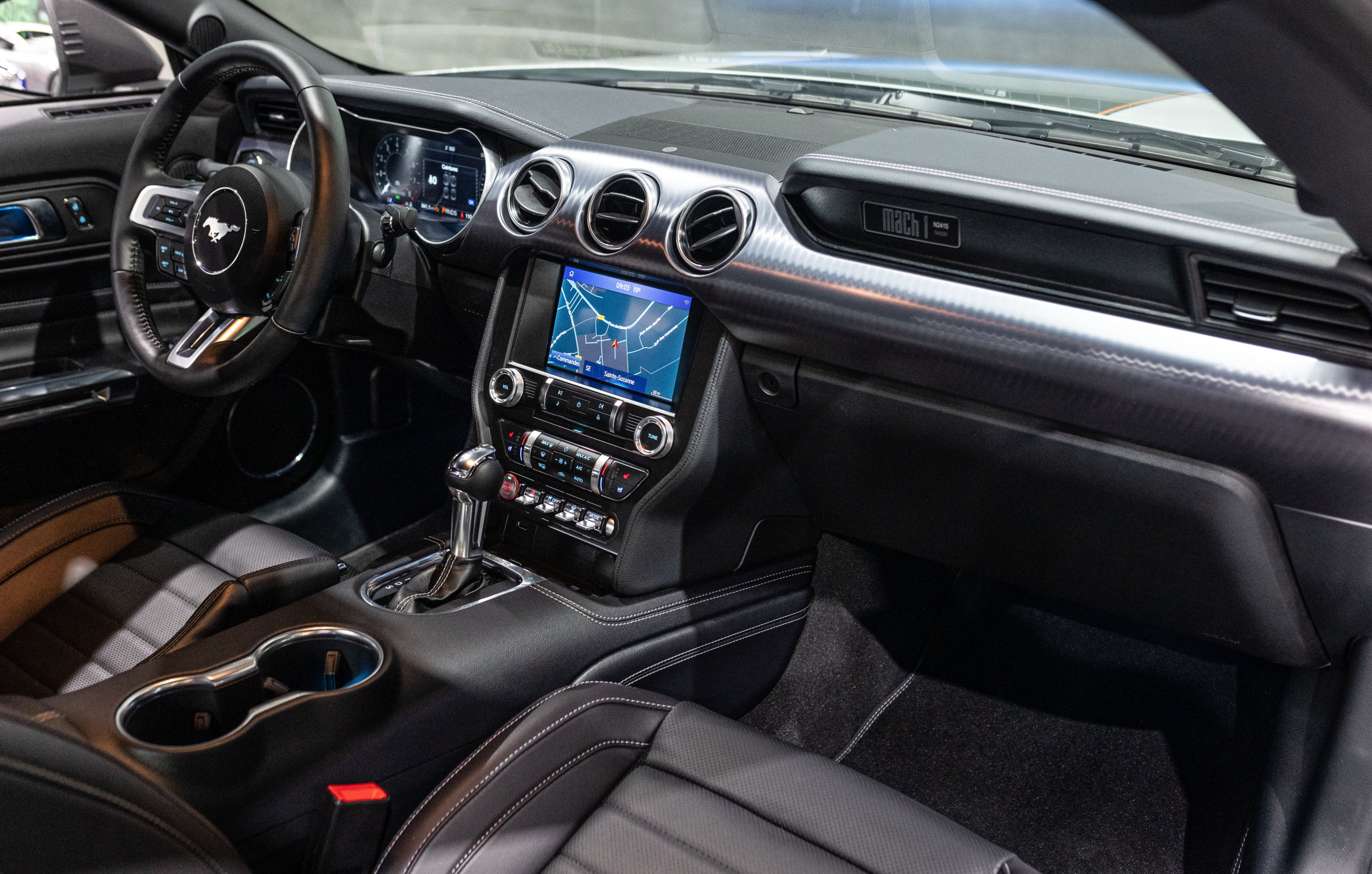 EXTEN’Z CARS vous propose cette séduisante et rare MUSTANG Série Limitée numérotée N2415. Ford Mustang MACH1 avec son fantastique V8 5.0 Atmosphérique développant 460 CV (35cv), mise en circulation le 12/10/2023 de couleur Fighter Jet Grey couplé a une boite de vitesse automatique à 10 rapports. Avec sa large bande centrale noir réhaussée d’un liseret Orange et ses deux grosses doubles sorties d’échappement, cette Mach 1 annonce clairement son tempérament sportif. Sur les côtés et l’arrière, l’inscription < Mach 1 > dans la police historique fait hommage à la version sortie en 1969. Mais attention, il ne s’agit pas seulement de quelques stickers et artifices extérieurs ajoutés, puisque sous le capot, le berceau moteur et les bras de suspension sont repris des Shelby GT350 et GT500. La Ford Mustang Mach 1 se distingue du modèle de base par un comportement routier plus précis et un look ravageur. Cette série limitée Mach 1, rend hommage à l’esprit de vitesse, une vitesse d’avion de chasse, argument marketing déjà évoqué en 1969 sur le premier modèle ainsi badgé. 50 ans d’évolution technologiques plus tard, la Mach 1 incarne aujourd’hui la Ford Mustang la plus performante vendue officiellement sur notre territoire.