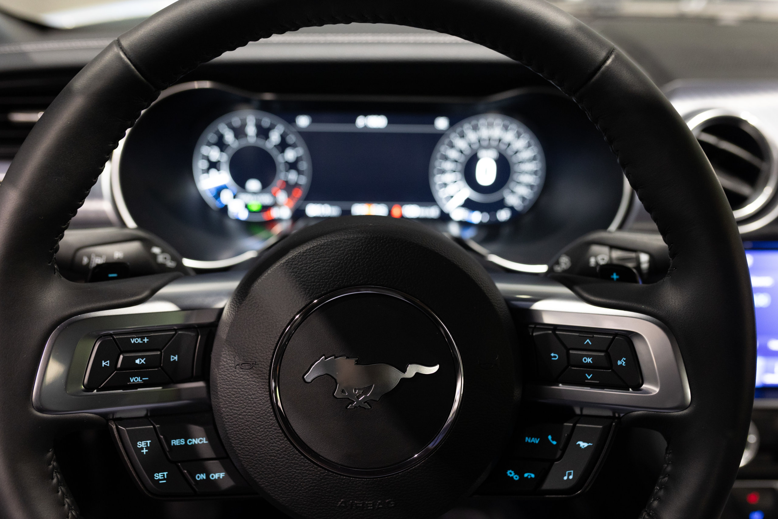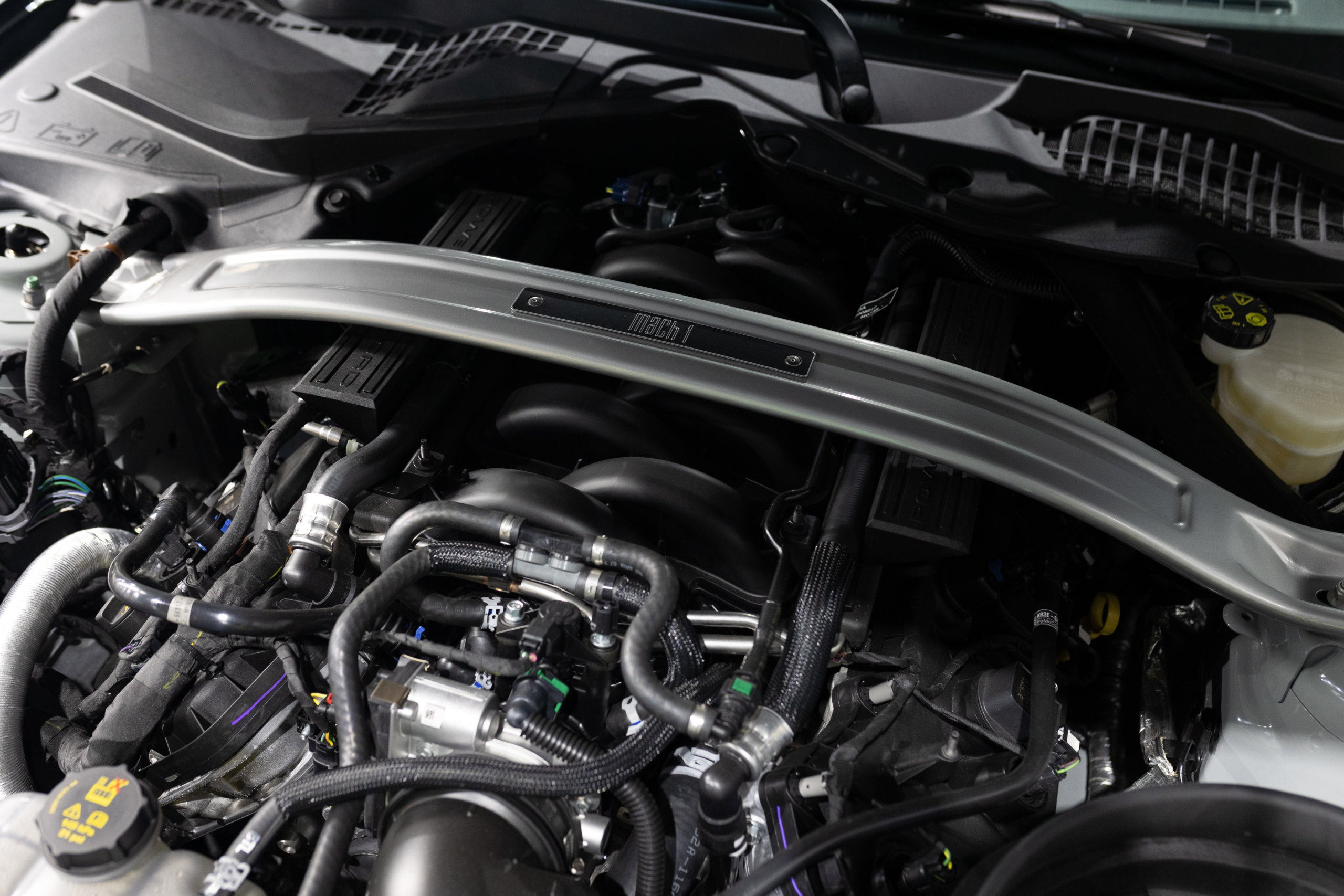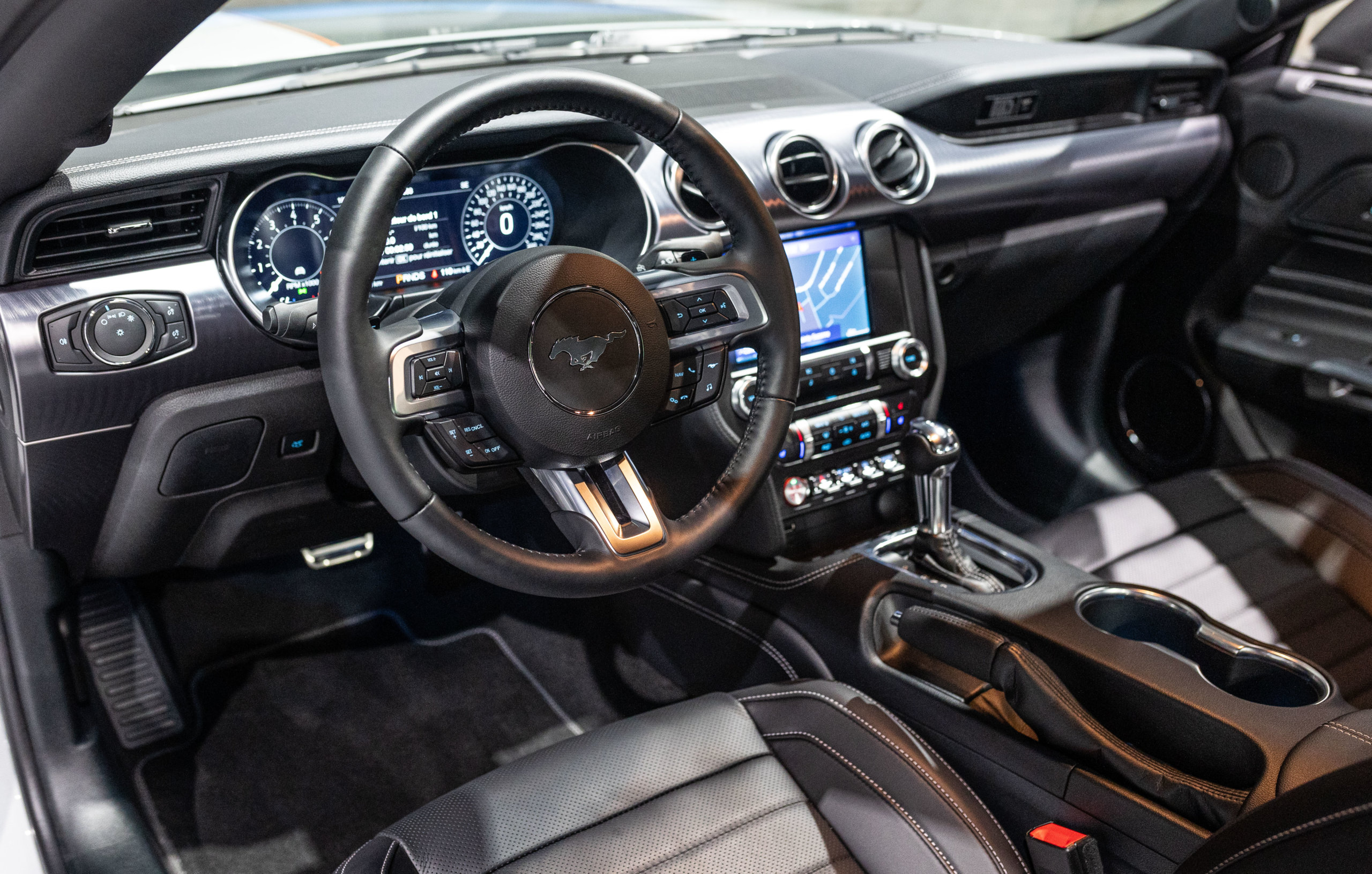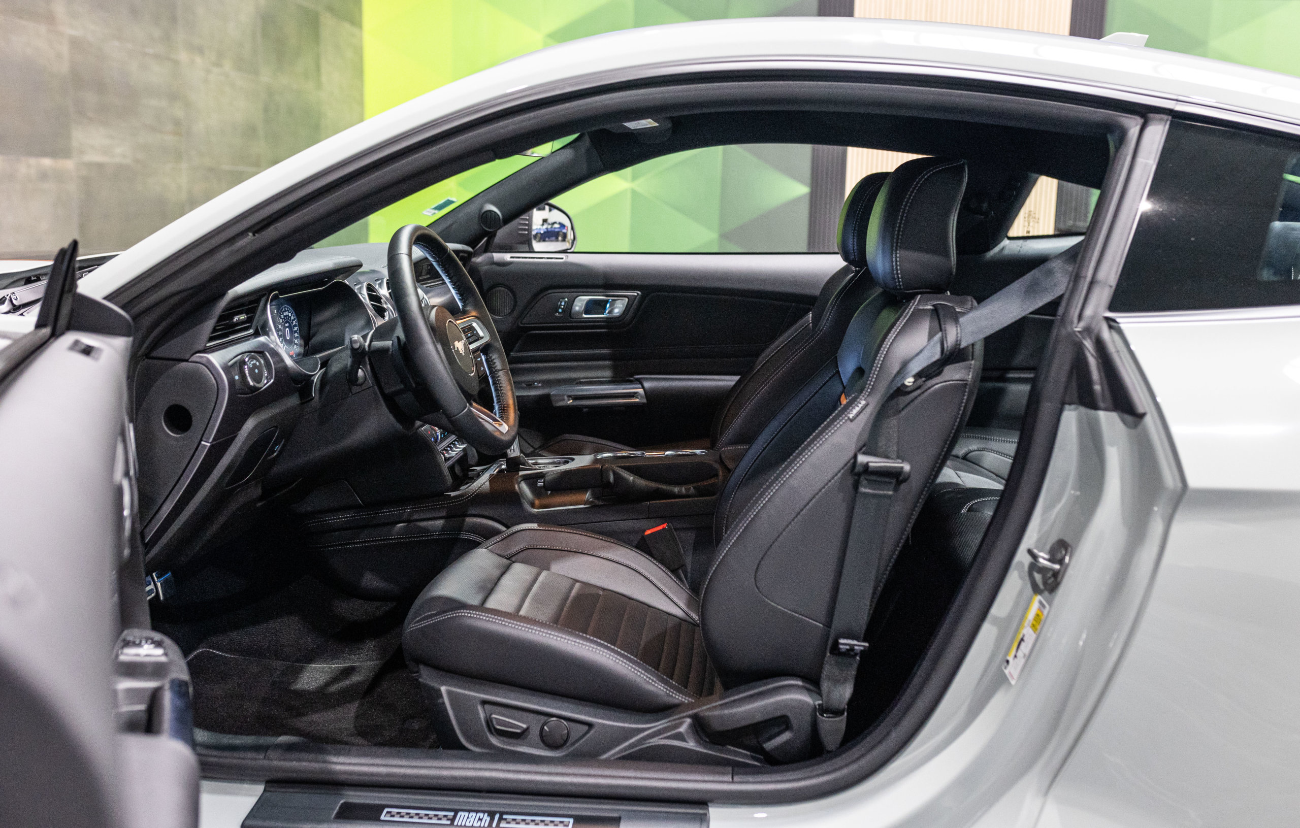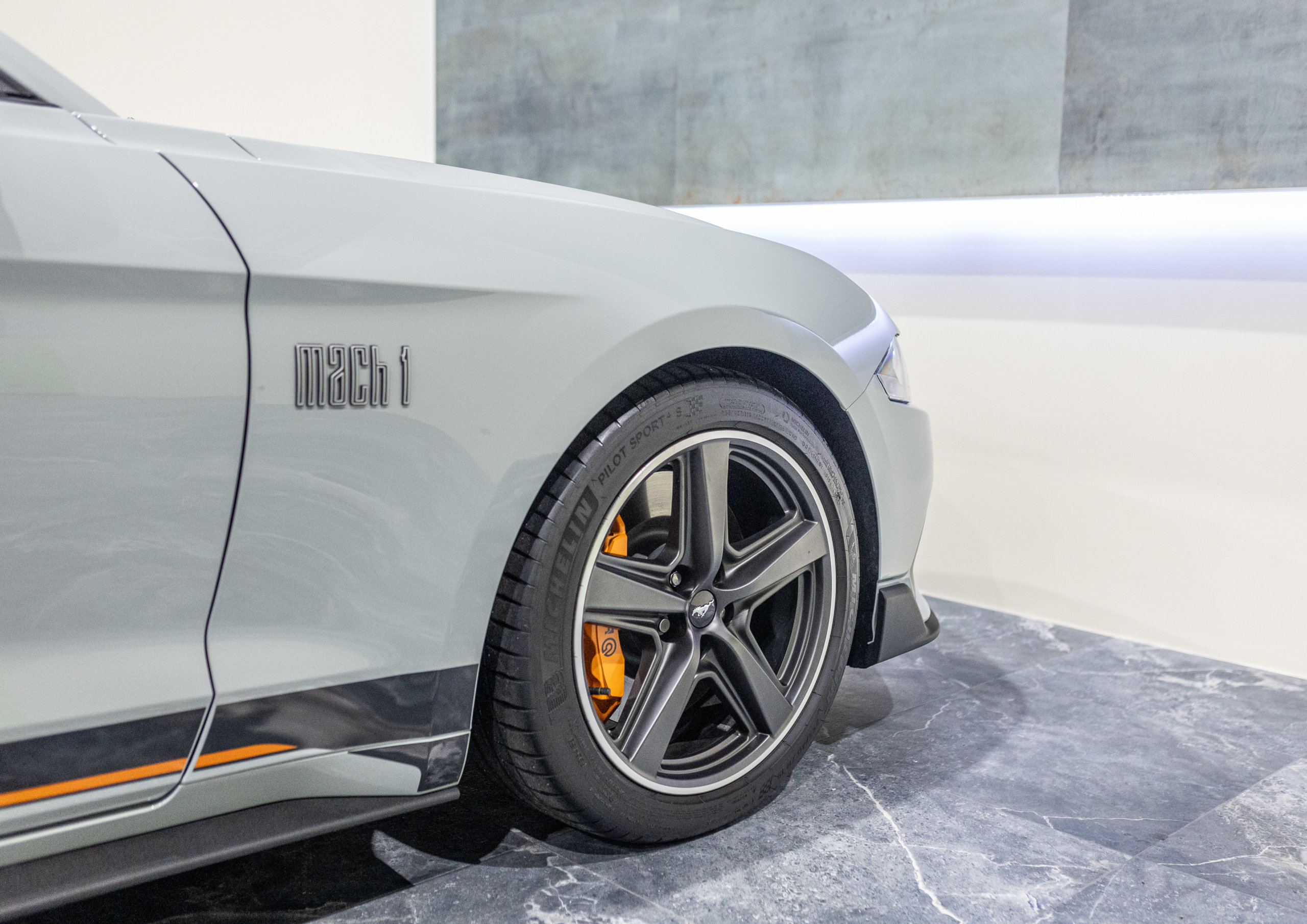 EXTEN’Z CARS vous propose cette séduisante et rare MUSTANG Série Limitée numérotée N2415. Ford Mustang MACH1 avec son fantastique V8 5.0 Atmosphérique développant 460 CV (35cv), mise en circulation le 12/10/2023 de couleur Fighter Jet Grey couplé a une boite de vitesse automatique à 10 rapports. Avec sa large bande centrale noir réhaussée d’un liseret Orange et ses deux grosses doubles sorties d’échappement, cette Mach 1 annonce clairement son tempérament sportif. Sur les côtés et l’arrière, l’inscription < Mach 1 > dans la police historique fait hommage à la version sortie en 1969. Mais attention, il ne s’agit pas seulement de quelques stickers et artifices extérieurs ajoutés, puisque sous le capot, le berceau moteur et les bras de suspension sont repris des Shelby GT350 et GT500. La Ford Mustang Mach 1 se distingue du modèle de base par un comportement routier plus précis et un look ravageur. Cette série limitée Mach 1, rend hommage à l’esprit de vitesse, une vitesse d’avion de chasse, argument marketing déjà évoqué en 1969 sur le premier modèle ainsi badgé. 50 ans d’évolution technologiques plus tard, la Mach 1 incarne aujourd’hui la Ford Mustang la plus performante vendue officiellement sur notre territoire.