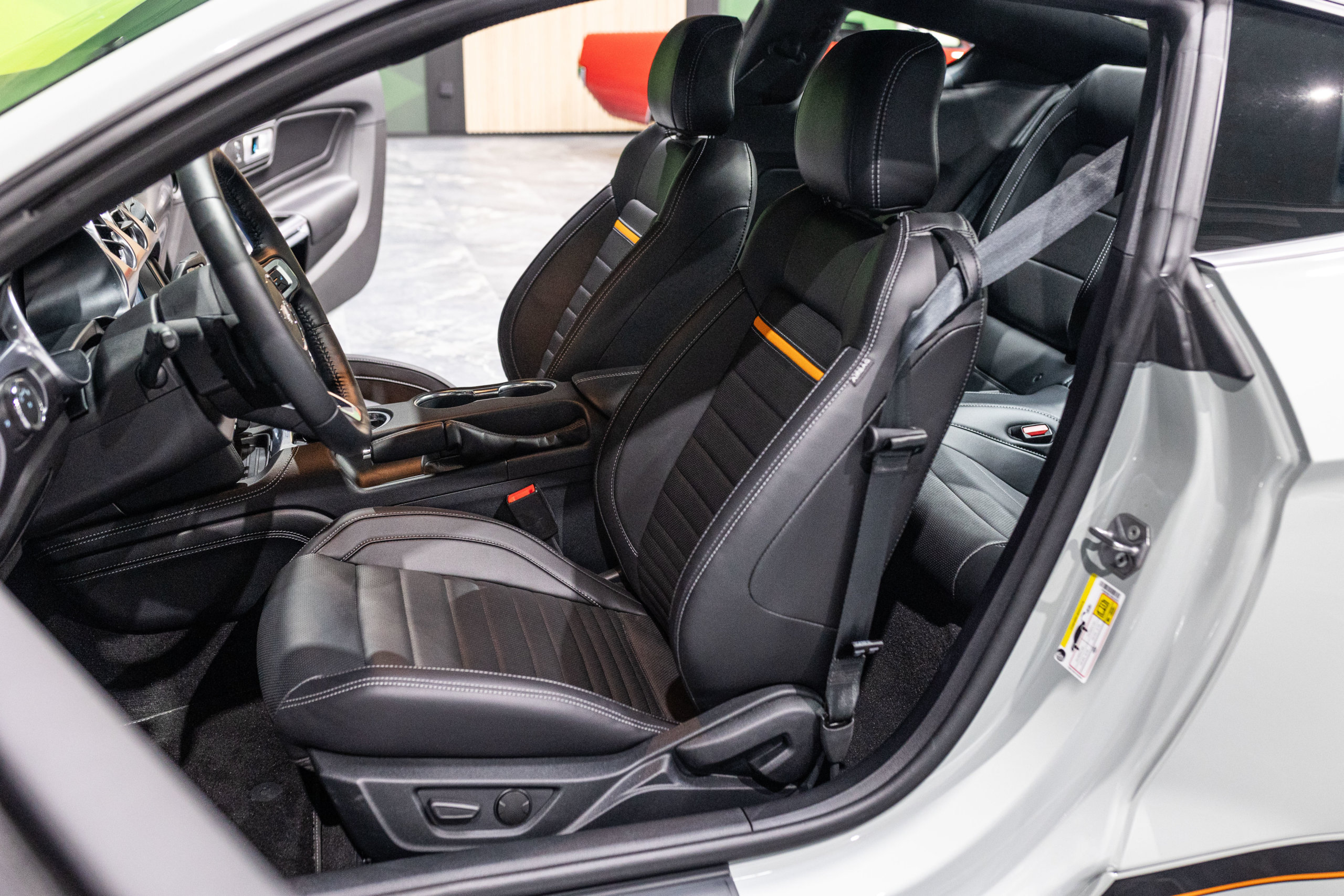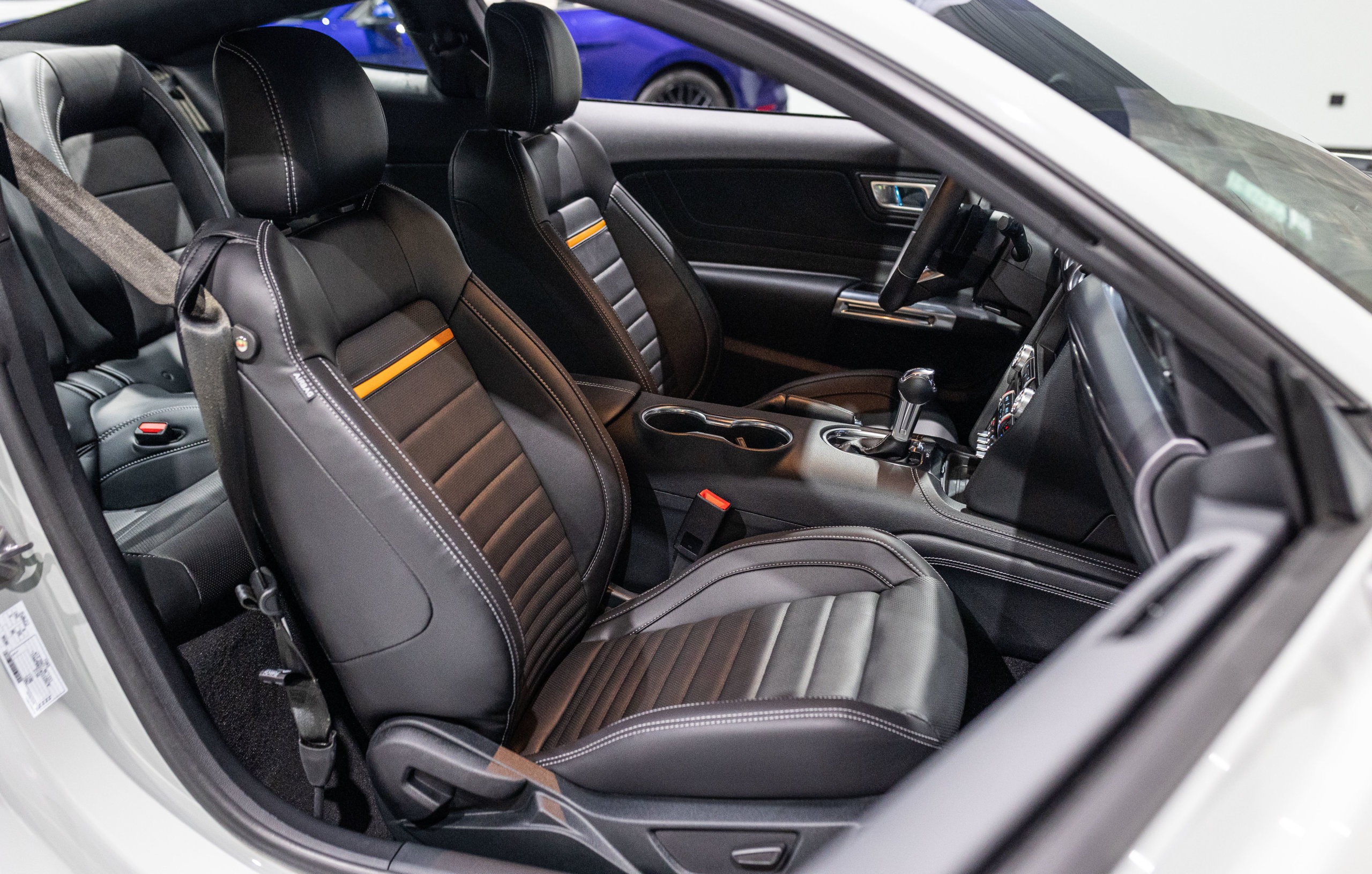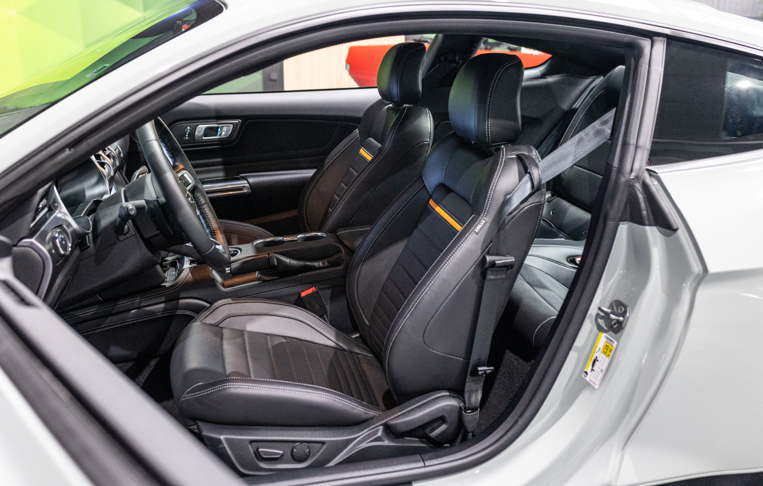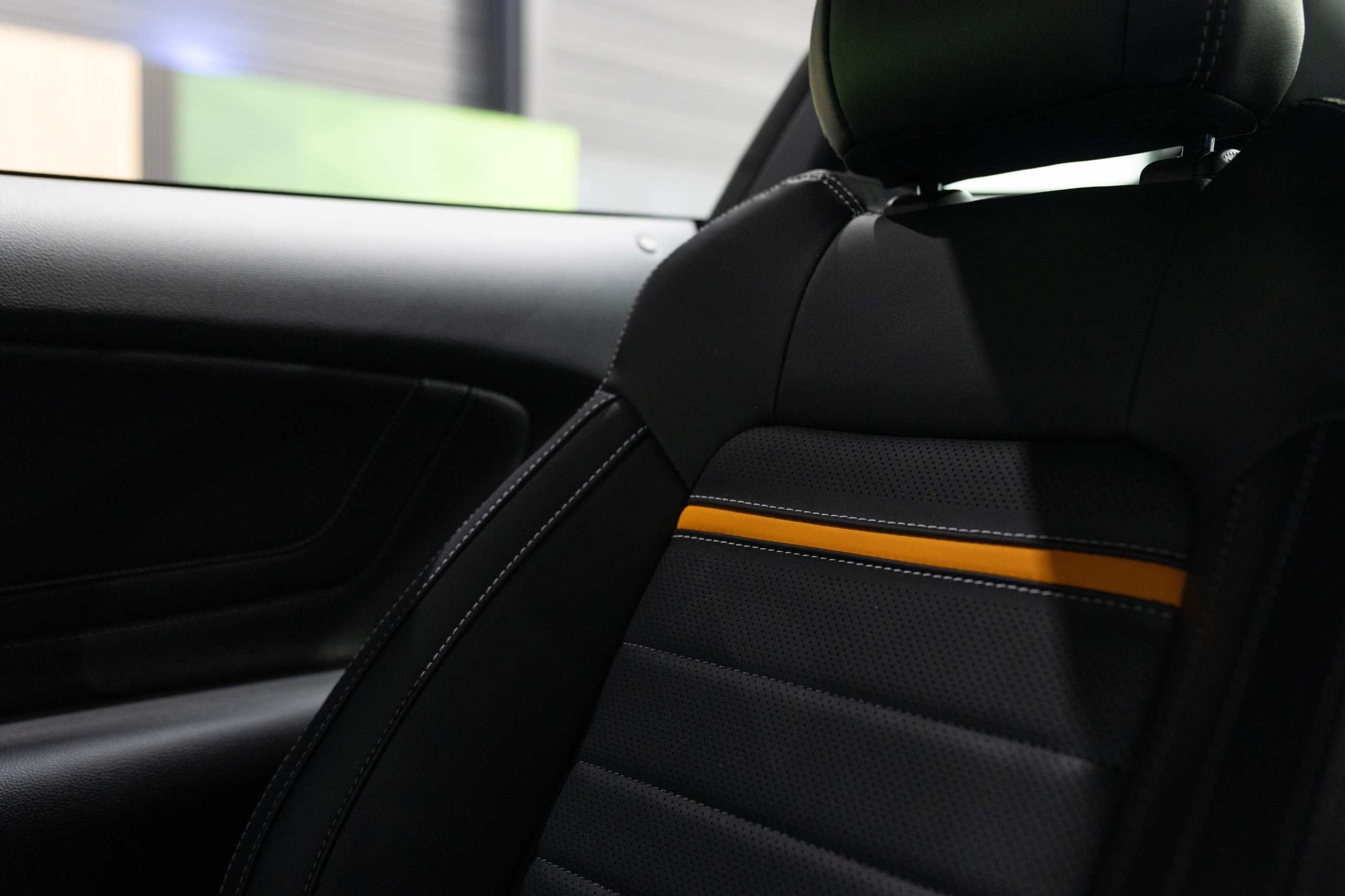 – Sellerie Cuir Noir avec Surpiqure Blanche et Liseret Orange