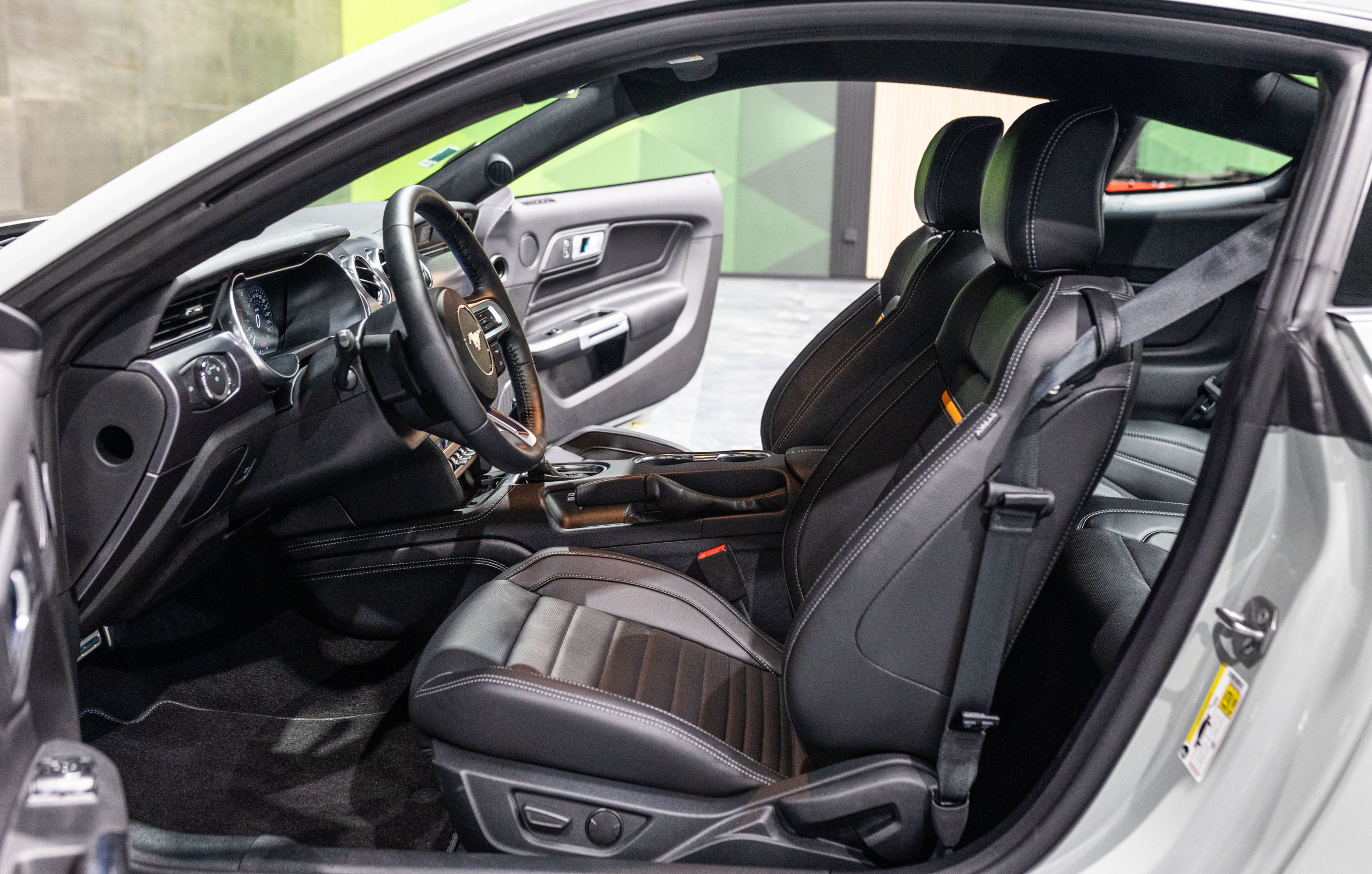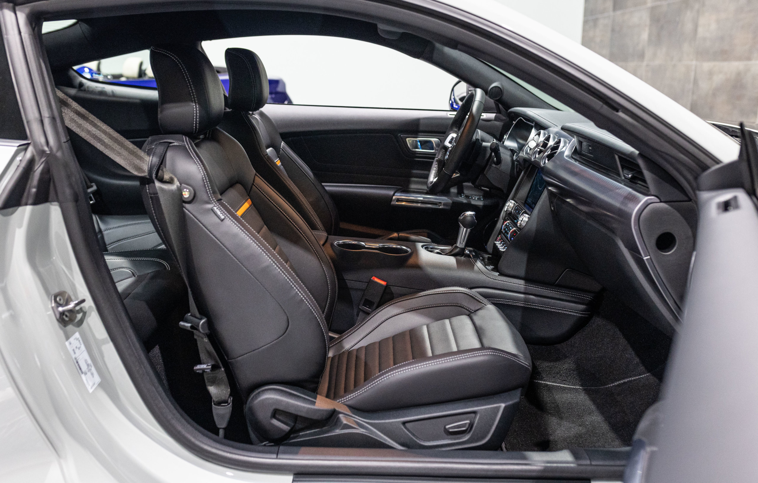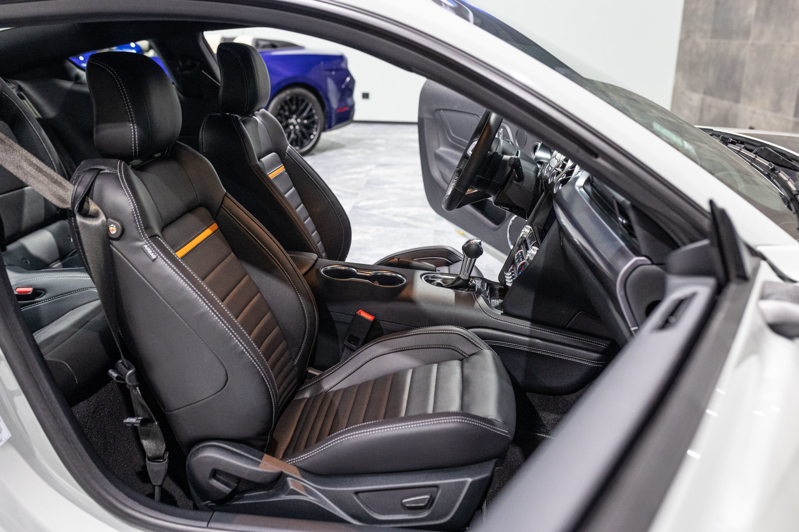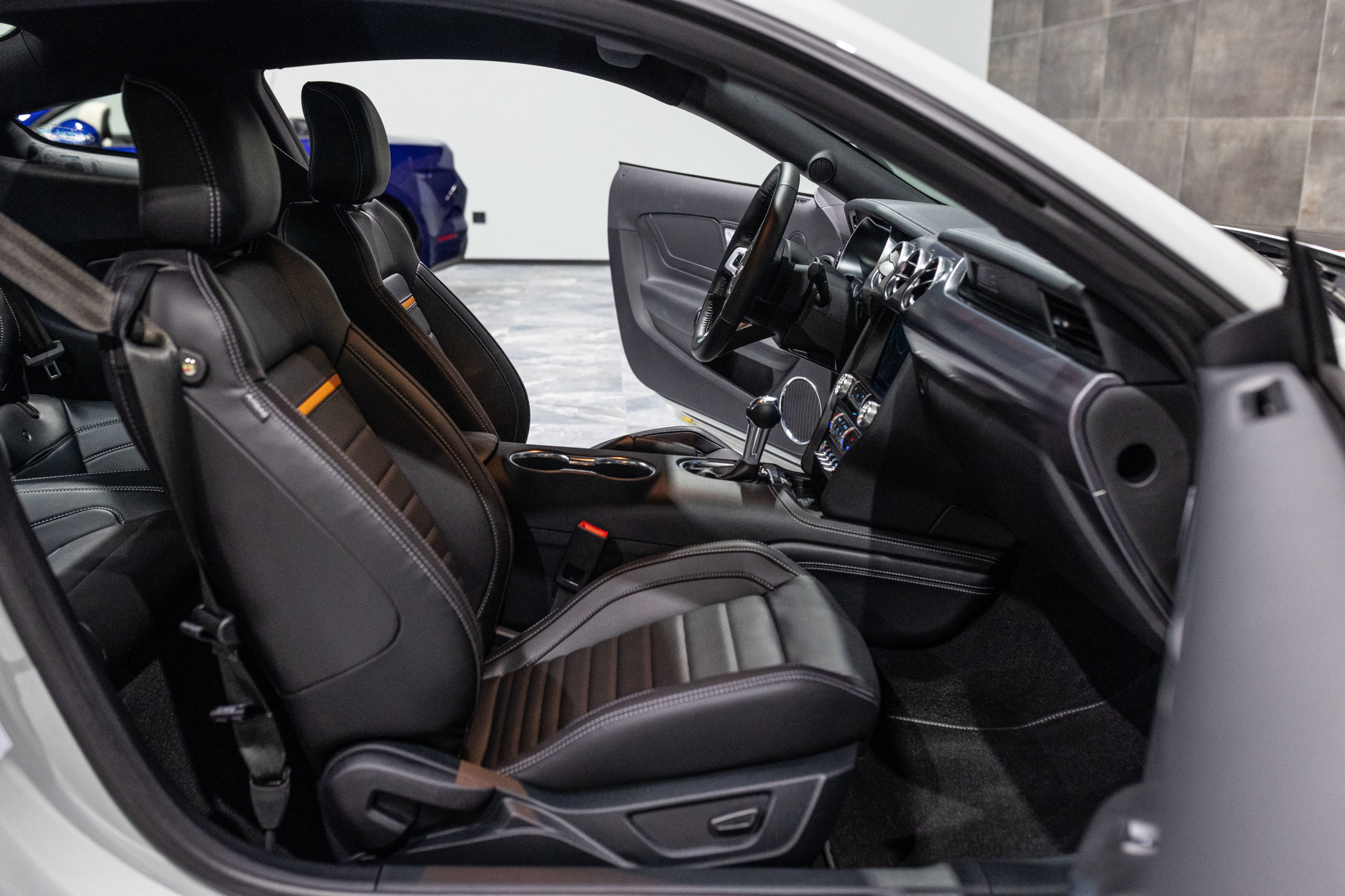 – Sellerie Cuir Noir avec Surpiqure Blanche et Liseret Orange