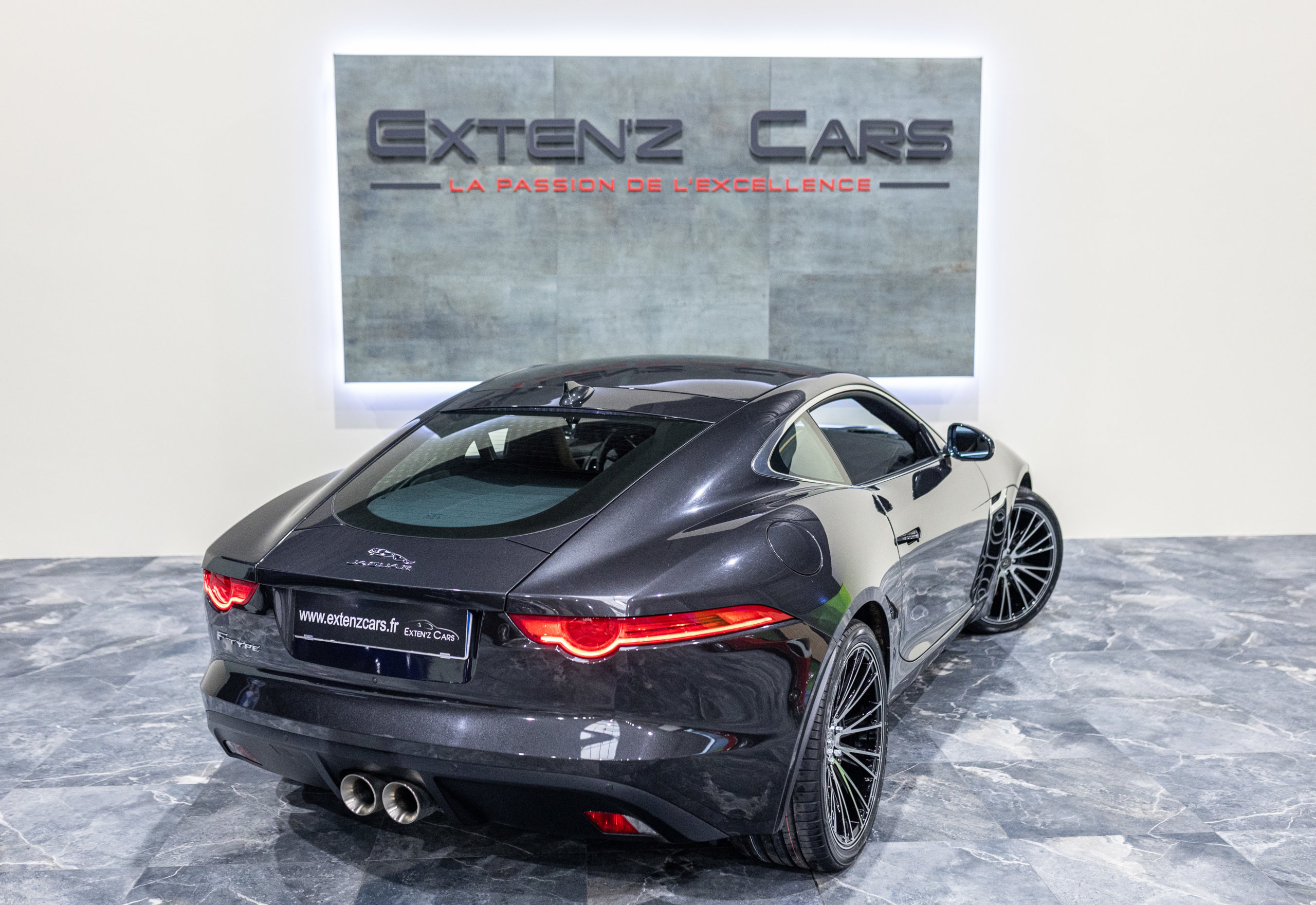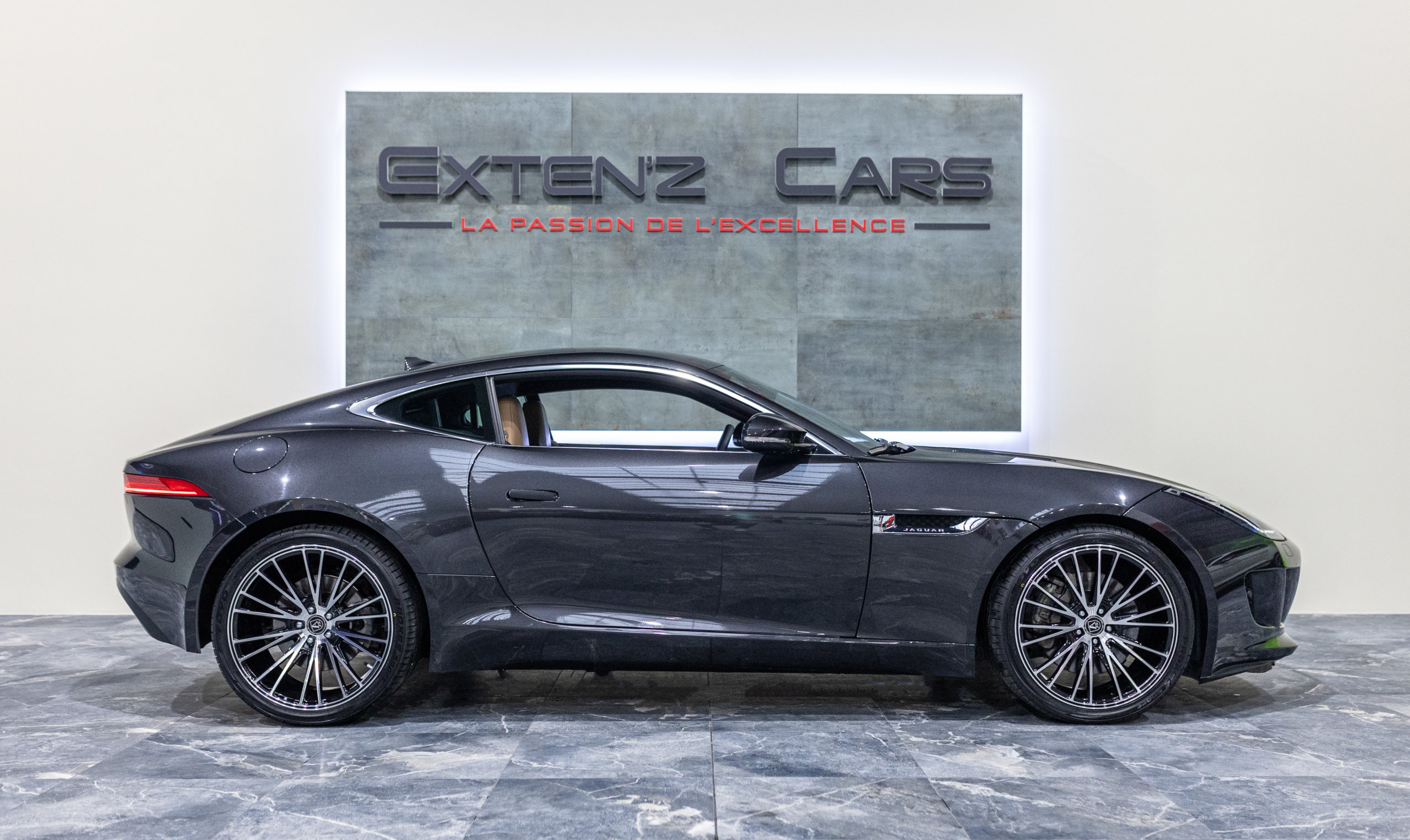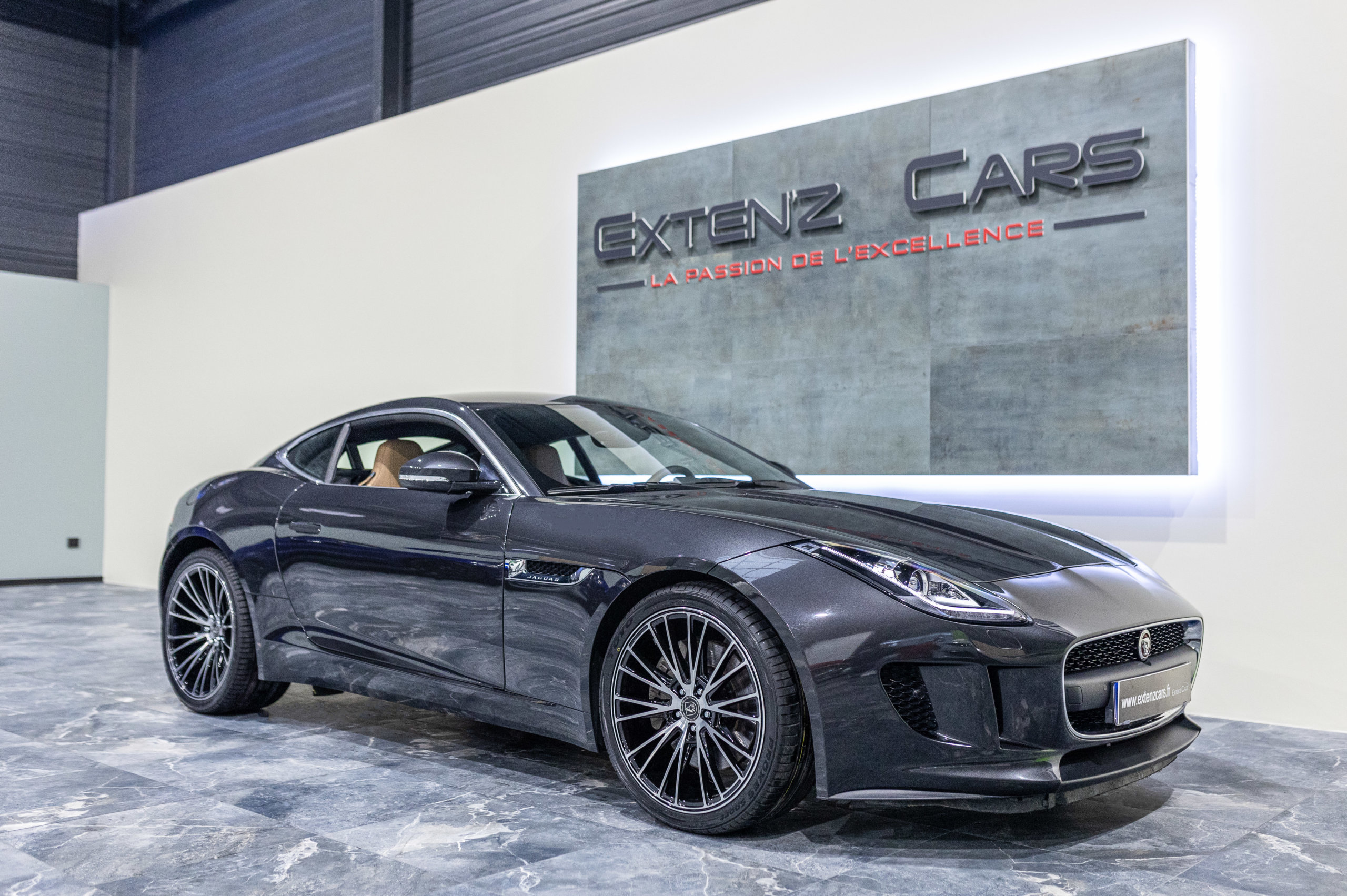 EXTEN’Z CARS vous propose cette magnifique JAGUAR F-Type Coupé 3.0 V6 développant 340 CV (23cv) mise en circulation le 12/11/2015 de couleur Stratus Grey Métallisée. Séduisante à l’extérieur, la Jaguar F-Type Coupé l’est tout autant à son bord. Le style est très exclusif, mais aussi très épuré. La position de conduite est irréprochable, d’autant que les sièges offrent de multiples réglages. La Jaguar F-Type est motorisée par un V6 3,0 litres suralimenté de 340 ch. C’est la première fois qu’un V6 aura autant flatté nos tympans. Structure en aluminium, liaisons au sol allégées, et mécaniques affûtées sont au programme. Poignée de maintien destinée au passager, bouton de mode Sport typé aviation, Le travail est abouti.