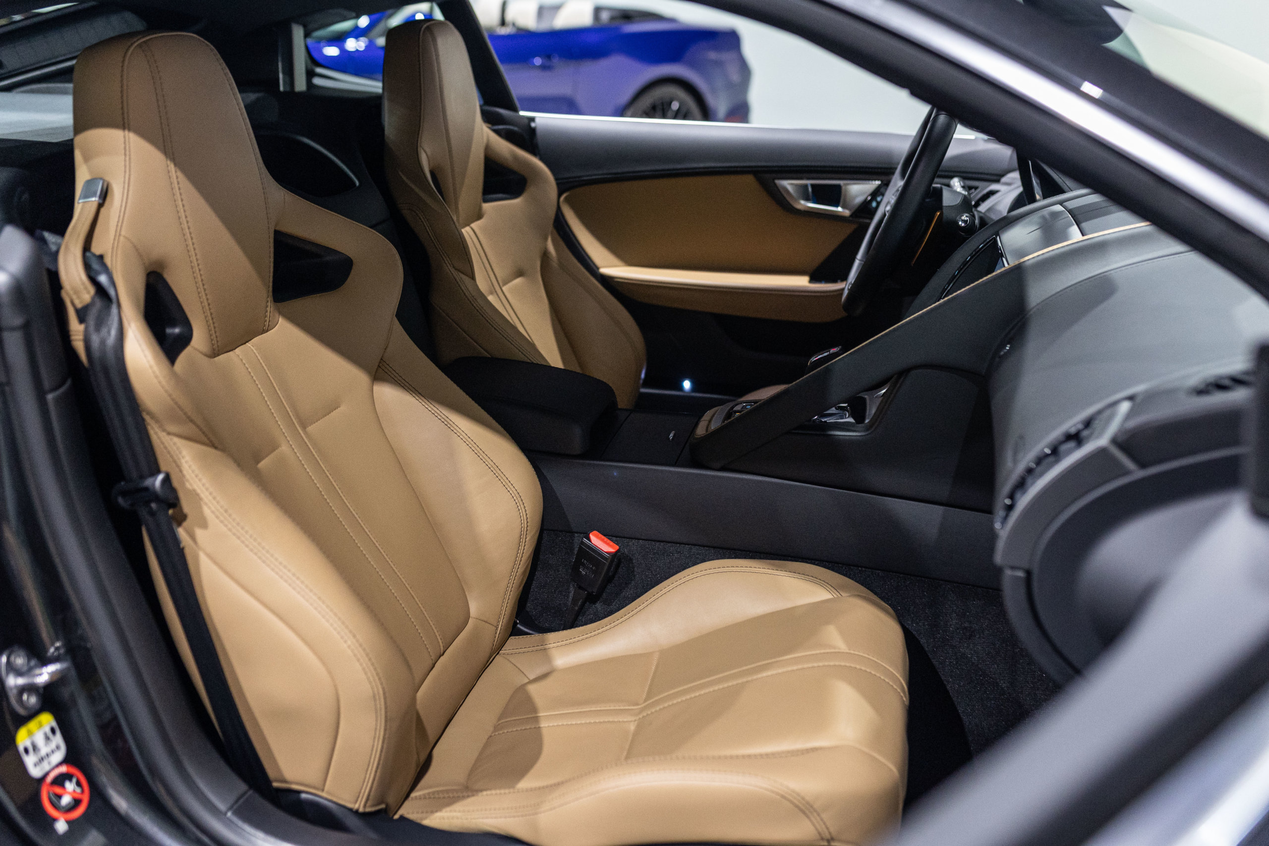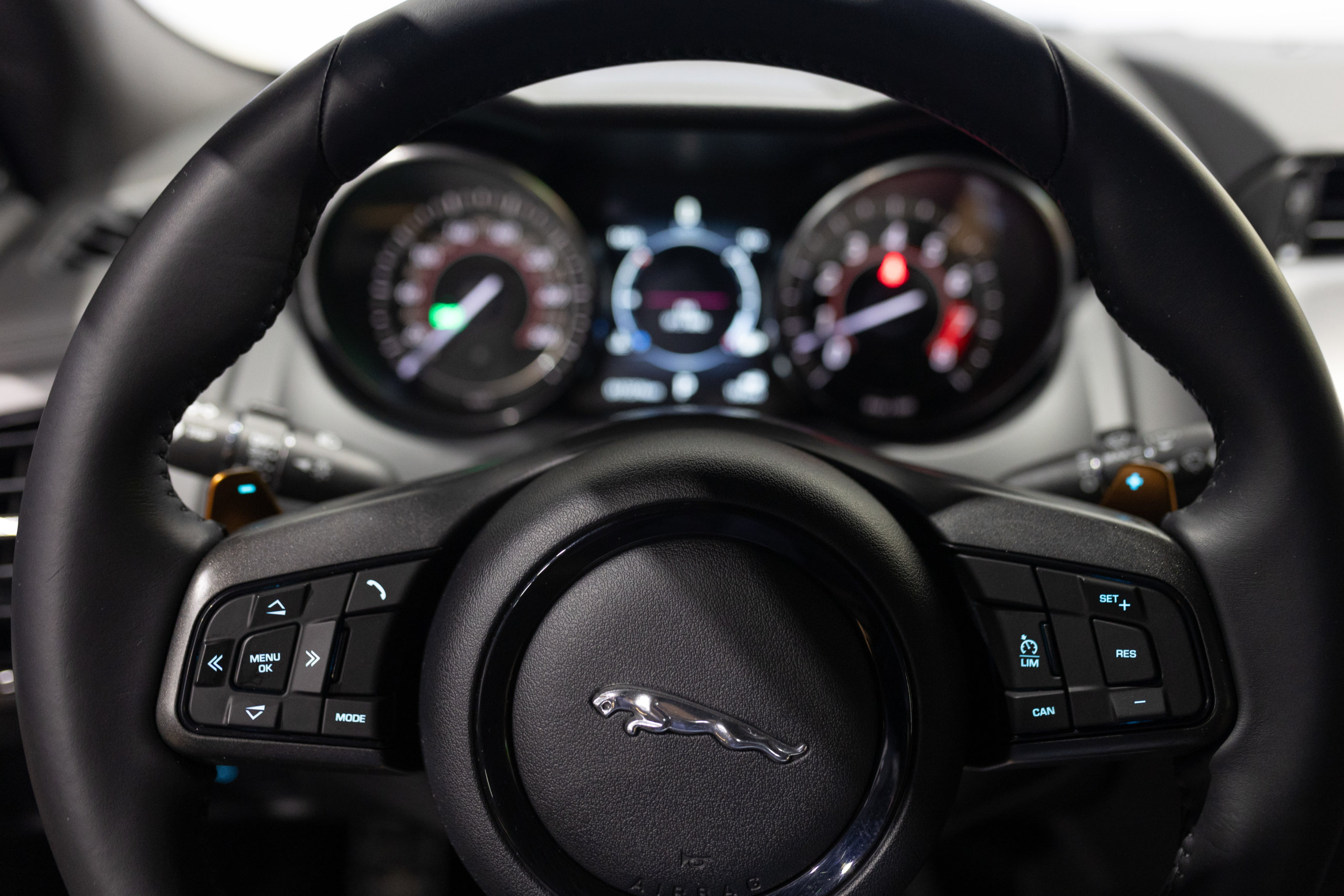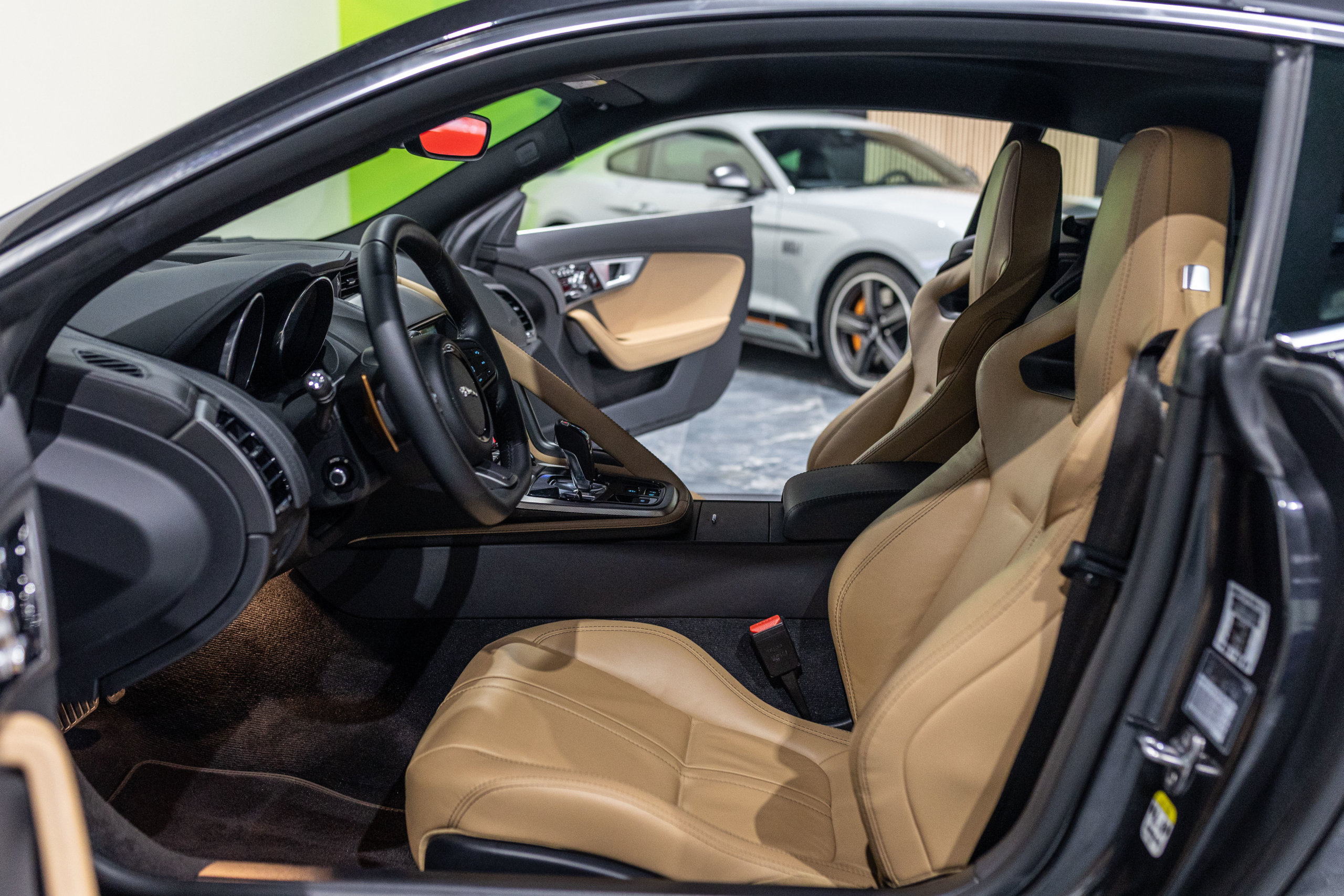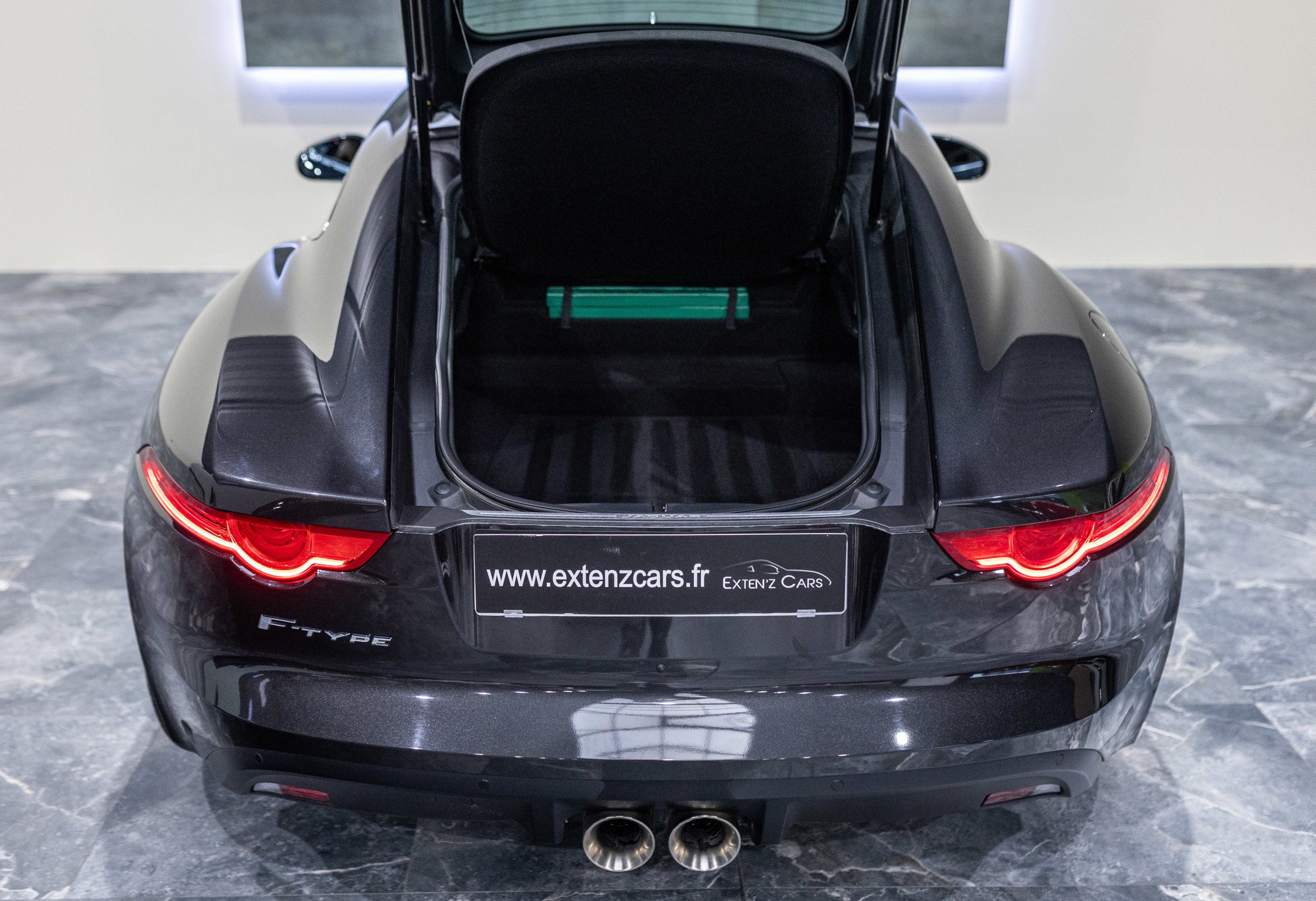 EXTEN’Z CARS vous propose cette magnifique JAGUAR F-Type Coupé 3.0 V6 développant 340 CV (23cv) mise en circulation le 12/11/2015 de couleur Stratus Grey Métallisée. Séduisante à l’extérieur, la Jaguar F-Type Coupé l’est tout autant à son bord. Le style est très exclusif, mais aussi très épuré. La position de conduite est irréprochable, d’autant que les sièges offrent de multiples réglages. La Jaguar F-Type est motorisée par un V6 3,0 litres suralimenté de 340 ch. C’est la première fois qu’un V6 aura autant flatté nos tympans. Structure en aluminium, liaisons au sol allégées, et mécaniques affûtées sont au programme. Poignée de maintien destinée au passager, bouton de mode Sport typé aviation, Le travail est abouti.