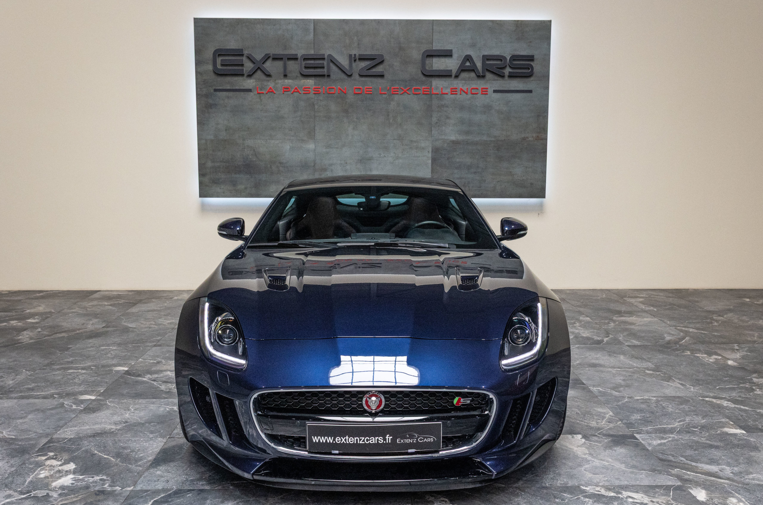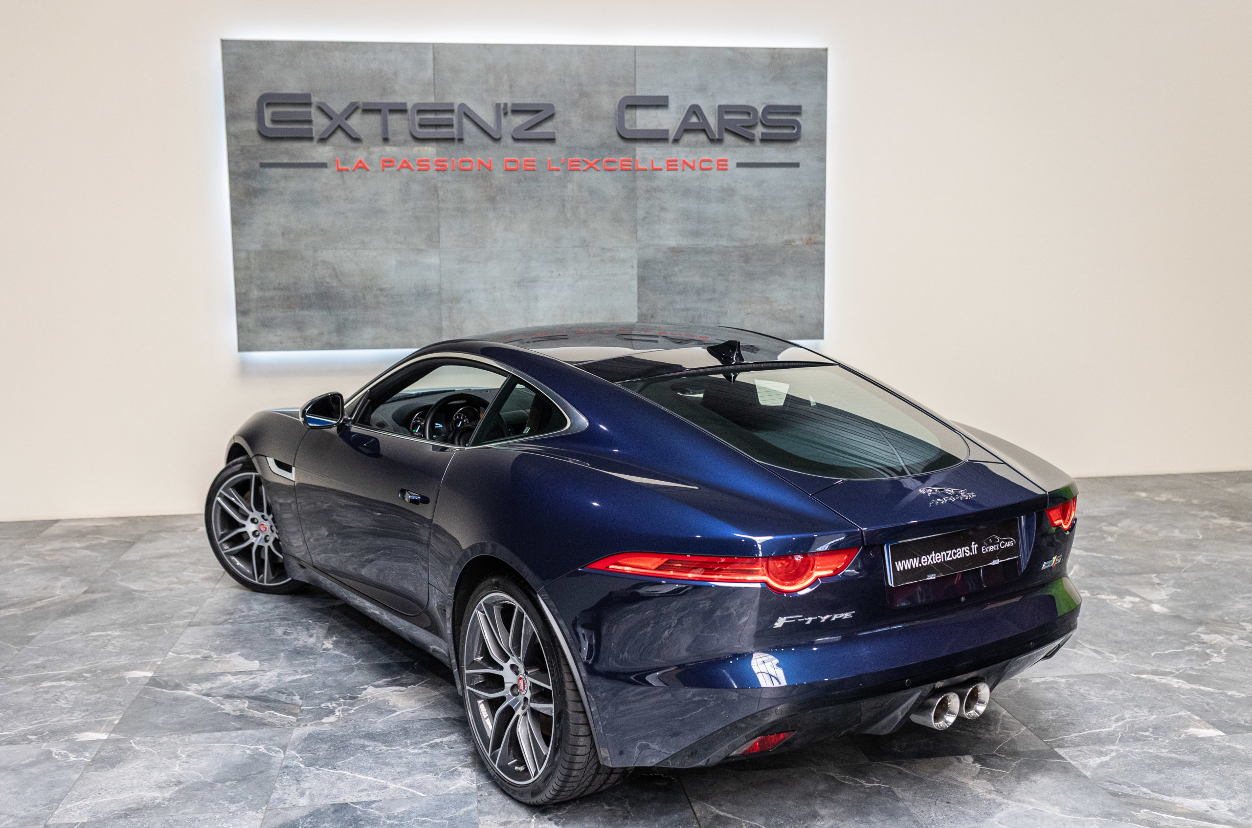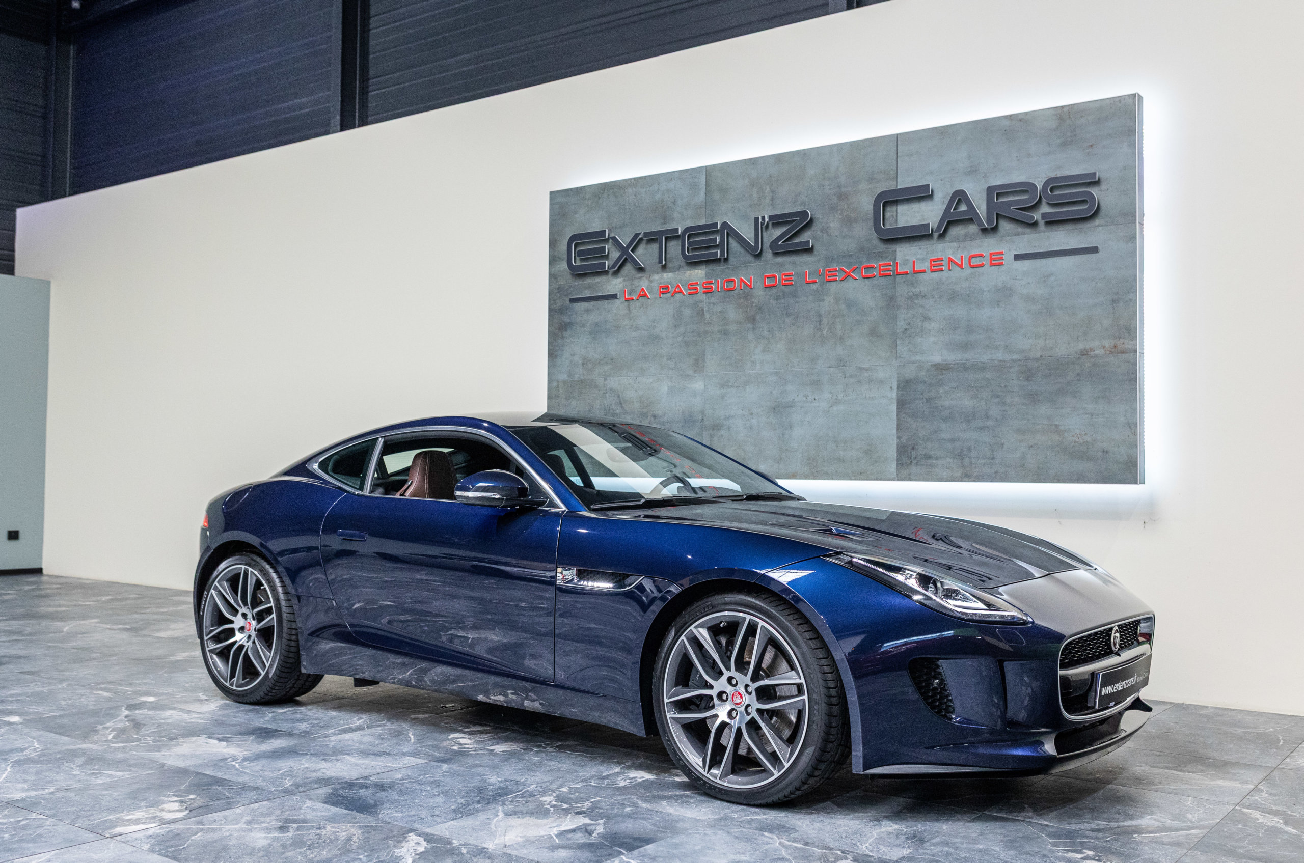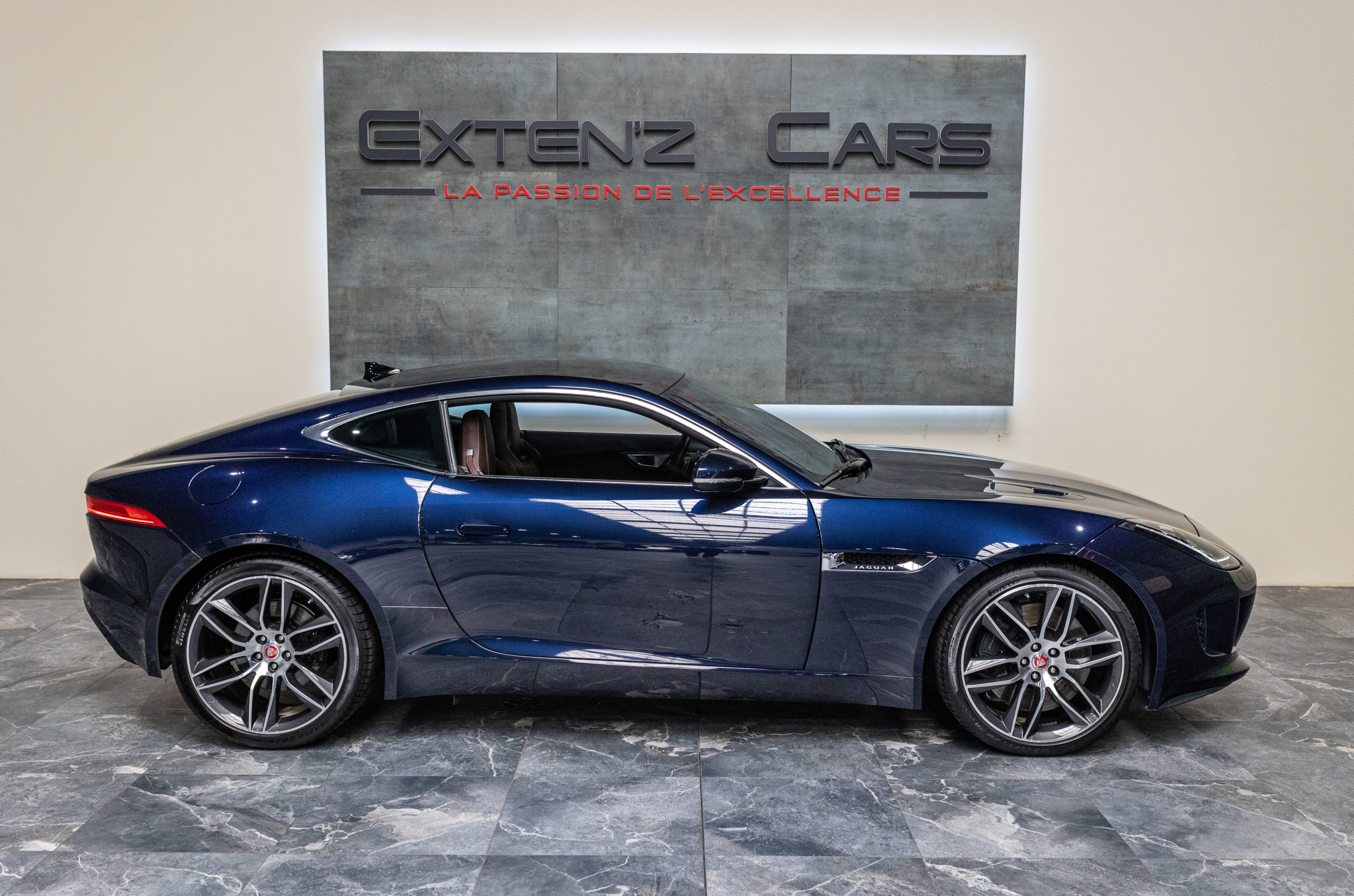 EXTEN’Z CARS vous propose cette magnifique JAGUAR F-Type Coupé 3.0 V6 S AWD développant 380 CV (27cv) mise en circulation le 07/06/2016 de couleur Dark Sapphire Blue Métallisée. Séduisante à l’extérieur, la Jaguar F-Type l’est tout autant à son bord. Le style est très exclusif, mais aussi très épuré, La position de conduite est irréprochable, d’autant que les sièges offrent de multiples réglages. La Jaguar F-Type est motorisée par un V6 3,0 litres suralimenté de 380 ch. C’est la première fois qu’un V6 aura autant flatté nos tympans. Bien aidée par sa boîte automatique à 8 rapports. Structure en aluminium, liaisons au sol allégées, et mécaniques affûtées sont au programme. Poignée de maintien destinée au passager, bouton de mode Sport typé aviation, Le travail est abouti.