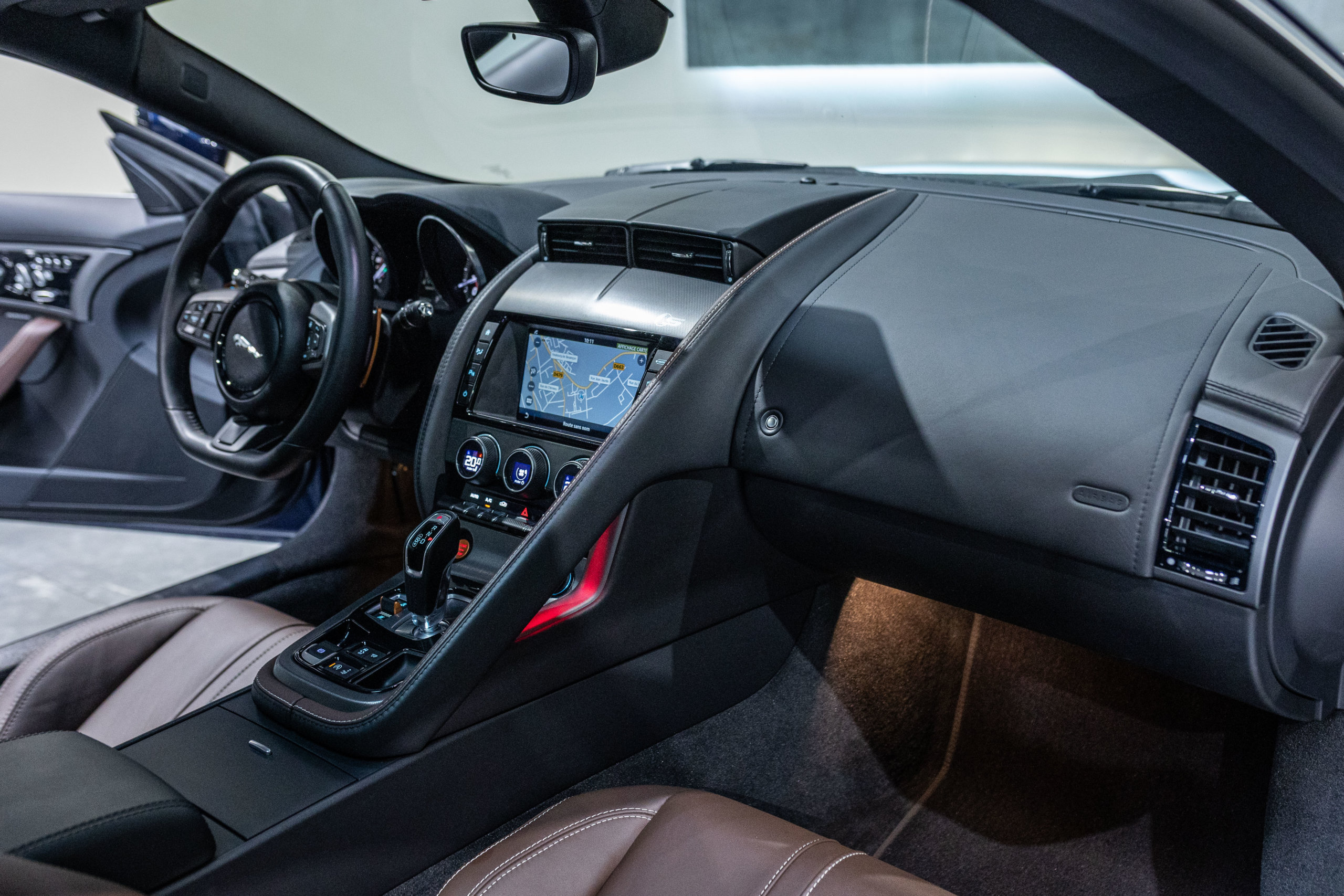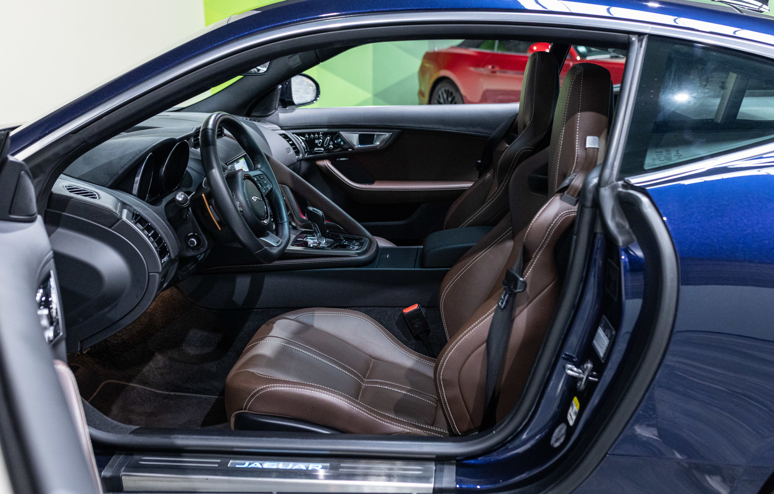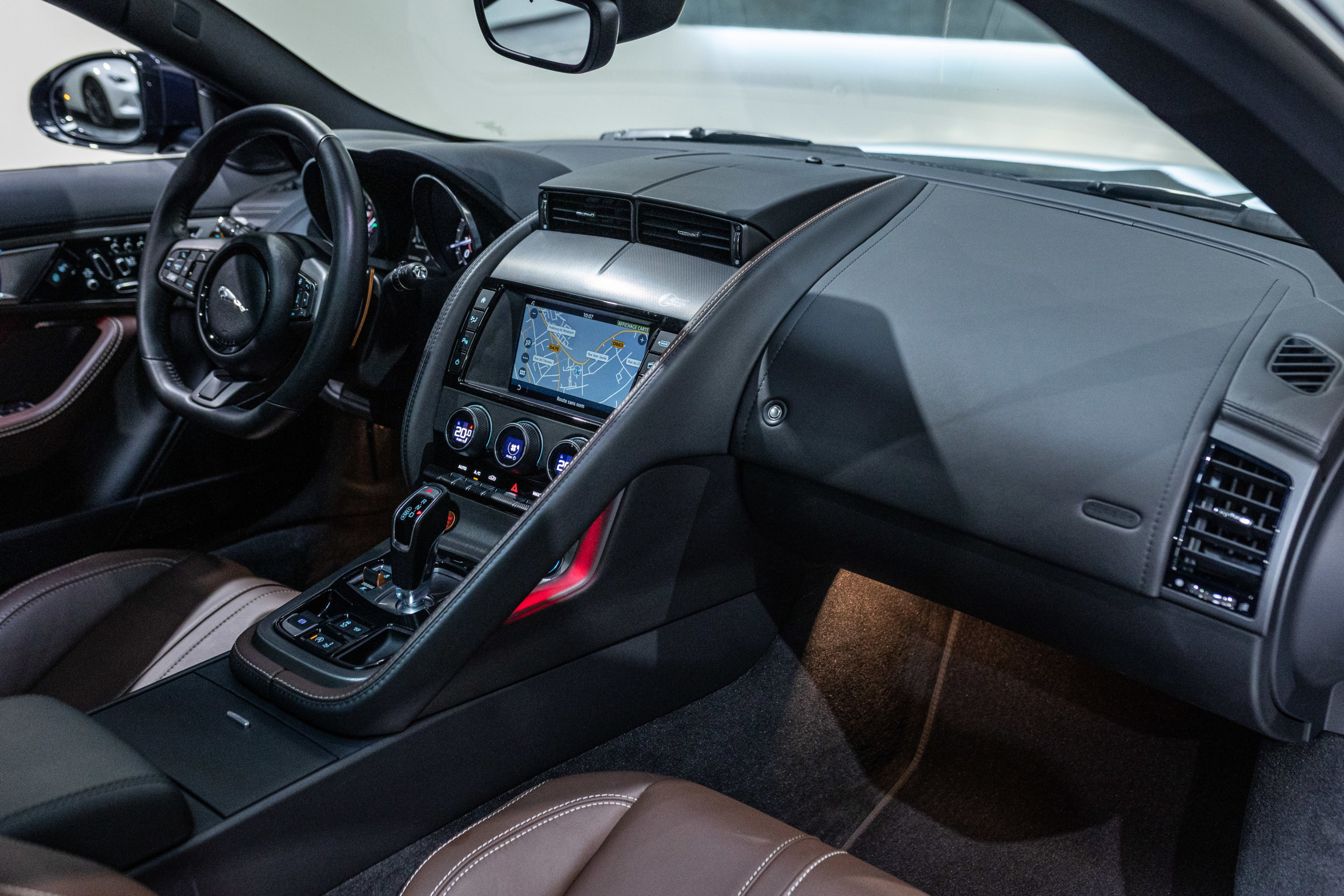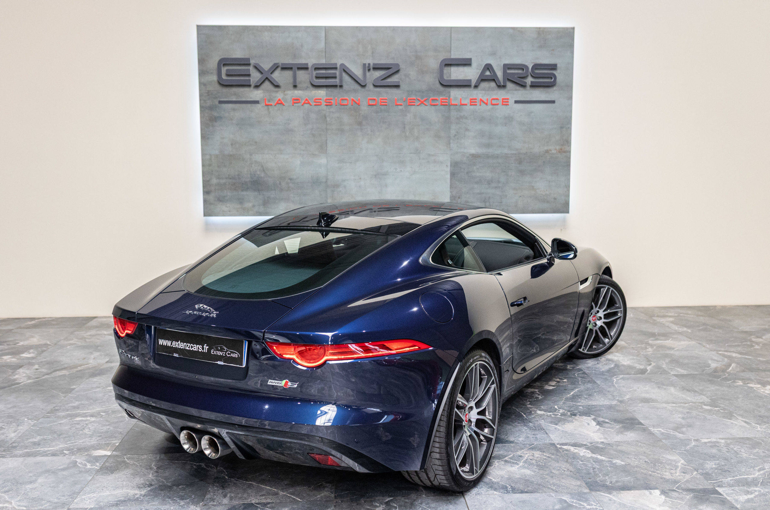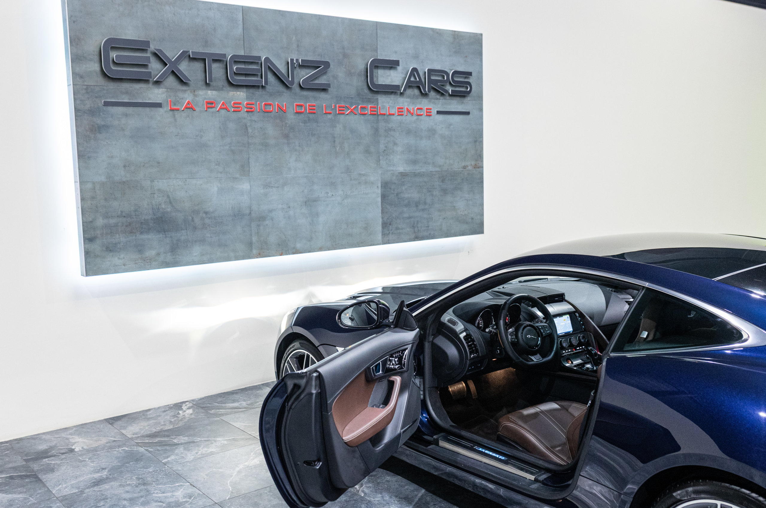 EXTEN’Z CARS vous propose cette magnifique JAGUAR F-Type Coupé 3.0 V6 S AWD développant 380 CV (27cv) mise en circulation le 07/06/2016 de couleur Dark Sapphire Blue Métallisée. Séduisante à l’extérieur, la Jaguar F-Type l’est tout autant à son bord. Le style est très exclusif, mais aussi très épuré, La position de conduite est irréprochable, d’autant que les sièges offrent de multiples réglages. La Jaguar F-Type est motorisée par un V6 3,0 litres suralimenté de 380 ch. C’est la première fois qu’un V6 aura autant flatté nos tympans. Bien aidée par sa boîte automatique à 8 rapports. Structure en aluminium, liaisons au sol allégées, et mécaniques affûtées sont au programme. Poignée de maintien destinée au passager, bouton de mode Sport typé aviation, Le travail est abouti.