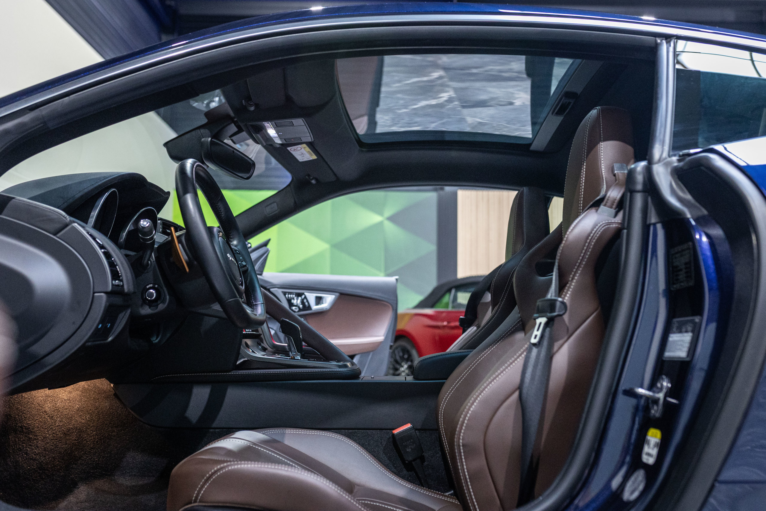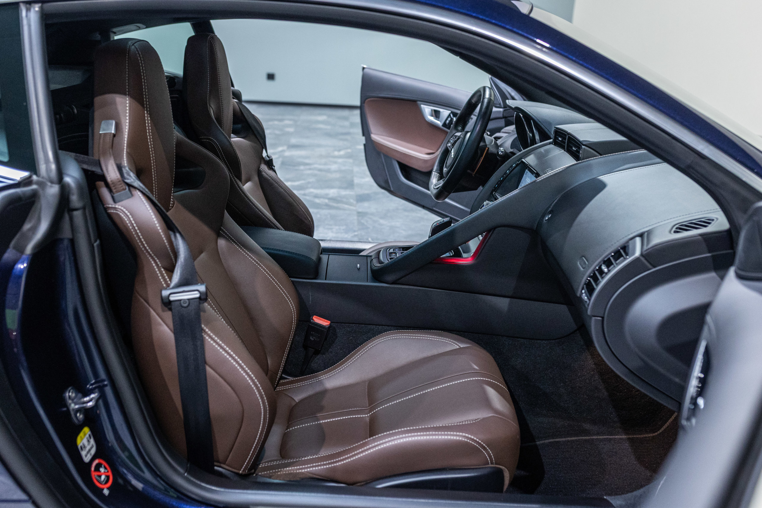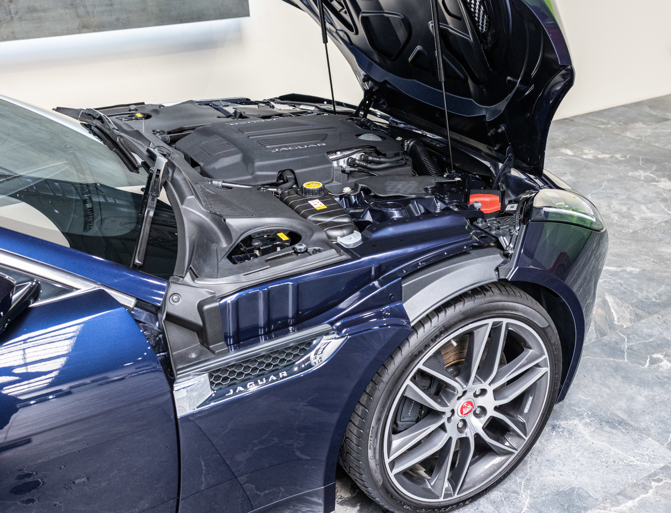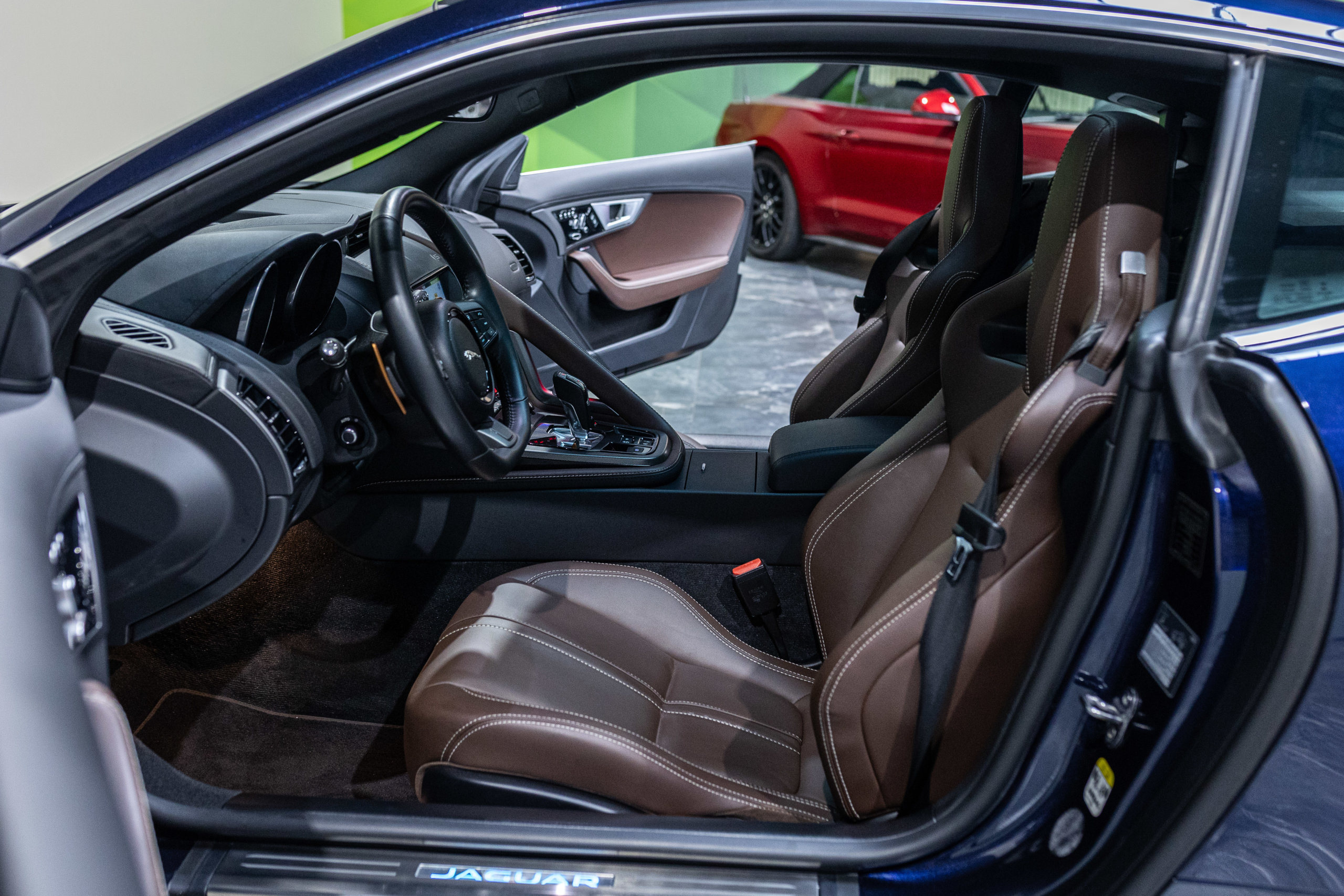 EXTEN’Z CARS vous propose cette magnifique JAGUAR F-Type Coupé 3.0 V6 S AWD développant 380 CV (27cv) mise en circulation le 07/06/2016 de couleur Dark Sapphire Blue Métallisée. Séduisante à l’extérieur, la Jaguar F-Type l’est tout autant à son bord. Le style est très exclusif, mais aussi très épuré, La position de conduite est irréprochable, d’autant que les sièges offrent de multiples réglages. La Jaguar F-Type est motorisée par un V6 3,0 litres suralimenté de 380 ch. C’est la première fois qu’un V6 aura autant flatté nos tympans. Bien aidée par sa boîte automatique à 8 rapports. Structure en aluminium, liaisons au sol allégées, et mécaniques affûtées sont au programme. Poignée de maintien destinée au passager, bouton de mode Sport typé aviation, Le travail est abouti.