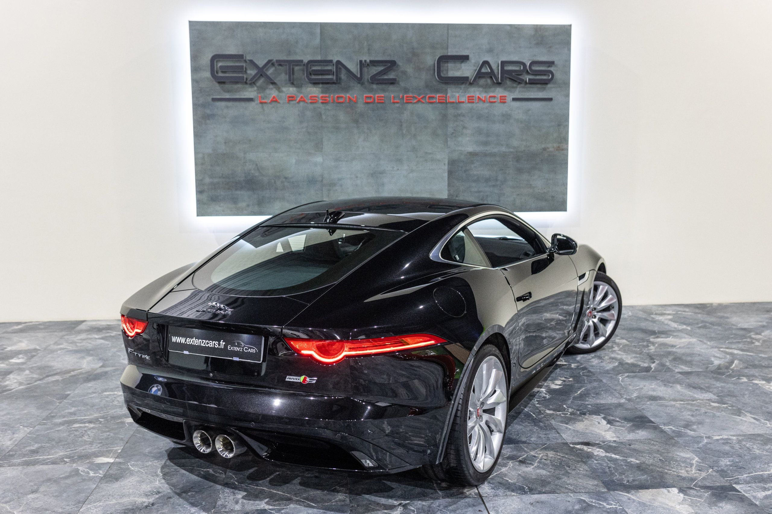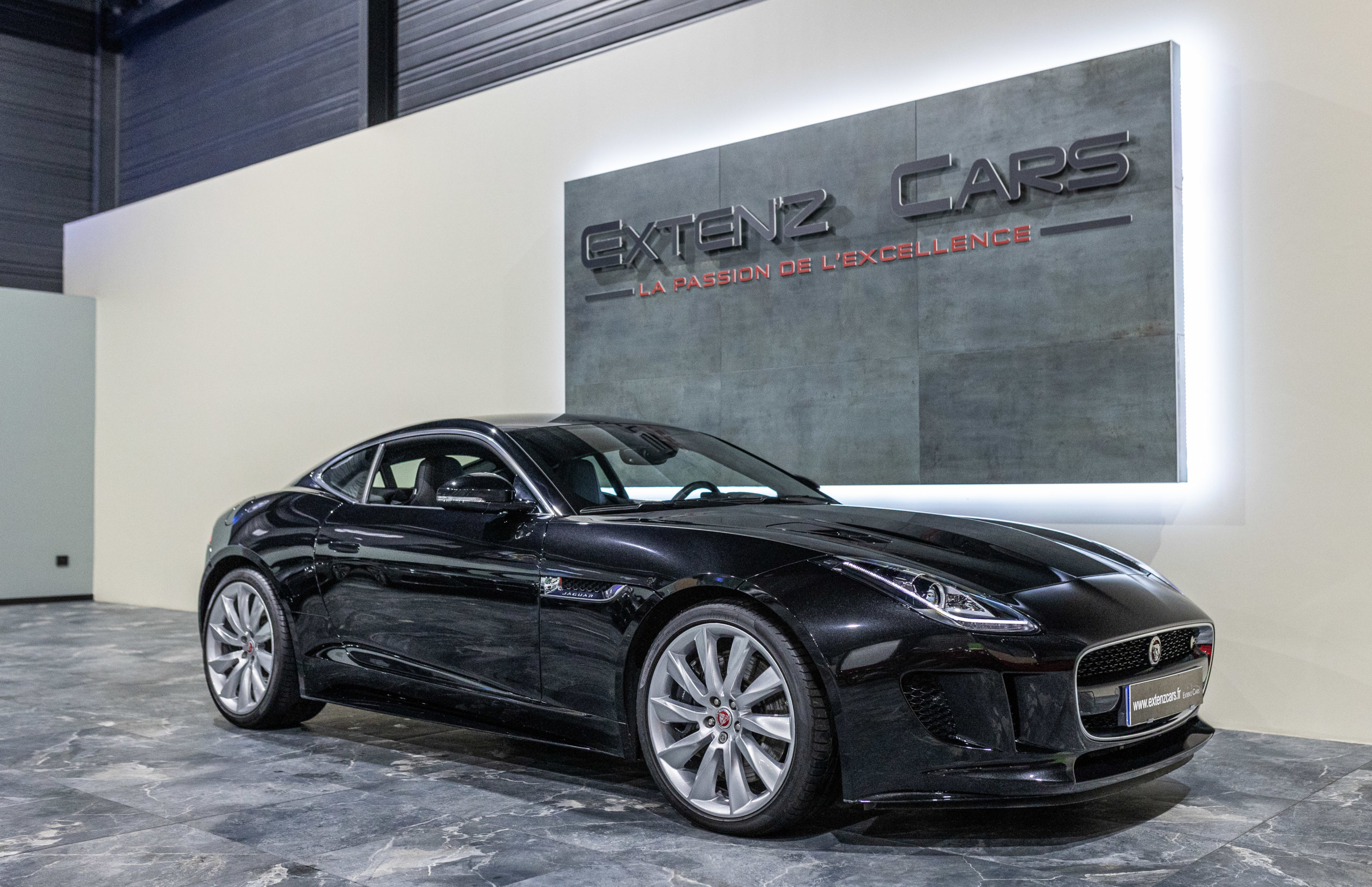 EXTEN’Z CARS vous propose cette magnifique JAGUAR F-Type Coupé 3.0 V6 S AWD développant 380 CV (27cv) mise en circulation le 30/06/2015 de couleur Noir Santorini Métallisée. Séduisante à l’extérieur, la Jaguar F-Type l’est tout autant à son bord. Le style est très exclusif, mais aussi très épuré, La position de conduite est irréprochable, d’autant que les sièges offrent de multiples réglages. La Jaguar F-Type est motorisée par un V6 3,0 litres suralimenté de 380 ch. C’est la première fois qu’un V6 aura autant flatté nos tympans. Bien aidée par sa boîte automatique à 8 rapports. Structure en aluminium, liaisons au sol allégées, et mécaniques affûtées sont au programme. Poignée de maintien destinée au passager, bouton de mode Sport typé aviation, Le travail est abouti.