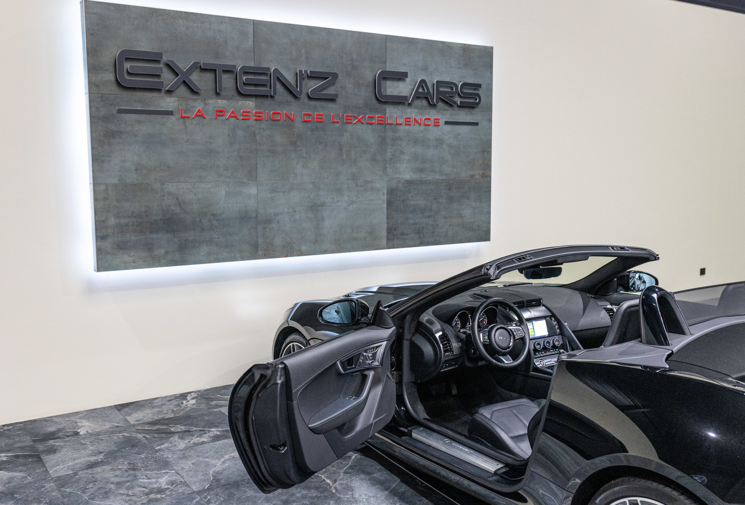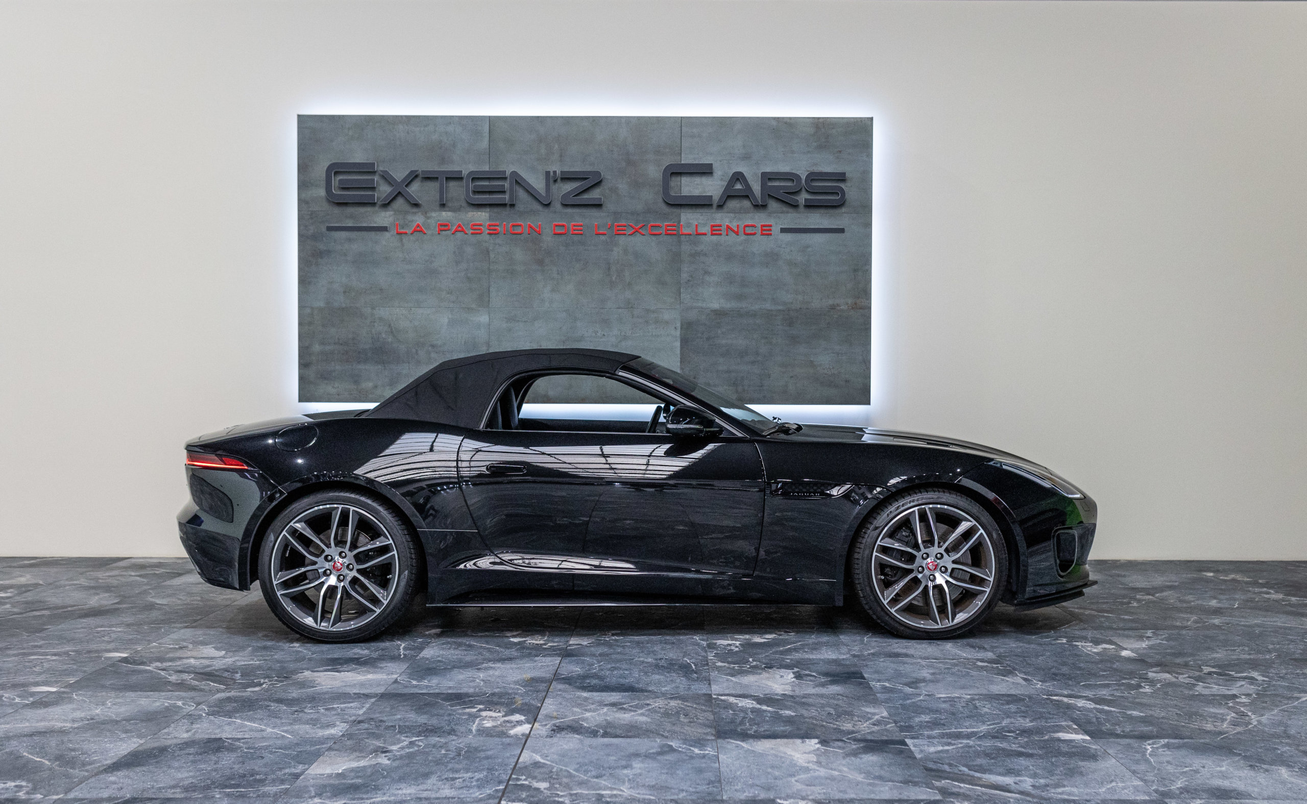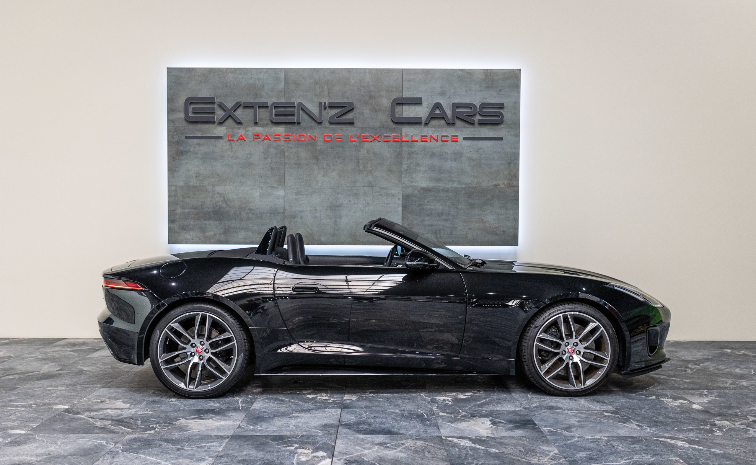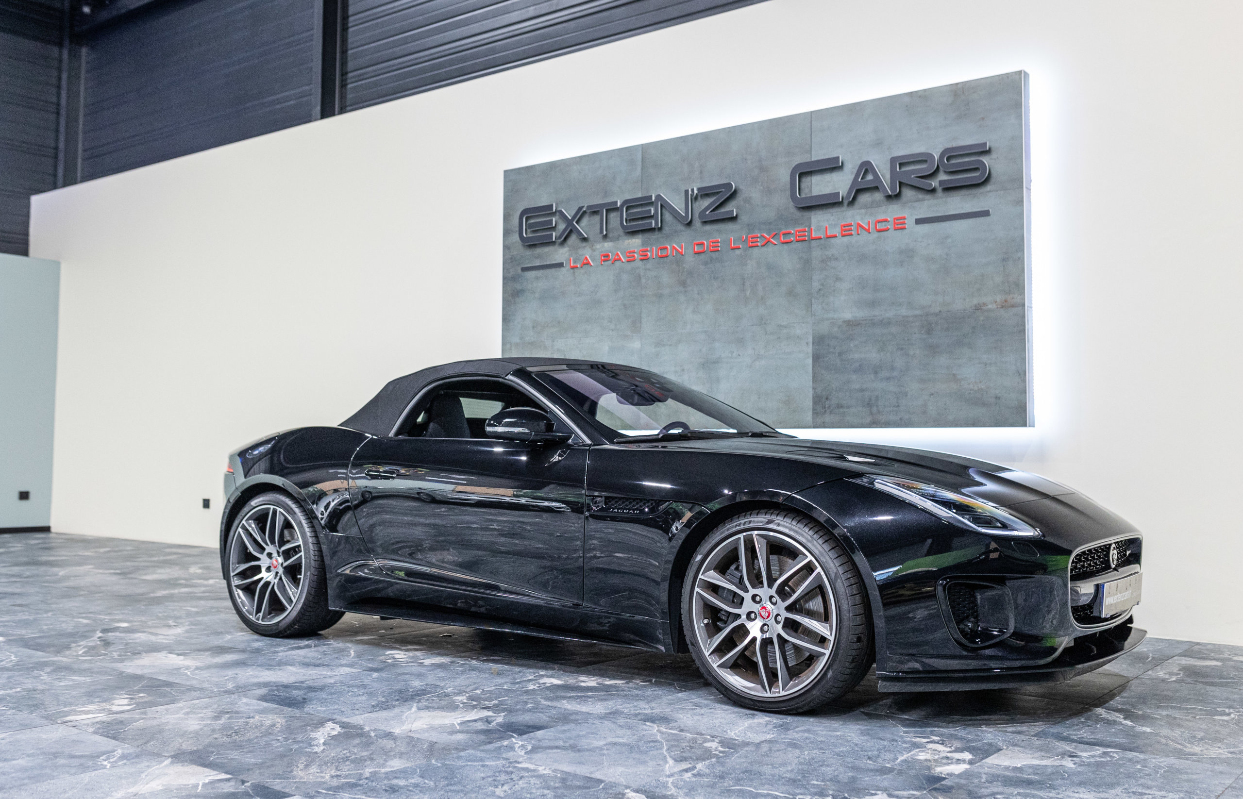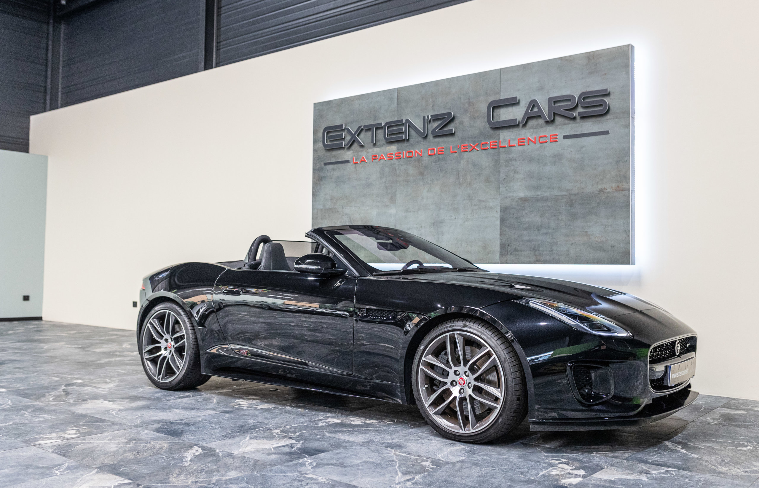 EXTEN’Z CARS vous propose cette magnifique JAGUAR F-Type Cabriolet (Roadster) 3.0 V6 S AWD Phase II développant 380 CV (28cv) mise en circulation le 16/03/2018 de couleur Noir Santorini Métallisée. Séduisante à l’extérieur, la Jaguar F-Type l’est tout autant à son bord. Le style est très exclusif, mais aussi très épuré, La position de conduite est irréprochable, d’autant que les sièges offrent de multiples réglages. La Jaguar F-Type est motorisée par un V6 3,0 litres suralimenté de 380 ch. C’est la première fois qu’un V6 aura autant flatté nos tympans. Bien aidée par sa boîte automatique à 8 rapports. Structure en aluminium, liaisons au sol allégées, et mécaniques affûtées sont au programme. Poignée de maintien destinée au passager, bouton de mode Sport typé aviation, Le travail est abouti.