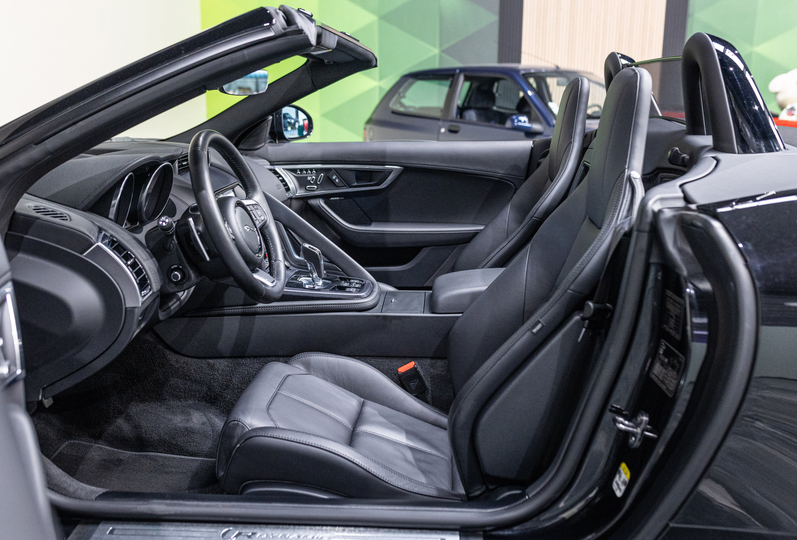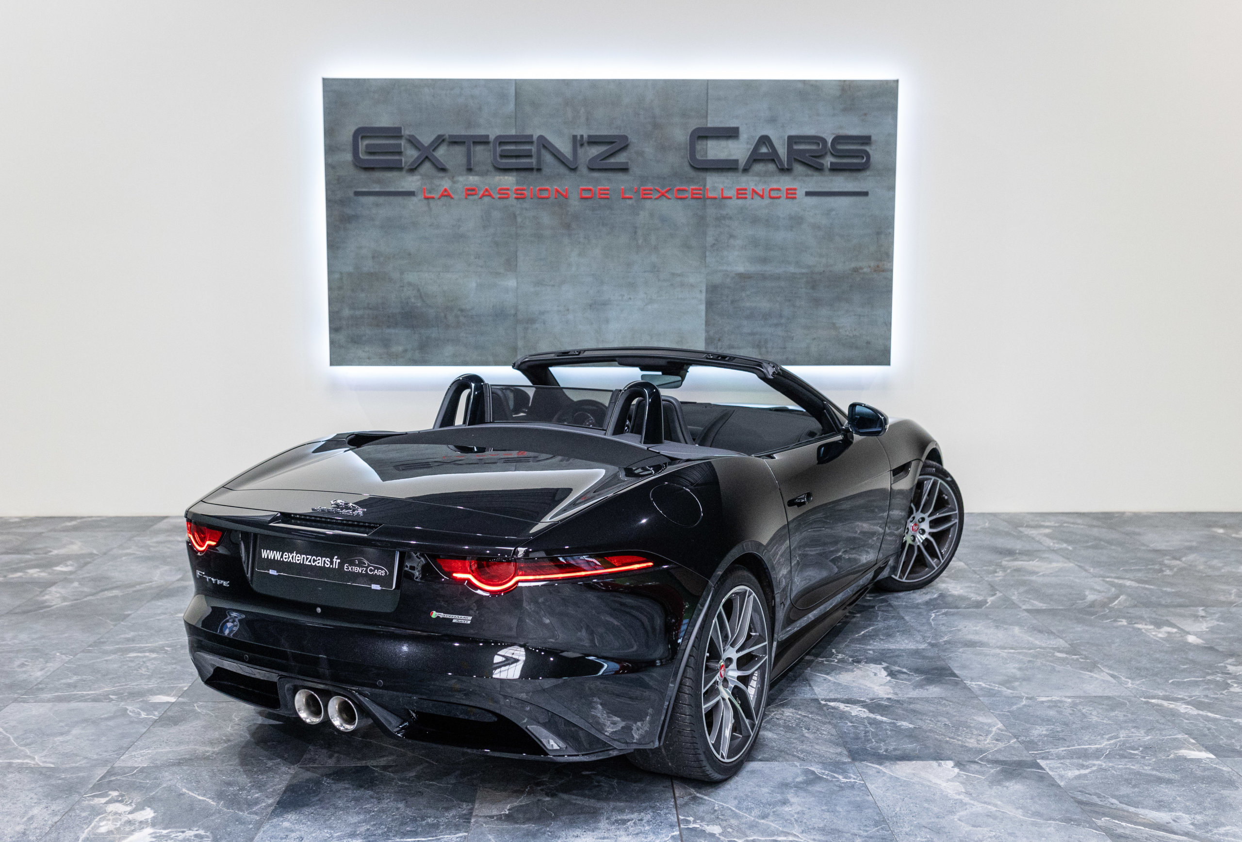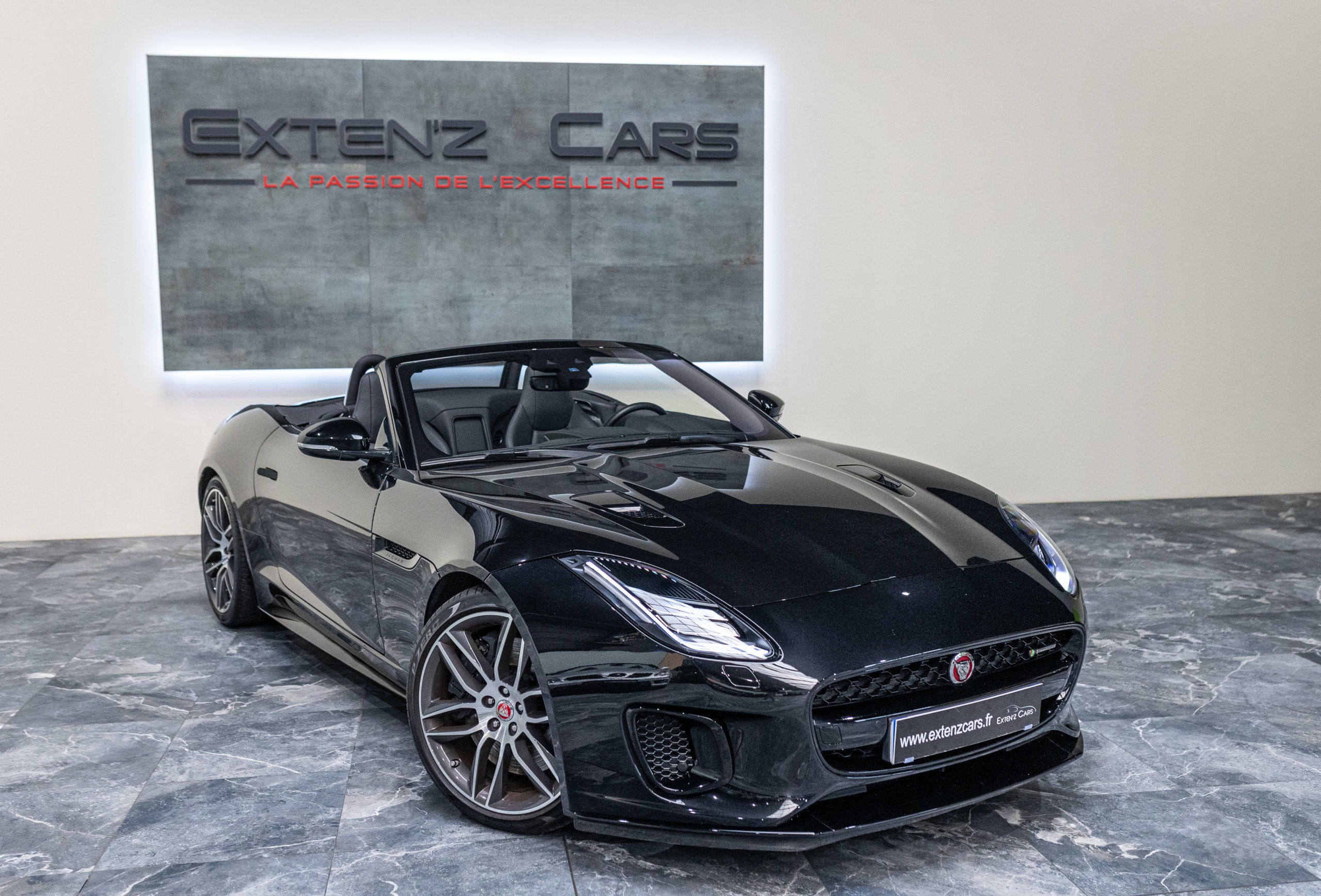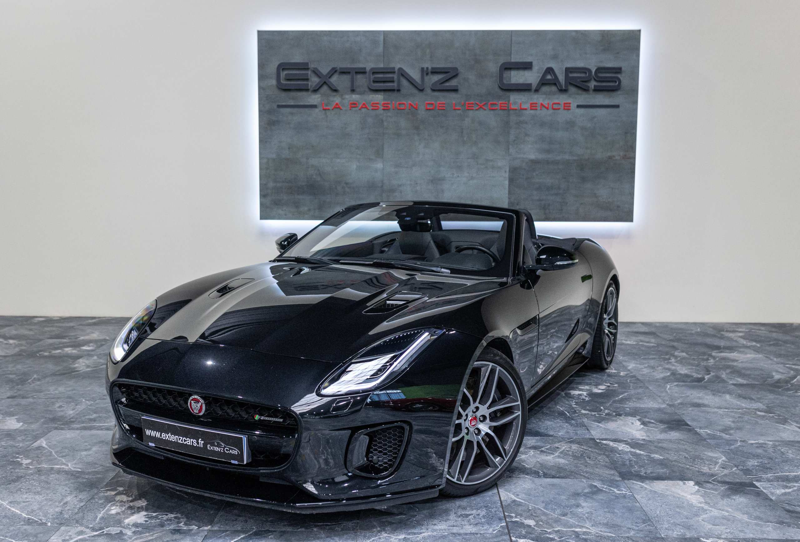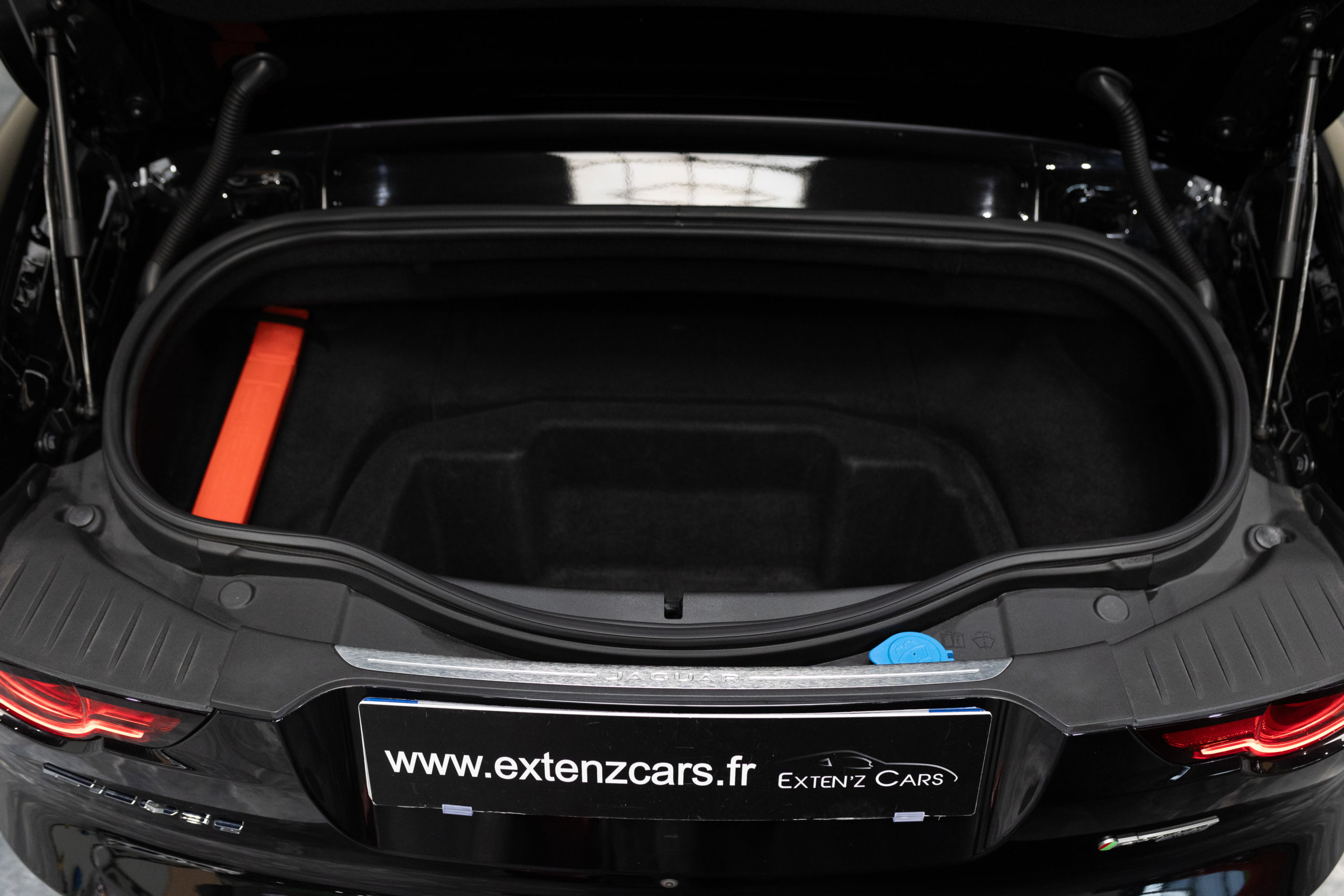 EXTEN’Z CARS vous propose cette magnifique JAGUAR F-Type Cabriolet (Roadster) 3.0 V6 S AWD Phase II développant 380 CV (28cv) mise en circulation le 16/03/2018 de couleur Noir Santorini Métallisée. Séduisante à l’extérieur, la Jaguar F-Type l’est tout autant à son bord. Le style est très exclusif, mais aussi très épuré, La position de conduite est irréprochable, d’autant que les sièges offrent de multiples réglages. La Jaguar F-Type est motorisée par un V6 3,0 litres suralimenté de 380 ch. C’est la première fois qu’un V6 aura autant flatté nos tympans. Bien aidée par sa boîte automatique à 8 rapports. Structure en aluminium, liaisons au sol allégées, et mécaniques affûtées sont au programme. Poignée de maintien destinée au passager, bouton de mode Sport typé aviation, Le travail est abouti.