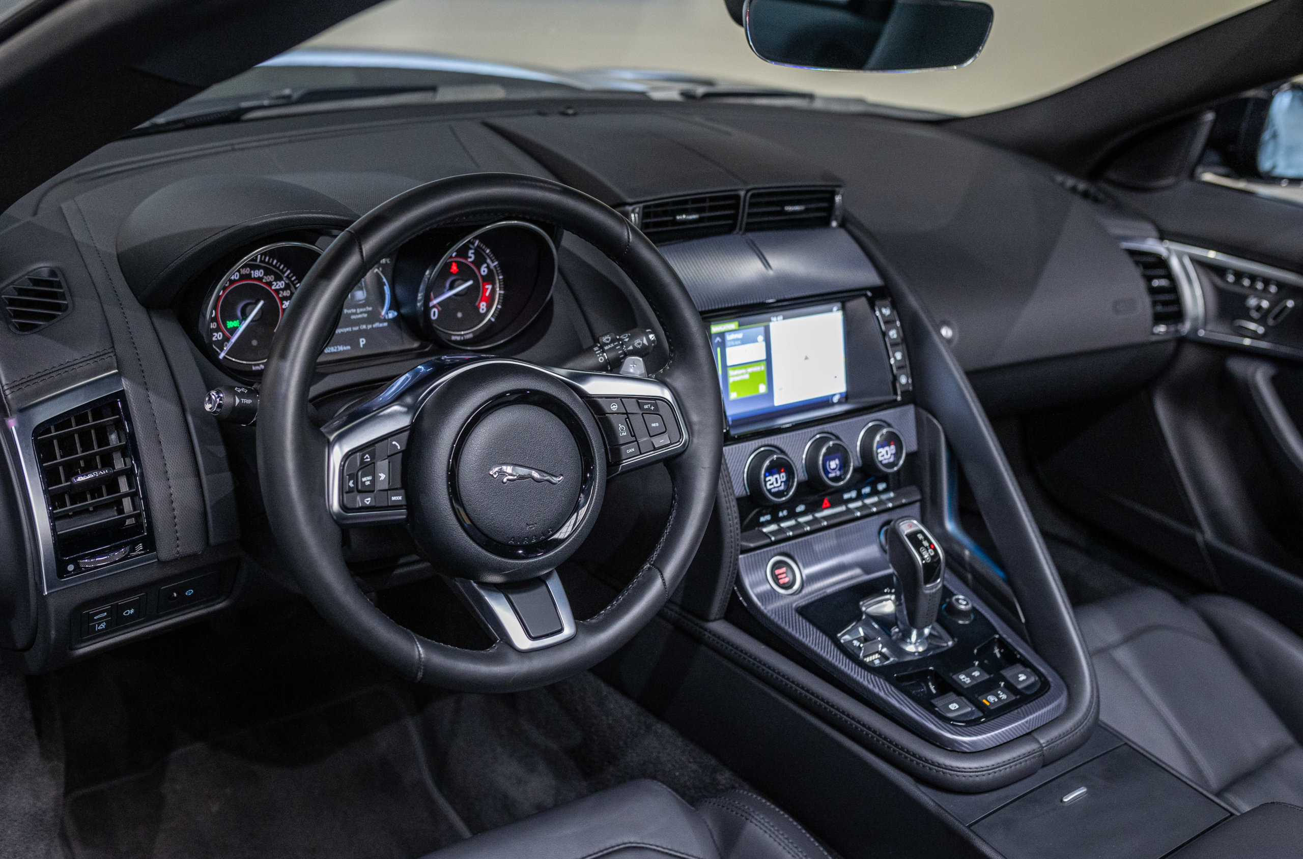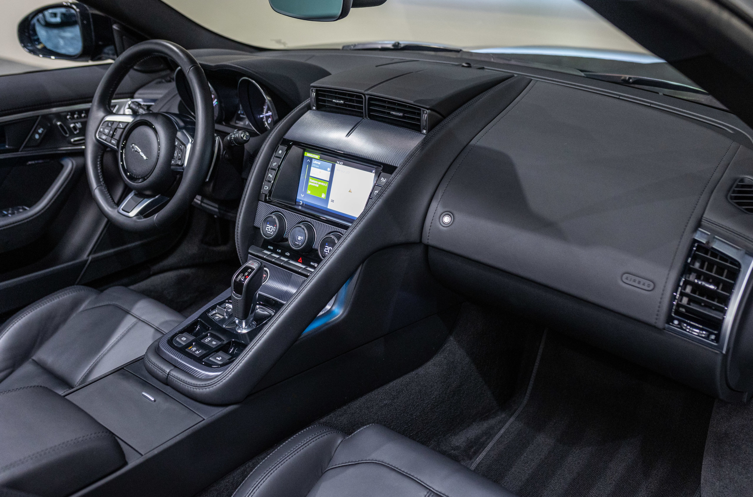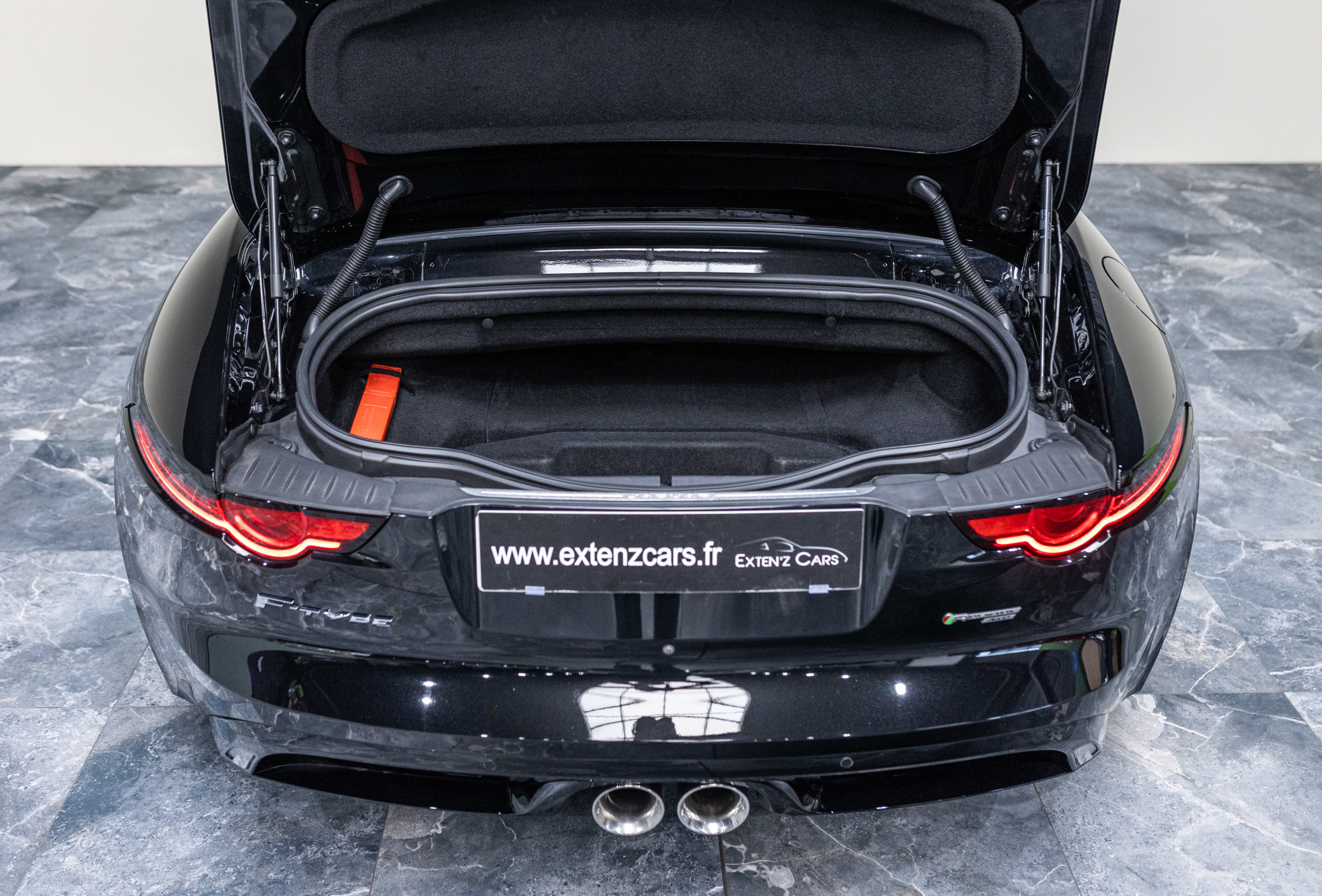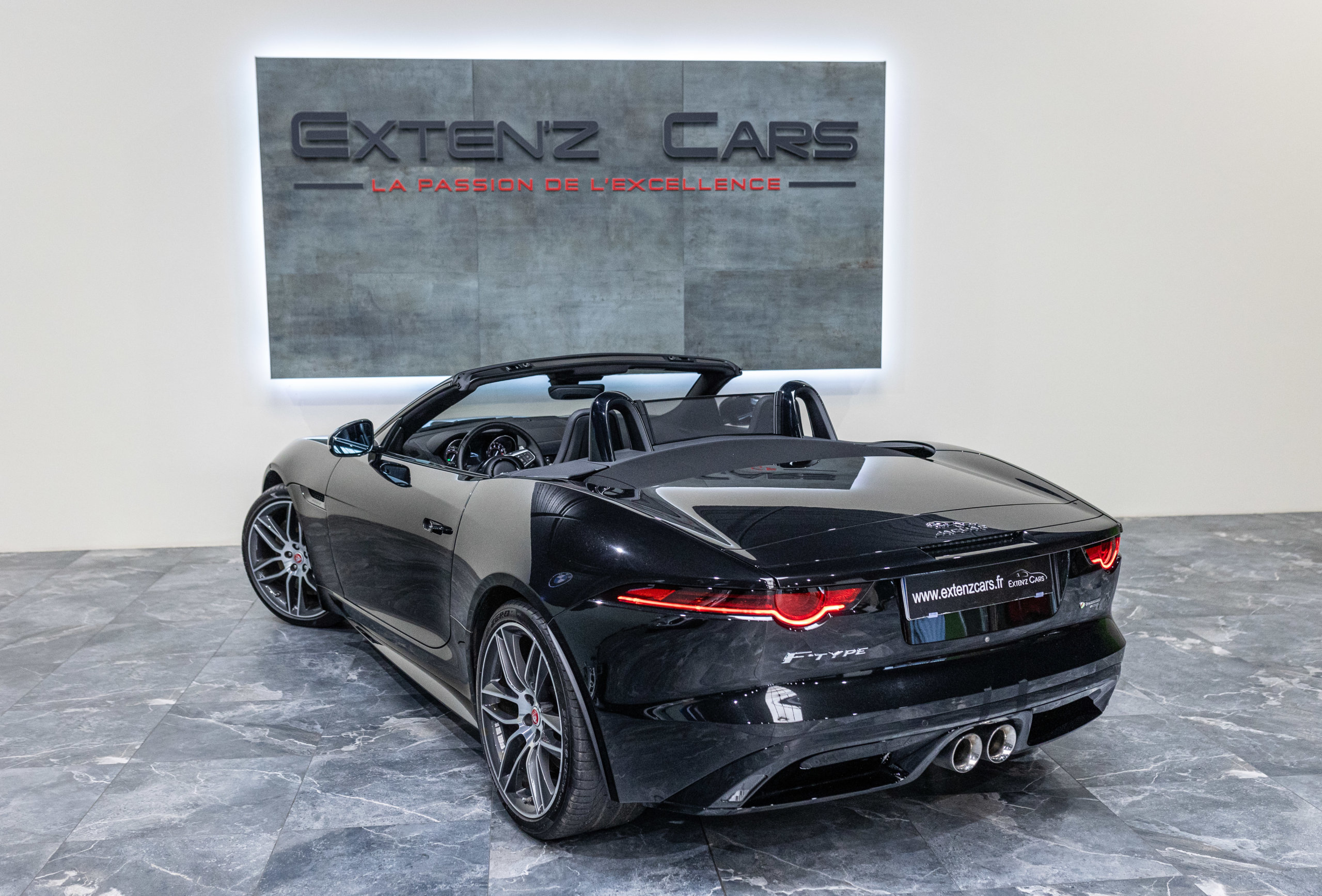 EXTEN’Z CARS vous propose cette magnifique JAGUAR F-Type Cabriolet (Roadster) 3.0 V6 S AWD Phase II développant 380 CV (28cv) mise en circulation le 16/03/2018 de couleur Noir Santorini Métallisée. Séduisante à l’extérieur, la Jaguar F-Type l’est tout autant à son bord. Le style est très exclusif, mais aussi très épuré, La position de conduite est irréprochable, d’autant que les sièges offrent de multiples réglages. La Jaguar F-Type est motorisée par un V6 3,0 litres suralimenté de 380 ch. C’est la première fois qu’un V6 aura autant flatté nos tympans. Bien aidée par sa boîte automatique à 8 rapports. Structure en aluminium, liaisons au sol allégées, et mécaniques affûtées sont au programme. Poignée de maintien destinée au passager, bouton de mode Sport typé aviation, Le travail est abouti.