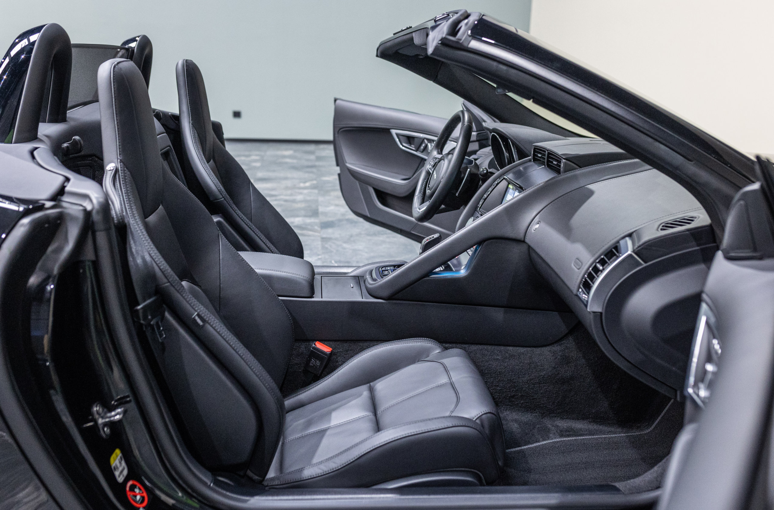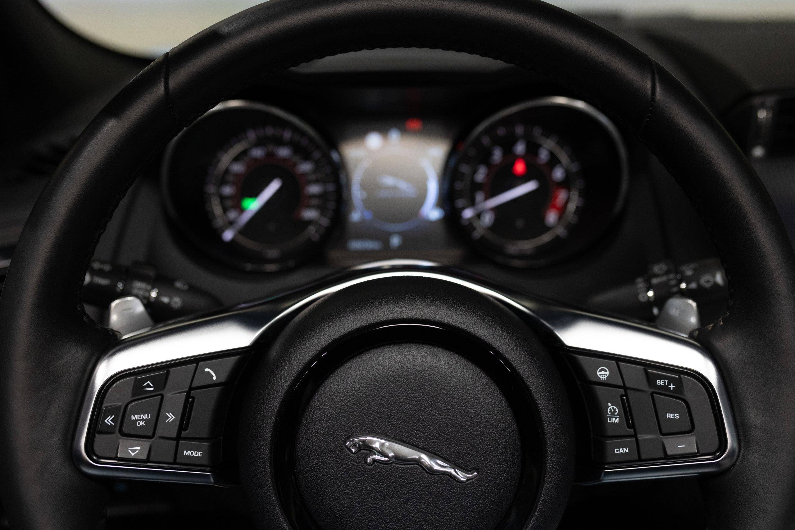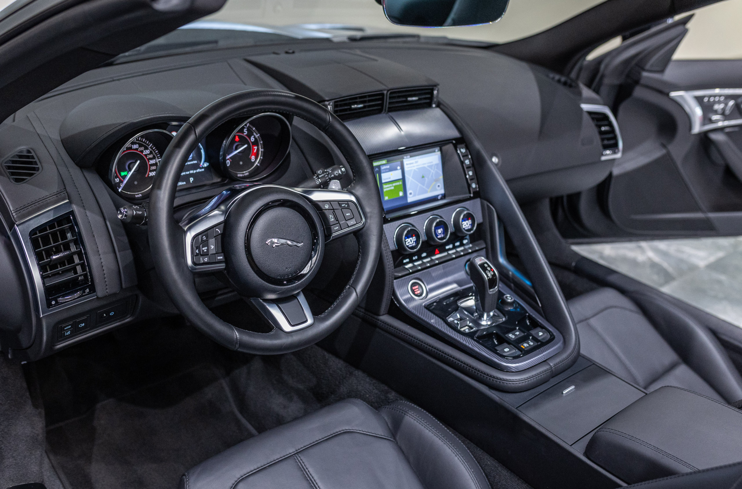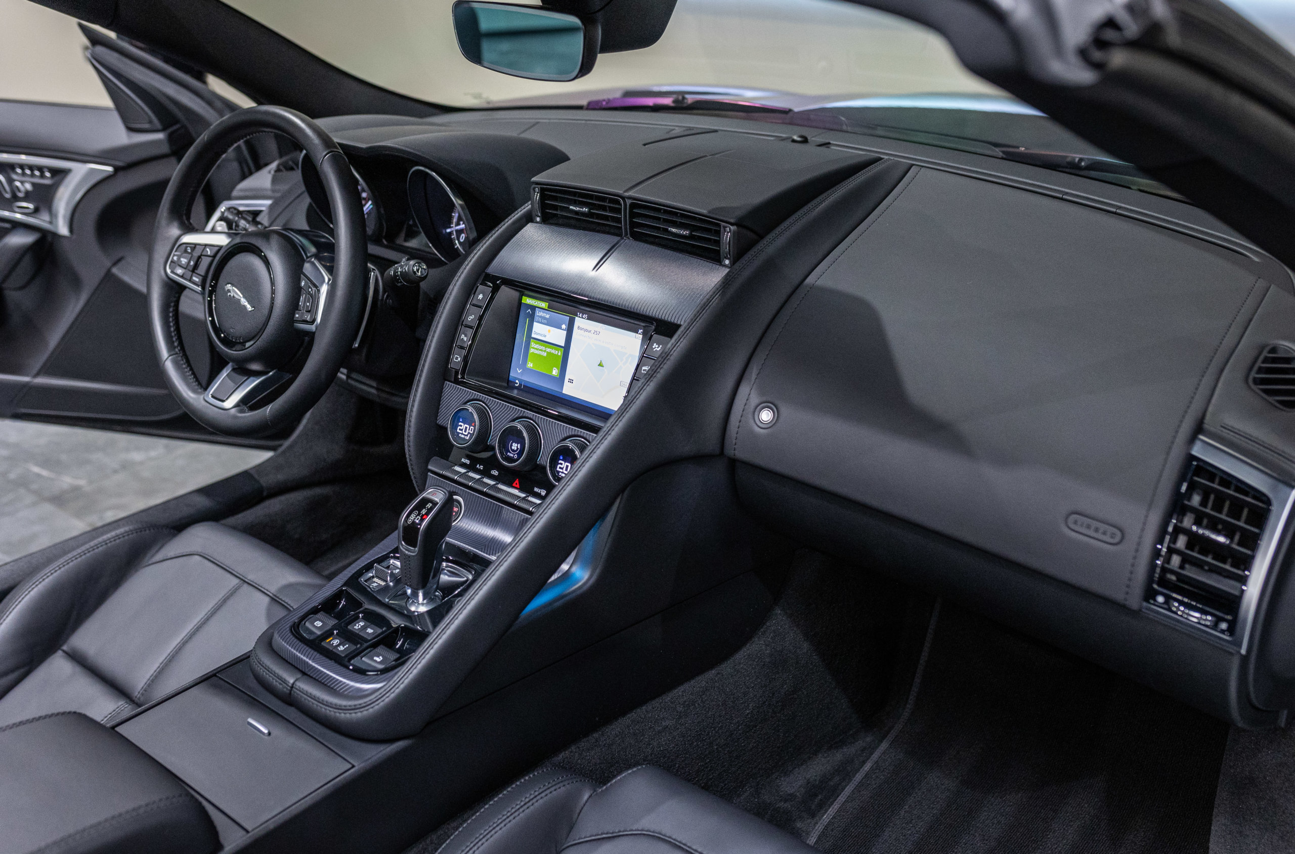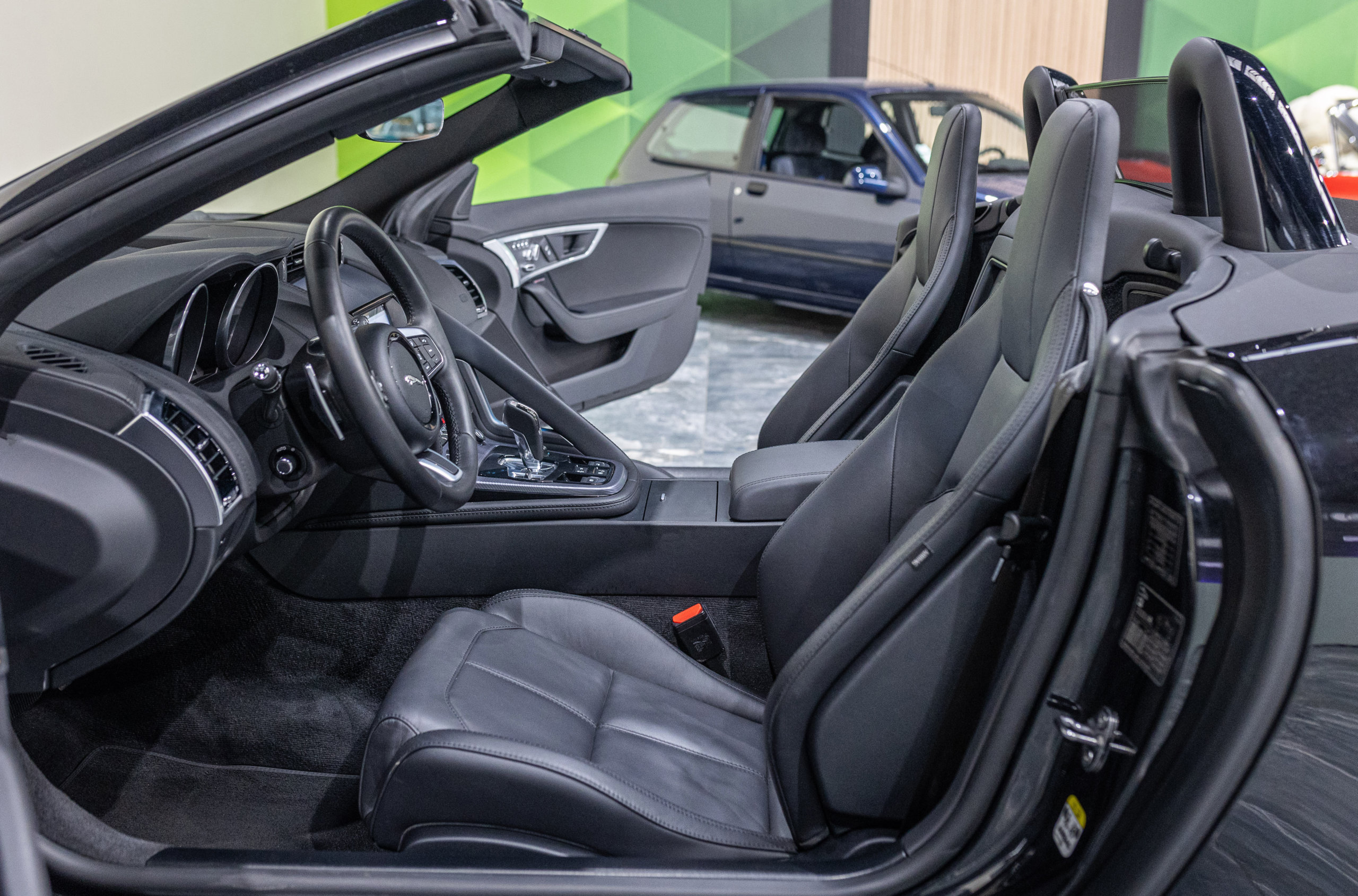 EXTEN’Z CARS vous propose cette magnifique JAGUAR F-Type Cabriolet (Roadster) 3.0 V6 S AWD Phase II développant 380 CV (28cv) mise en circulation le 16/03/2018 de couleur Noir Santorini Métallisée. Séduisante à l’extérieur, la Jaguar F-Type l’est tout autant à son bord. Le style est très exclusif, mais aussi très épuré, La position de conduite est irréprochable, d’autant que les sièges offrent de multiples réglages. La Jaguar F-Type est motorisée par un V6 3,0 litres suralimenté de 380 ch. C’est la première fois qu’un V6 aura autant flatté nos tympans. Bien aidée par sa boîte automatique à 8 rapports. Structure en aluminium, liaisons au sol allégées, et mécaniques affûtées sont au programme. Poignée de maintien destinée au passager, bouton de mode Sport typé aviation, Le travail est abouti.