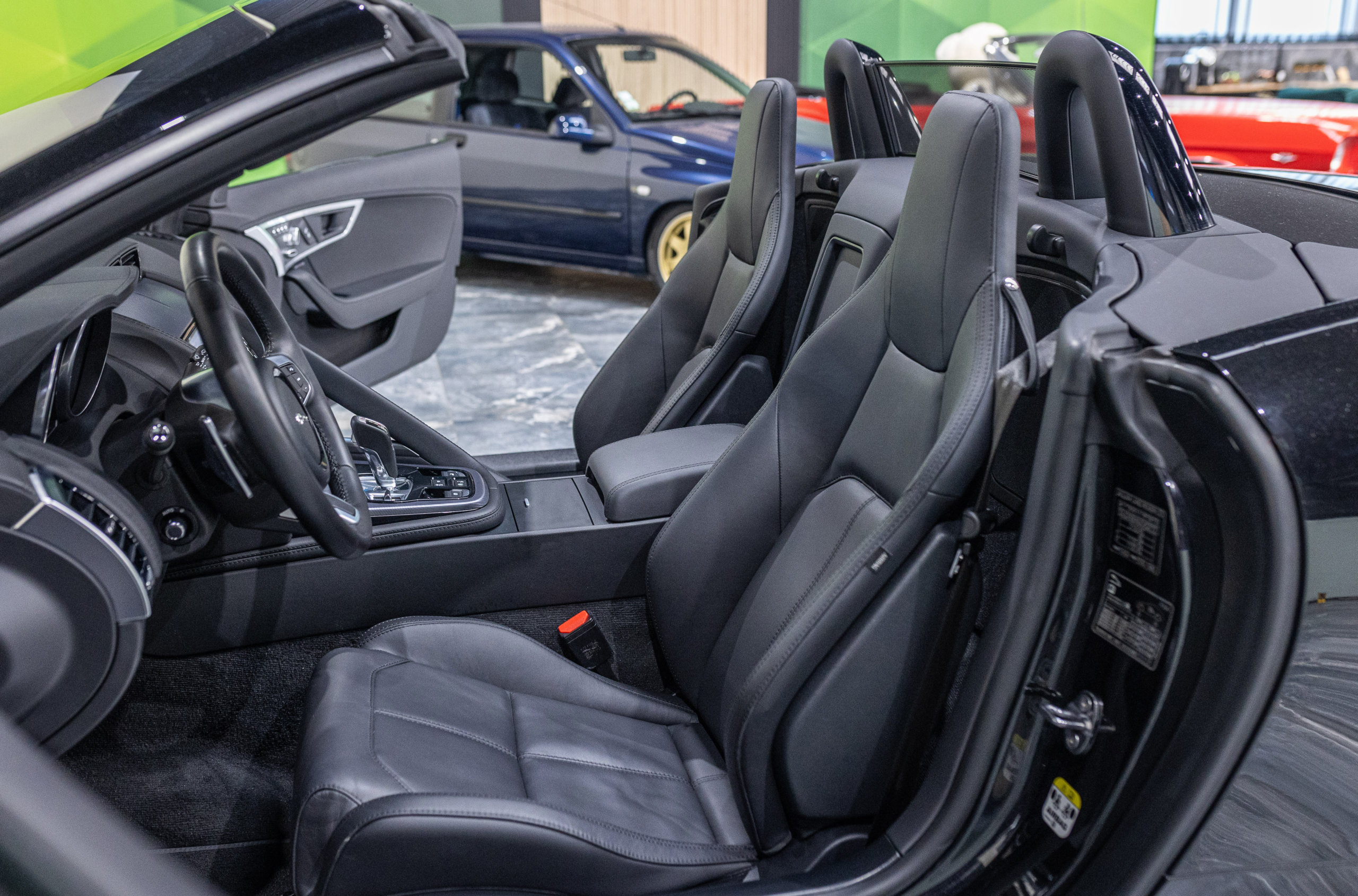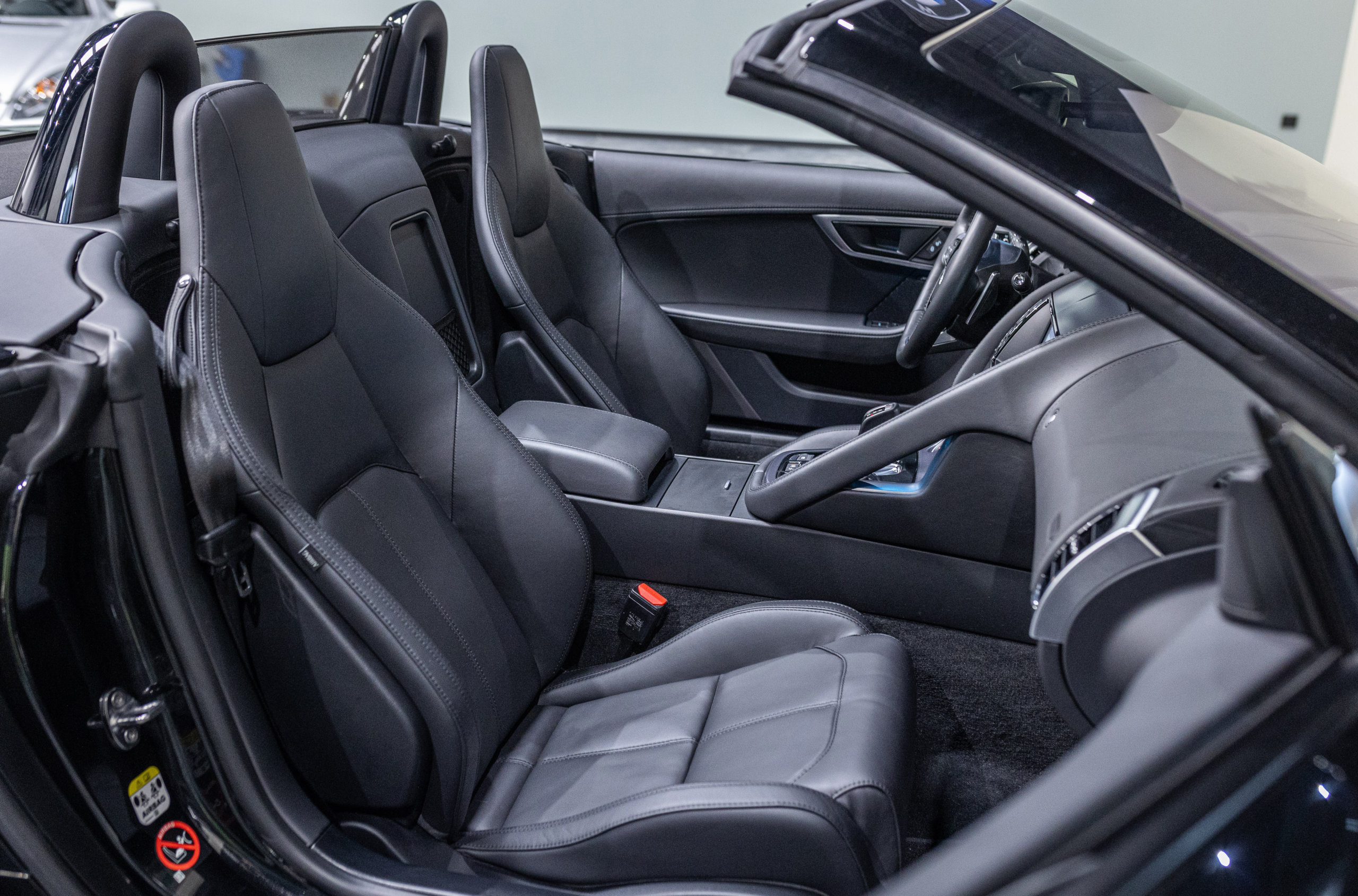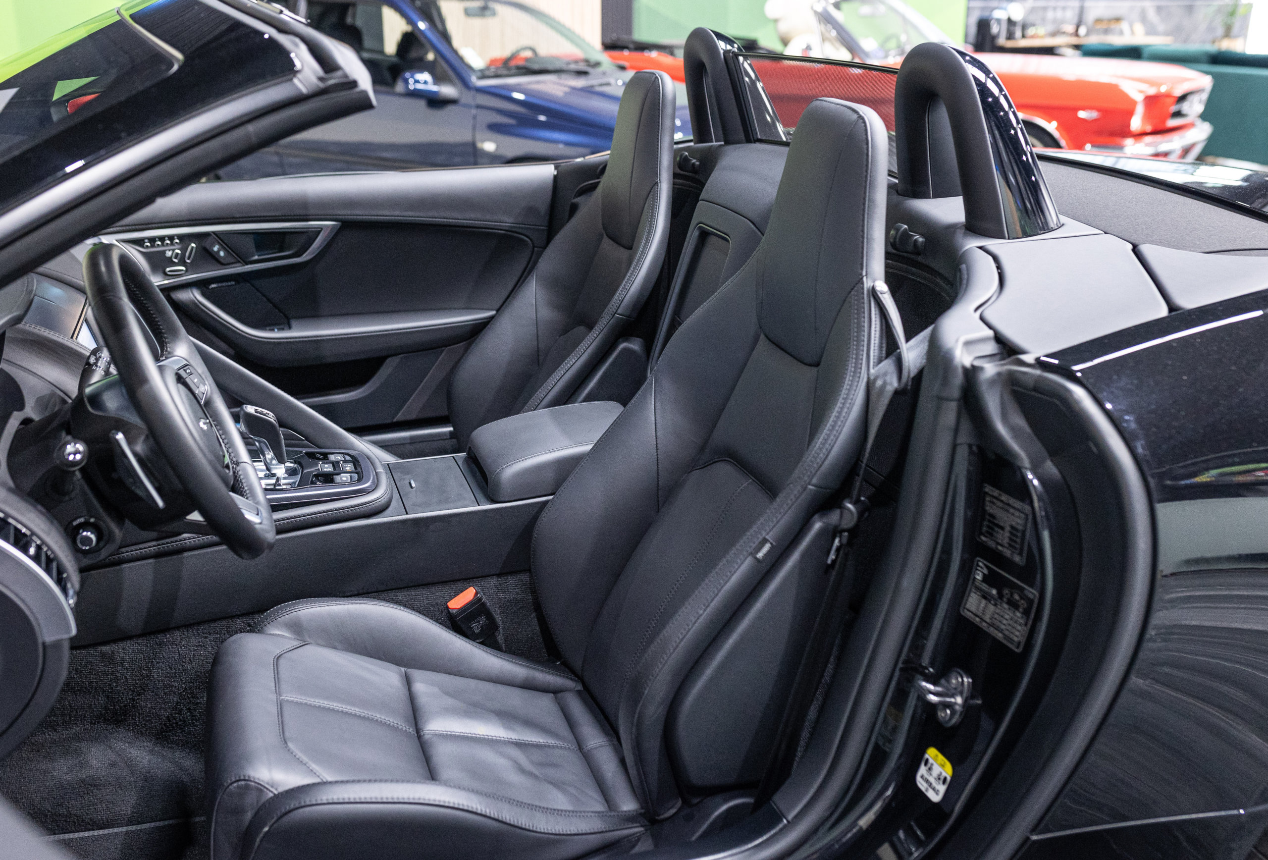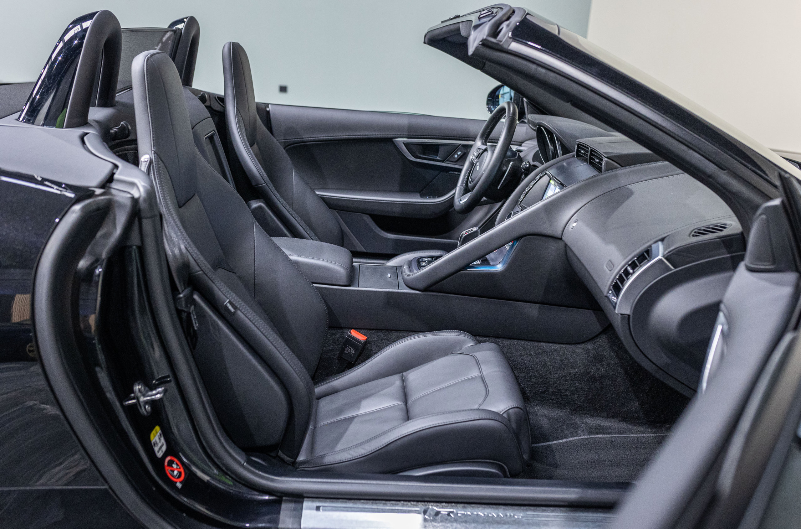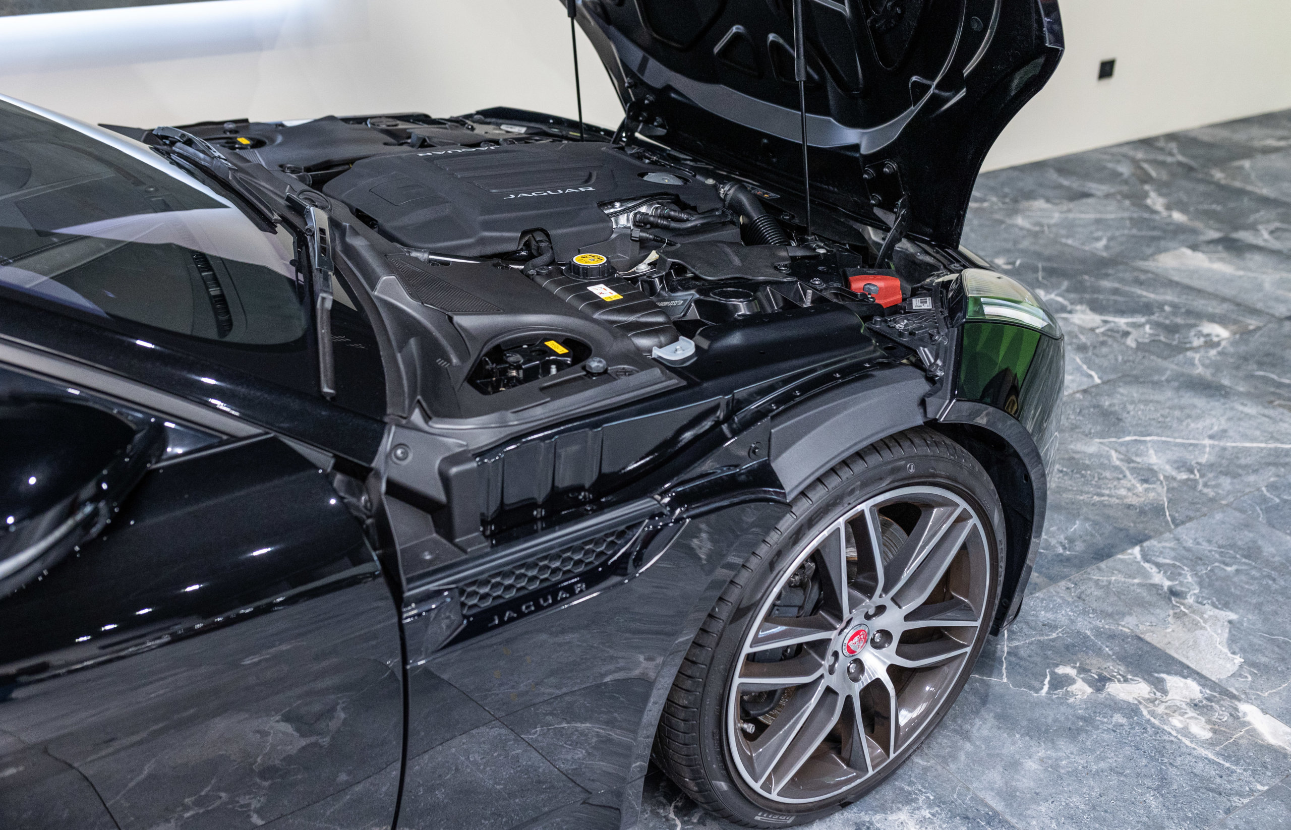 EXTEN’Z CARS vous propose cette magnifique JAGUAR F-Type Cabriolet (Roadster) 3.0 V6 S AWD Phase II développant 380 CV (28cv) mise en circulation le 16/03/2018 de couleur Noir Santorini Métallisée. Séduisante à l’extérieur, la Jaguar F-Type l’est tout autant à son bord. Le style est très exclusif, mais aussi très épuré, La position de conduite est irréprochable, d’autant que les sièges offrent de multiples réglages. La Jaguar F-Type est motorisée par un V6 3,0 litres suralimenté de 380 ch. C’est la première fois qu’un V6 aura autant flatté nos tympans. Bien aidée par sa boîte automatique à 8 rapports. Structure en aluminium, liaisons au sol allégées, et mécaniques affûtées sont au programme. Poignée de maintien destinée au passager, bouton de mode Sport typé aviation, Le travail est abouti.