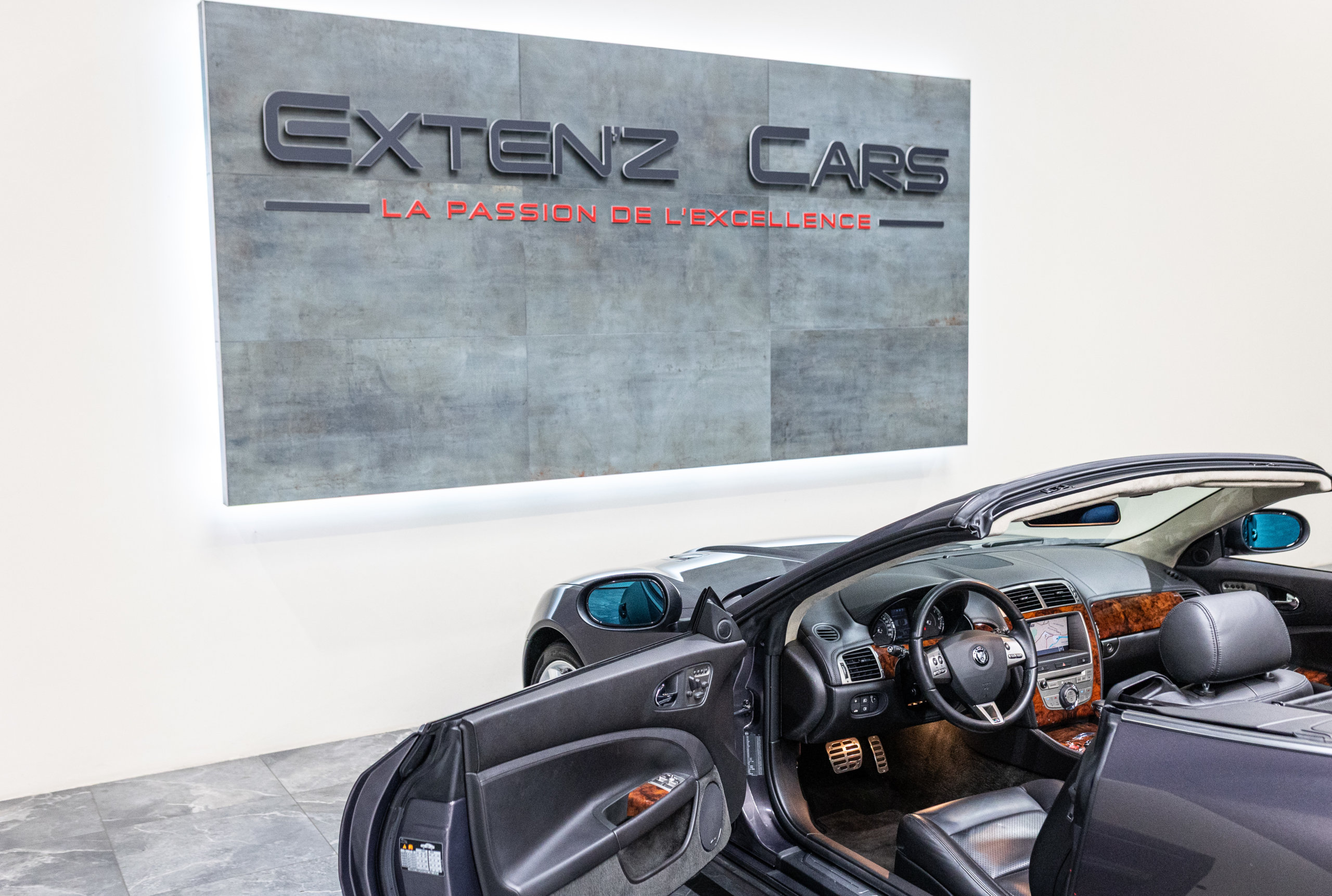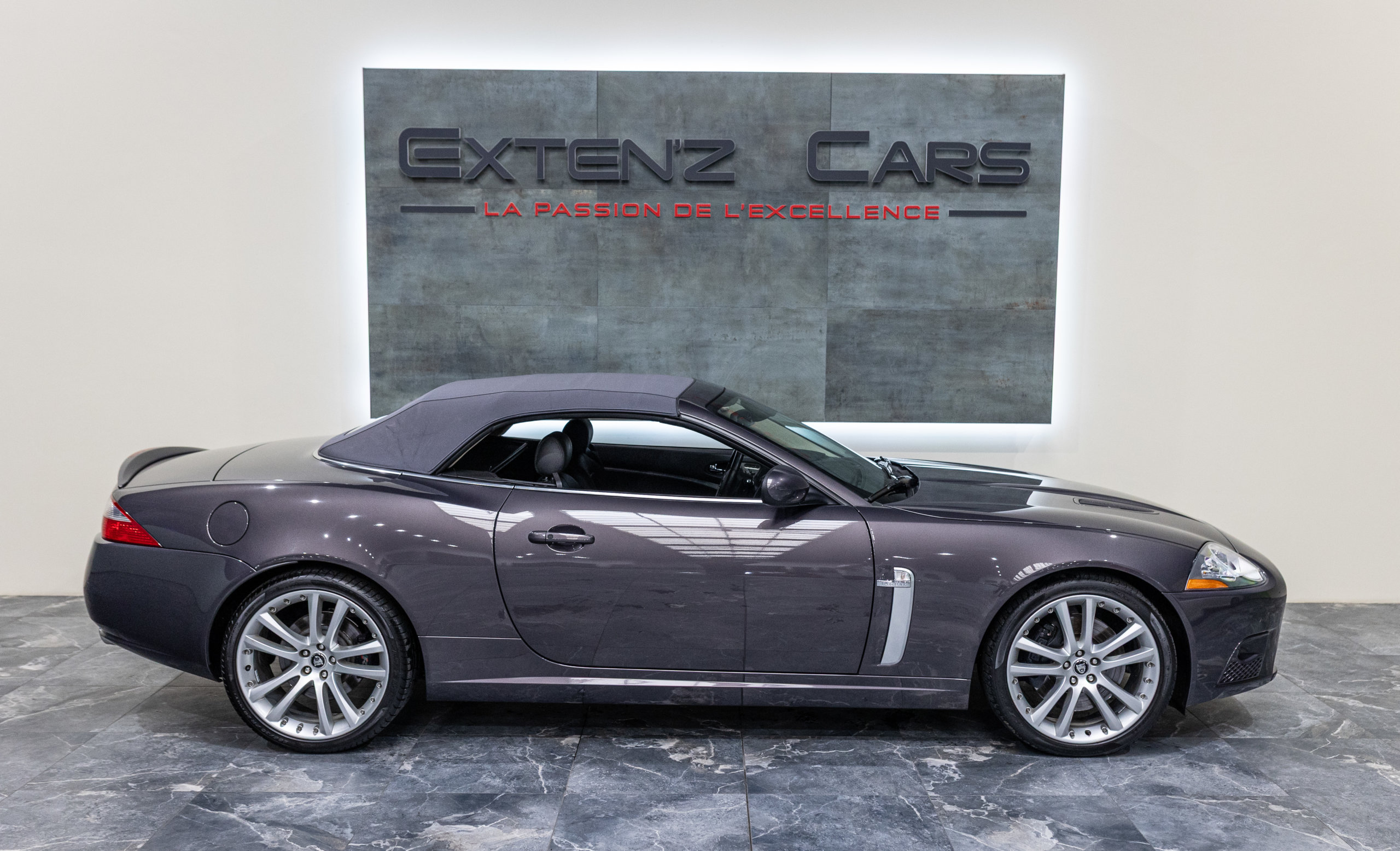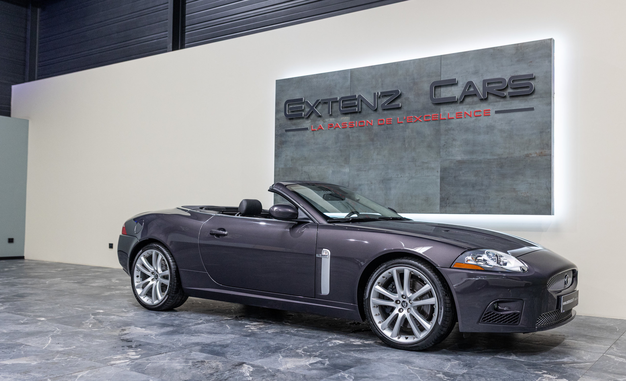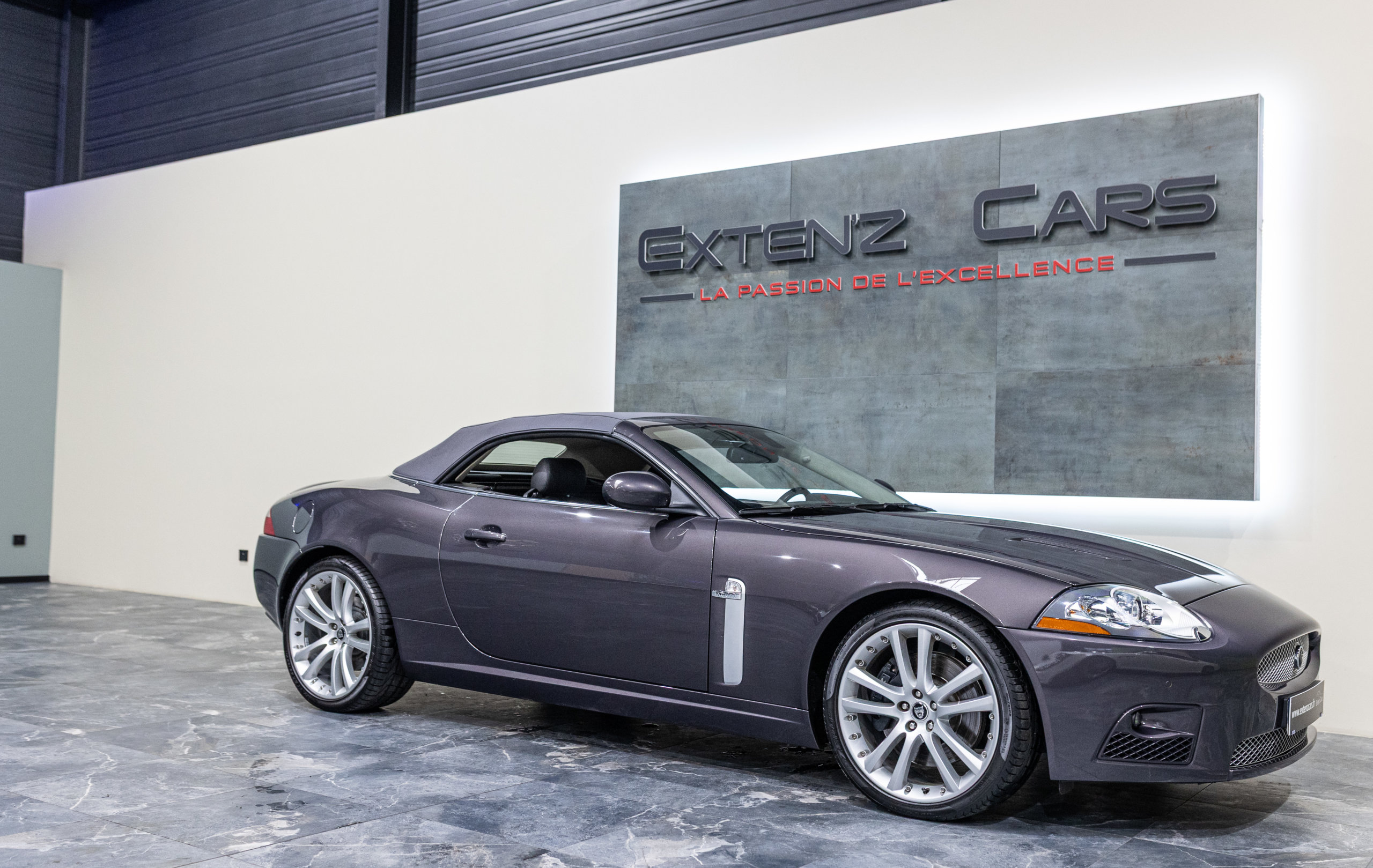 EXTEN’Z CARS vous propose une magnifique Jaguar XKR Cabriolet 4.2 V8 Kompressor de 416 CV (32cv), mise en circulation le 22/04/2009. Dans sa sublime robe Pearl Grey, Ce cabriolet rare incarne à la perfection l’esprit du grand tourisme à l’anglaise. La XKR, c’est l’équilibre idéal entre le plaisir d’une conduite coulée et la possibilité de libérer toute sa puissance en un instant, cheveux au vent, accompagné de la sonorité envoûtante du compresseur. Son châssis en aluminium et sa boîte automatique à 6 rapports en font une GT à la fois agile et confortable, capable d’aligner les kilomètres avec aisance tout en offrant des sensations intenses dès qu’on la sollicite.