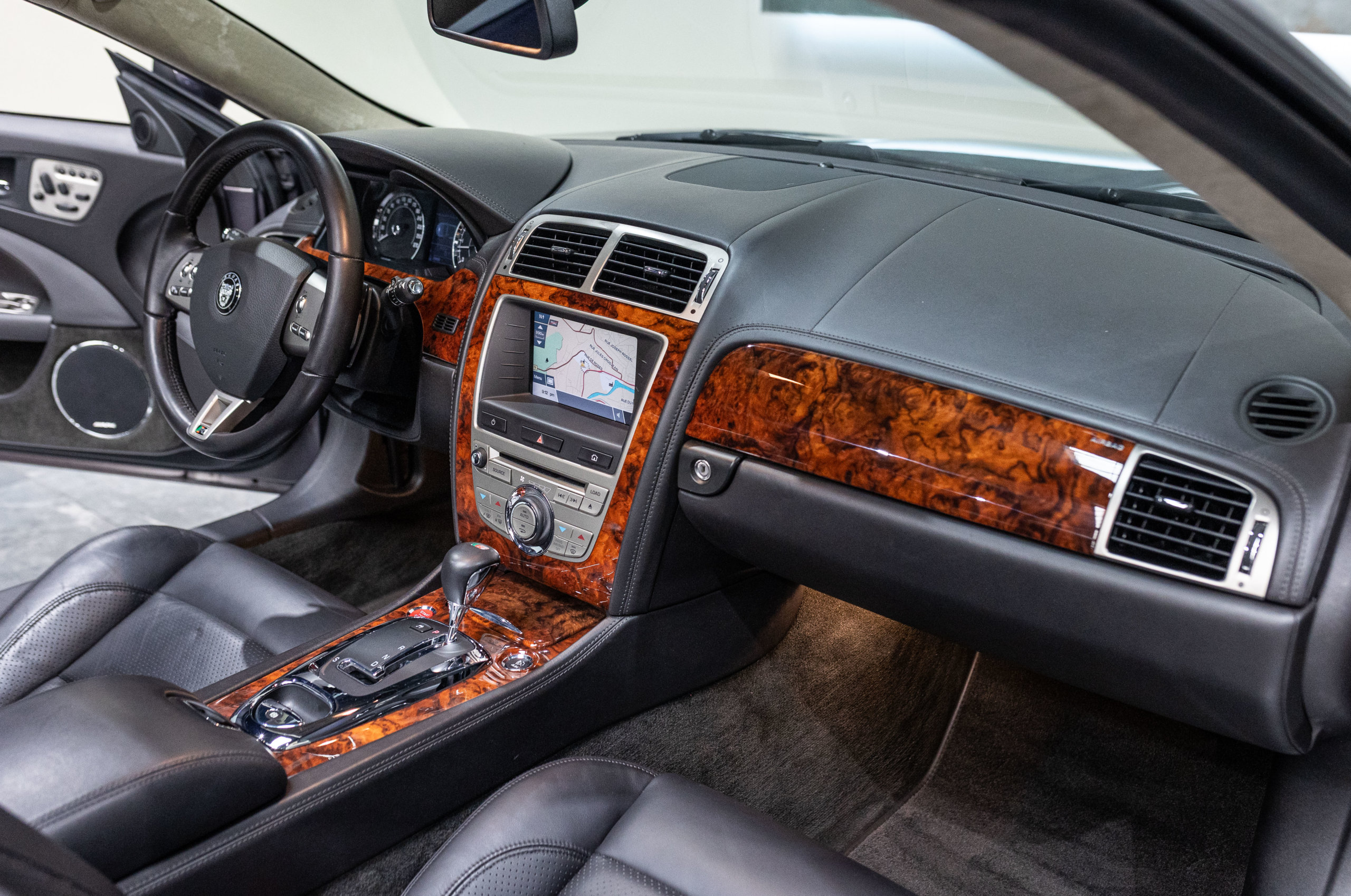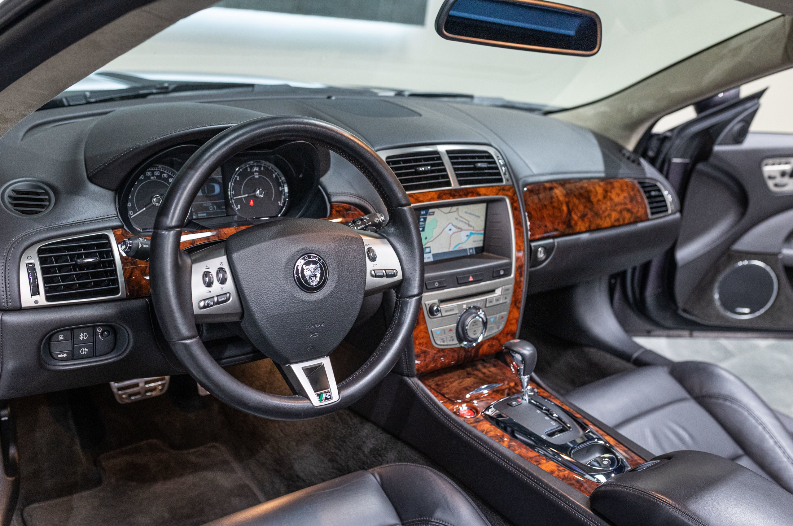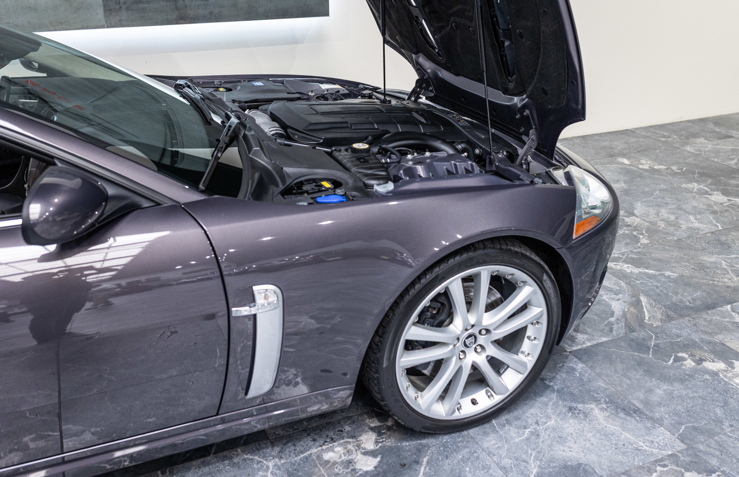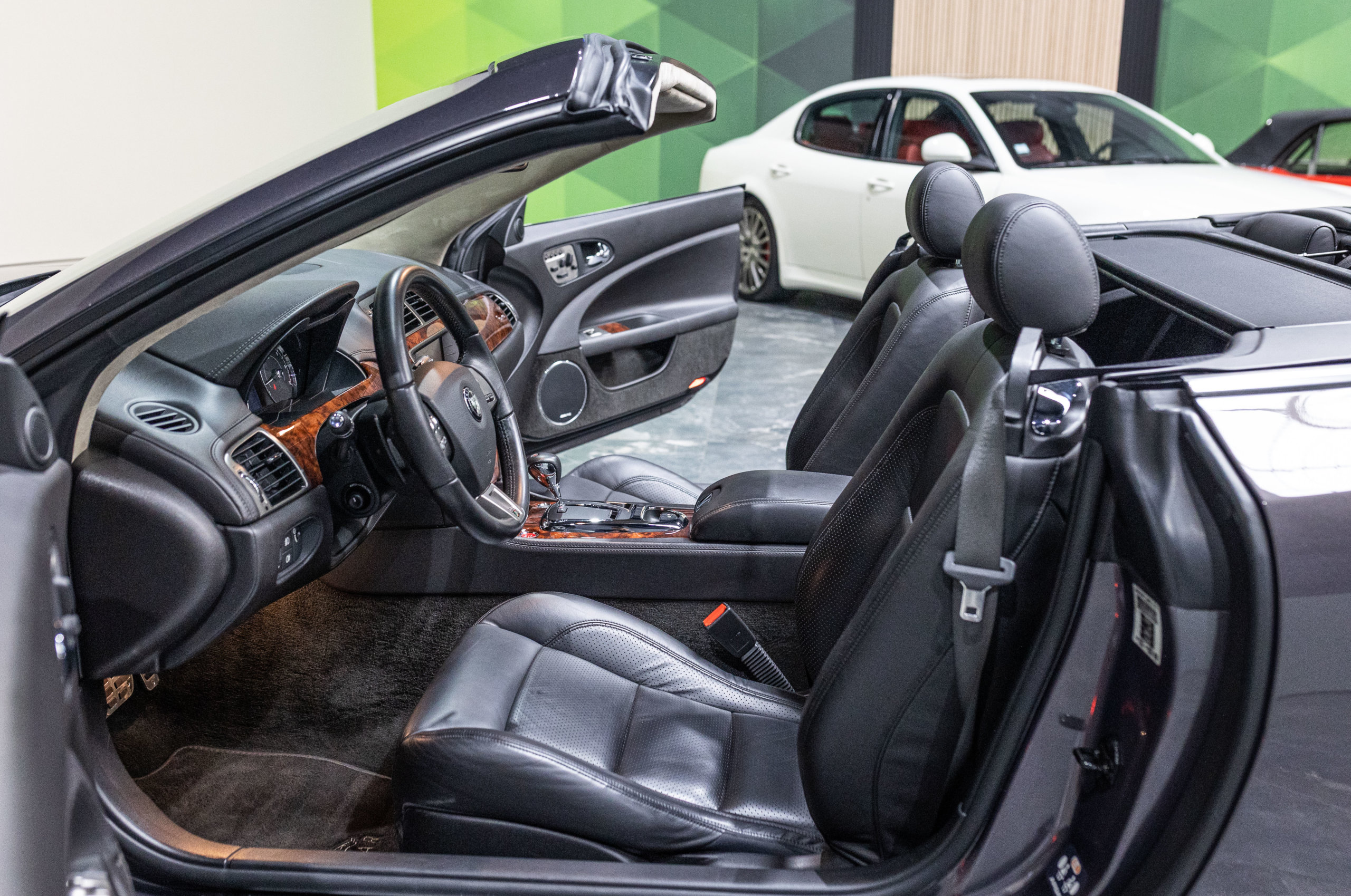 EXTEN’Z CARS vous propose une magnifique Jaguar XKR Cabriolet 4.2 V8 Kompressor de 416 CV (32cv), mise en circulation le 22/04/2009. Dans sa sublime robe Pearl Grey, Ce cabriolet rare incarne à la perfection l’esprit du grand tourisme à l’anglaise. La XKR, c’est l’équilibre idéal entre le plaisir d’une conduite coulée et la possibilité de libérer toute sa puissance en un instant, cheveux au vent, accompagné de la sonorité envoûtante du compresseur. Son châssis en aluminium et sa boîte automatique à 6 rapports en font une GT à la fois agile et confortable, capable d’aligner les kilomètres avec aisance tout en offrant des sensations intenses dès qu’on la sollicite.