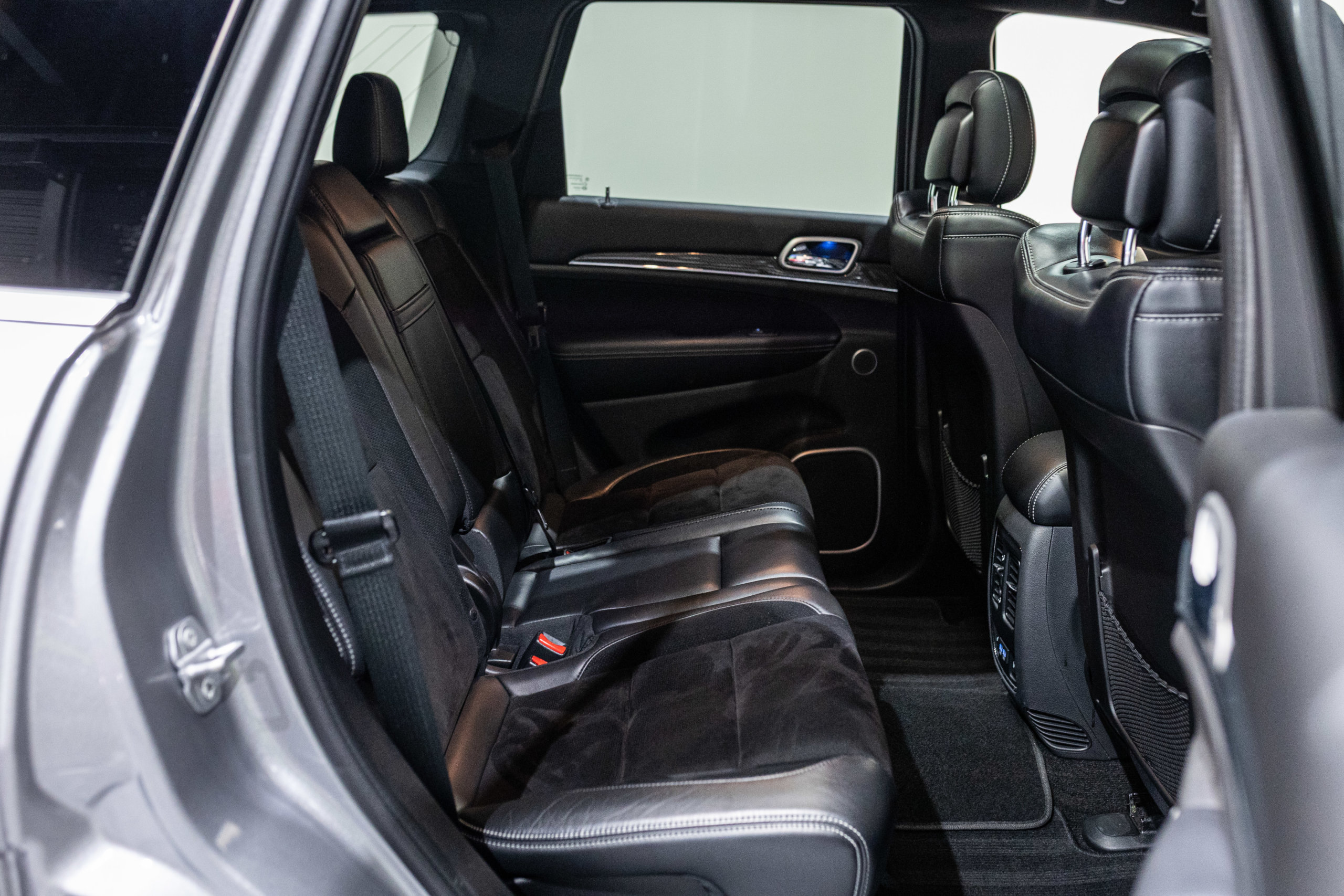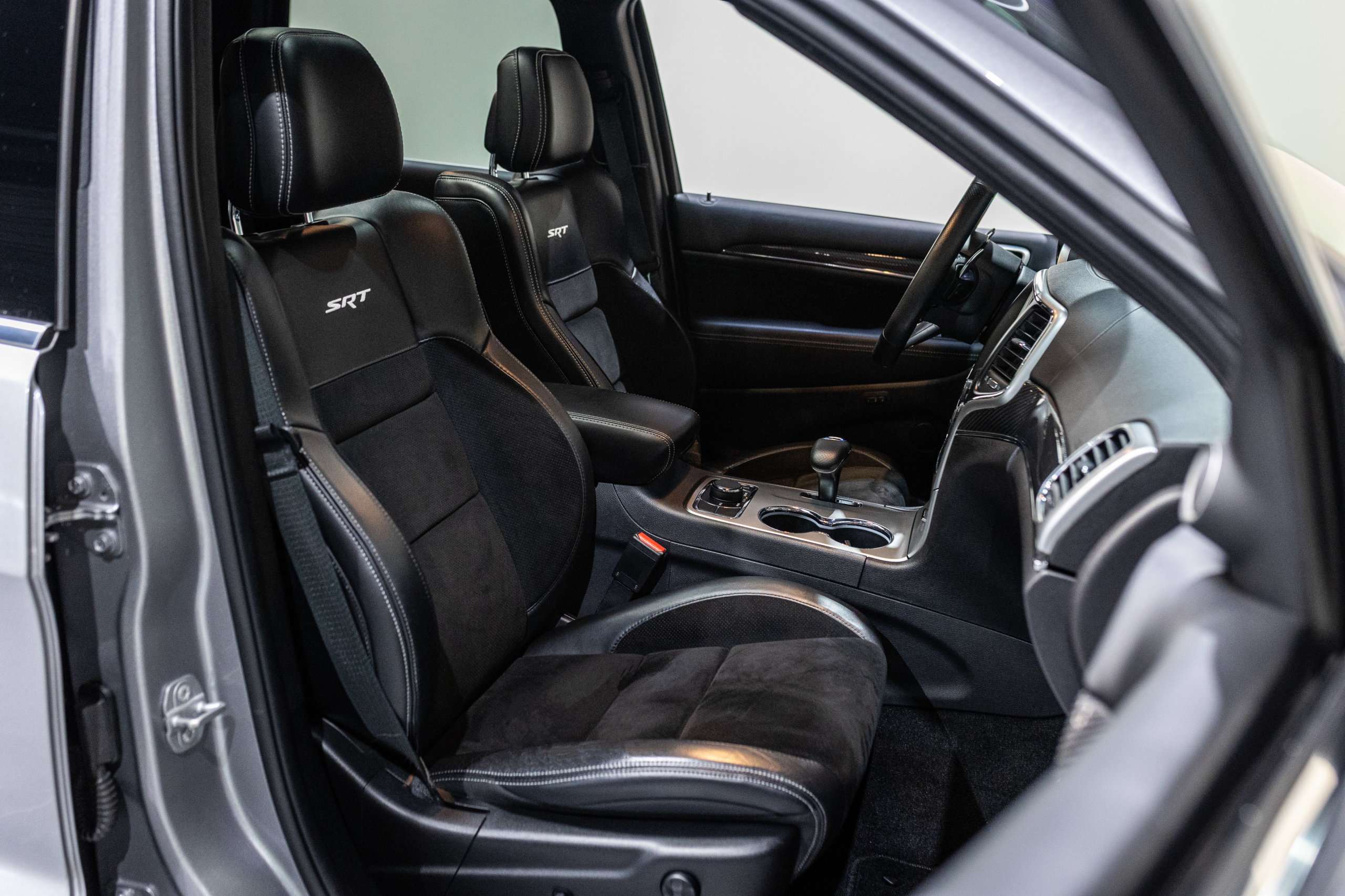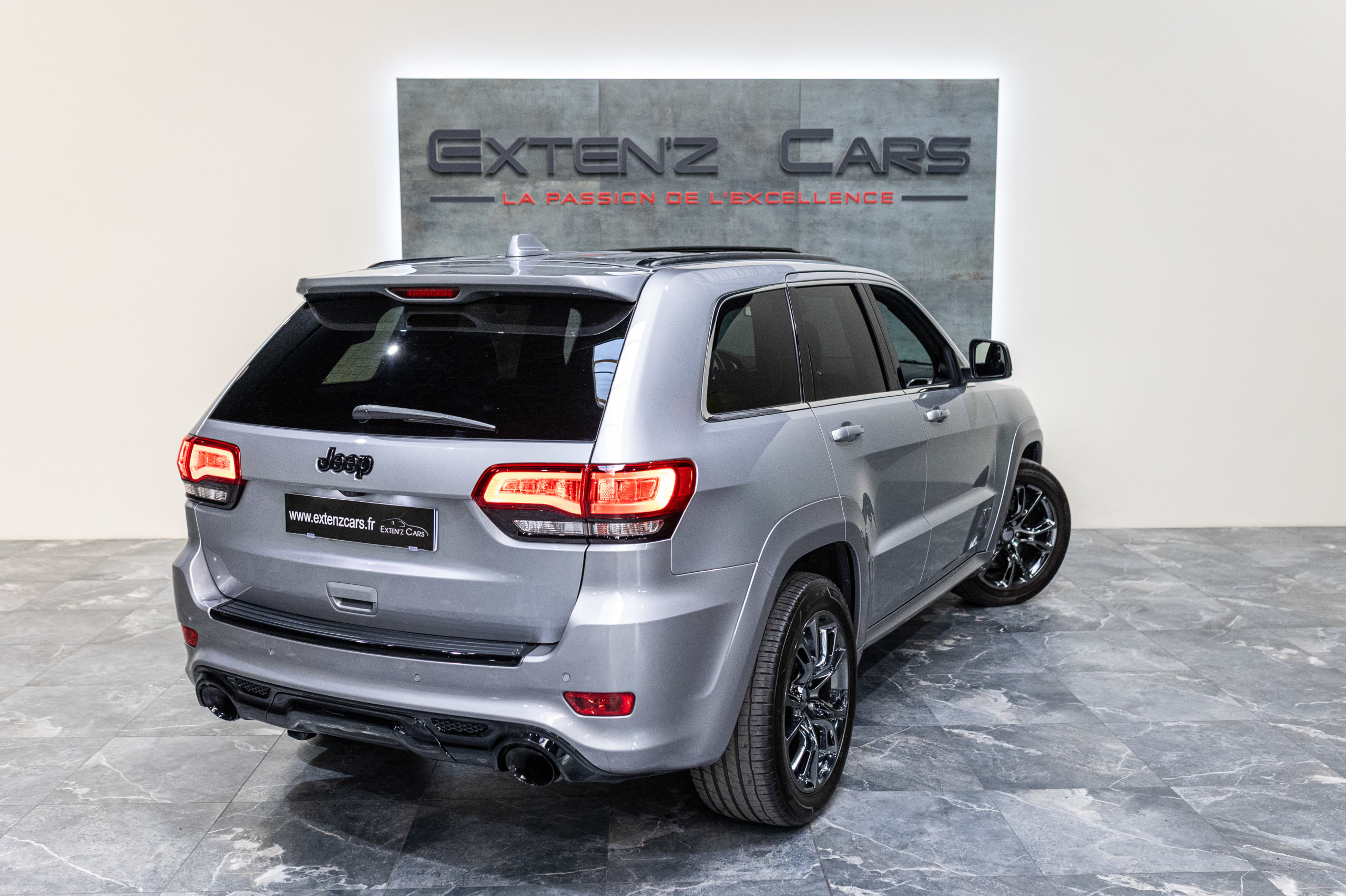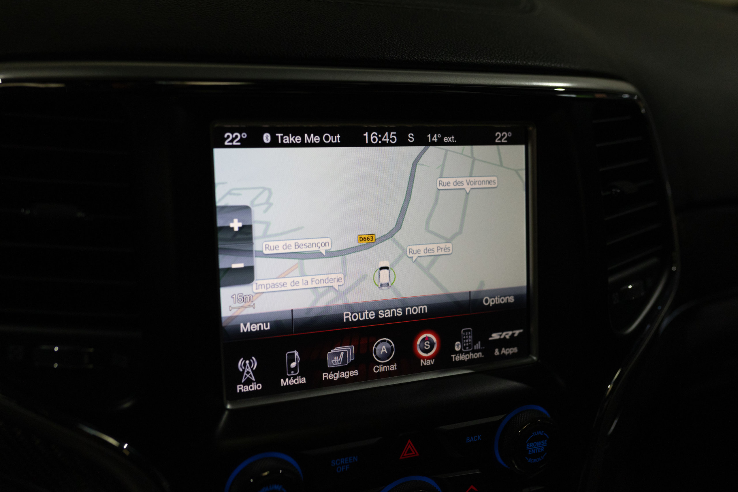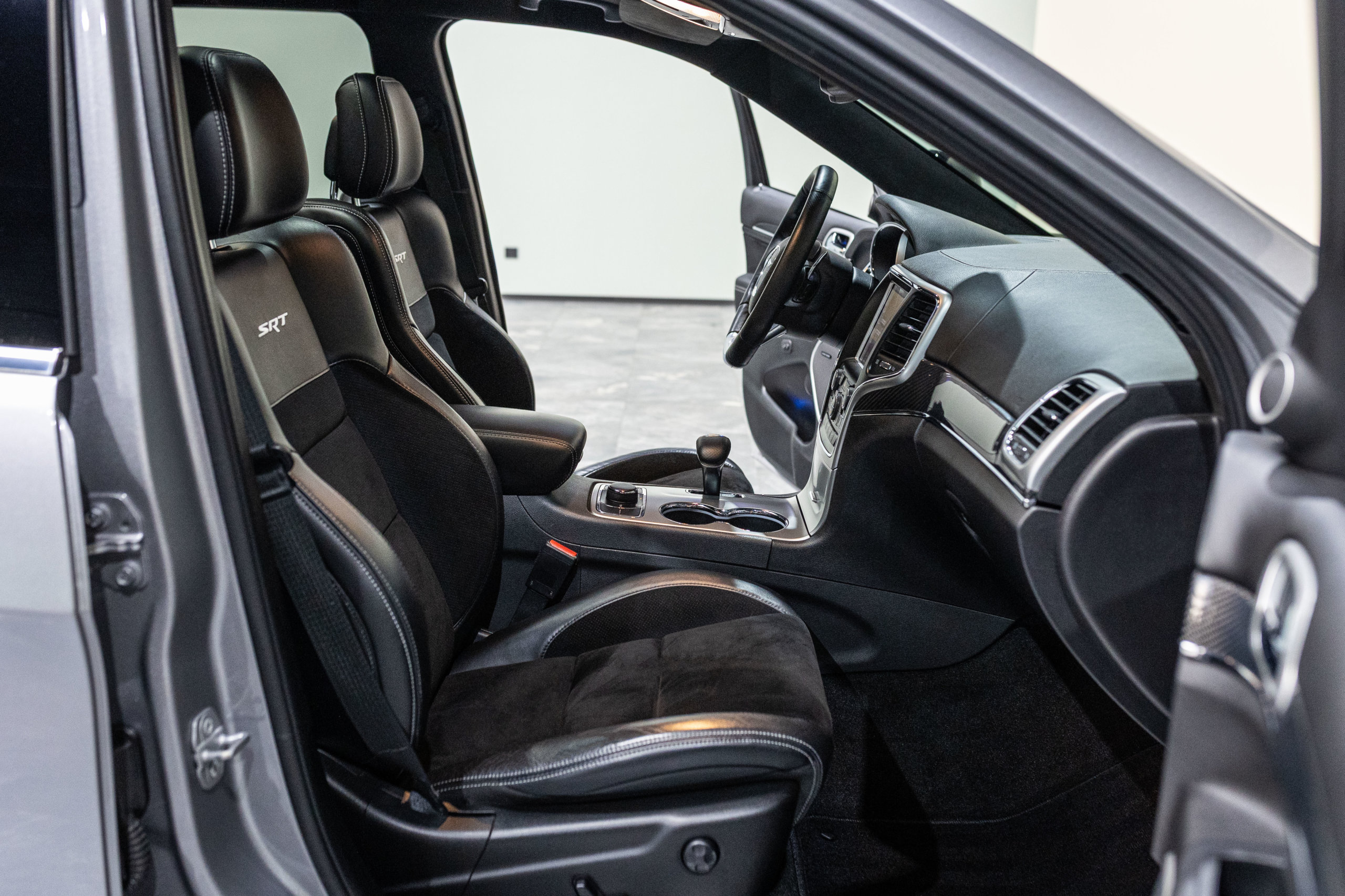 EXTEN’Z CARS vous propose ce magnifique et rare Jeep Grand Cherokee 6.4 HEMI SRT-8, Trois lettres mythiques pour Street & Racing Technology qui annoncent la couleur. Sous le capot abrite un moteur atmosphérique V8 HEMI de 6,4 litres de cylindrée : un gros bloc huit cylindres atmosphérique, délivrant une puissance de 468 CV (38cv), mise en circulation le 10/11/2015 de couleur Billet Silver Métallisée. Mécanique développée pour offrir de hautes performances, d’ailleurs pour parler de performances, le SRT dispose d’un système Launch Control comme on peut trouver dans les meilleures sportives du marché. Les accélérations à plein régime sont toujours accompagnées d’un rugissement du V8 qui donne des frissons. La mécanique est couplée à une boîte automatique ZF 8 rapports, probablement l’une des meilleures transmissions automatiques du marché. Le passage des vitesses est ultra rapide aussi bien en mode normal qu’en mode sport. C’est un régal et si nécessaire, vous pouvez également prendre le contrôle au moyen des palettes situées derrière le volant. Ses jantes de 20 pouces, qui laissent entrevoir les freins Brembo peints en rouge sur lesquels sont montés des pneus ultralarges. Ce Grand Cherokee dispose d’un système Selec-Trac qui régule le contrôle de stabilité, la suspension, le blocage du différentiel, la réactivité du moteur et les changements de rapports. Le Grand Cherokee se manie avec aisance et dispose d’un excellent rayon de braquage. Les assistances au parking avant et arrière, plus la caméra de recul, vous permettront de vous aventurer en ville sans aucun souci.