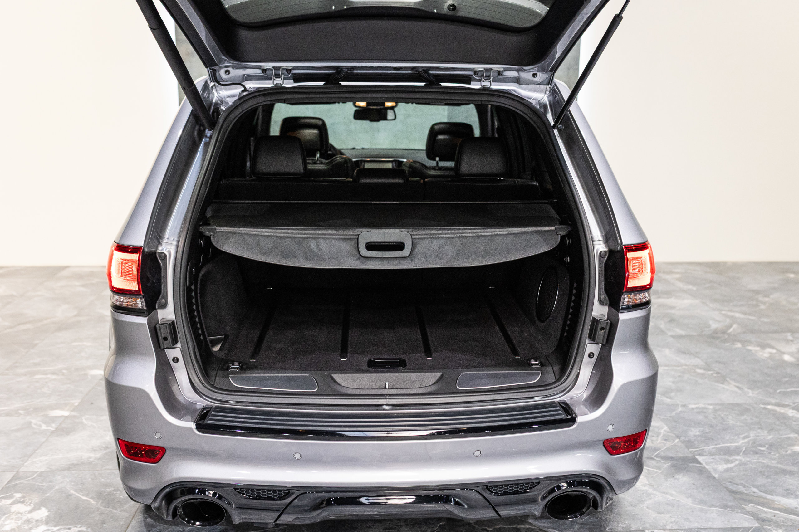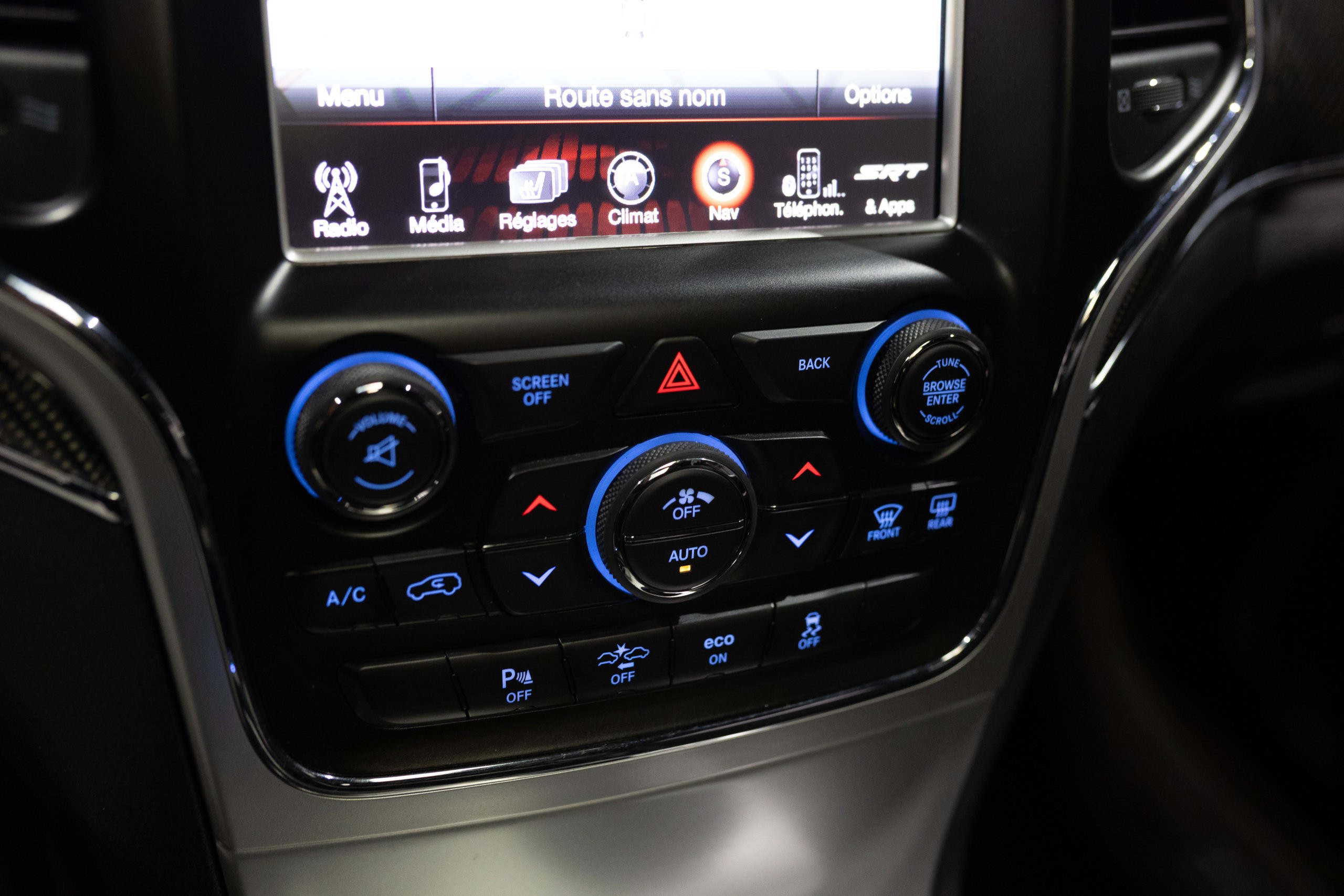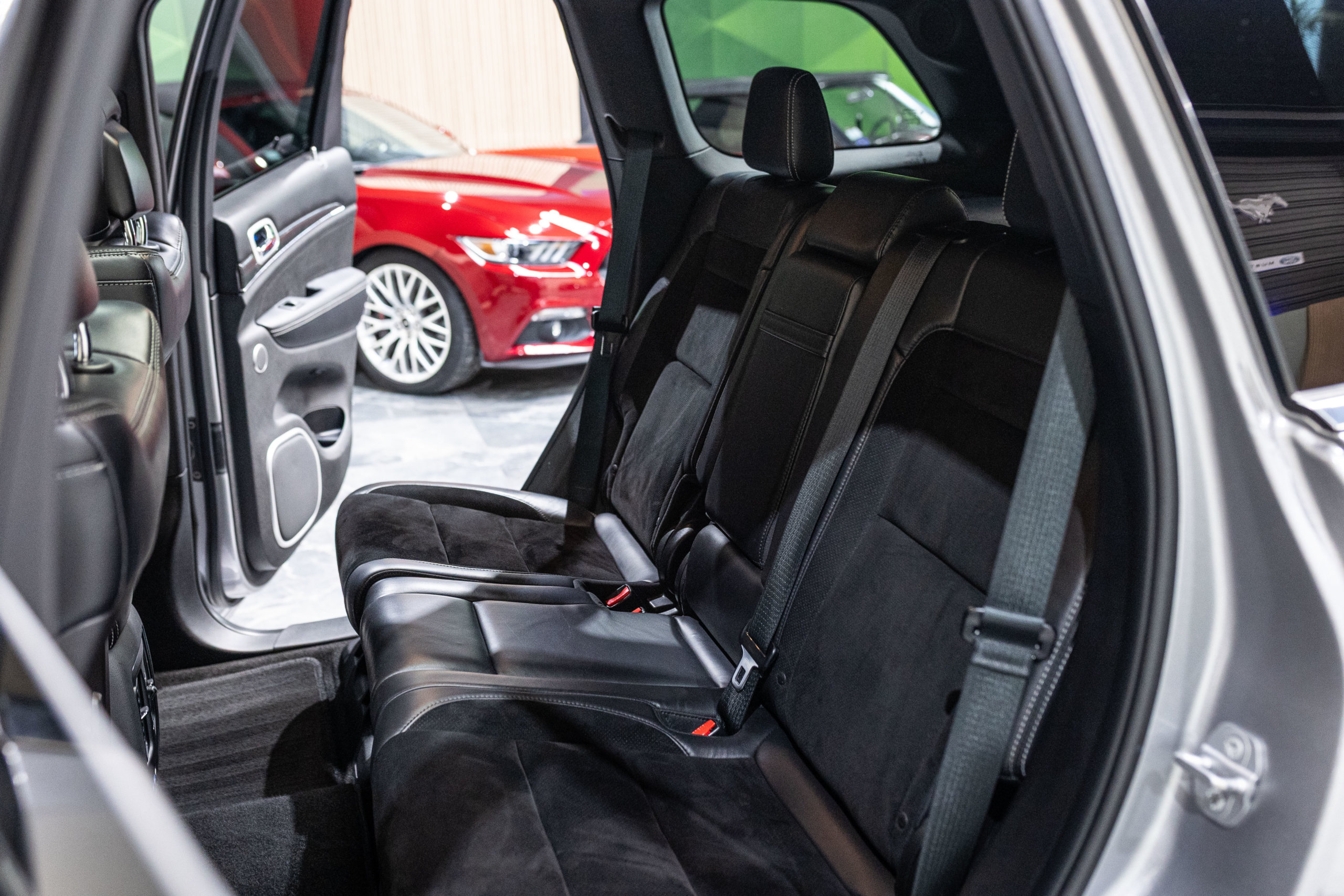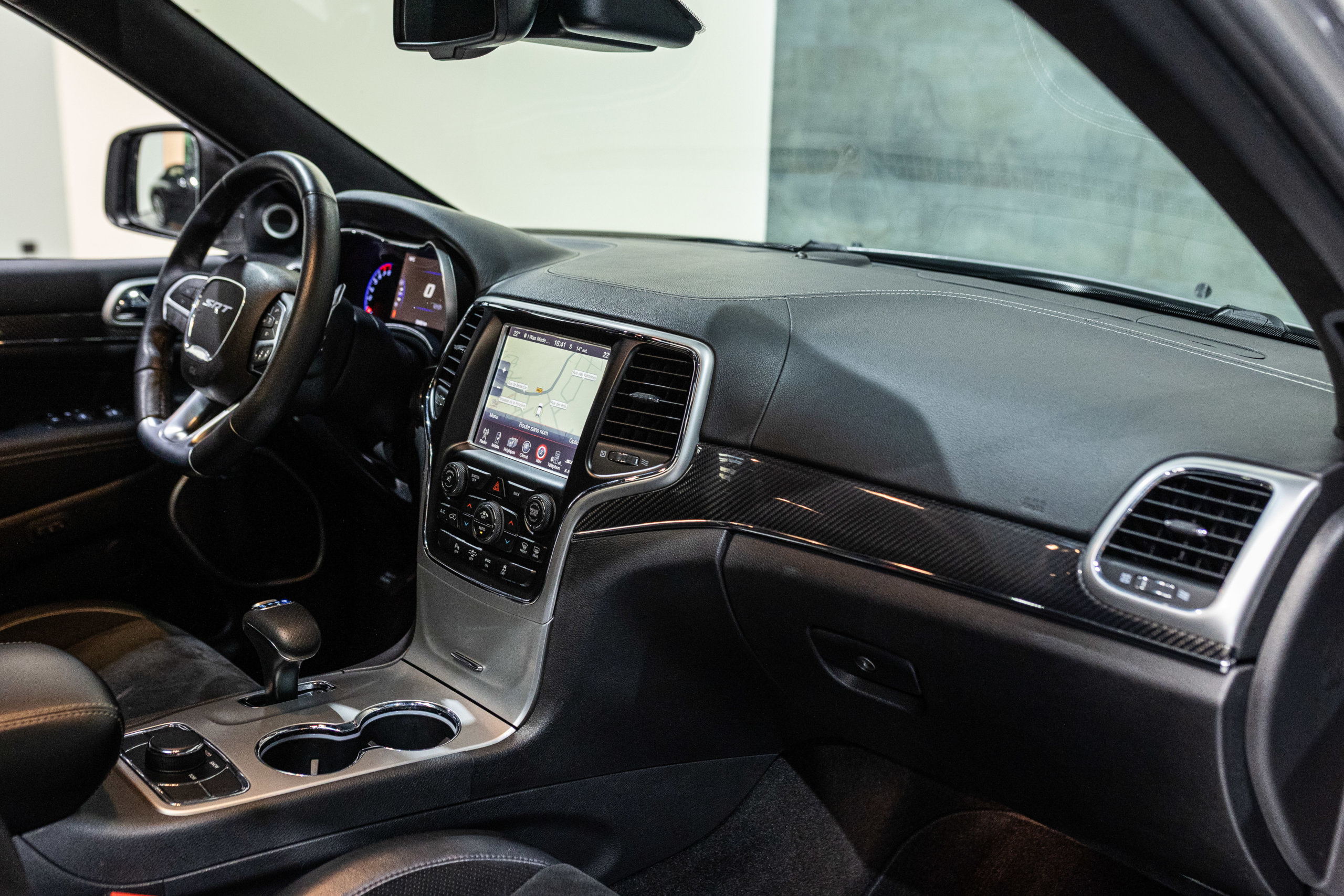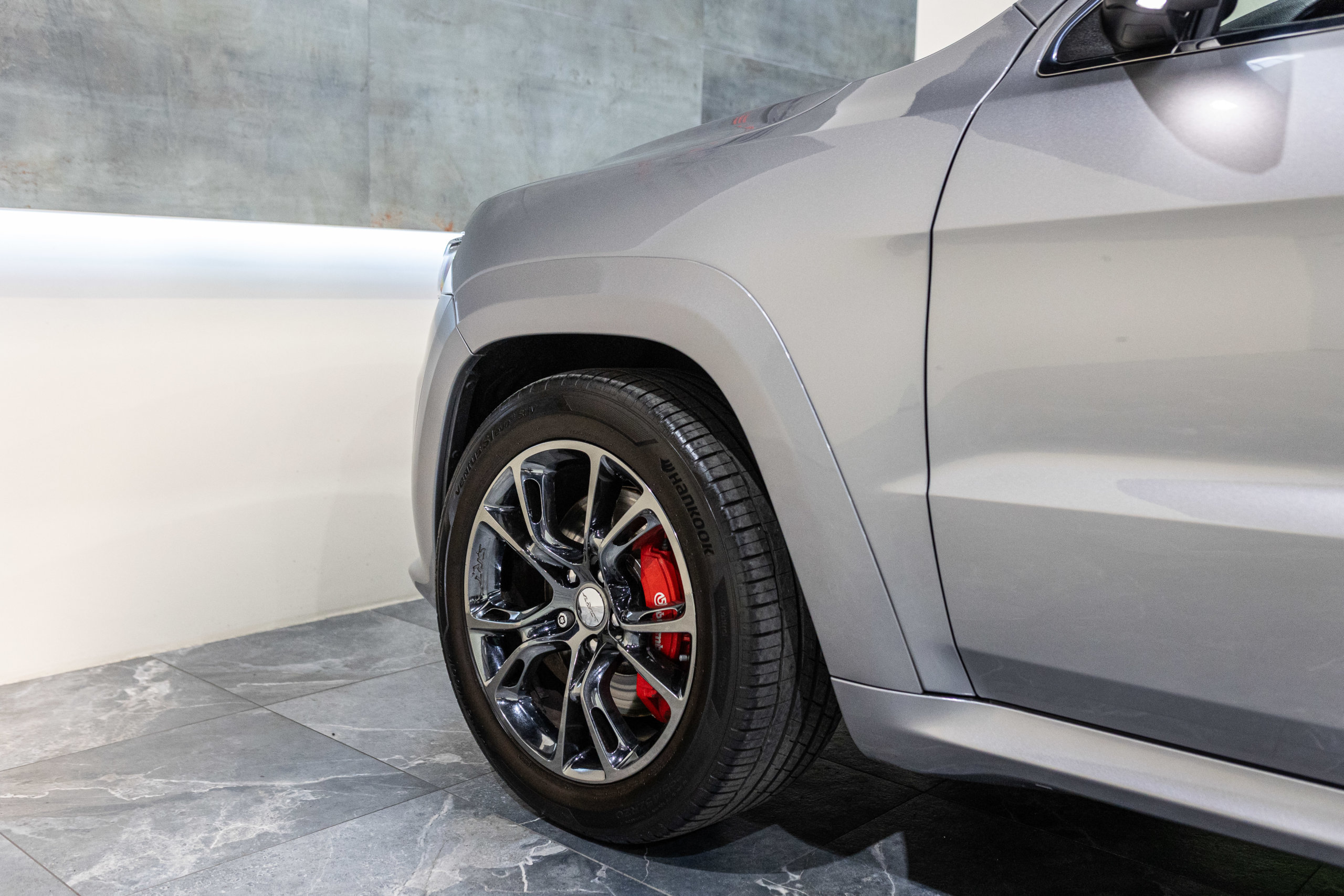 EXTEN’Z CARS vous propose ce magnifique et rare Jeep Grand Cherokee 6.4 HEMI SRT-8, Trois lettres mythiques pour Street & Racing Technology qui annoncent la couleur. Sous le capot abrite un moteur atmosphérique V8 HEMI de 6,4 litres de cylindrée : un gros bloc huit cylindres atmosphérique, délivrant une puissance de 468 CV (38cv), mise en circulation le 10/11/2015 de couleur Billet Silver Métallisée. Mécanique développée pour offrir de hautes performances, d’ailleurs pour parler de performances, le SRT dispose d’un système Launch Control comme on peut trouver dans les meilleures sportives du marché. Les accélérations à plein régime sont toujours accompagnées d’un rugissement du V8 qui donne des frissons. La mécanique est couplée à une boîte automatique ZF 8 rapports, probablement l’une des meilleures transmissions automatiques du marché. Le passage des vitesses est ultra rapide aussi bien en mode normal qu’en mode sport. C’est un régal et si nécessaire, vous pouvez également prendre le contrôle au moyen des palettes situées derrière le volant. Ses jantes de 20 pouces, qui laissent entrevoir les freins Brembo peints en rouge sur lesquels sont montés des pneus ultralarges. Ce Grand Cherokee dispose d’un système Selec-Trac qui régule le contrôle de stabilité, la suspension, le blocage du différentiel, la réactivité du moteur et les changements de rapports. Le Grand Cherokee se manie avec aisance et dispose d’un excellent rayon de braquage. Les assistances au parking avant et arrière, plus la caméra de recul, vous permettront de vous aventurer en ville sans aucun souci.