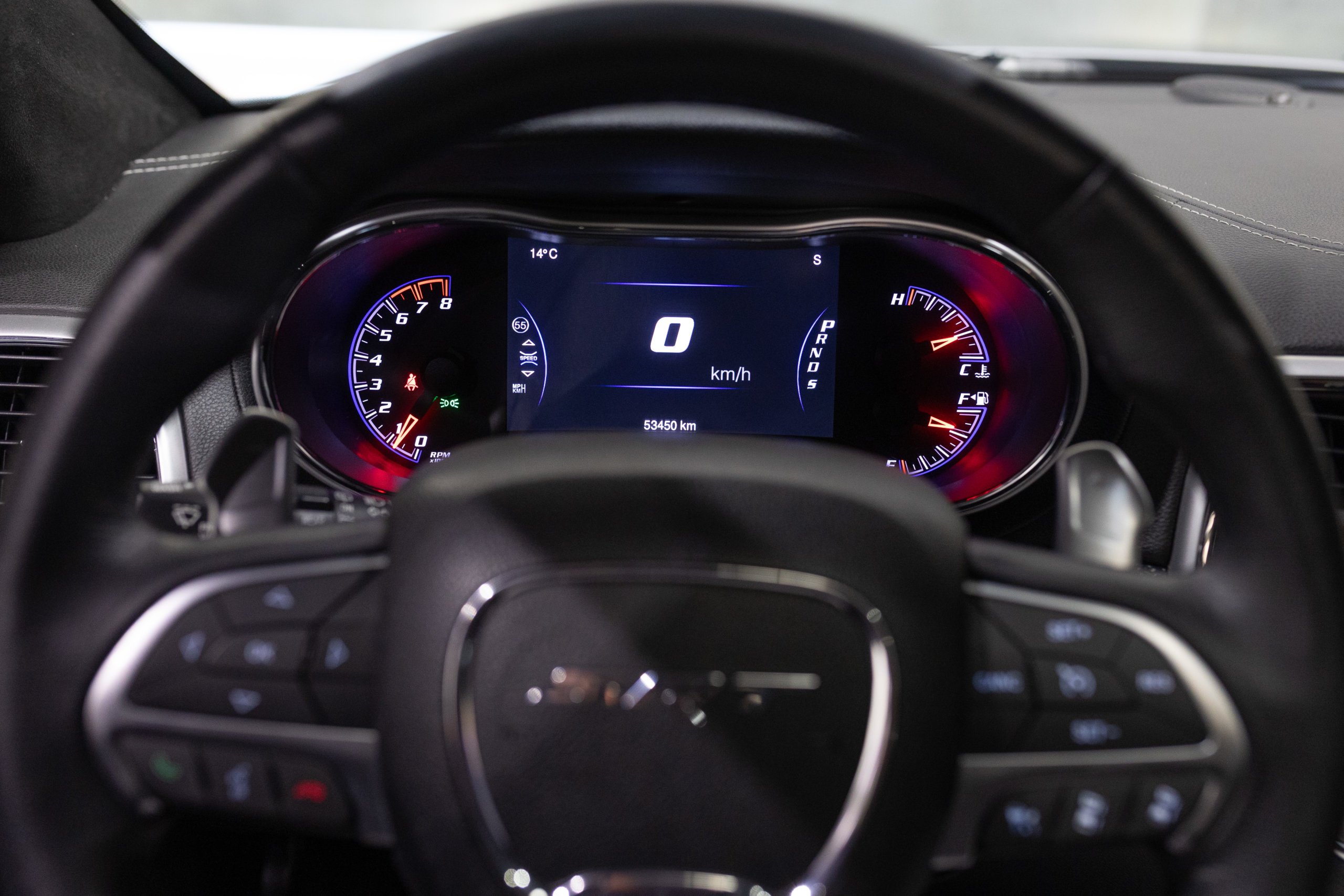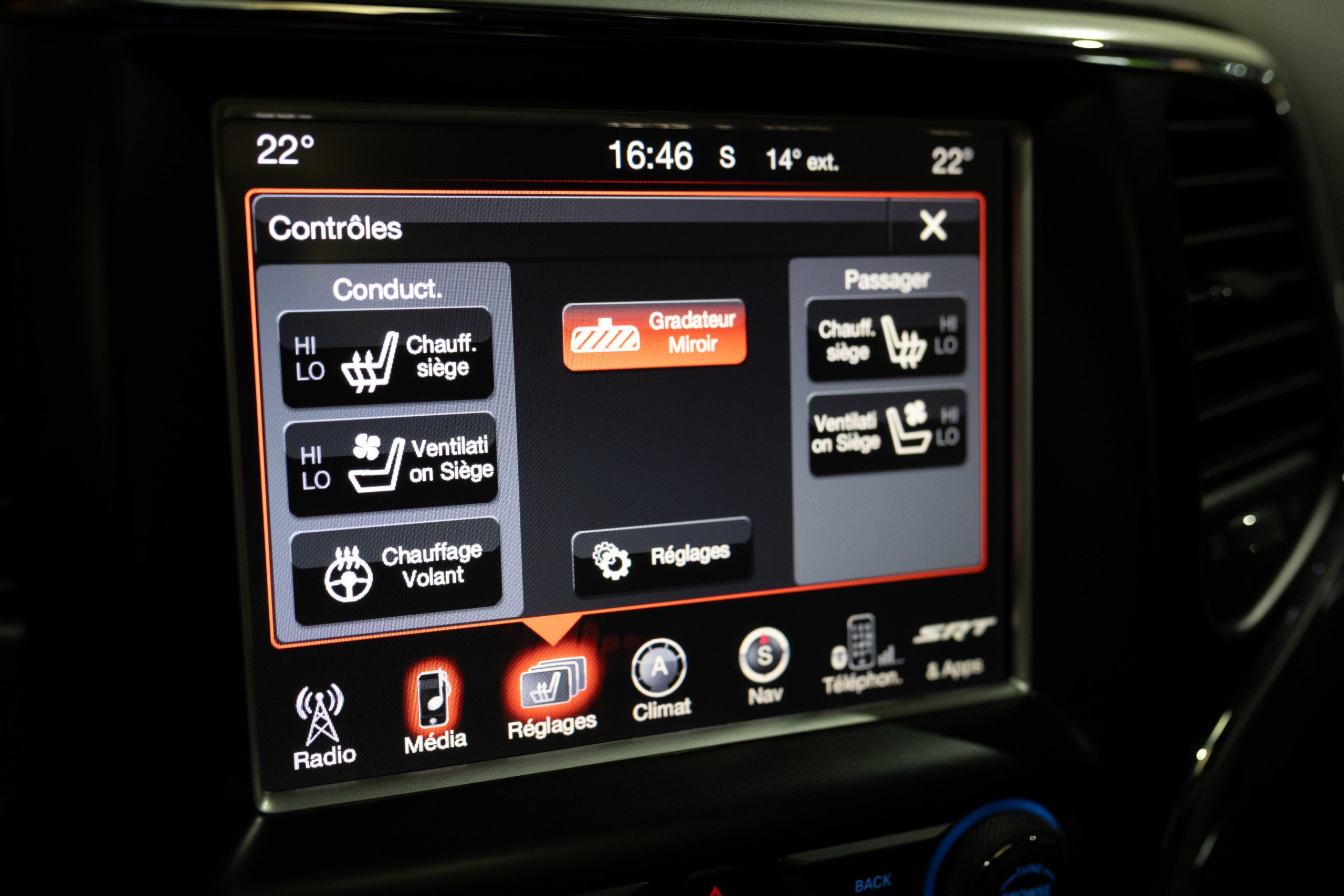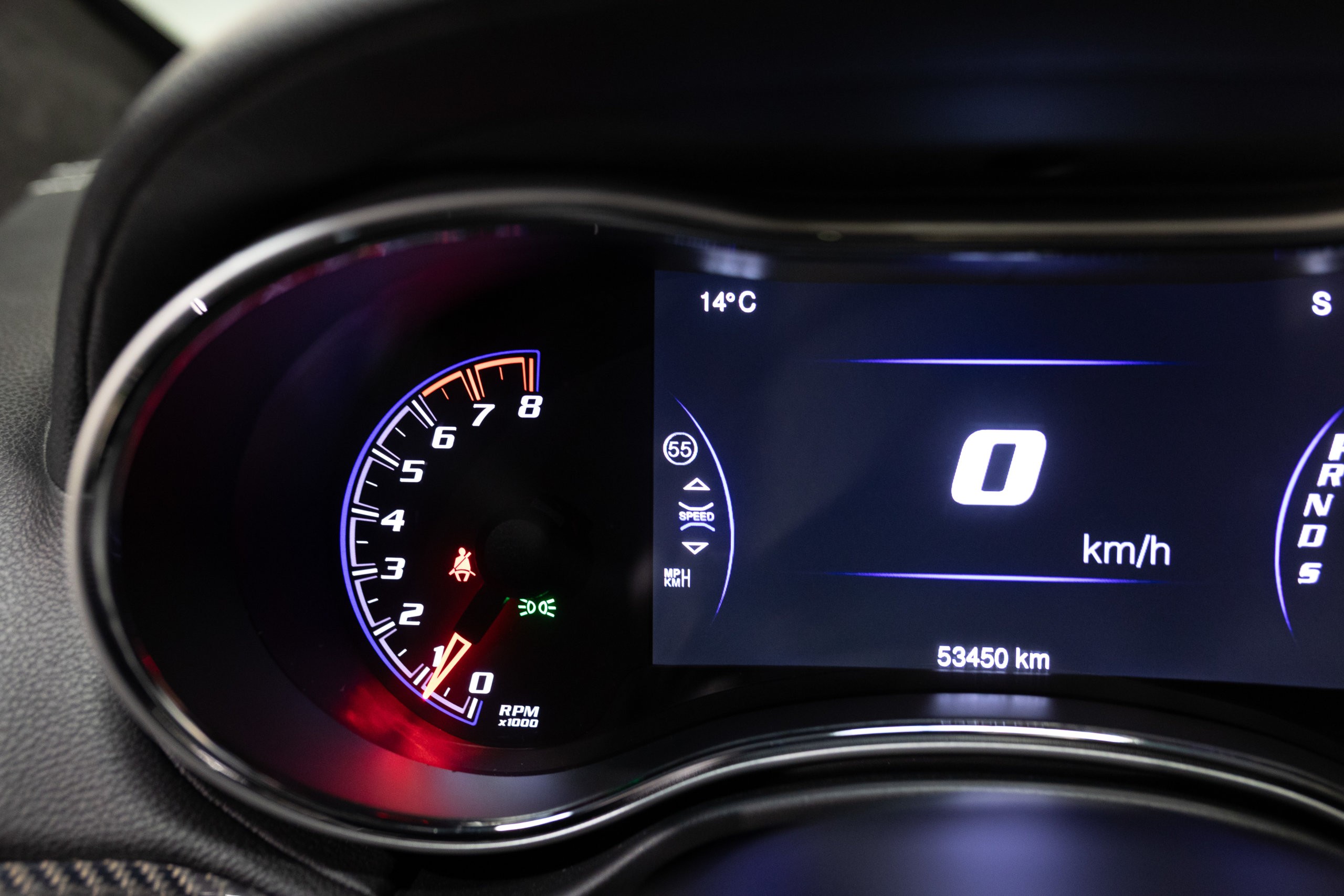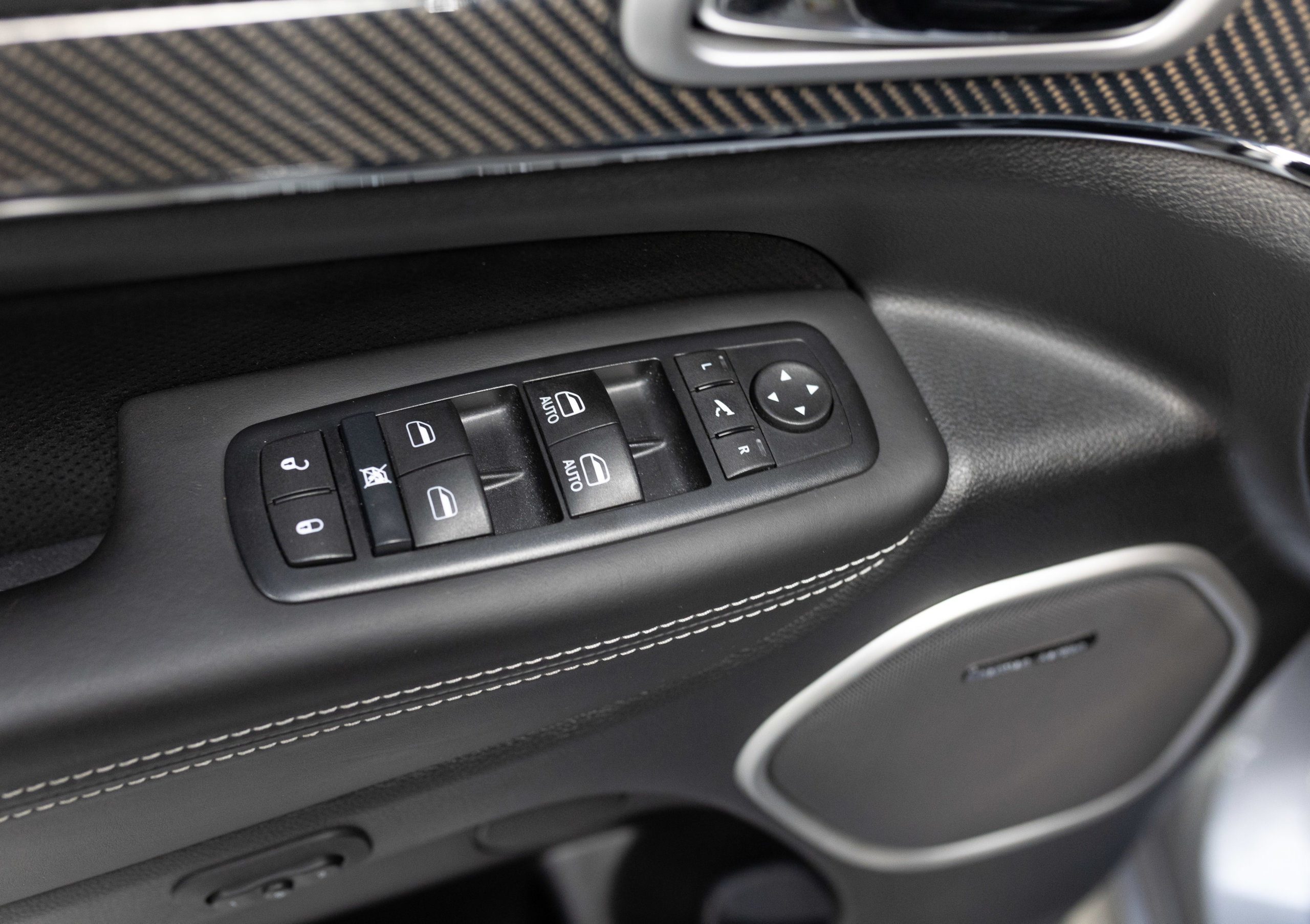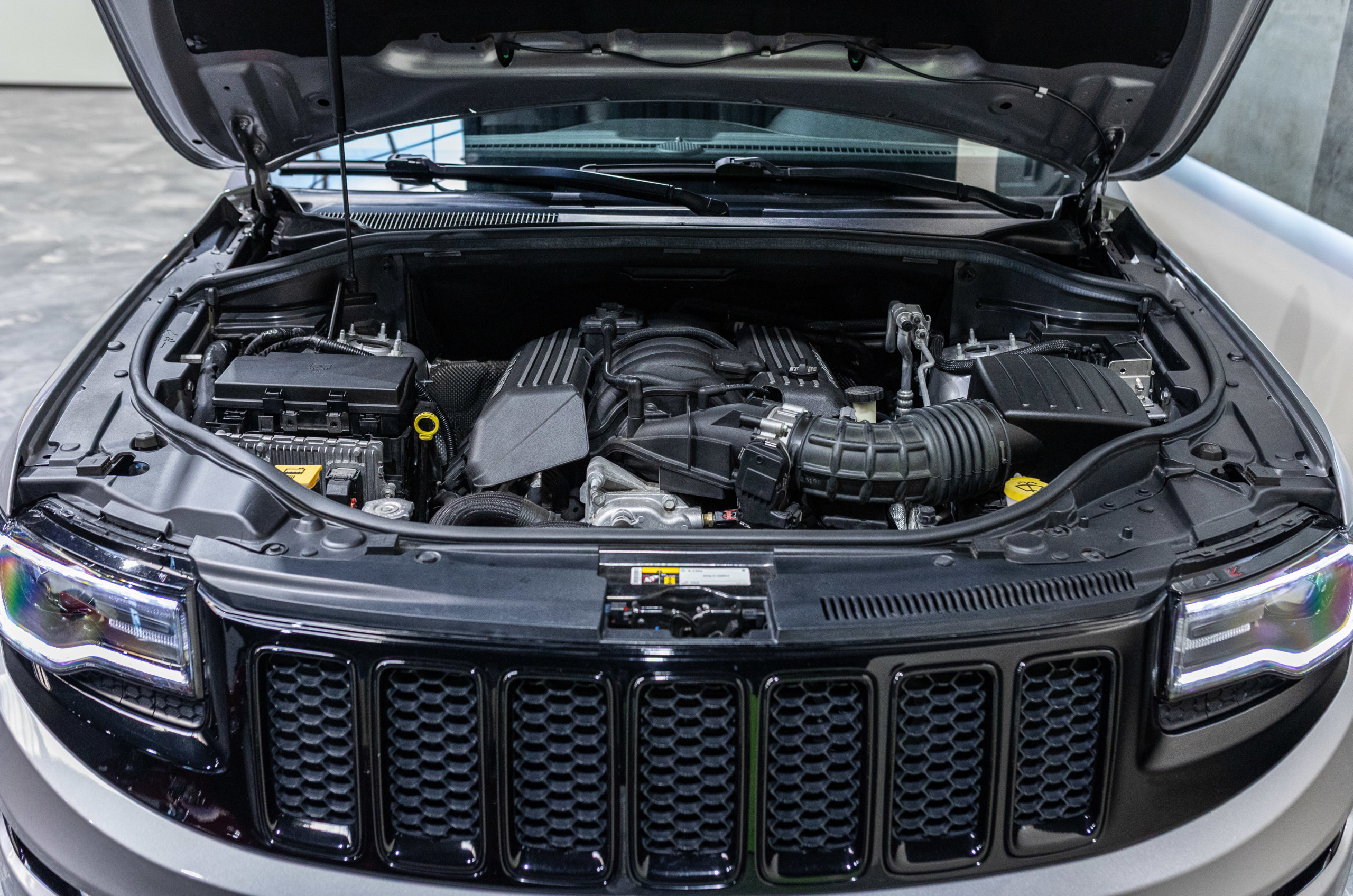 EXTEN’Z CARS vous propose ce magnifique et rare Jeep Grand Cherokee 6.4 HEMI SRT-8, Trois lettres mythiques pour Street & Racing Technology qui annoncent la couleur. Sous le capot abrite un moteur atmosphérique V8 HEMI de 6,4 litres de cylindrée : un gros bloc huit cylindres atmosphérique, délivrant une puissance de 468 CV (38cv), mise en circulation le 10/11/2015 de couleur Billet Silver Métallisée. Mécanique développée pour offrir de hautes performances, d’ailleurs pour parler de performances, le SRT dispose d’un système Launch Control comme on peut trouver dans les meilleures sportives du marché. Les accélérations à plein régime sont toujours accompagnées d’un rugissement du V8 qui donne des frissons. La mécanique est couplée à une boîte automatique ZF 8 rapports, probablement l’une des meilleures transmissions automatiques du marché. Le passage des vitesses est ultra rapide aussi bien en mode normal qu’en mode sport. C’est un régal et si nécessaire, vous pouvez également prendre le contrôle au moyen des palettes situées derrière le volant. Ses jantes de 20 pouces, qui laissent entrevoir les freins Brembo peints en rouge sur lesquels sont montés des pneus ultralarges. Ce Grand Cherokee dispose d’un système Selec-Trac qui régule le contrôle de stabilité, la suspension, le blocage du différentiel, la réactivité du moteur et les changements de rapports. Le Grand Cherokee se manie avec aisance et dispose d’un excellent rayon de braquage. Les assistances au parking avant et arrière, plus la caméra de recul, vous permettront de vous aventurer en ville sans aucun souci.