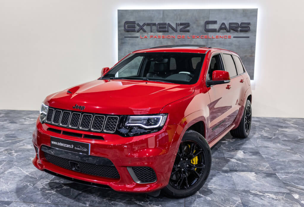 EXTEN’Z CARS vous propose ce magnifique et rare Jeep Grand Cherokee Trackhawk 6.2 V8 HEMI Supercharged de 710 CV (70CV), l’un des SUV le plus puissant au monde. Mis en circulation le 06/06/2018, dans sa sublime couleur Redline Metallic, couplée à une boîte automatique ZF à 8 rapports. Au cœur de ce monstre se trouve le fameux V8 HEMI 6.2 litres, boosté par un compresseur volumétrique. Ce moteur exceptionnel délivre 710 chevaux et un couple impressionnant de 868 Nm, propulsant ce SUV de 0 à 100 km/h en seulement 3,5 secondes, une performance digne des meilleures supercars. Trackhawk : Le faucon des routes, indomptable et légendaire.