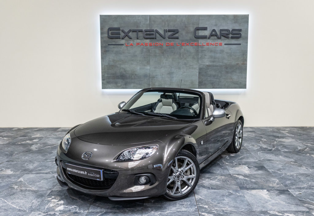 EXTEN’Z CARS vous présente cette Mazda MX5 NC FL 1.8 MZR 126 CV, mise en circulation le 15/01/2015, dans l’élégante teinte Titanium Flash Mica. Une configuration rare, une ligne pure, et cette âme si particulière que seule une MX-5 peut offrir. À une époque où tout est assisté, digitalisé, filtré, cette voiture rappelle que le plaisir se trouve dans la simplicité, un moteur atmosphérique qui chante juste, un poids plume autour d’une tonne, une propulsion bien née, et une boîte manuelle franche et directe. Ce n’est pas juste une MX-5, c’est une des toutes dernières NC produites, l’ultime évolution d’une génération qui a su préserver l’essence de ce qu’est un vrai roadster.