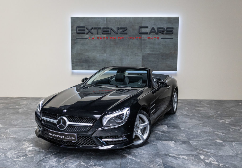 EXTEN’Z CARS vous propose ce Cabriolet Ultime Mercedes 500 SL II Pack Sport AMG avec son V8 4.7 litres développant 435CV (33cv), mise en circulation le 11/06/2012, de couleur Noir Obsidienne. Le confort est naturellement le point fort de ce modèle, grâce au chauffage de nuque, de siège, au pare-vent et à l’isolation étudiée, votre bien-être thermique sera assuré, de même que votre brushing ! La suspension filtre efficacement les chaos et l’insonorisation est parfaite, la position de conduite est irréprochable, grâce notamment aux nombreux réglages disponibles.
