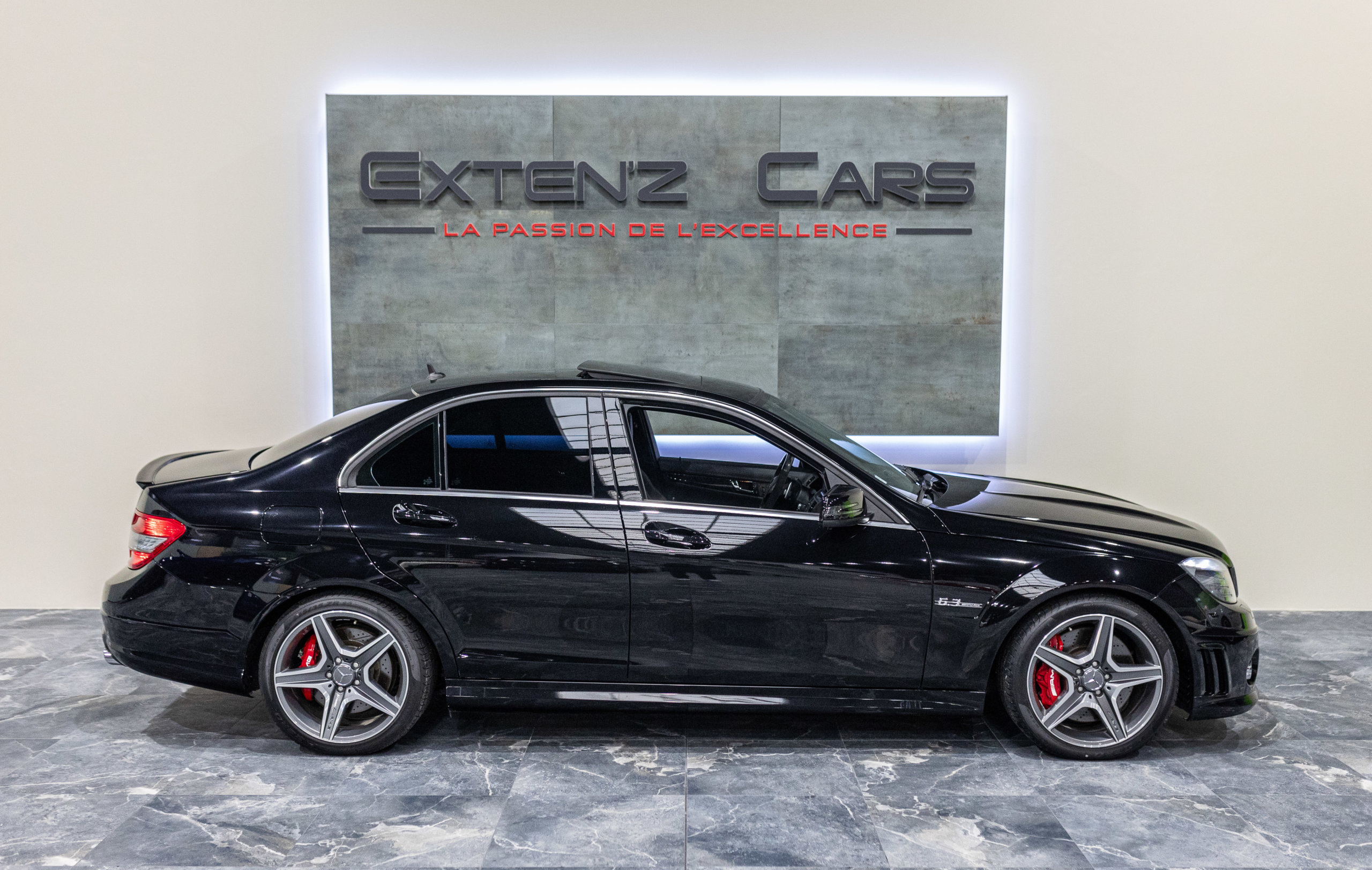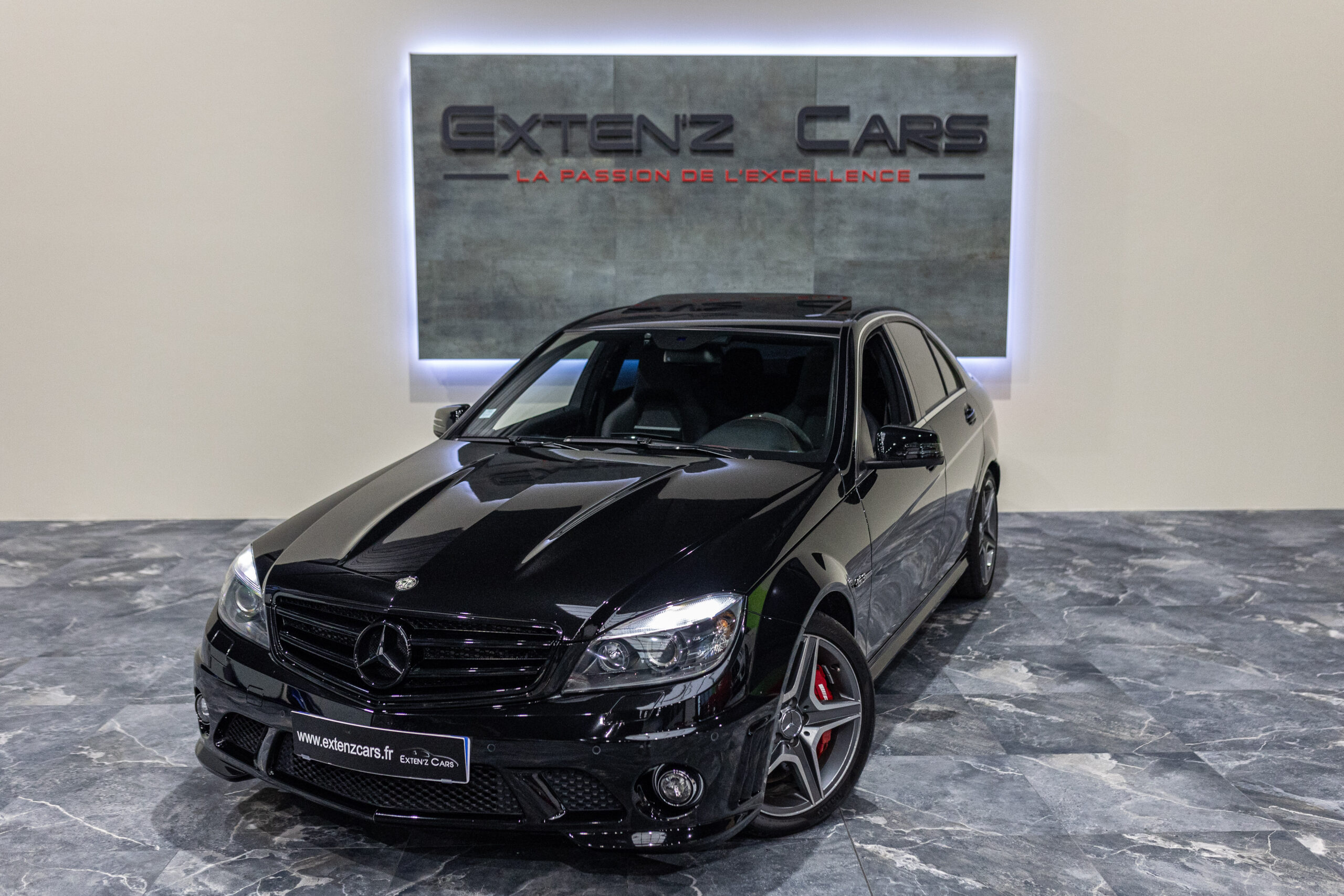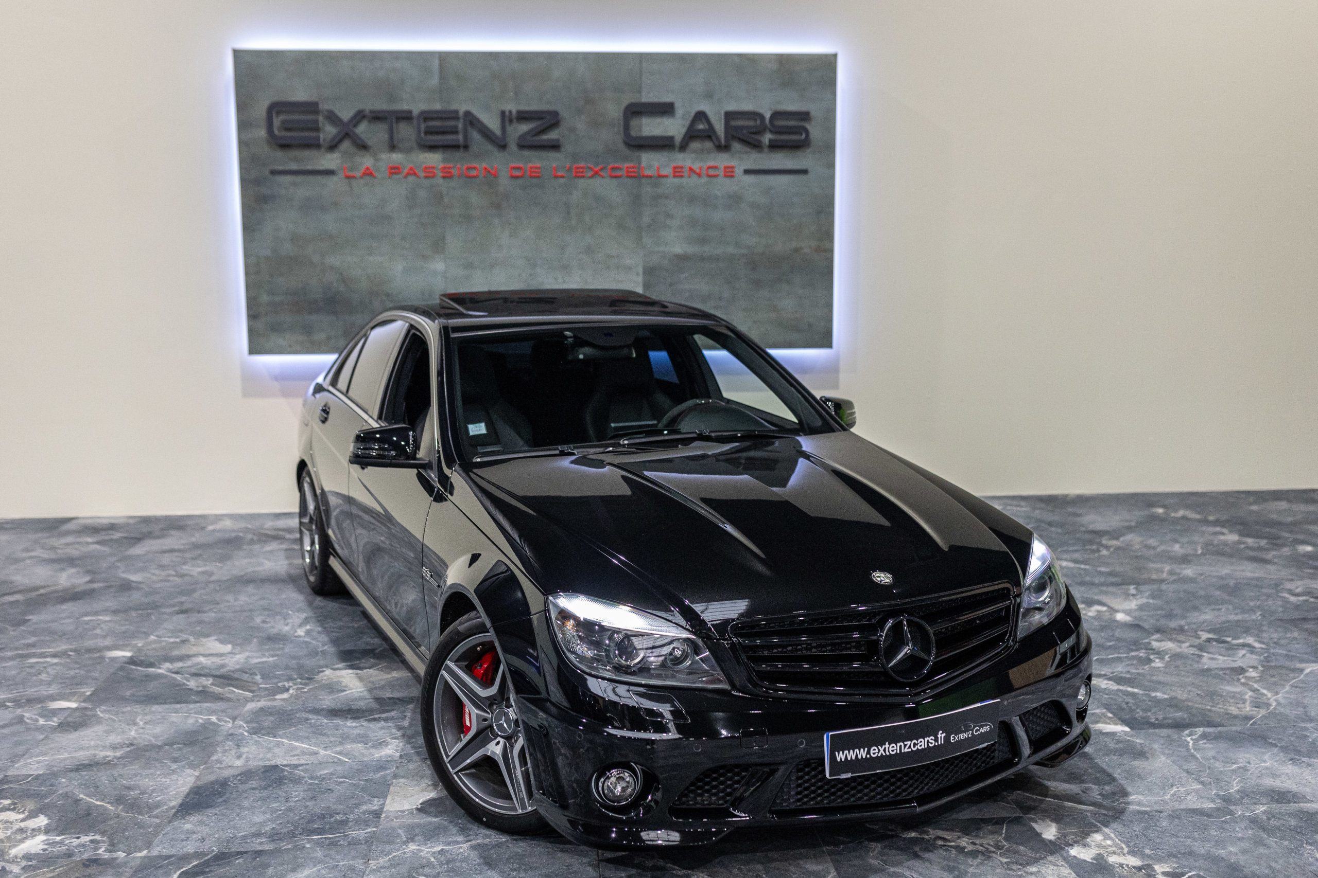 EXTEN’Z CARS vous propose cette magnifique berline Mercedes Classe C63 AMG avec son fantastique V8 atmosphérique de 6,2 litres en voie de disparition.. développant 457 CV (37cv), mise en circulation le 01/09/2010, de couleur Noir Obsidienne Métallisée. Présentée en 2008, la C63 (série W204) était la première Mercedes à être développée à 100% par AMG pour fournir à la fois des performances hors normes, et comme le veut la tradition, chaque ouvrier monte son propre bloc, c’était alors la berline compacte la plus rapide au monde mais aussi un comportement routier digne de son rang. Dès le démarrage le moteur impressionne avec un son à couper le souffle… Sa position de conduite et ses sièges baquet à flancs réglables sont juste parfaits, l’environnement de conduite est à la fois clair et complet, toutes les commandes sont faciles d’accès. Puissant et coupleux à souhait, sa sonorité caverneuse et intimidante fait tourner toutes les têtes.