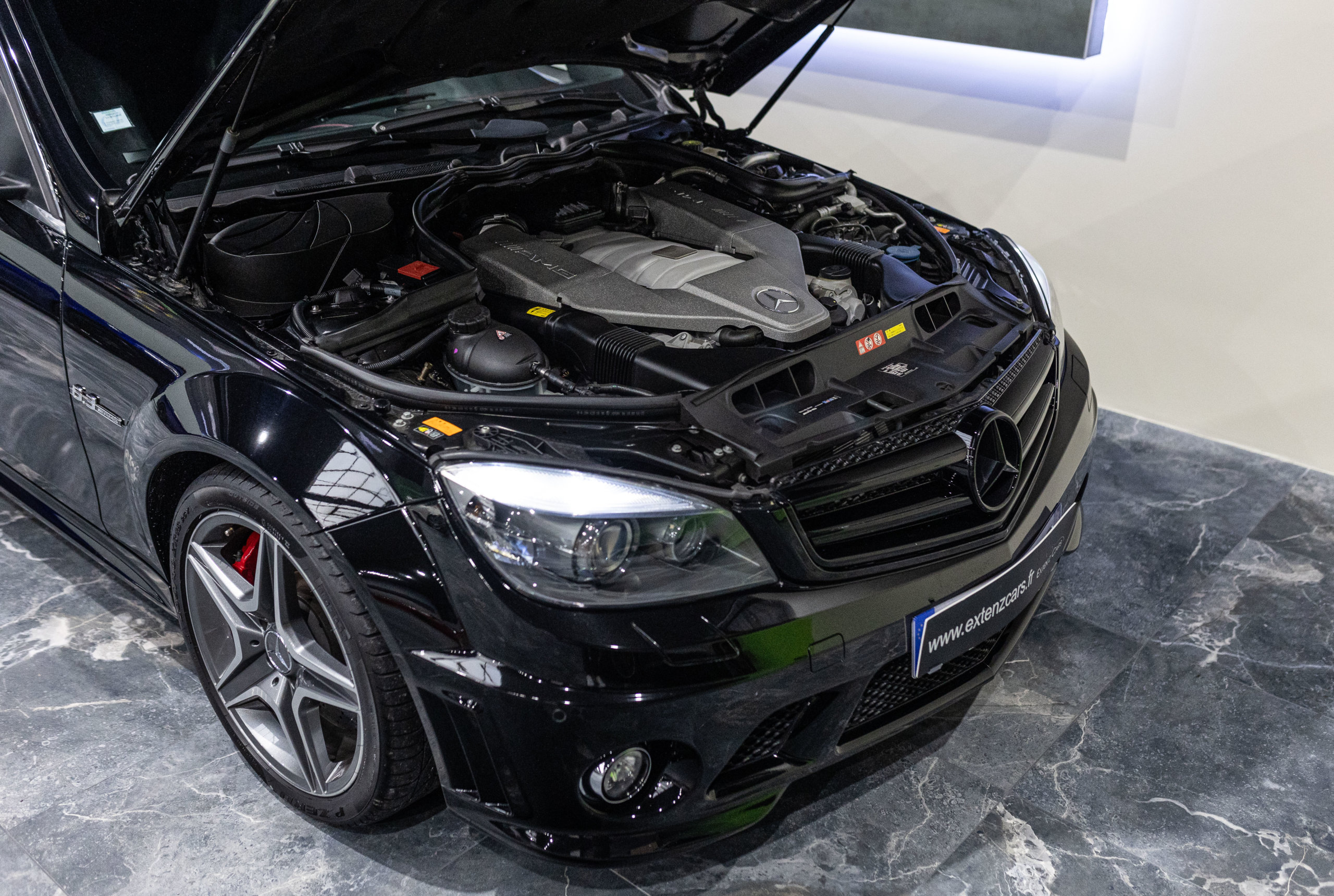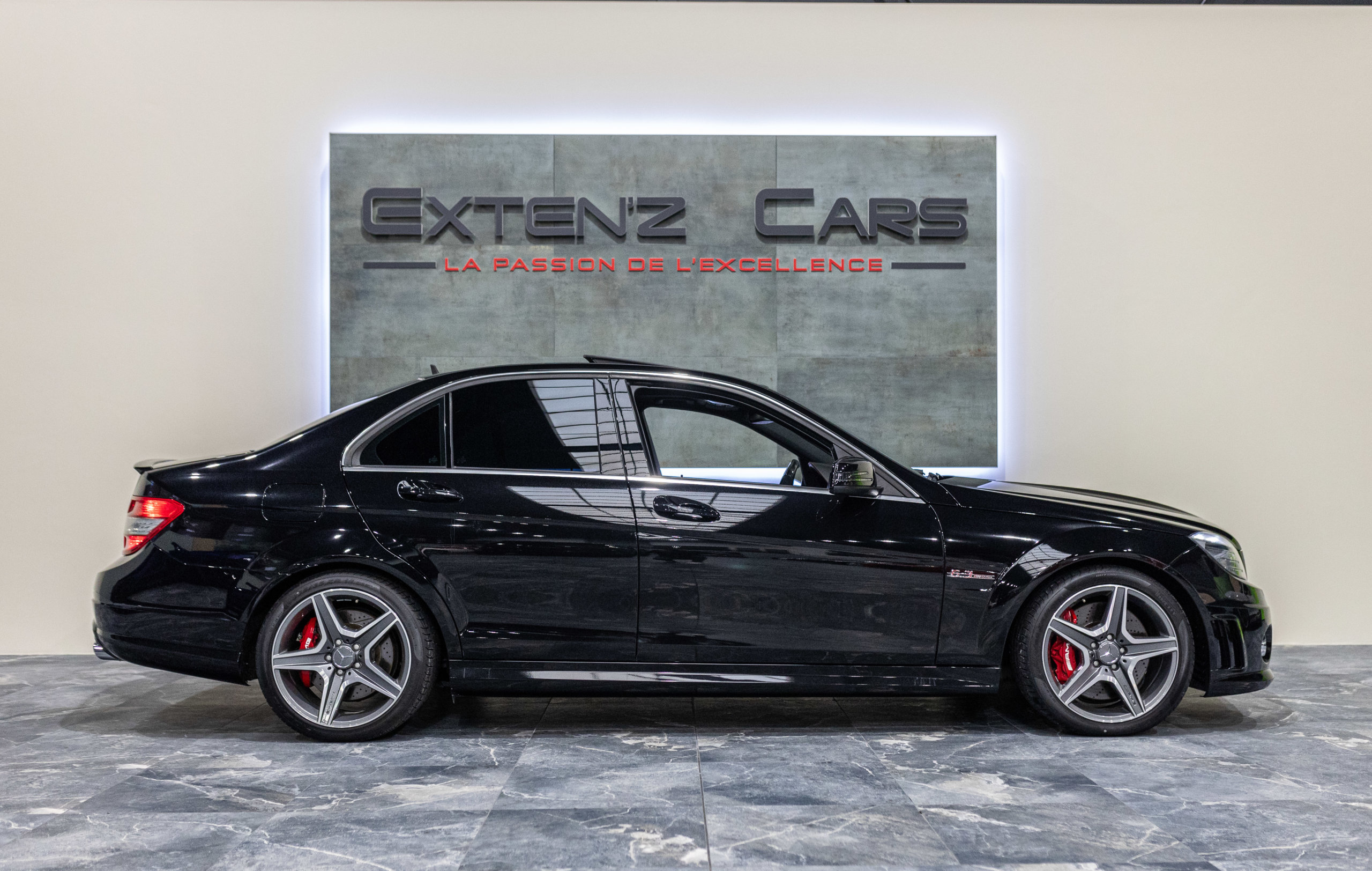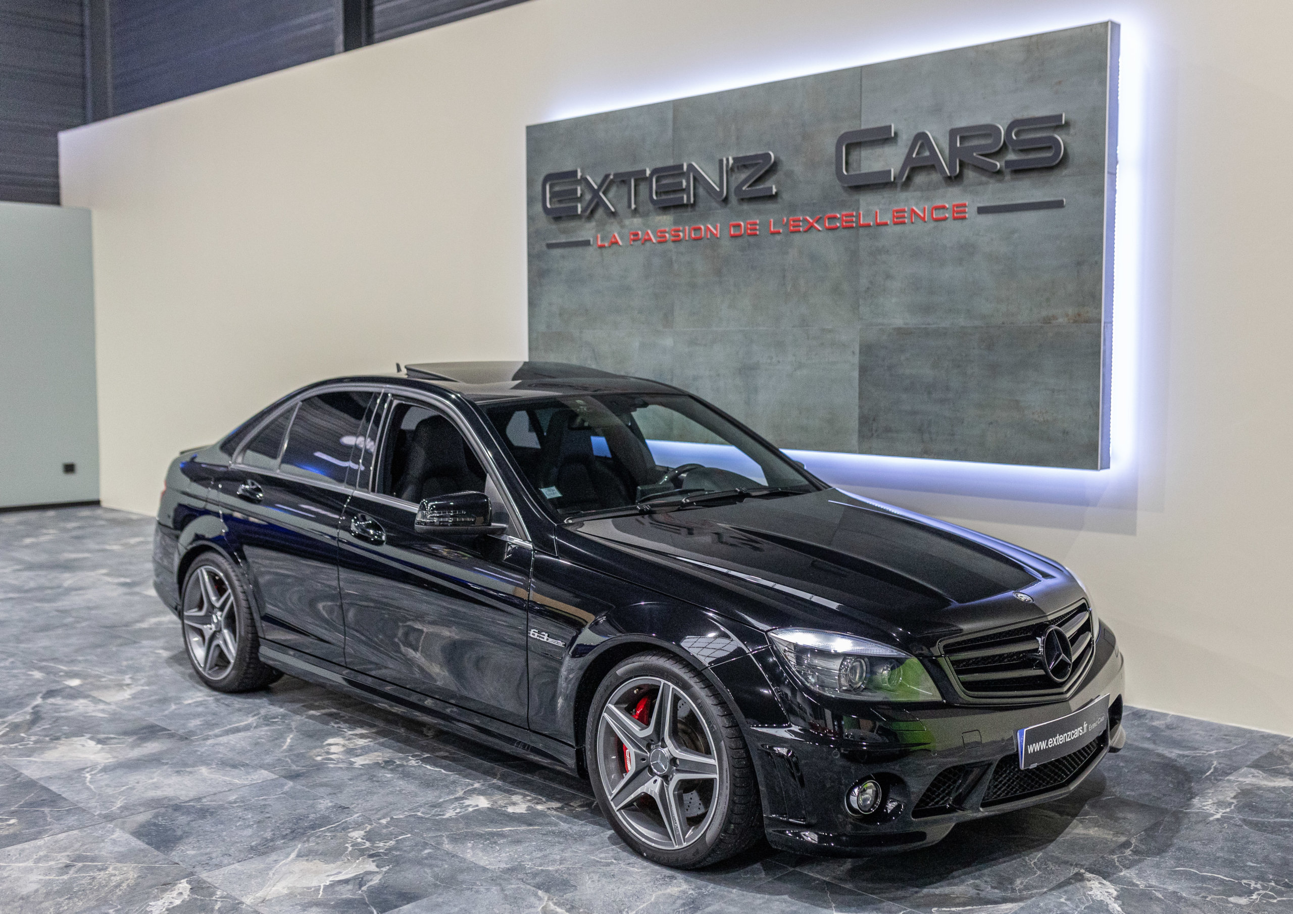 EXTEN’Z CARS vous propose cette magnifique berline Mercedes Classe C63 AMG avec son fantastique V8 atmosphérique de 6,2 litres en voie de disparition.. développant 457 CV (37cv), mise en circulation le 01/09/2010, de couleur Noir Obsidienne Métallisée. Présentée en 2008, la C63 (série W204) était la première Mercedes à être développée à 100% par AMG pour fournir à la fois des performances hors normes, et comme le veut la tradition, chaque ouvrier monte son propre bloc, c’était alors la berline compacte la plus rapide au monde mais aussi un comportement routier digne de son rang. Dès le démarrage le moteur impressionne avec un son à couper le souffle… Sa position de conduite et ses sièges baquet à flancs réglables sont juste parfaits, l’environnement de conduite est à la fois clair et complet, toutes les commandes sont faciles d’accès. Puissant et coupleux à souhait, sa sonorité caverneuse et intimidante fait tourner toutes les têtes.