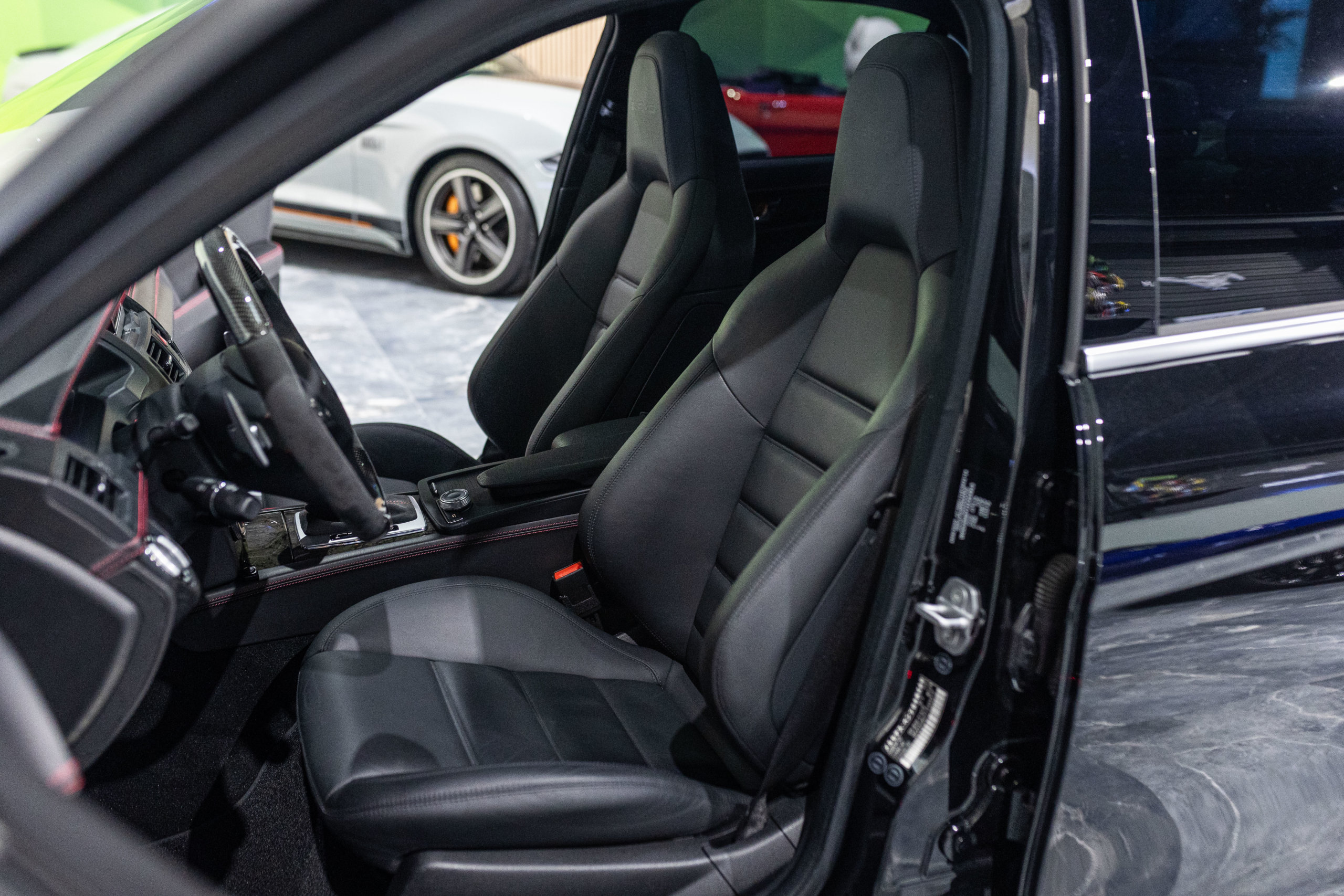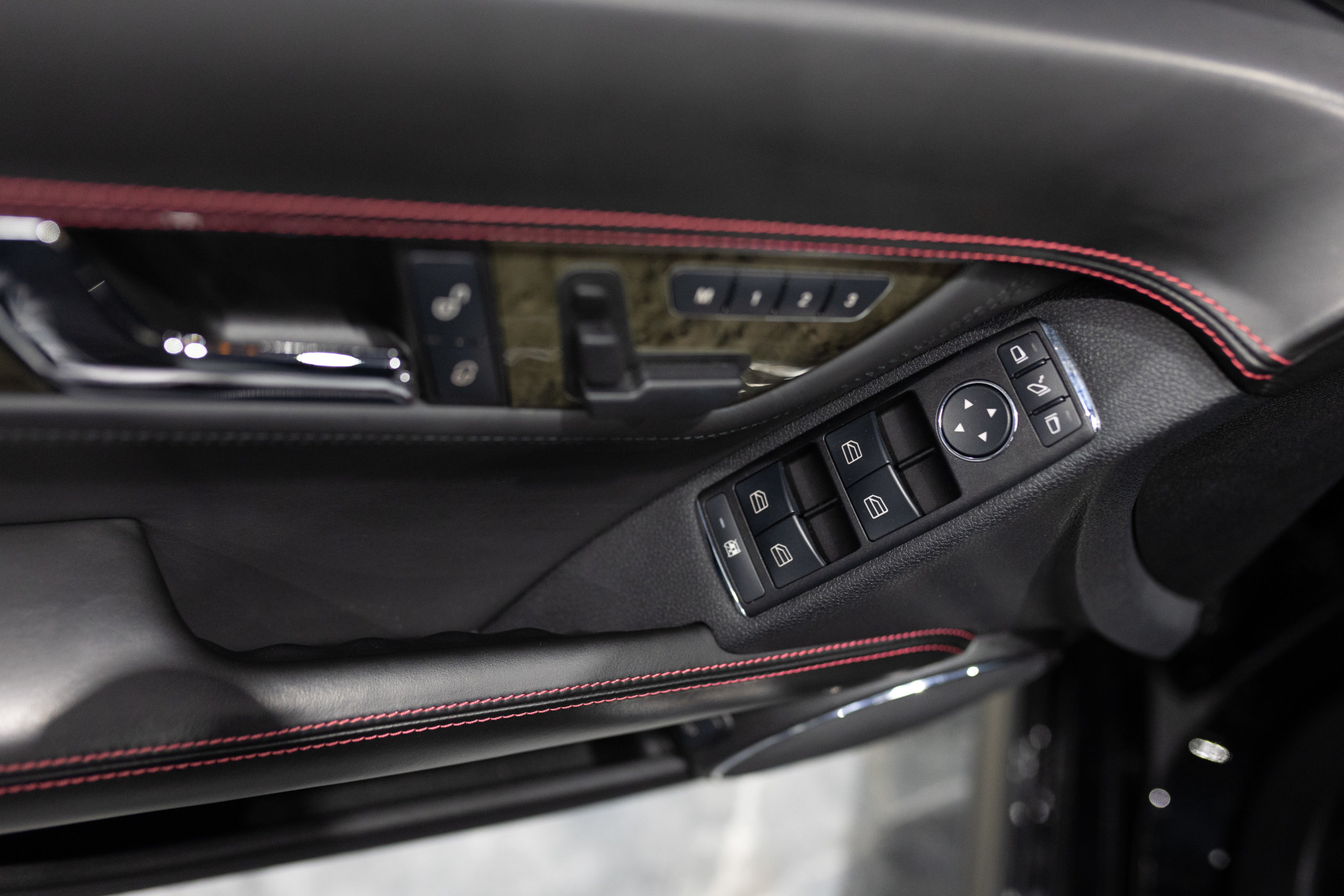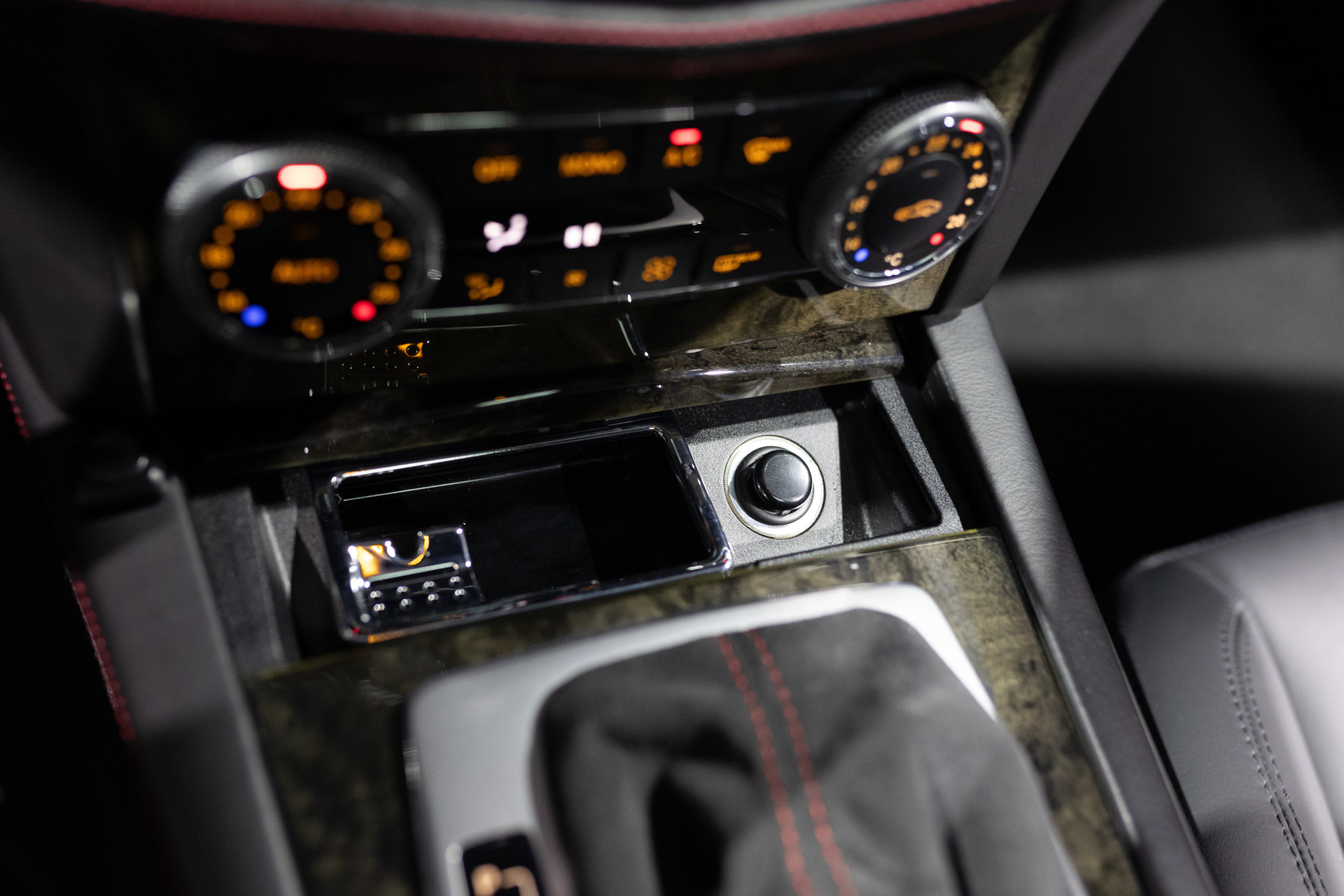 – Cuir Étendu avec Surpiqûres Rouge: Tableau de Bord, Panneau de Porte et Console Centrale