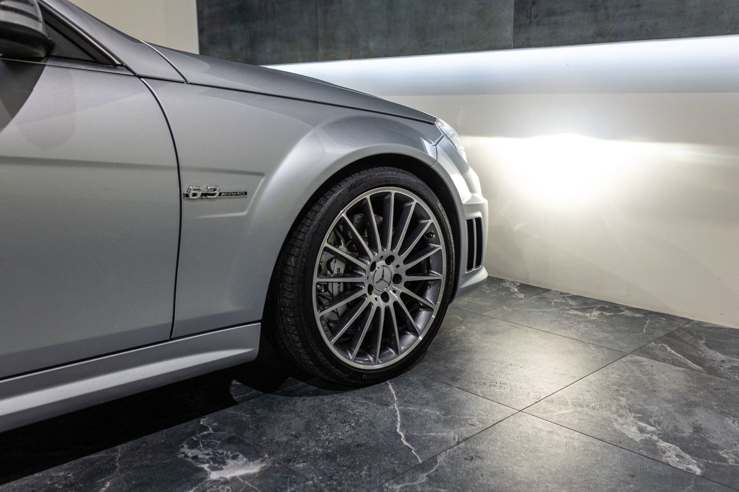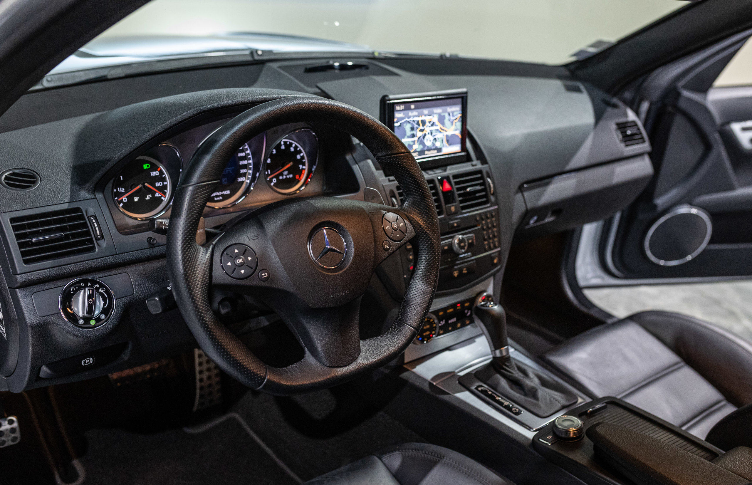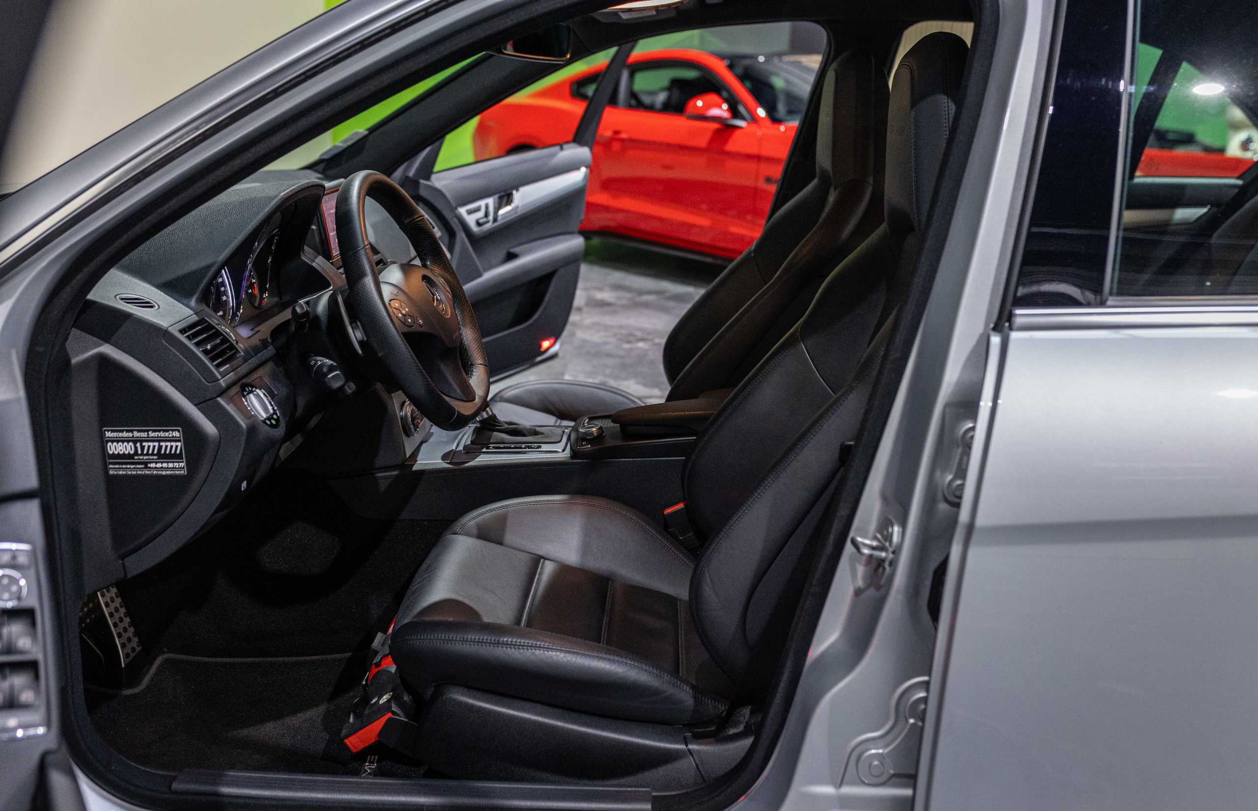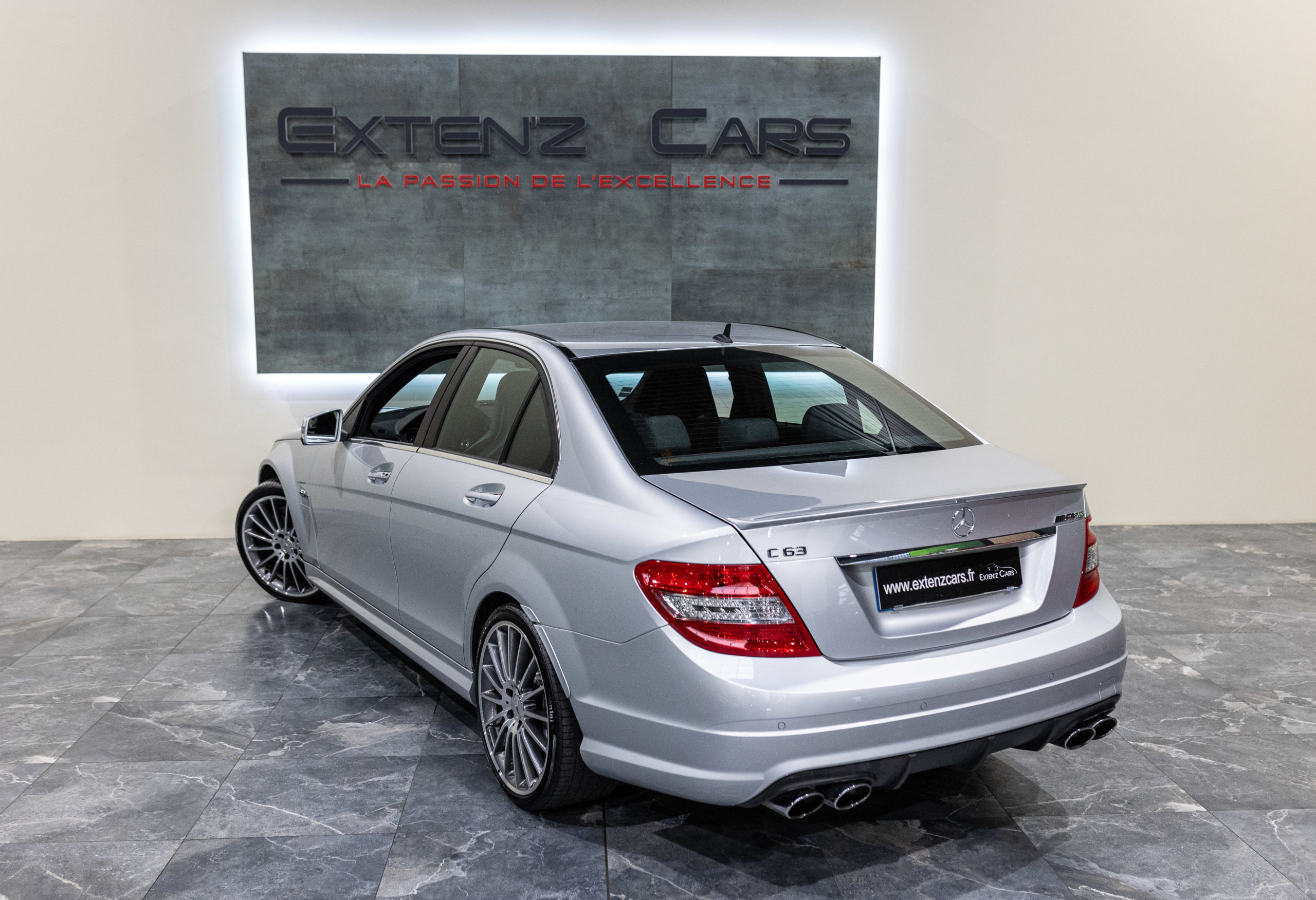 EXTEN’Z CARS vous propose cette magnifique berline Mercedes Classe C 63 AMG avec son fantastique V8 atmosphérique de 6,2 litres en voie de disparition.. développant 457 CV (37cv), mise en circulation le 12/05/2009, de couleur Argent Iridium Métallisée. Présentée en 2008, la C63 (série W204) était la première Mercedes à être développée à 100% par AMG pour fournir à la fois des performances hors normes, et comme le veut la tradition, chaque ouvrier monte son propre bloc, c’était alors la berline compacte la plus rapide au monde mais aussi un comportement routier digne de son rang. Dès le démarrage le moteur impressionne avec un son à couper le souffle… Sa position de conduite et ses sièges baquet à flancs réglables sont juste parfaits, l’environnement de conduite est à la fois clair et complet, toutes les commandes sont faciles d’accès. Puissant et coupleux à souhait, sa sonorité caverneuse et intimidante fait tourner toutes les têtes.