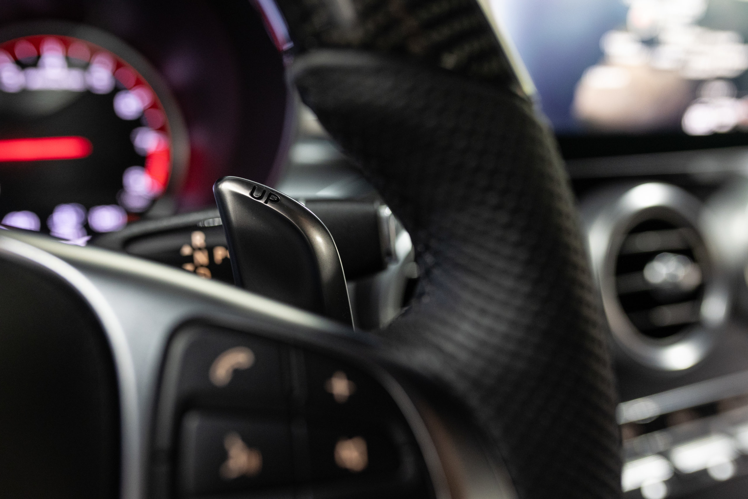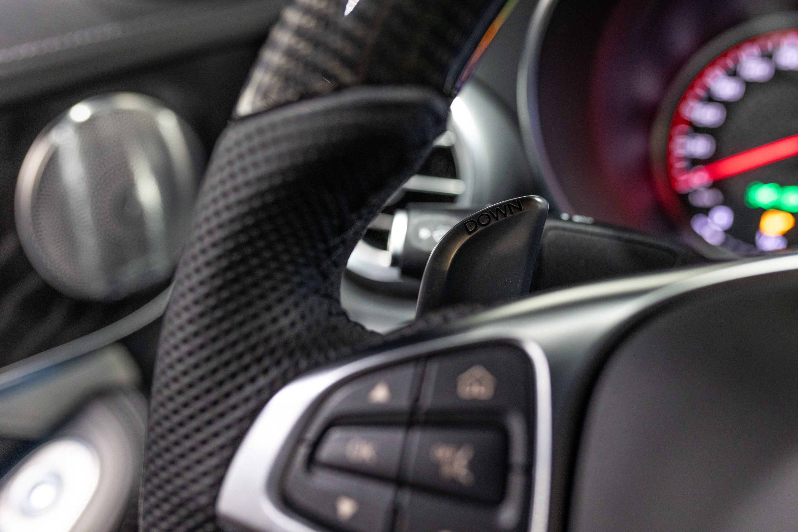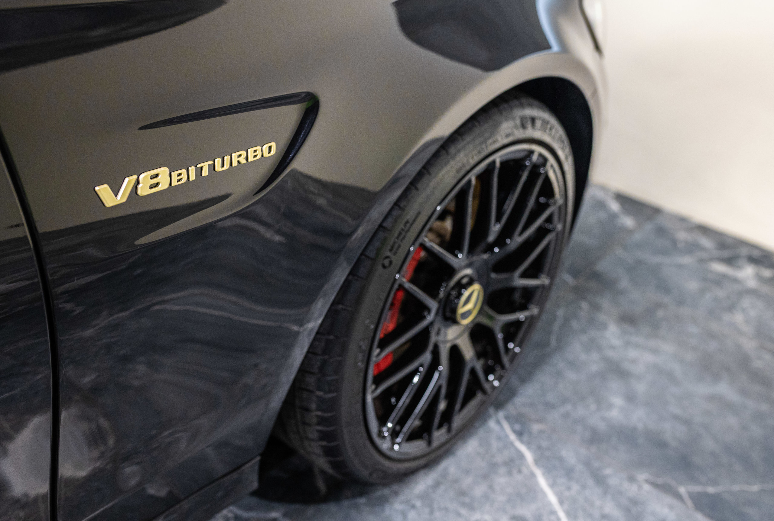 rare élégance, qui sublime ses lignes sportives et lui confère une personnalité unique. Fidèle à l’esprit AMG, elle abrite le fameux 4.0 V8 bi-turbo assemblé à la main, un moteur au caractère inimitable dont la sonorité est devenue une véritable signature. À bord, l’ambiance allie luxe et sportivité avec des finitions irréprochables et une atmosphère raffinée, où chaque détail rappelle qu’il s’agit d’une voiture d’exception.