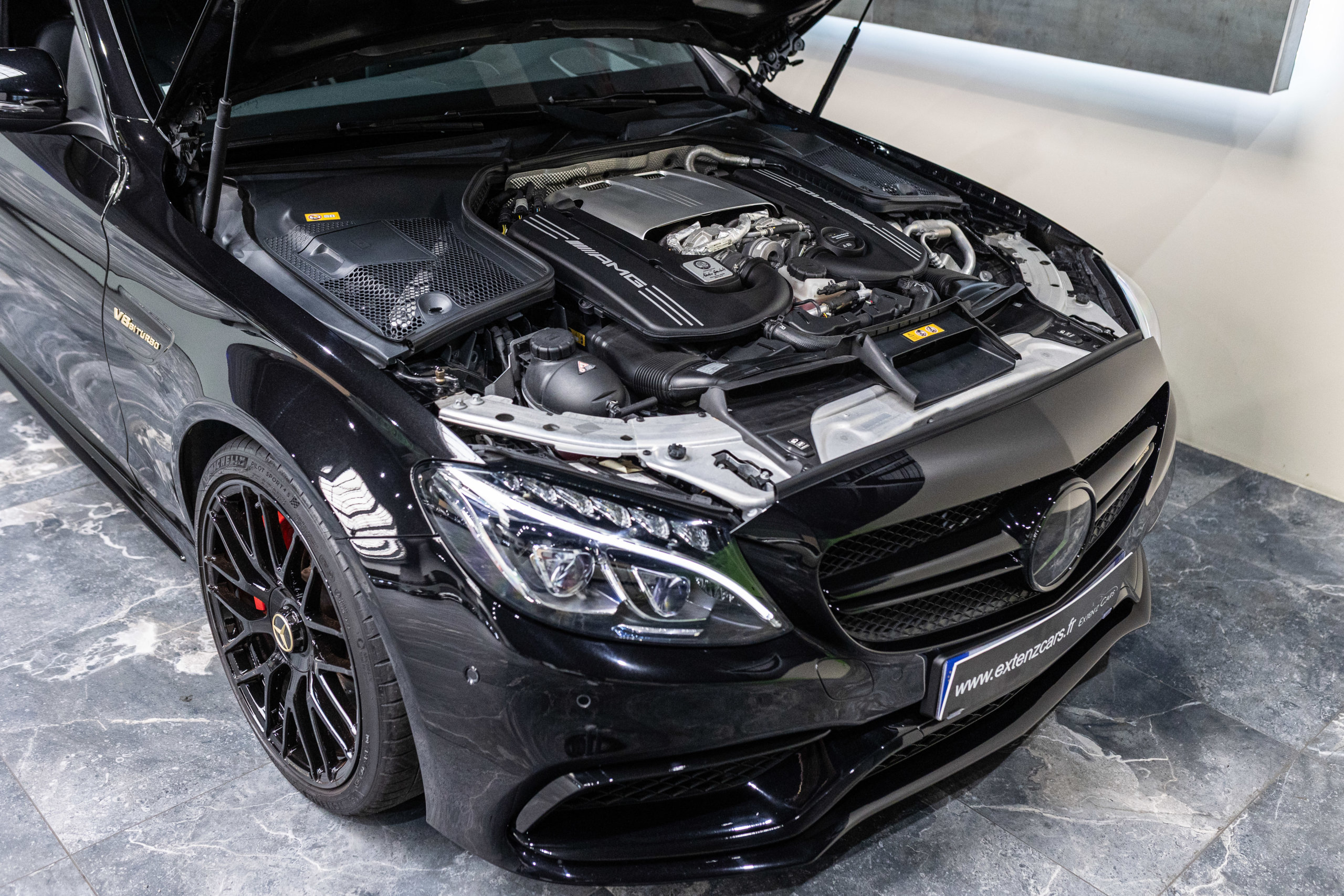EXTEN’Z CARS vous propose cette magnifique Mercedes-Benz Classe C63 S AMG développant 510 CV (40 cv), mise en circulation le 01/01/2018 et habillée d’un somptueux Noir Obsidienne. Préservée dans un état exceptionnel, elle se distingue par une configuration Black & Gold d’une