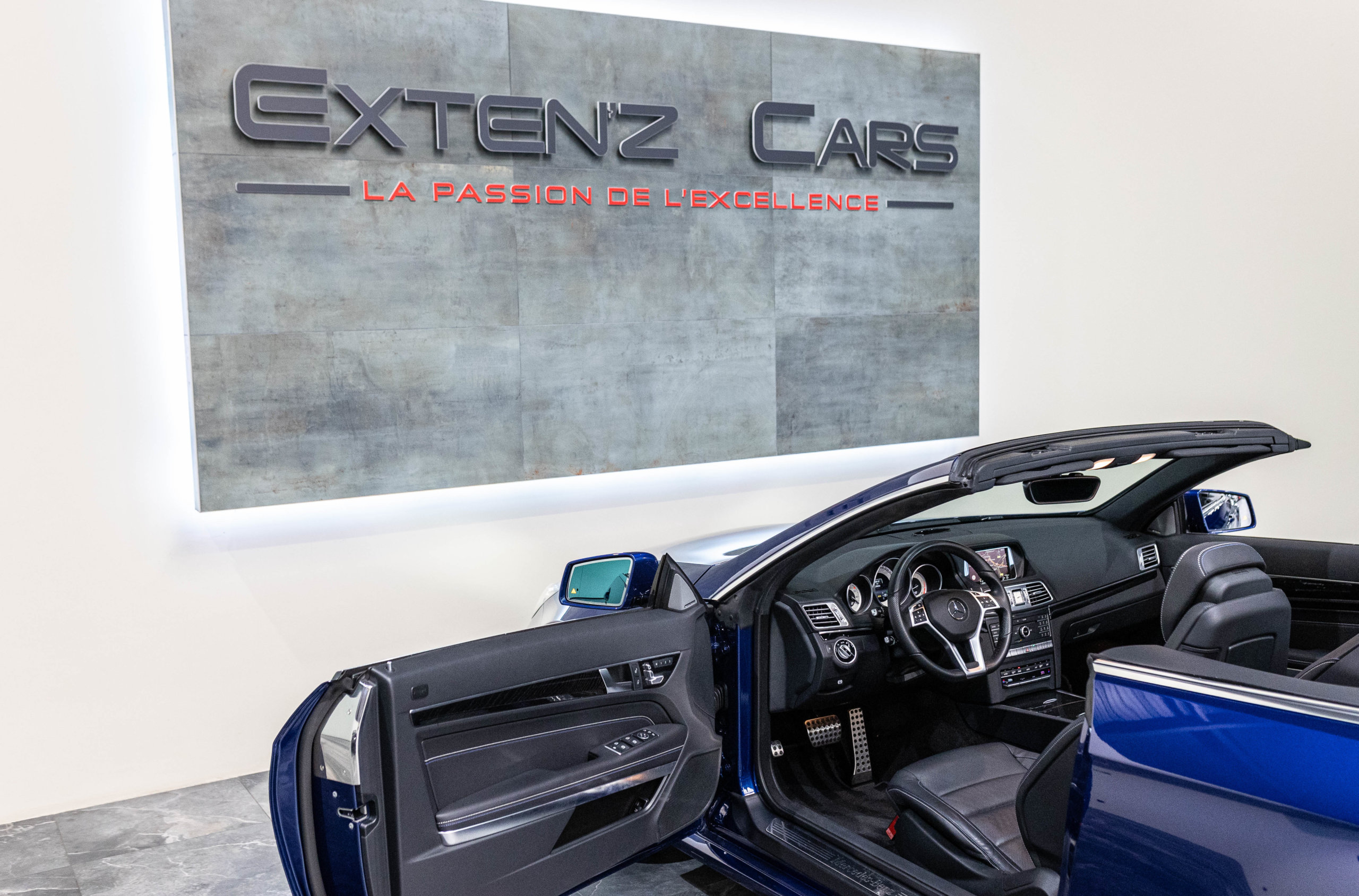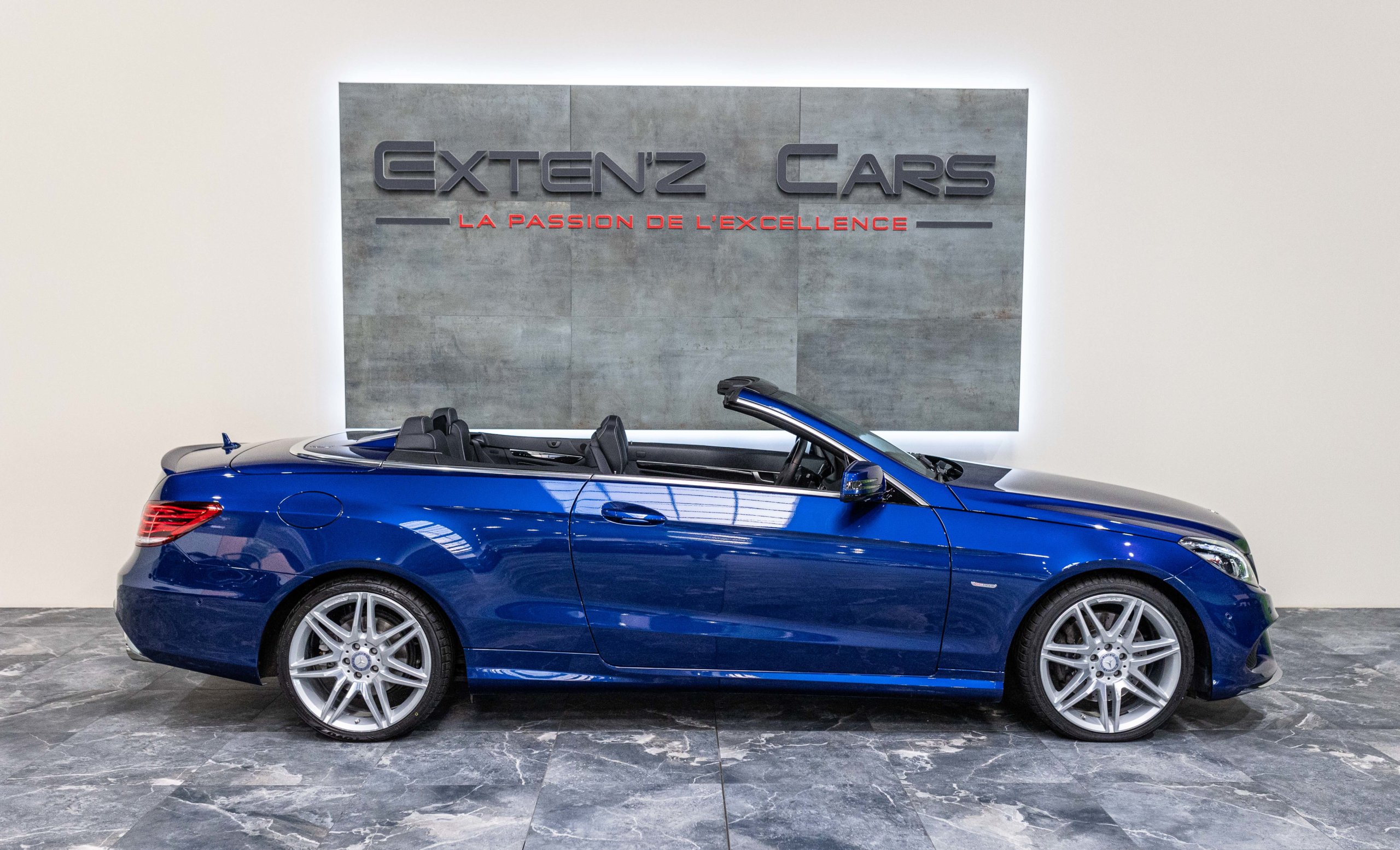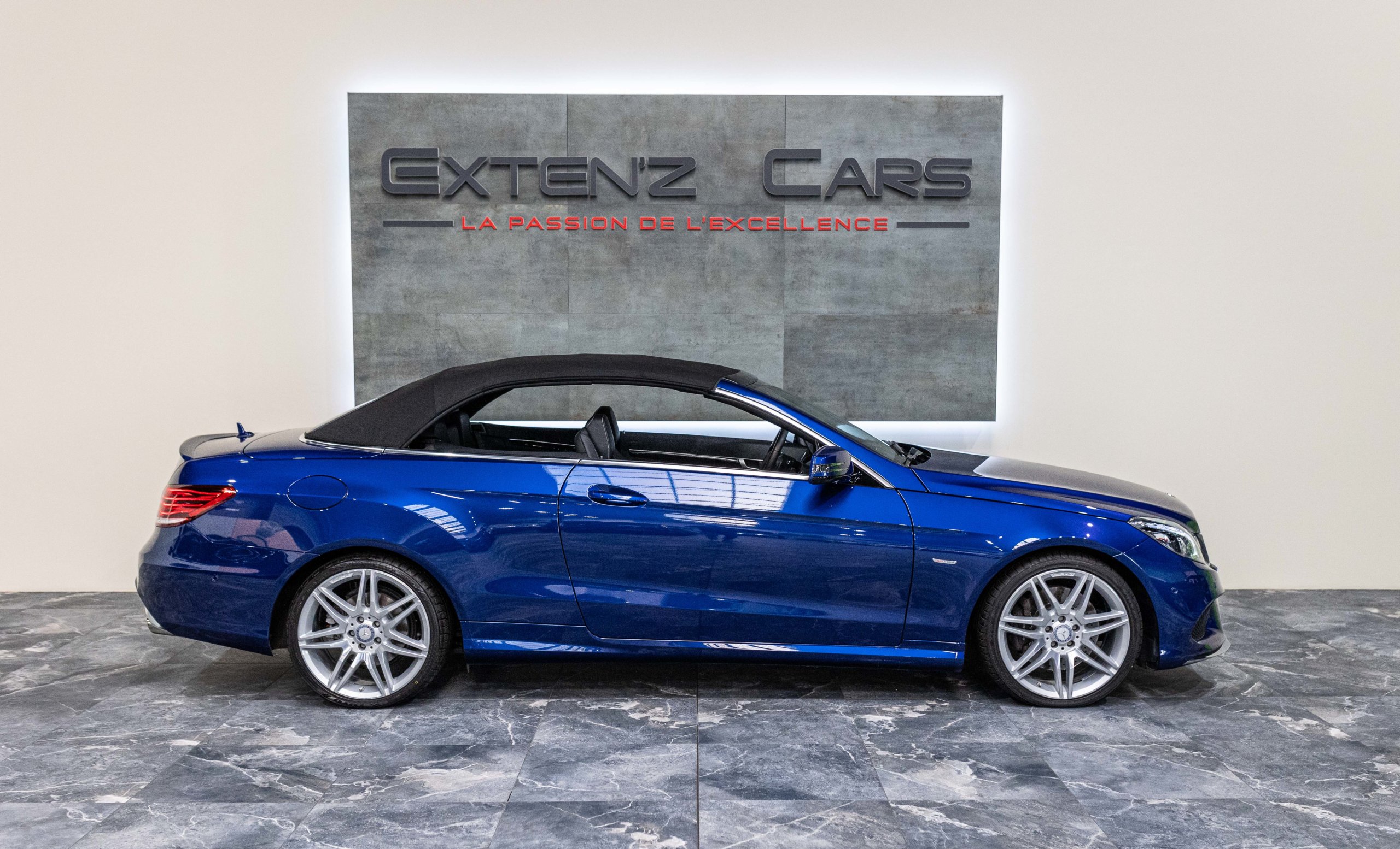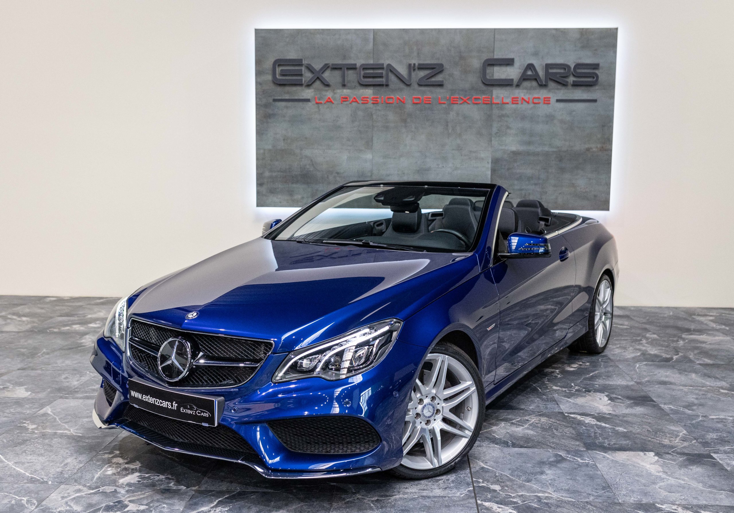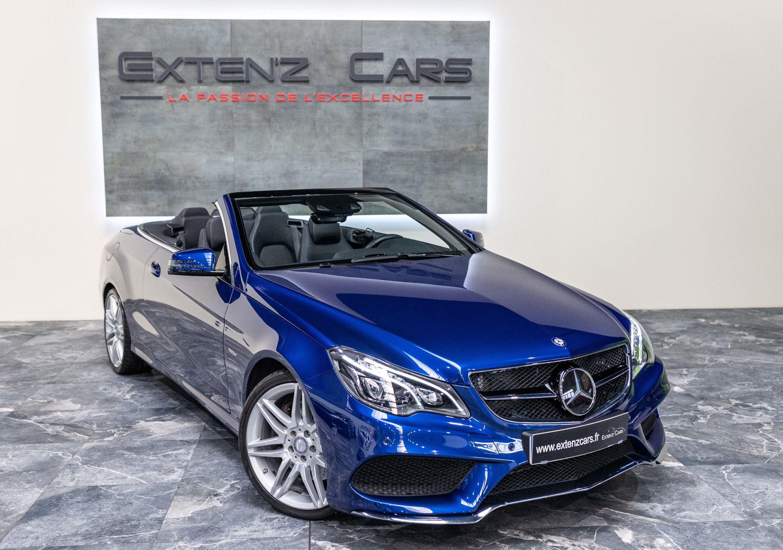 EXTEN’Z CARS vous propose cette magnifique et luxueuse MERCEDES Classe E 400 Cabriolet Fascination AMG avec son V6 3.5 délivrant 333 CV (22cv), mise en circulation le 07/02/2017 de Couleur Bleu Brillant MANUFAKTUR. La Mercedes Classe E Cabriolet est une franche réussite esthétique. S’appuyant sur les principales lignes de sa grande sœur, la Classe S. Cette auto est avant tout confortable. Les moindres aspérités sont gommées, et que dire de l’insonorisation à bord… ça frôle le sans-faute. Associée à une boite à vitesse automatique à sept rapports, si vous préférez une conduite plus sportive, il lui suffit de passer en mode manuel à l’aide des palettes de changement de vitesse au volant pour disposer alors des sept rapports fixes. La Mercedes Classe E Cabriolet sait nous accueillir, et que dire de la petite horloge à aiguilles qui trône au centre de la console centrale. En termes de finition il n’y a rien à redire, le choix des matériaux est pertinent.