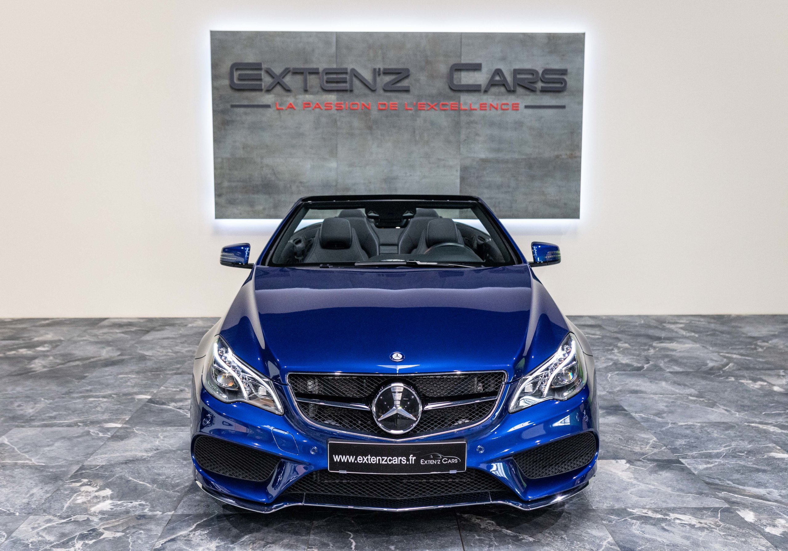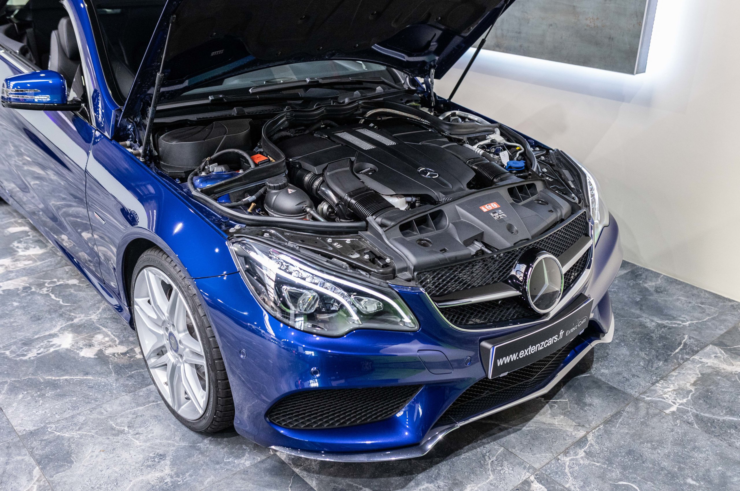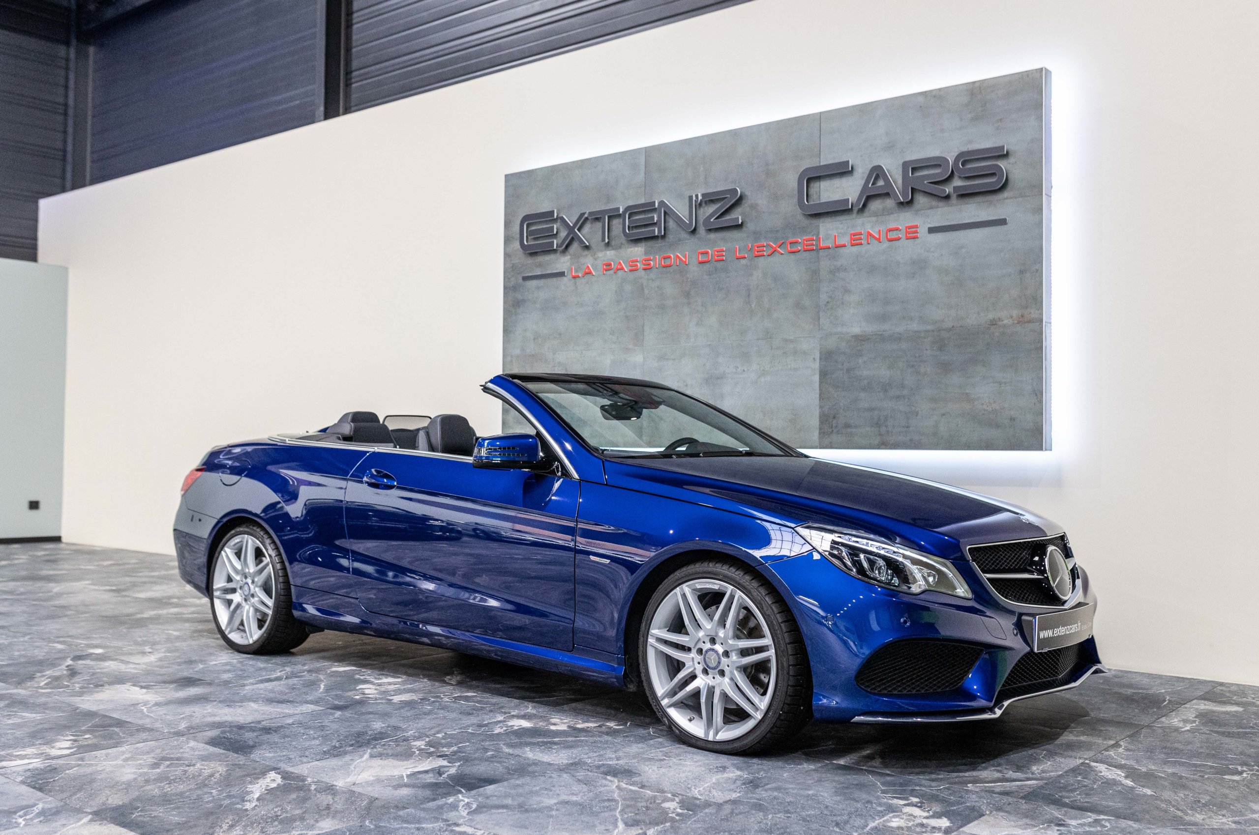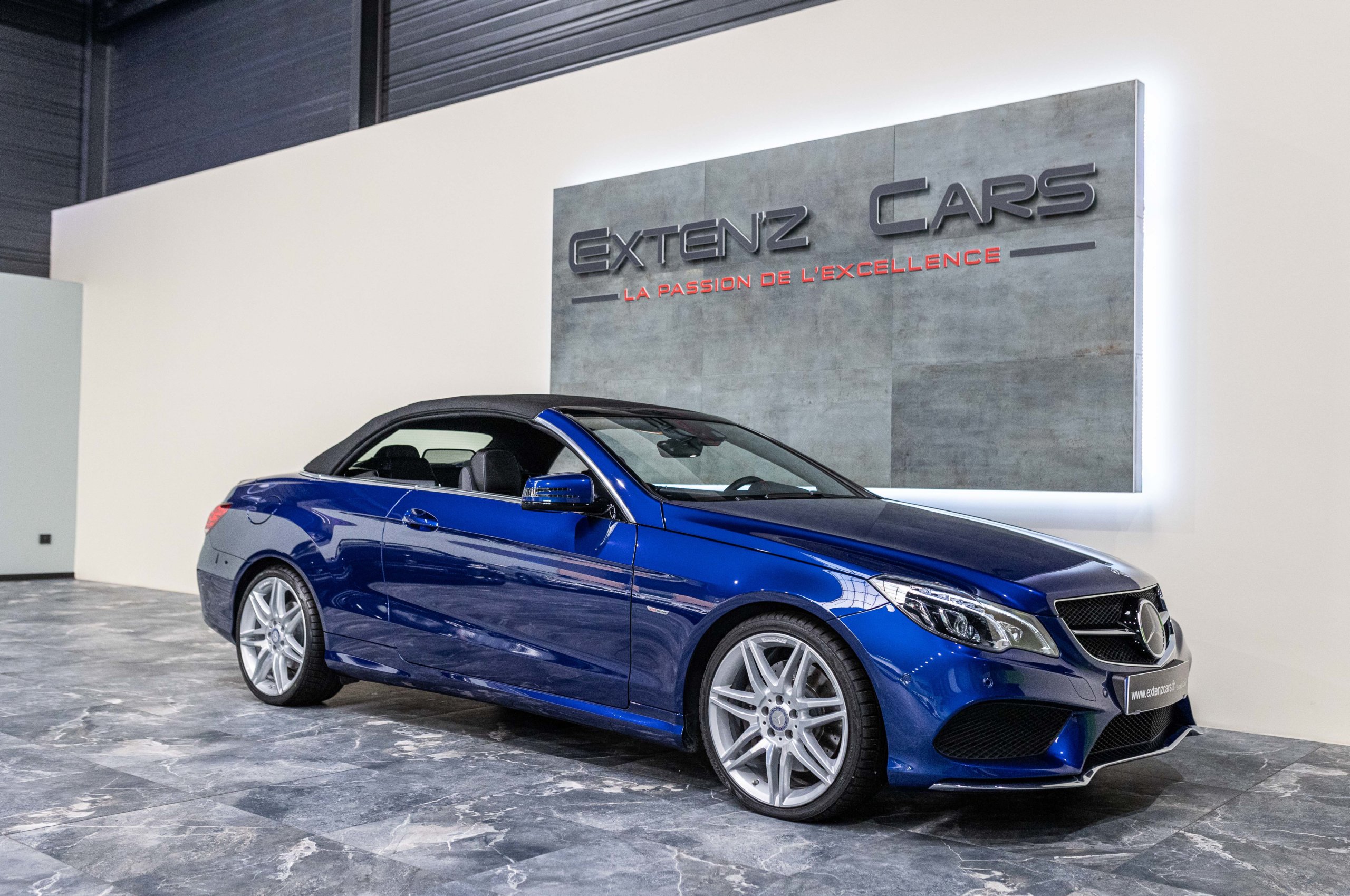 EXTEN’Z CARS vous propose cette magnifique et luxueuse MERCEDES Classe E 400 Cabriolet Fascination AMG avec son V6 3.5 délivrant 333 CV (22cv), mise en circulation le 07/02/2017 de Couleur Bleu Brillant MANUFAKTUR. La Mercedes Classe E Cabriolet est une franche réussite esthétique. S’appuyant sur les principales lignes de sa grande sœur, la Classe S. Cette auto est avant tout confortable. Les moindres aspérités sont gommées, et que dire de l’insonorisation à bord… ça frôle le sans-faute. Associée à une boite à vitesse automatique à sept rapports, si vous préférez une conduite plus sportive, il lui suffit de passer en mode manuel à l’aide des palettes de changement de vitesse au volant pour disposer alors des sept rapports fixes. La Mercedes Classe E Cabriolet sait nous accueillir, et que dire de la petite horloge à aiguilles qui trône au centre de la console centrale. En termes de finition il n’y a rien à redire, le choix des matériaux est pertinent.