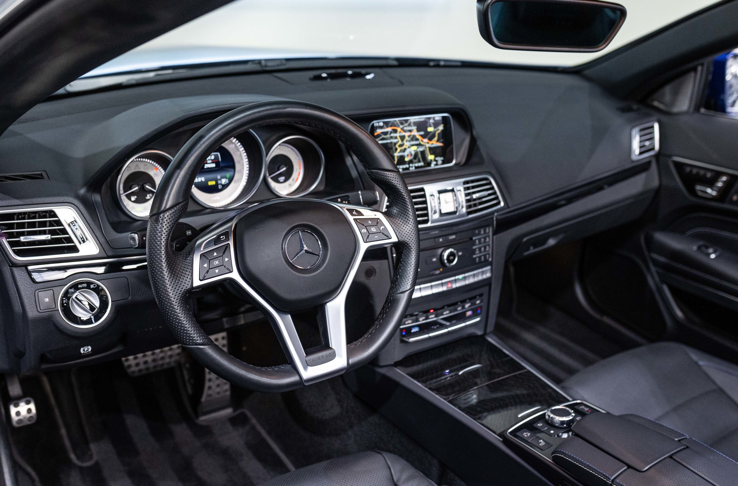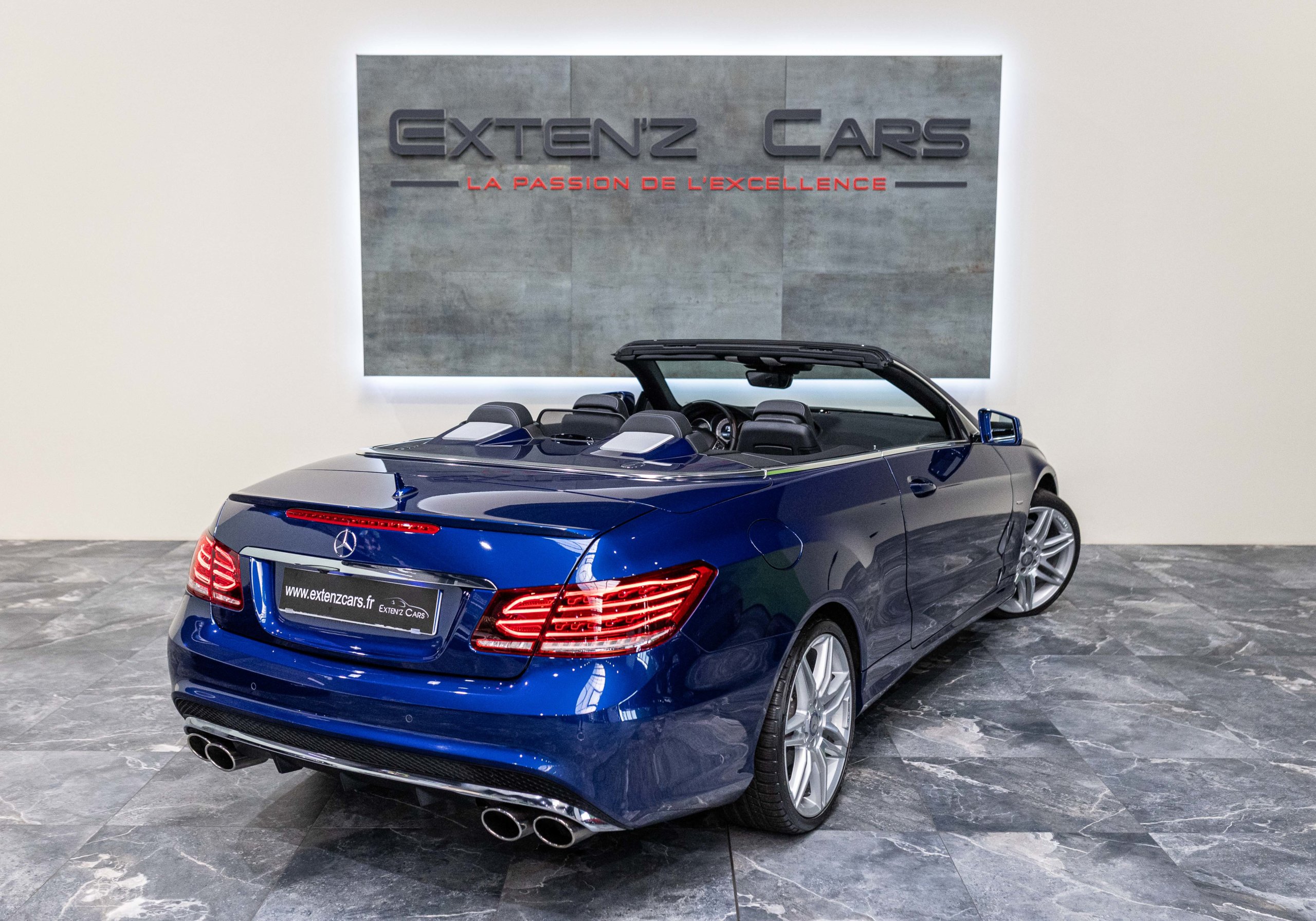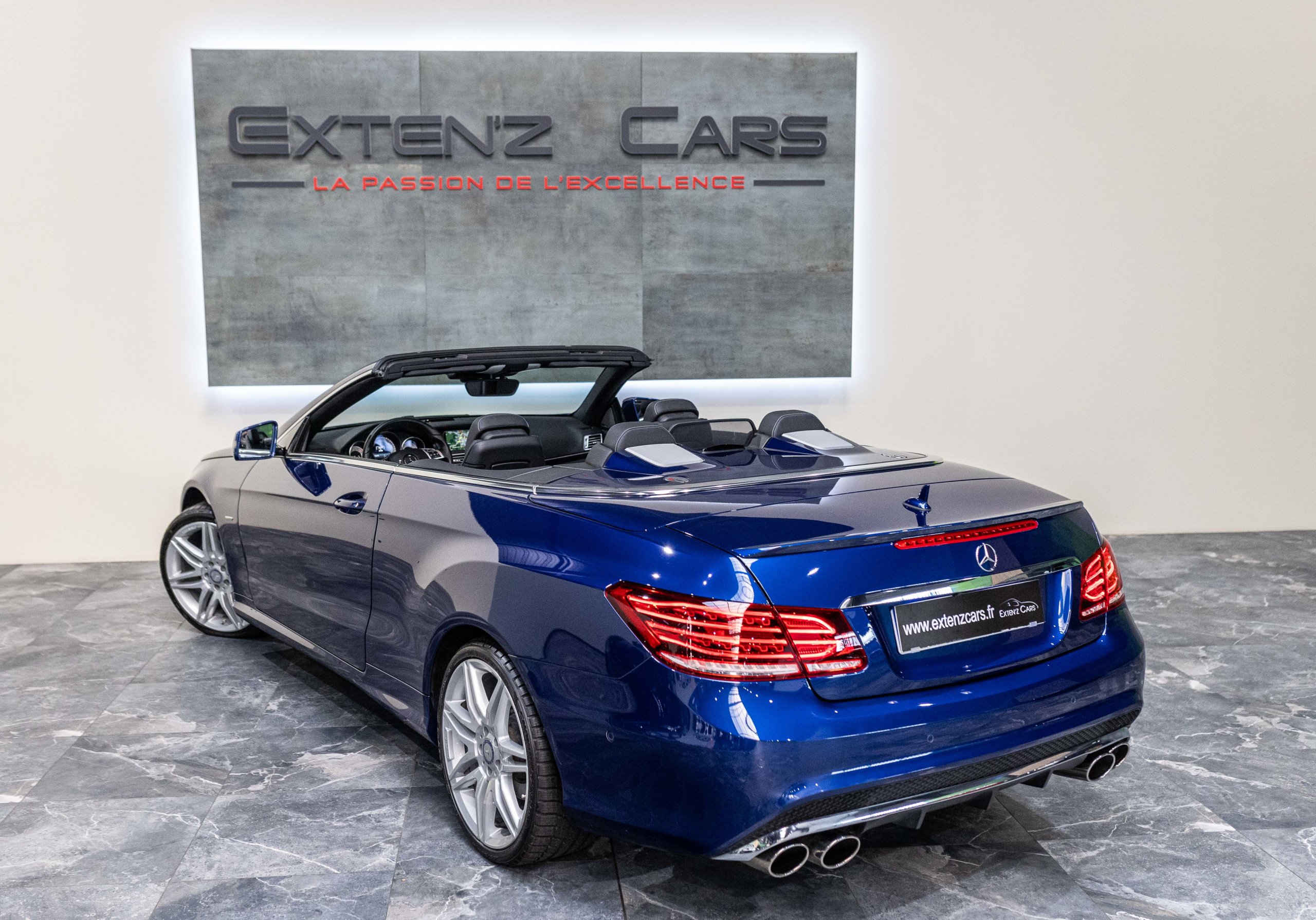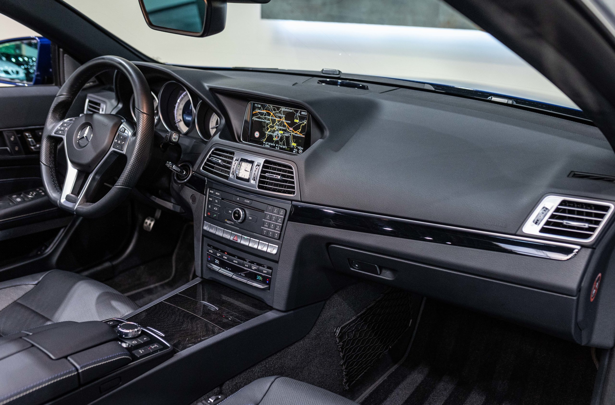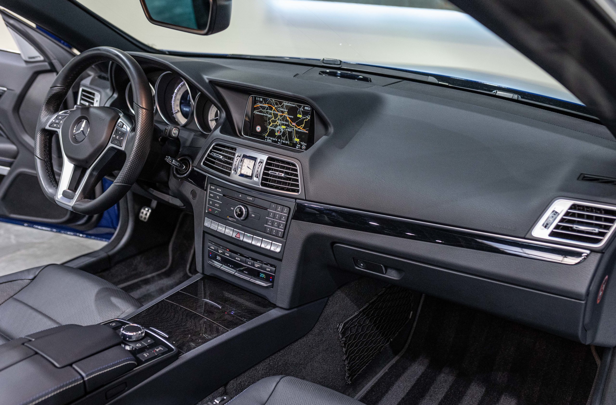 EXTEN’Z CARS vous propose cette magnifique et luxueuse MERCEDES Classe E 400 Cabriolet Fascination AMG avec son V6 3.5 délivrant 333 CV (22cv), mise en circulation le 07/02/2017 de Couleur Bleu Brillant MANUFAKTUR. La Mercedes Classe E Cabriolet est une franche réussite esthétique. S’appuyant sur les principales lignes de sa grande sœur, la Classe S. Cette auto est avant tout confortable. Les moindres aspérités sont gommées, et que dire de l’insonorisation à bord… ça frôle le sans-faute. Associée à une boite à vitesse automatique à sept rapports, si vous préférez une conduite plus sportive, il lui suffit de passer en mode manuel à l’aide des palettes de changement de vitesse au volant pour disposer alors des sept rapports fixes. La Mercedes Classe E Cabriolet sait nous accueillir, et que dire de la petite horloge à aiguilles qui trône au centre de la console centrale. En termes de finition il n’y a rien à redire, le choix des matériaux est pertinent.