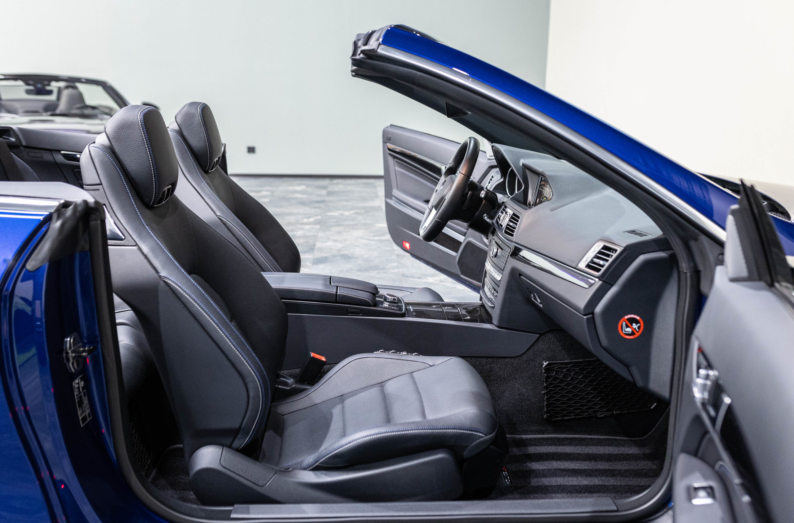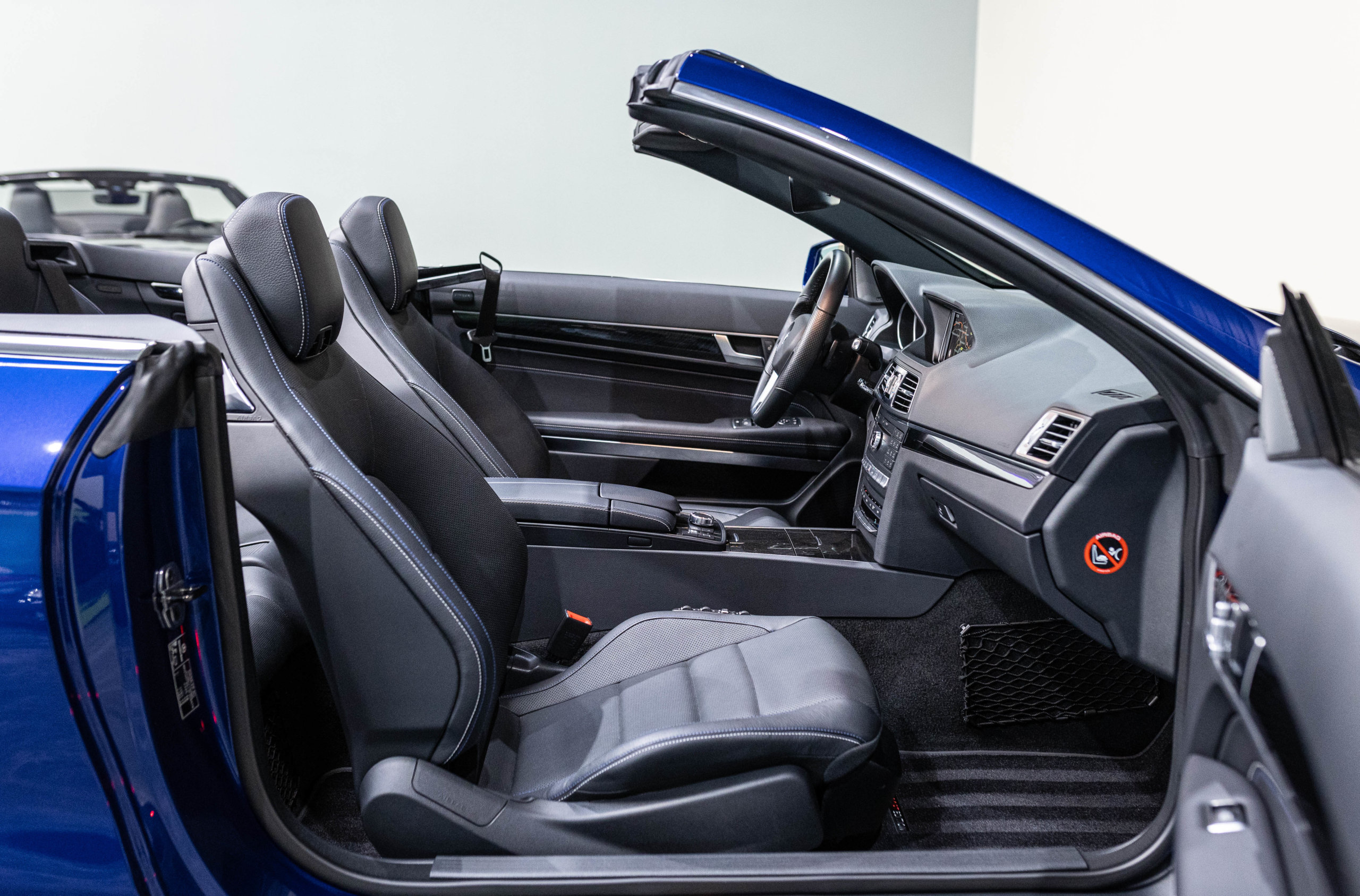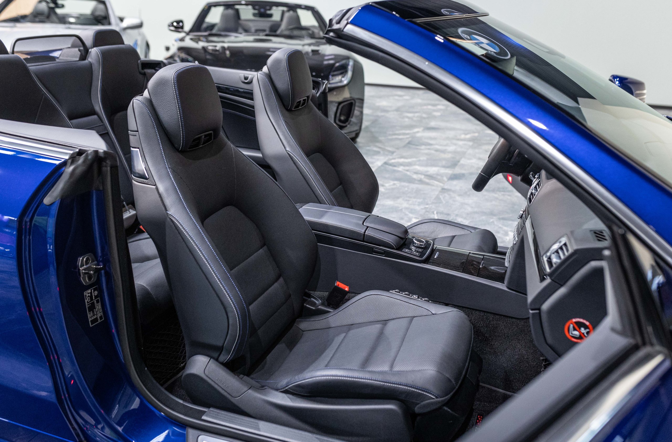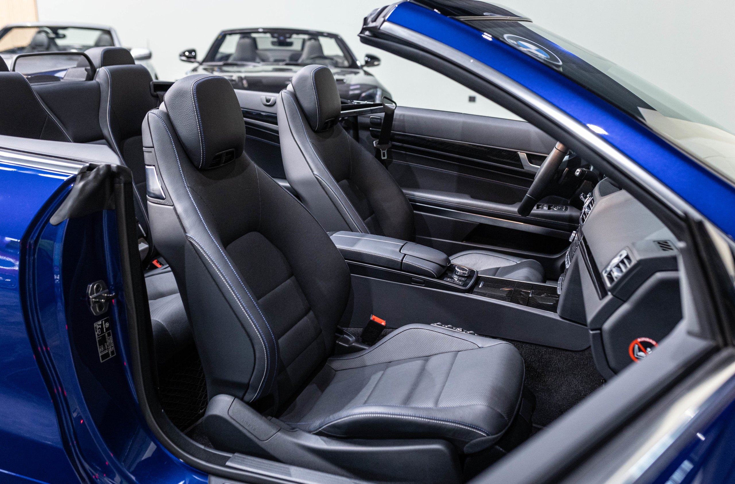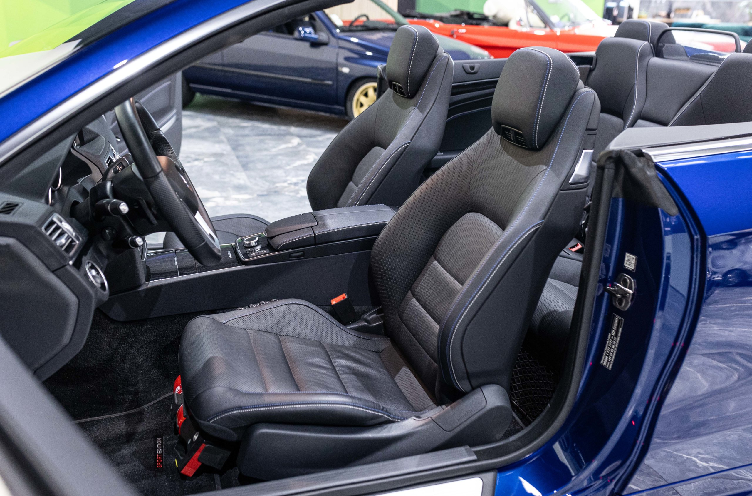 EXTEN’Z CARS vous propose cette magnifique et luxueuse MERCEDES Classe E 400 Cabriolet Fascination AMG avec son V6 3.5 délivrant 333 CV (22cv), mise en circulation le 07/02/2017 de Couleur Bleu Brillant MANUFAKTUR. La Mercedes Classe E Cabriolet est une franche réussite esthétique. S’appuyant sur les principales lignes de sa grande sœur, la Classe S. Cette auto est avant tout confortable. Les moindres aspérités sont gommées, et que dire de l’insonorisation à bord… ça frôle le sans-faute. Associée à une boite à vitesse automatique à sept rapports, si vous préférez une conduite plus sportive, il lui suffit de passer en mode manuel à l’aide des palettes de changement de vitesse au volant pour disposer alors des sept rapports fixes. La Mercedes Classe E Cabriolet sait nous accueillir, et que dire de la petite horloge à aiguilles qui trône au centre de la console centrale. En termes de finition il n’y a rien à redire, le choix des matériaux est pertinent.
