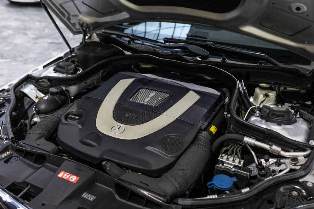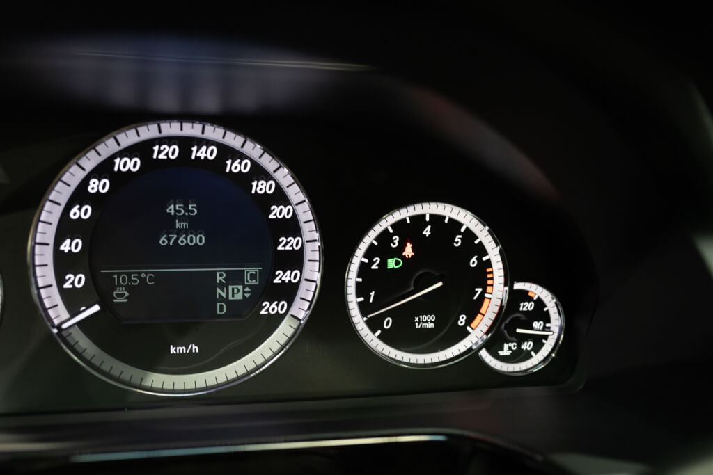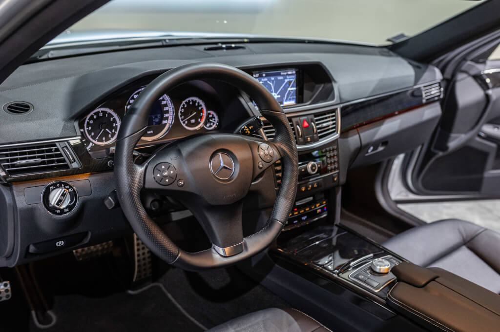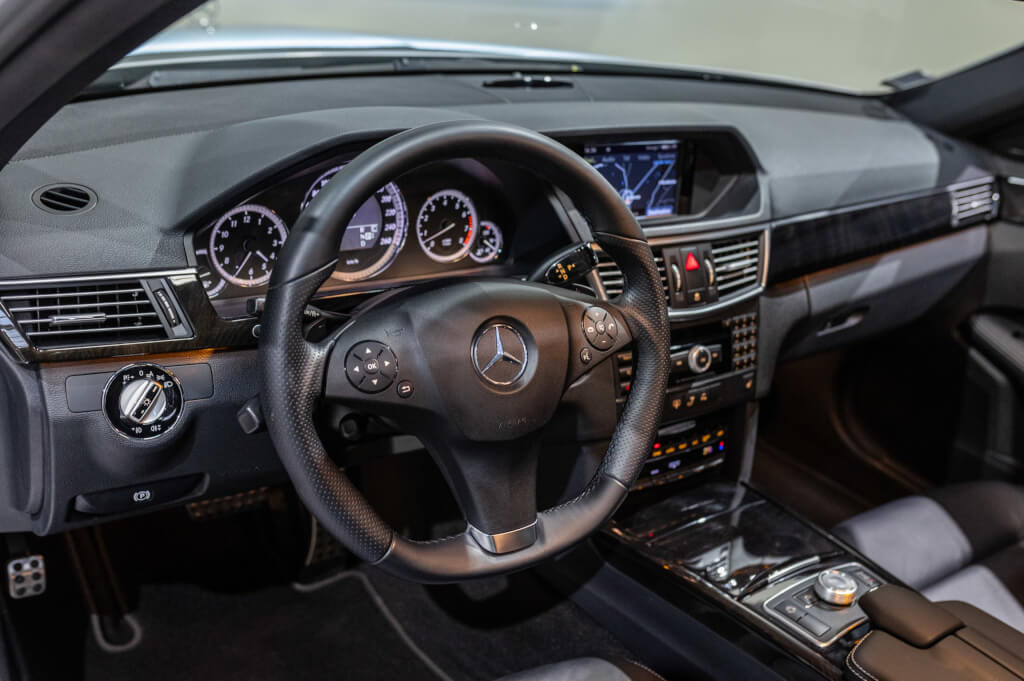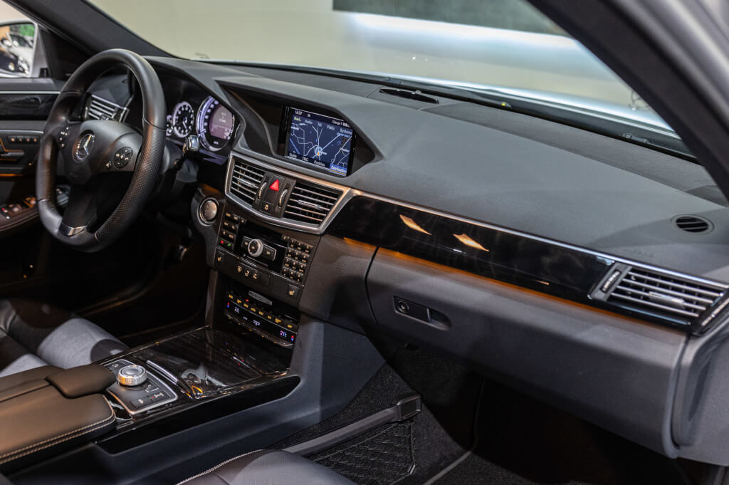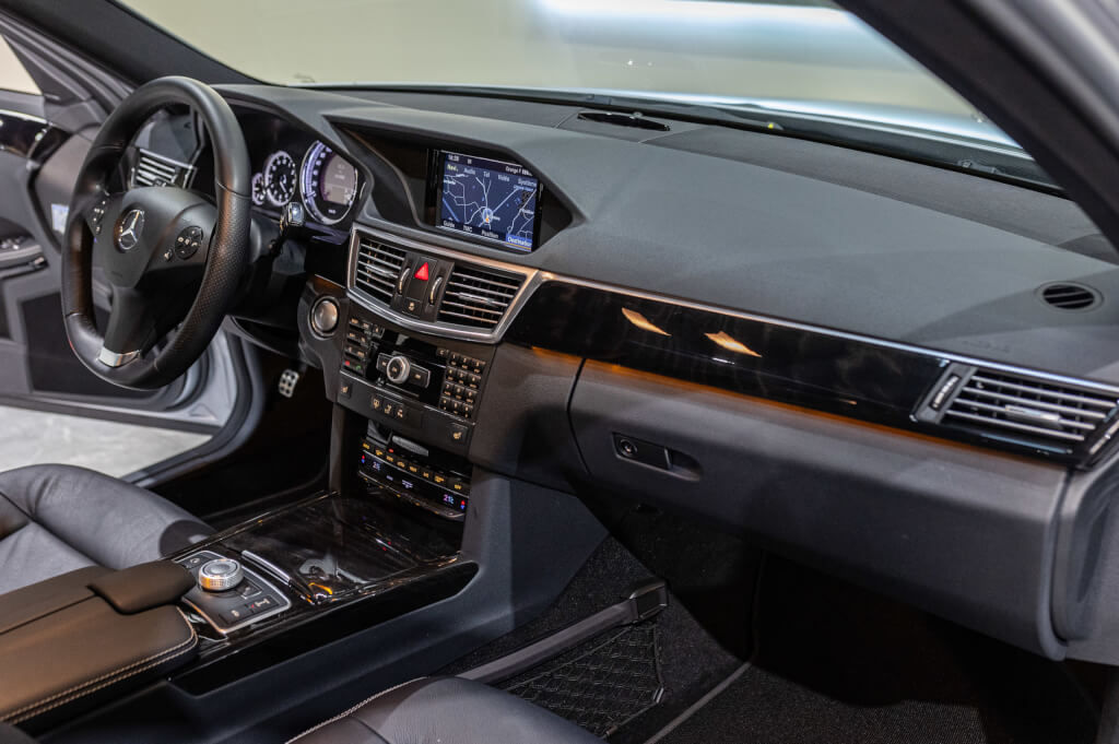 Cette Classe E 500 de seconde main, se distingue par un faible kilométrage de 67.000 km et se présente dans un état exceptionnel, proche du neuf, avec un historique d’entretien transparent et méticuleux exclusivement chez Mercedes.