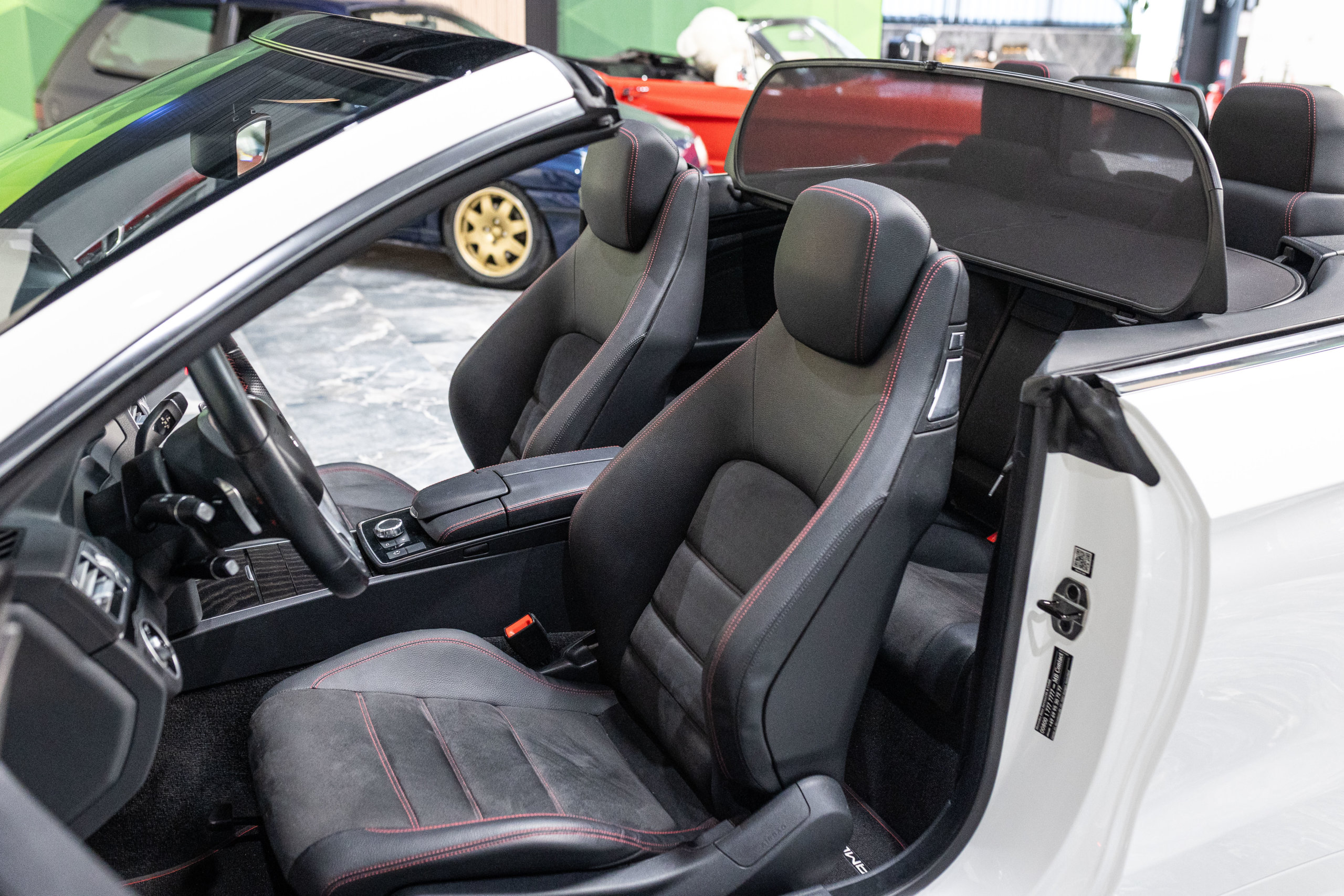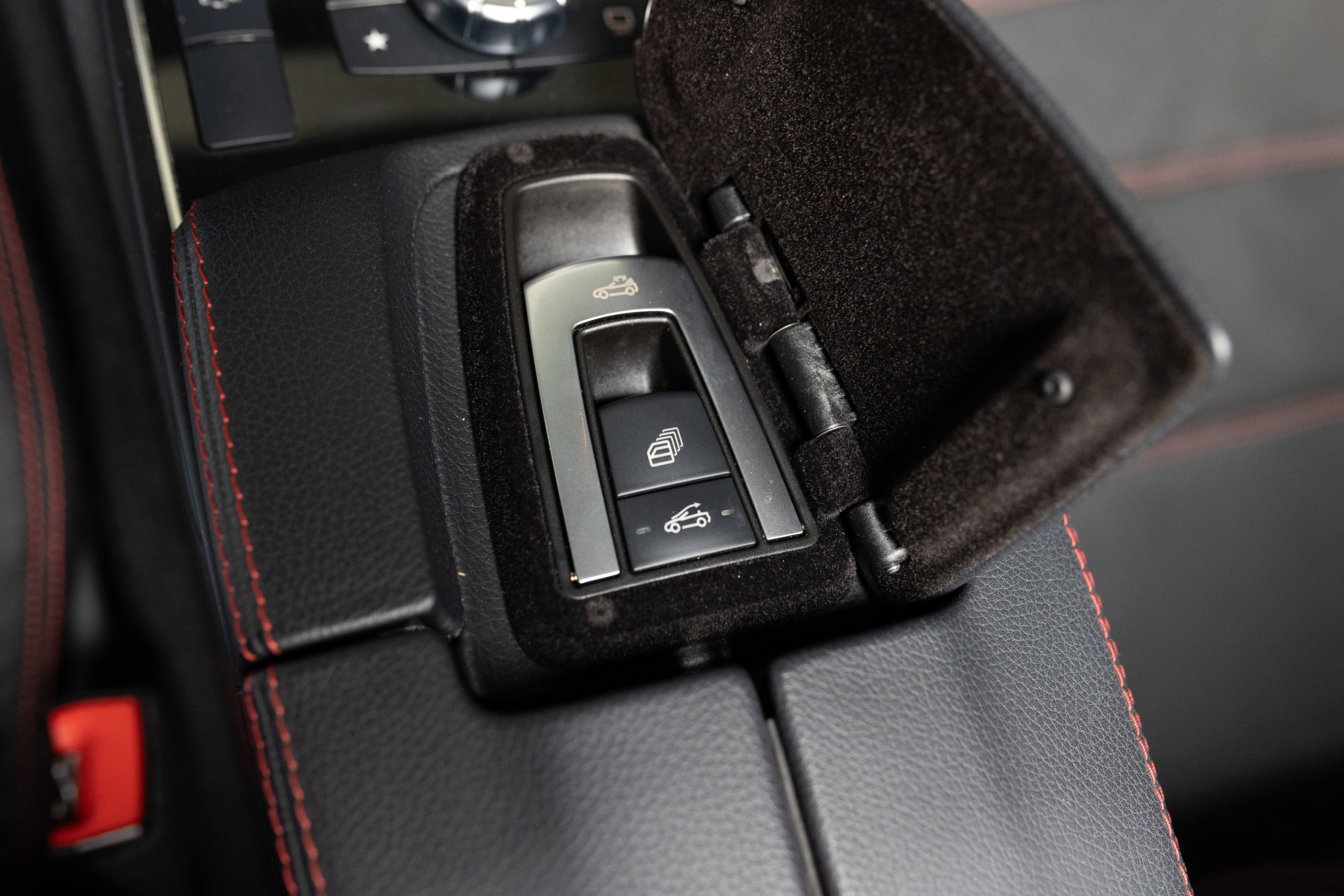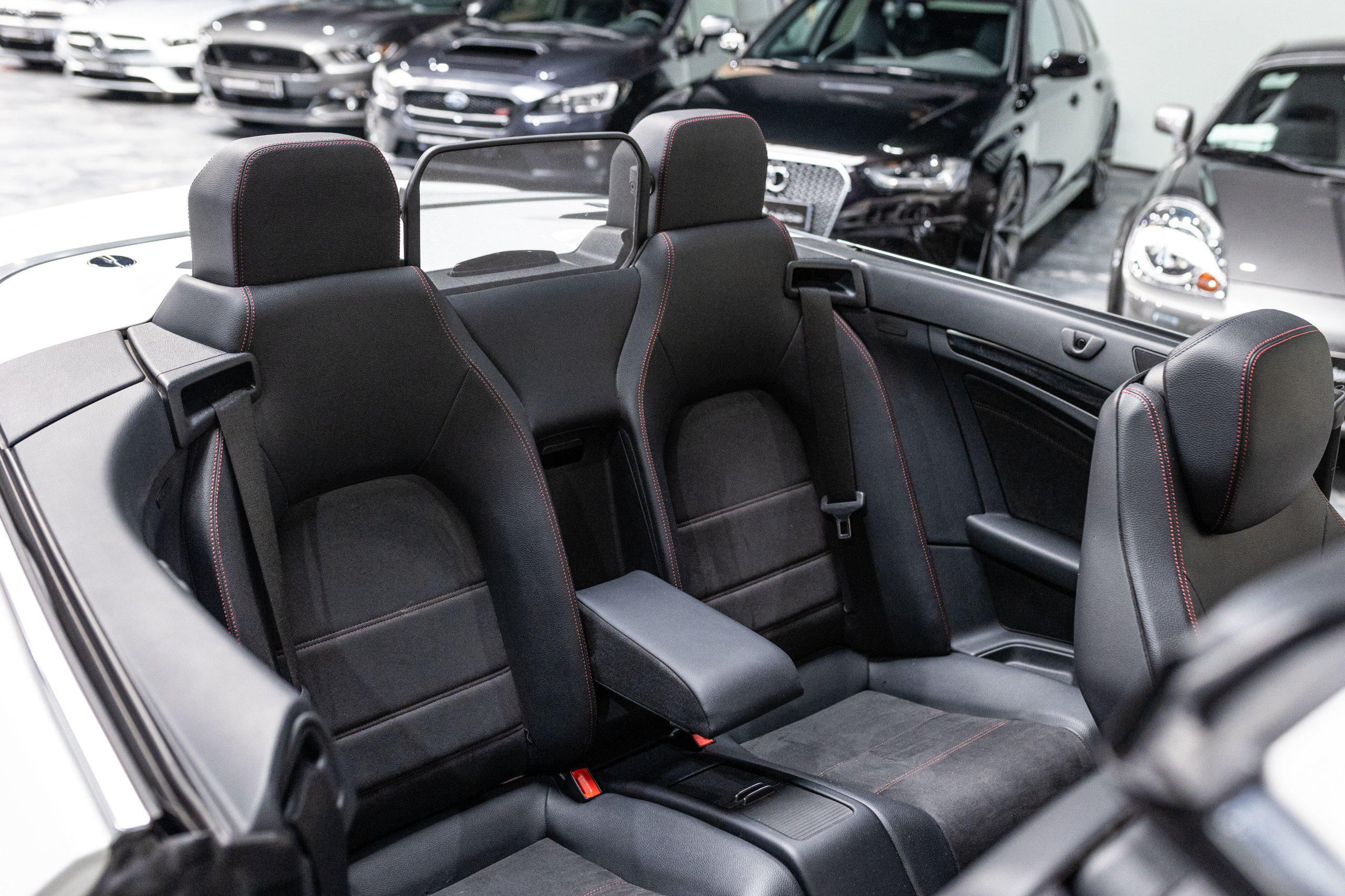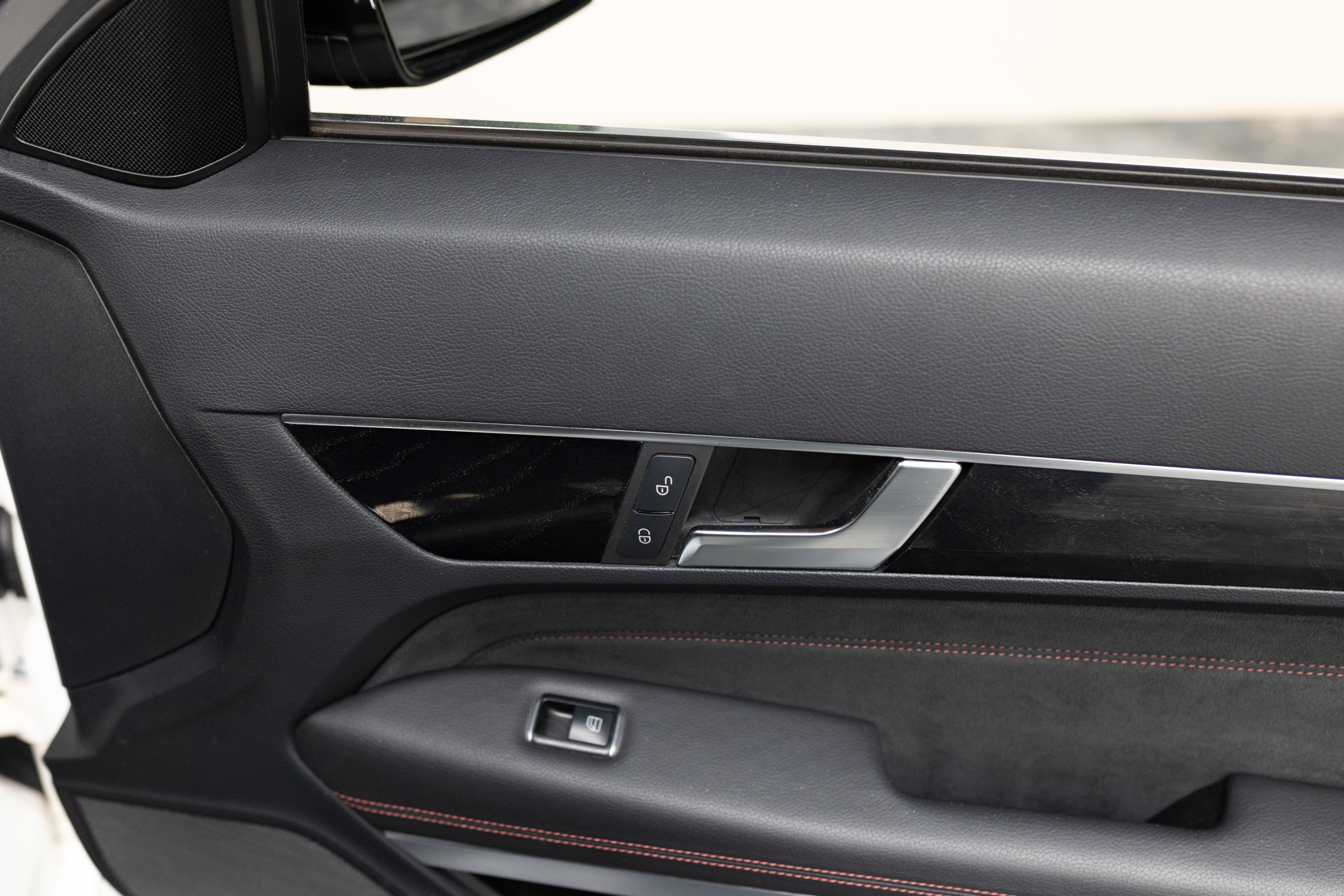 – Sellerie Cuir/Alcantara Noir/Anthracite avec Surpiqûres Rouges