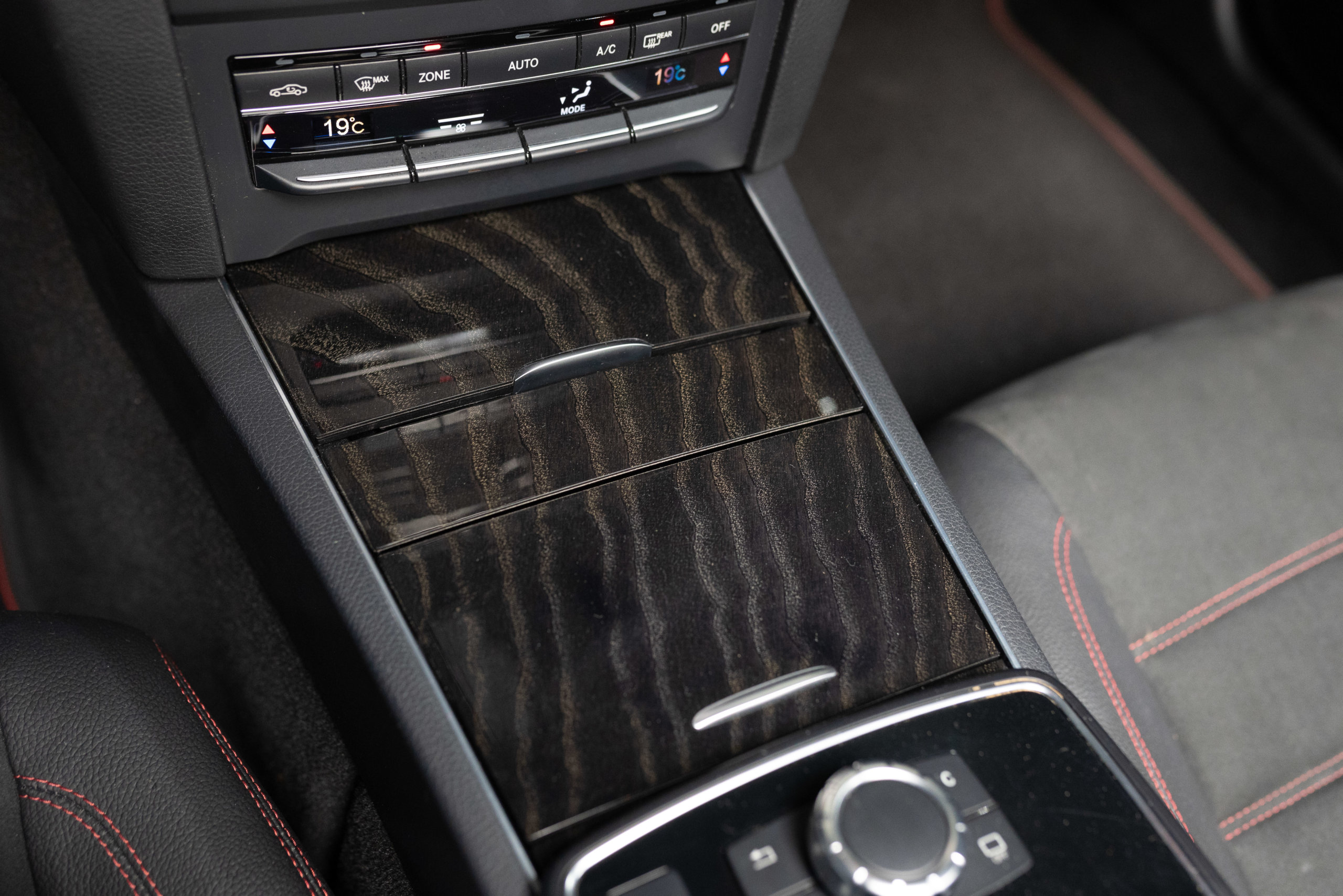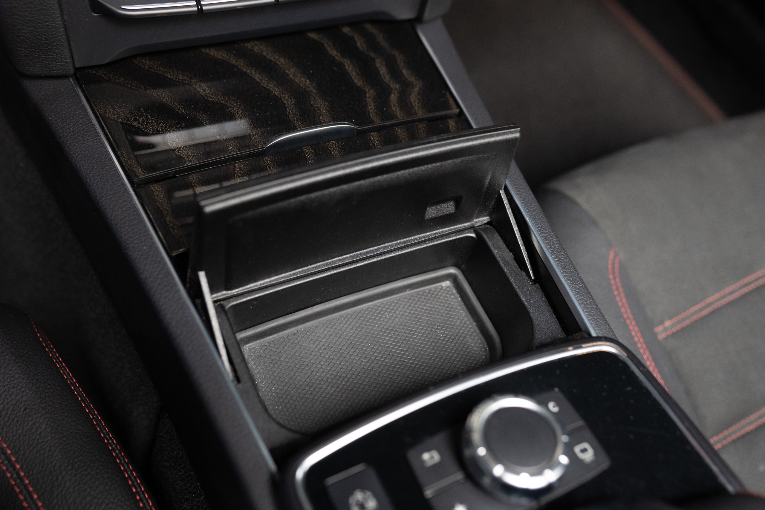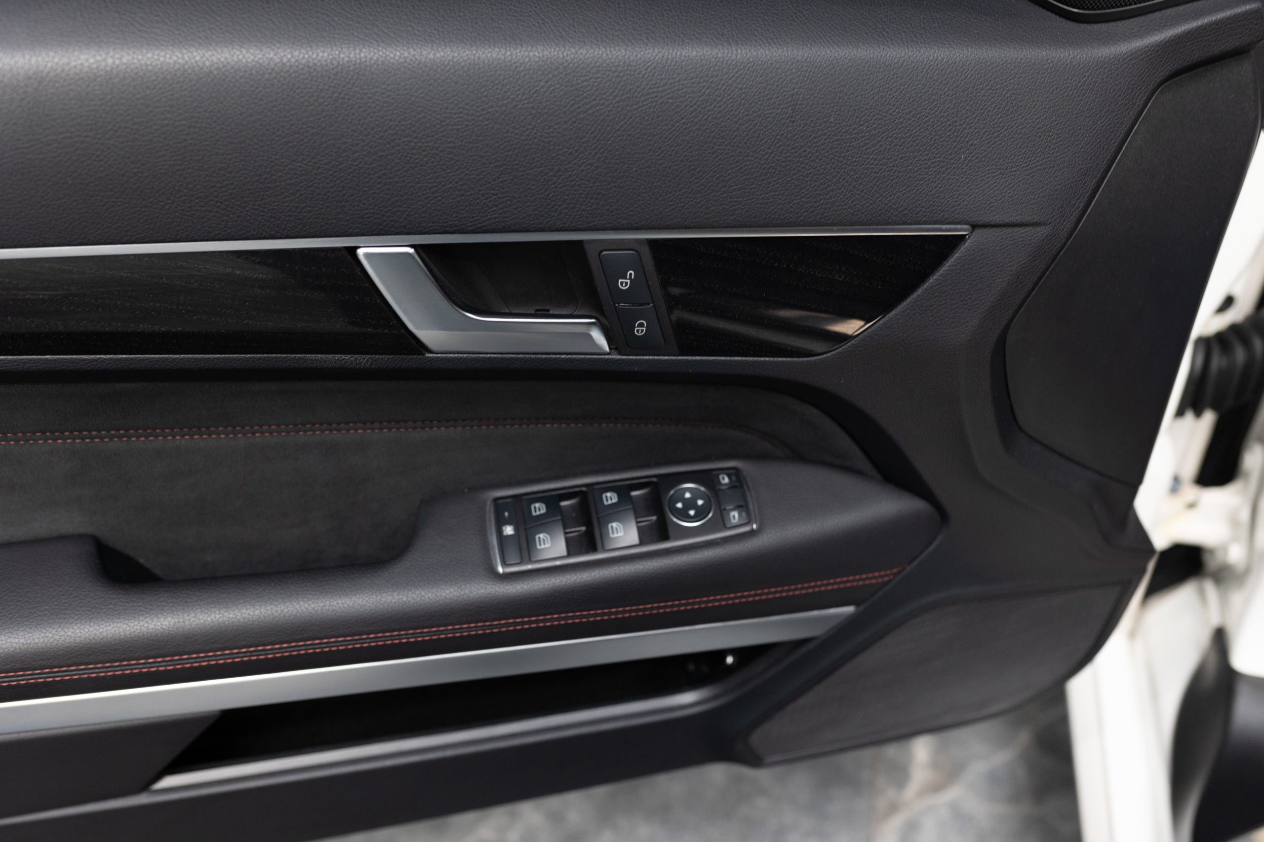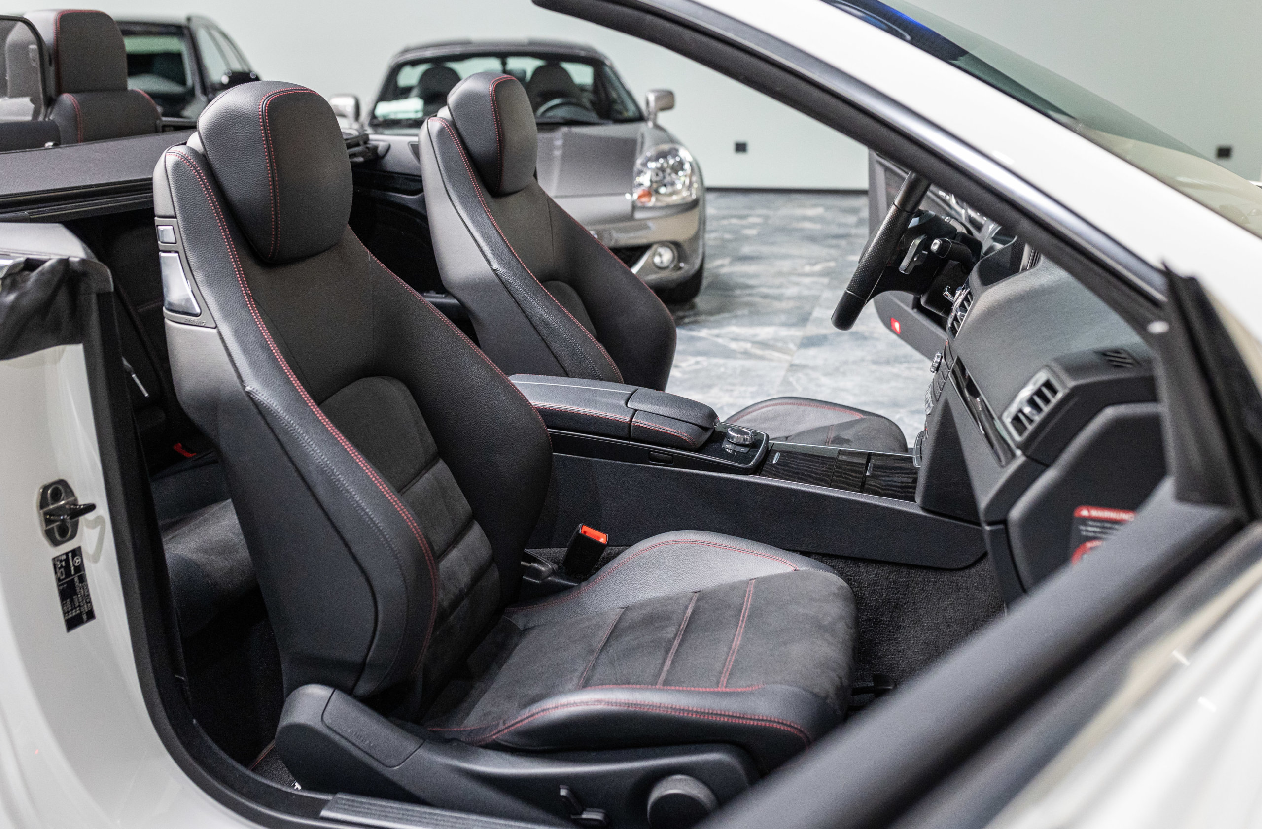 – Sellerie Cuir/Alcantara Noir/Anthracite avec Surpiqûres Rouges