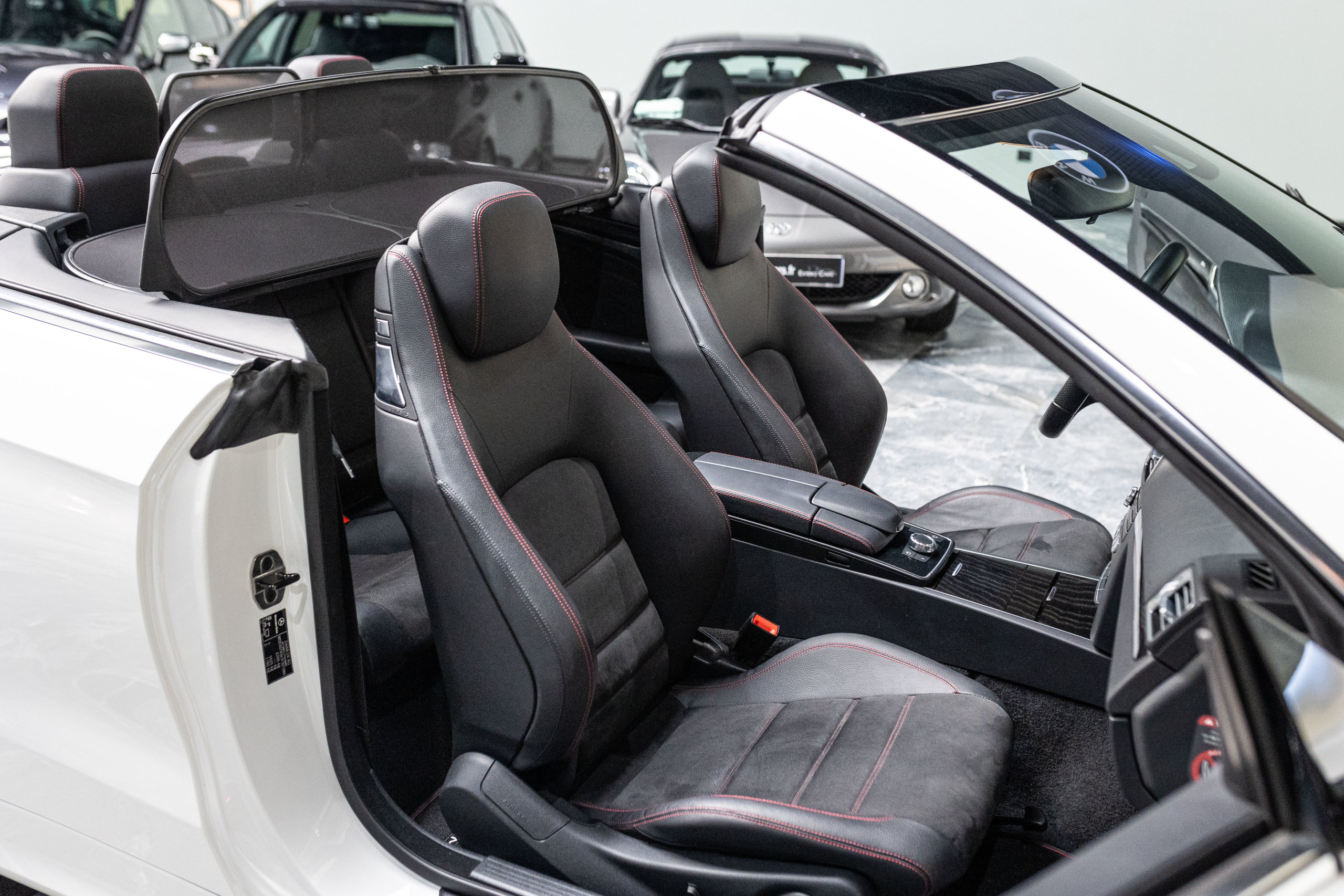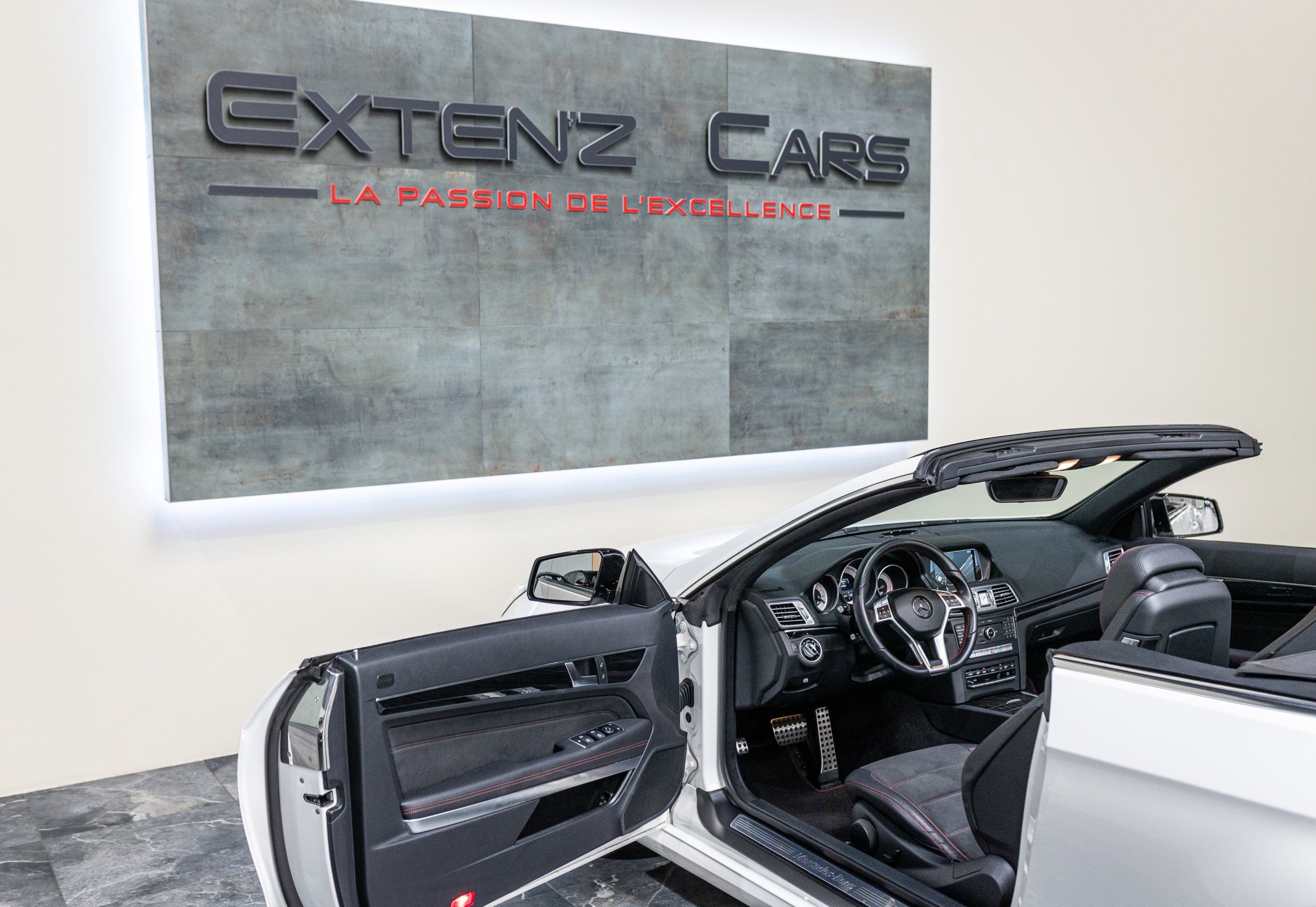 EXTEN’Z CARS vous propose cette magnifique et luxueuse MERCEDES Classe E 250 Cabriolet Fascination AMG délivrant 211 CV (12cv), mise en circulation le 23/06/2015 de couleur Blanc Polaire Unie. La Mercedes Classe E Cabriolet est une franche réussite esthétique. S’appuyant sur les principales lignes de sa grande sœur, la Classe S. Cette auto est avant tout confortable. Les moindres aspérités sont gommées, et que dire de l’insonorisation à bord…ça frôle le sans-faute. Associée à une boîte à vitesse automatique à sept rapports, si vous préférez une conduite plus sportive, il lui suffit de passer en mode manuel à l’aide des palettes de changement de vitesse au volant pour disposer alors des sept rapports fixes. La Mercedes Classe E Cabriolet sait nous accueillir, et que dire de la petite horloge à aiguilles qui trône au centre de la console centrale. En termes de finition il n’y a rien à redire, le choix des matériaux est pertinent.