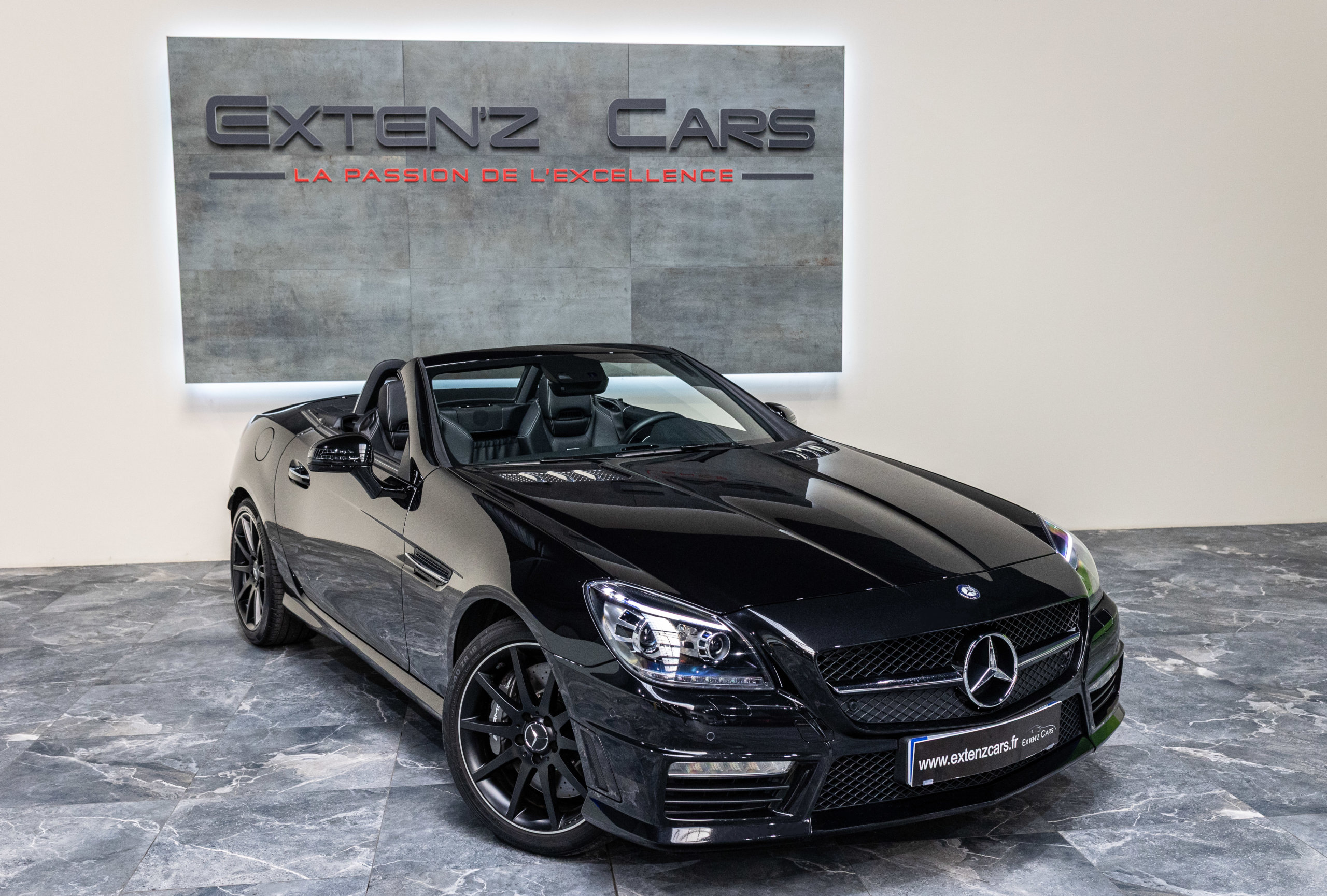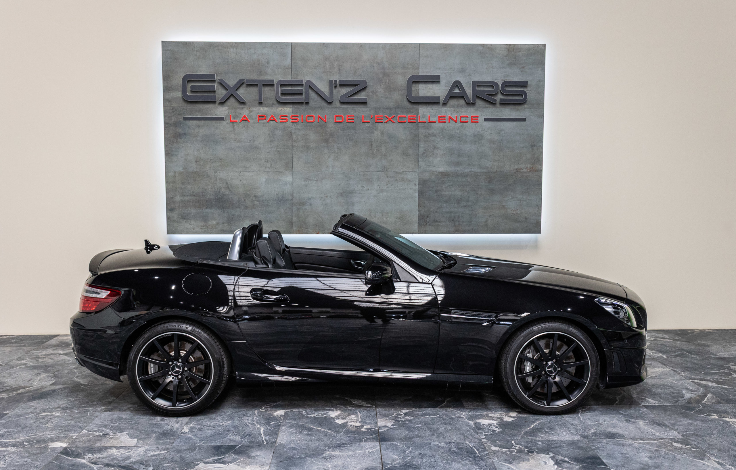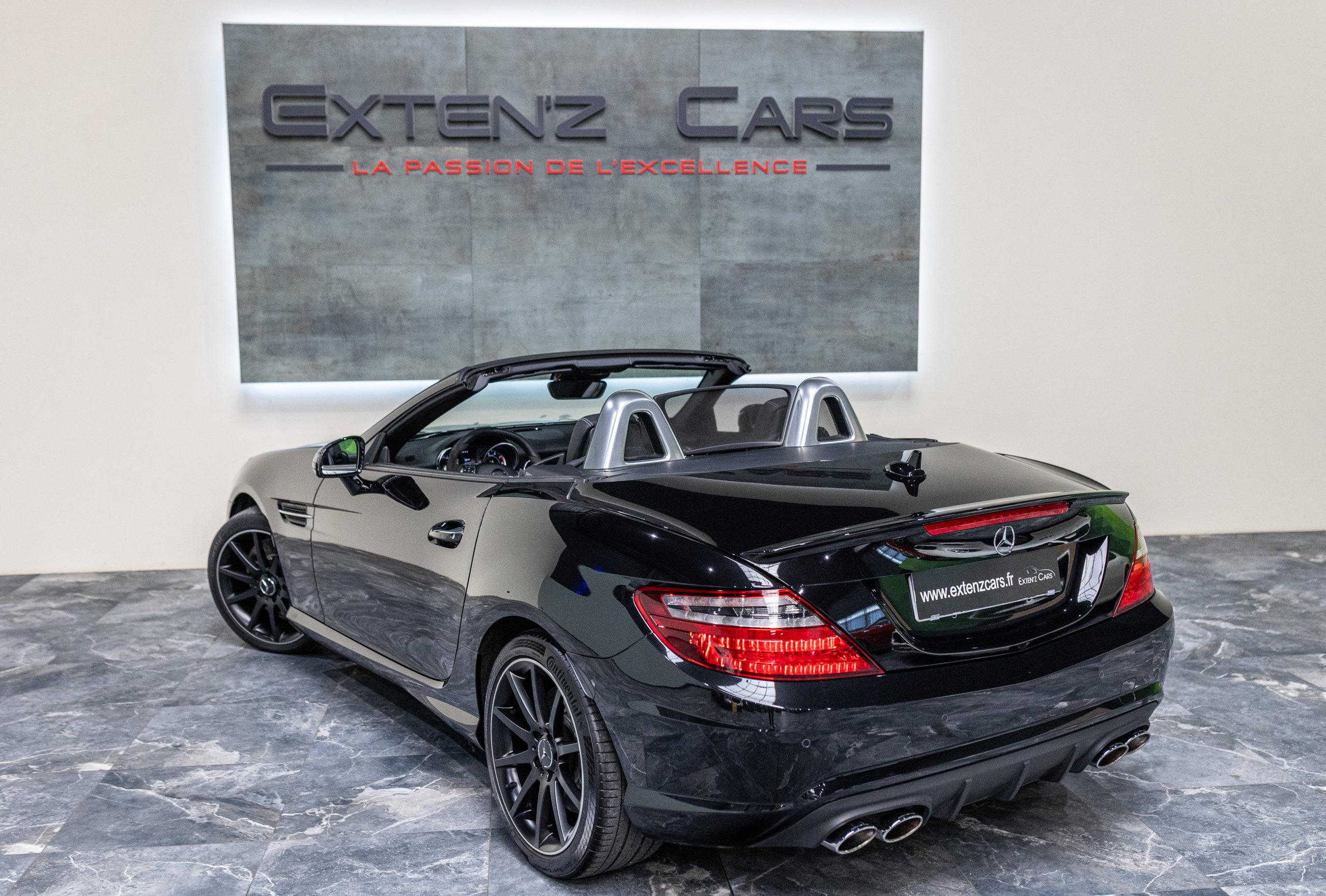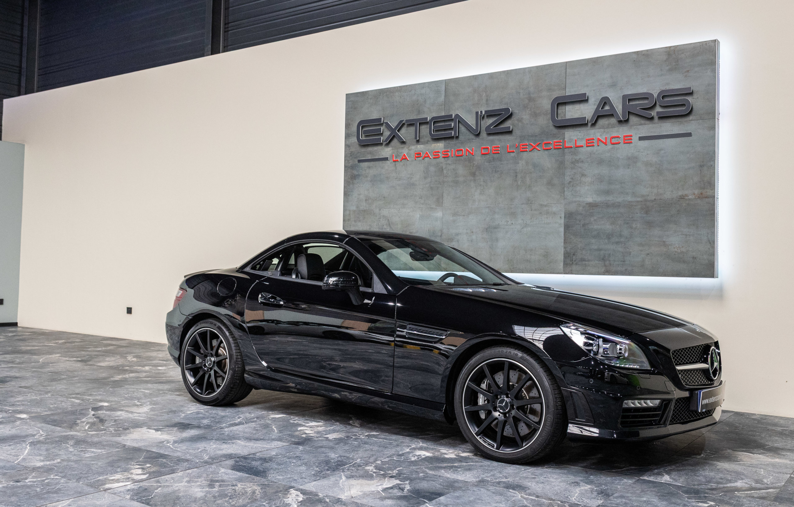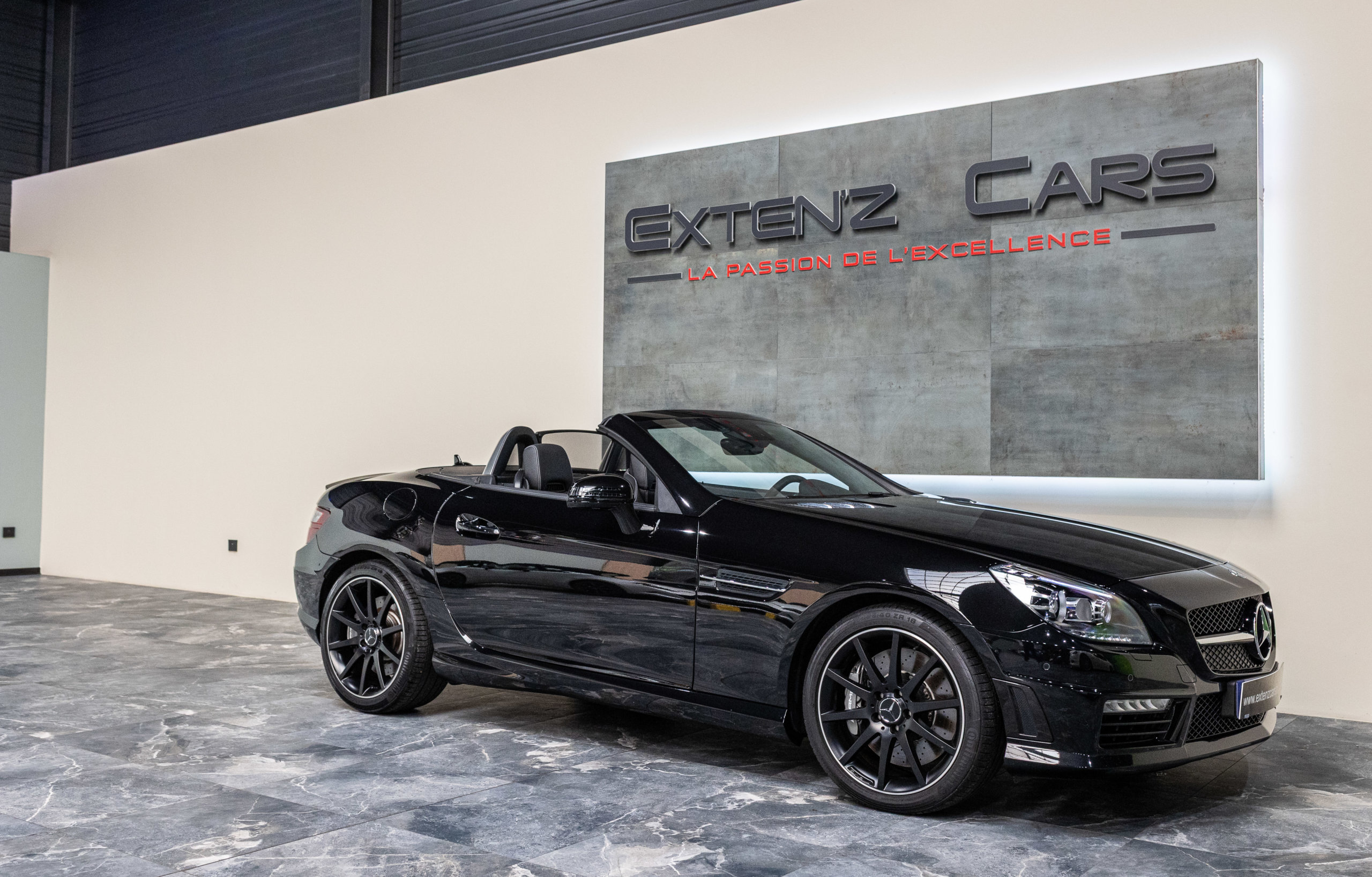 EXTEN’Z CARS vous propose cette magnifique et rare Mercedes-Benz SLK 55 AMG Roadster (R172) avec son fantastique V8 atmosphérique de 5,5 litres en voie de disparition et associé d’une sonorité exceptionnelle ainsi que de sa boîte de vitesses Automatique 7G-Tronic Speedshift Plus développant 420 CV (31cv), mise en circulation le 30/04/2012, de couleur Noir Obsidienne Métallisée. Une gueule, un moteur et un châssis, d’une polyvalence rare, ce roadster SLK 55 AMG R172 fait honneur au blason Mercedes ! Plus GT que supersportive, le SLK AMG n’en demeure pas moins époustouflant en performances et ultra agréable en conduite coulée.